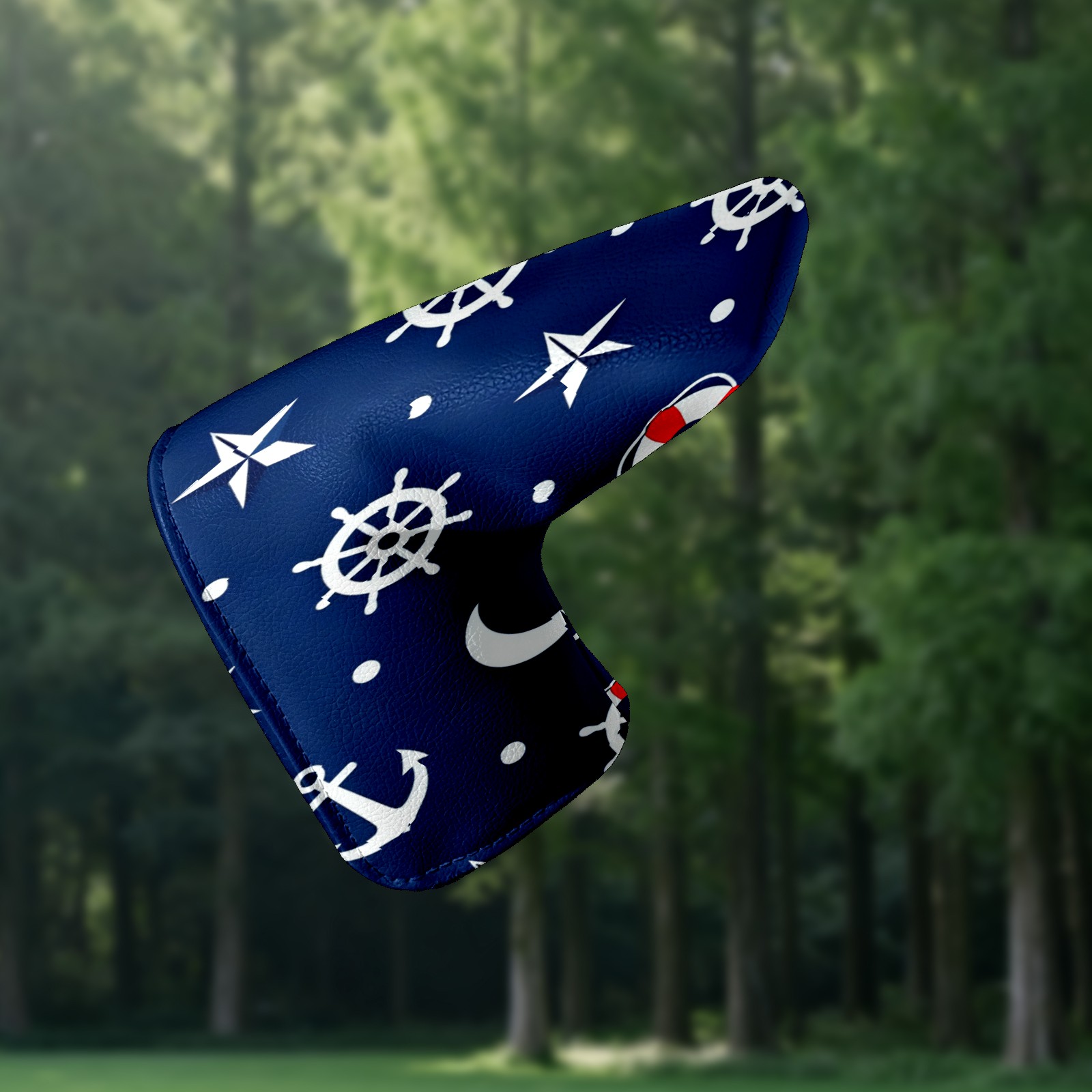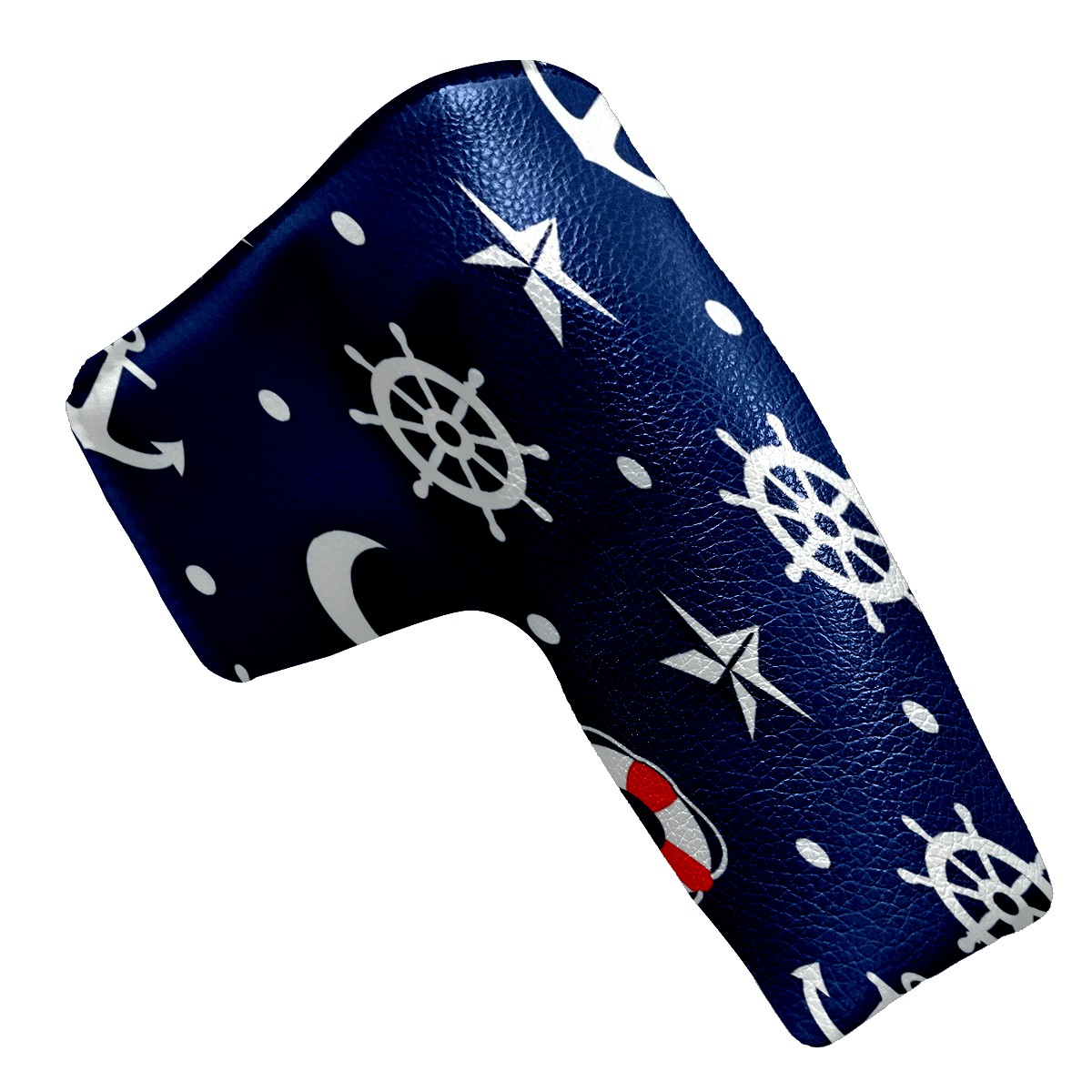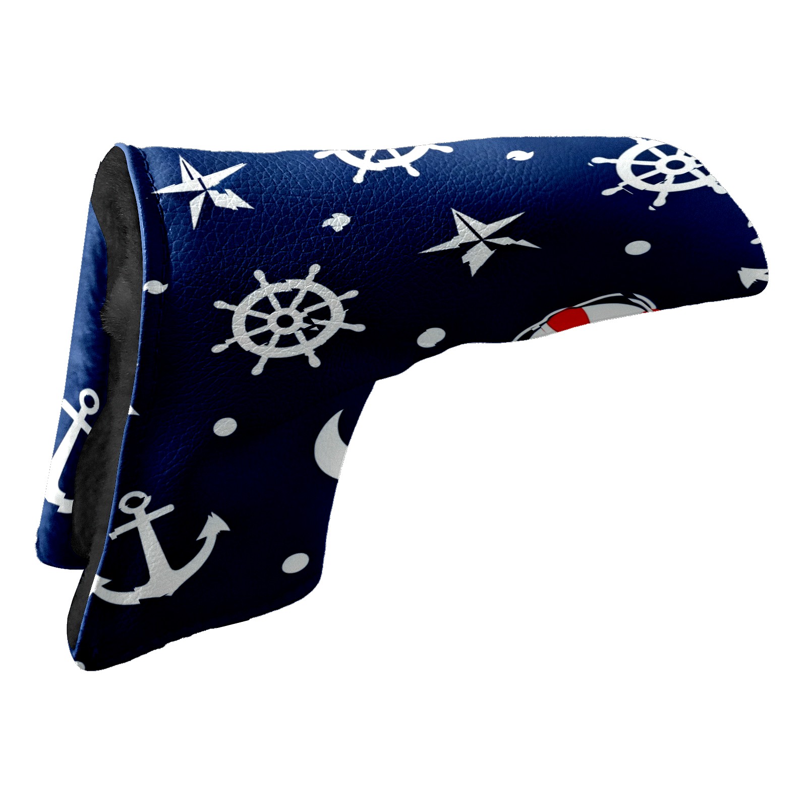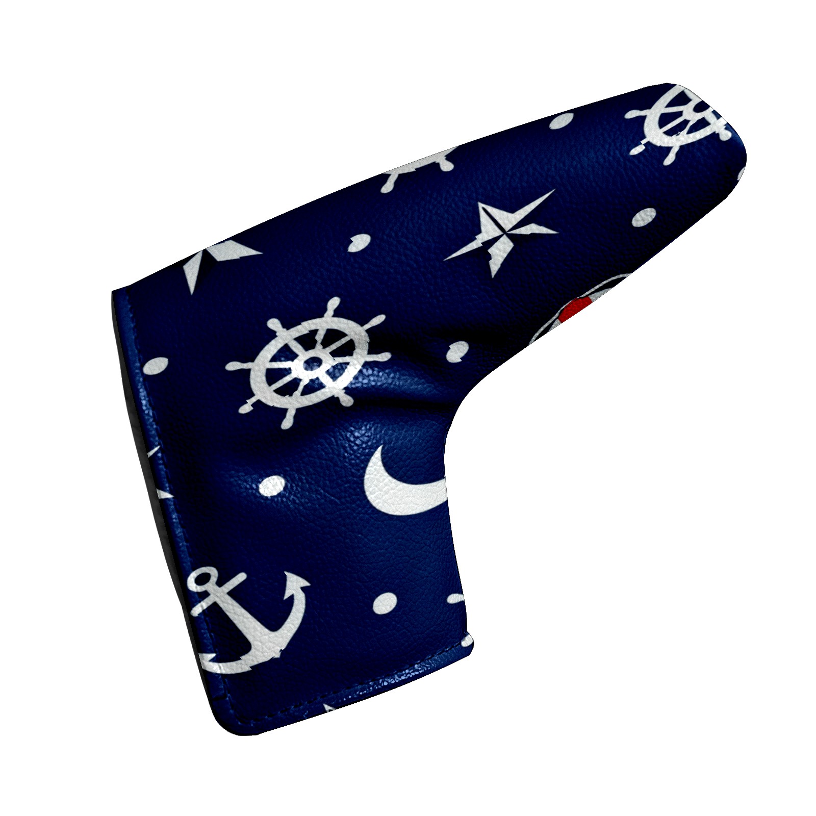 Lightweight Golf Putter Covers, Mid Mallet Putter Headcovers PU Leather Golf Club Covers for Man Women Golfer, Form Fitting Design Dark Blue Nautical Pattern