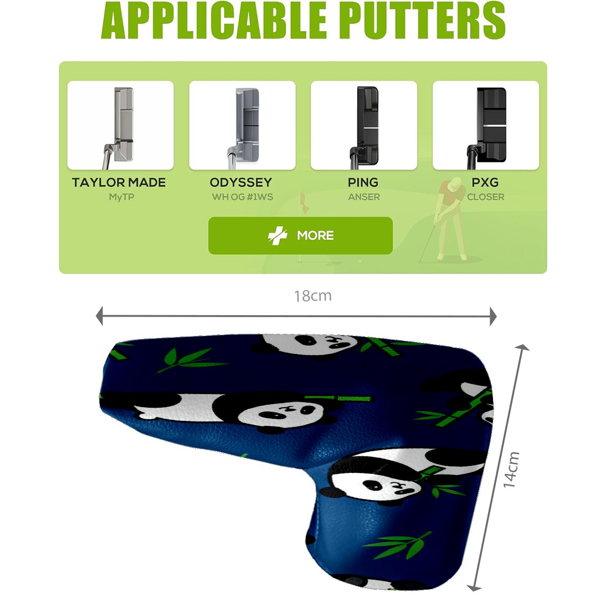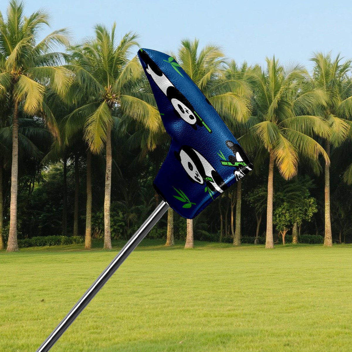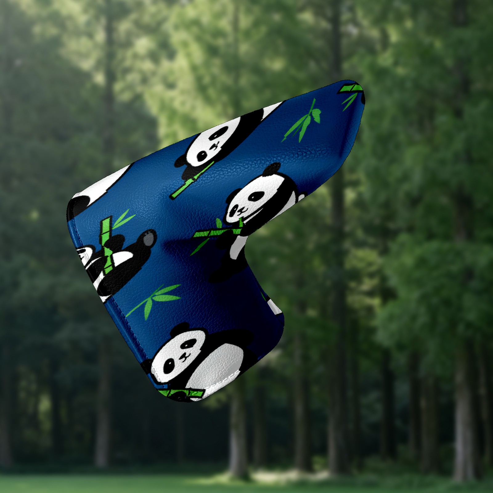 Lightweight Golf Putter Covers, Mid Mallet Putter Headcovers PU Leather Golf Club Covers for Man Women Golfer, Form Fitting Design Dark Blue Panda Pattern