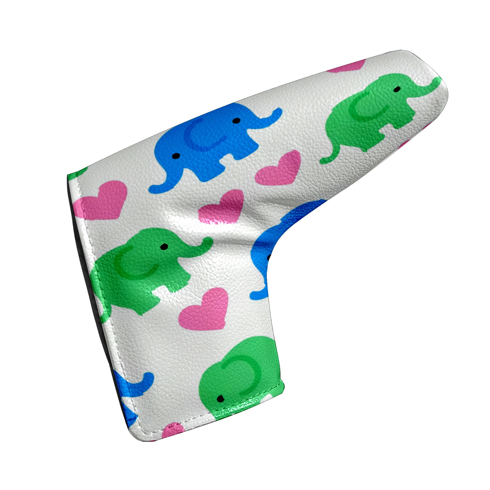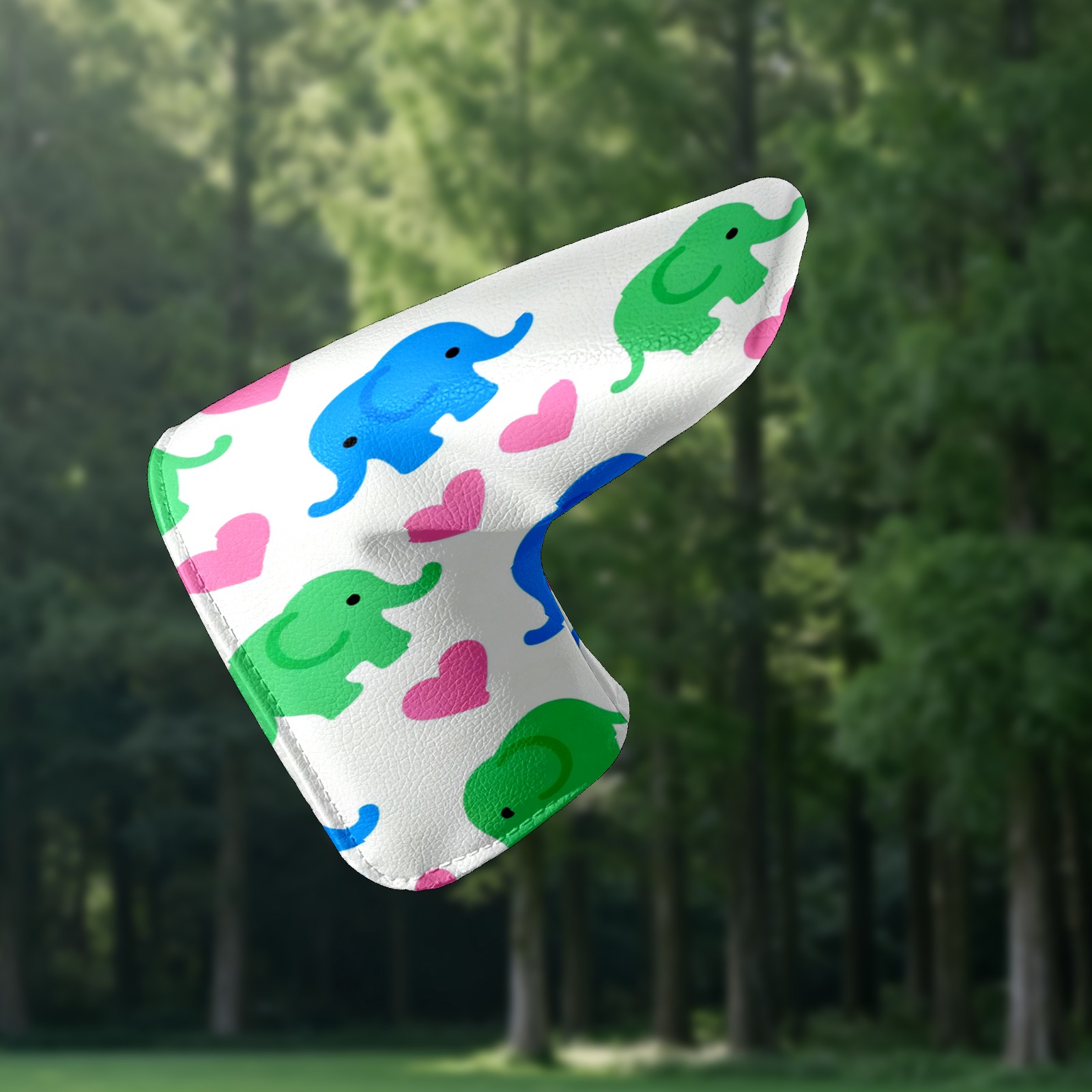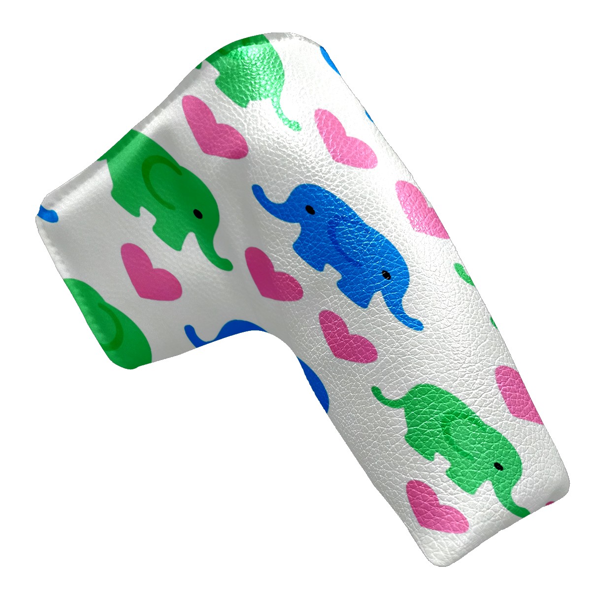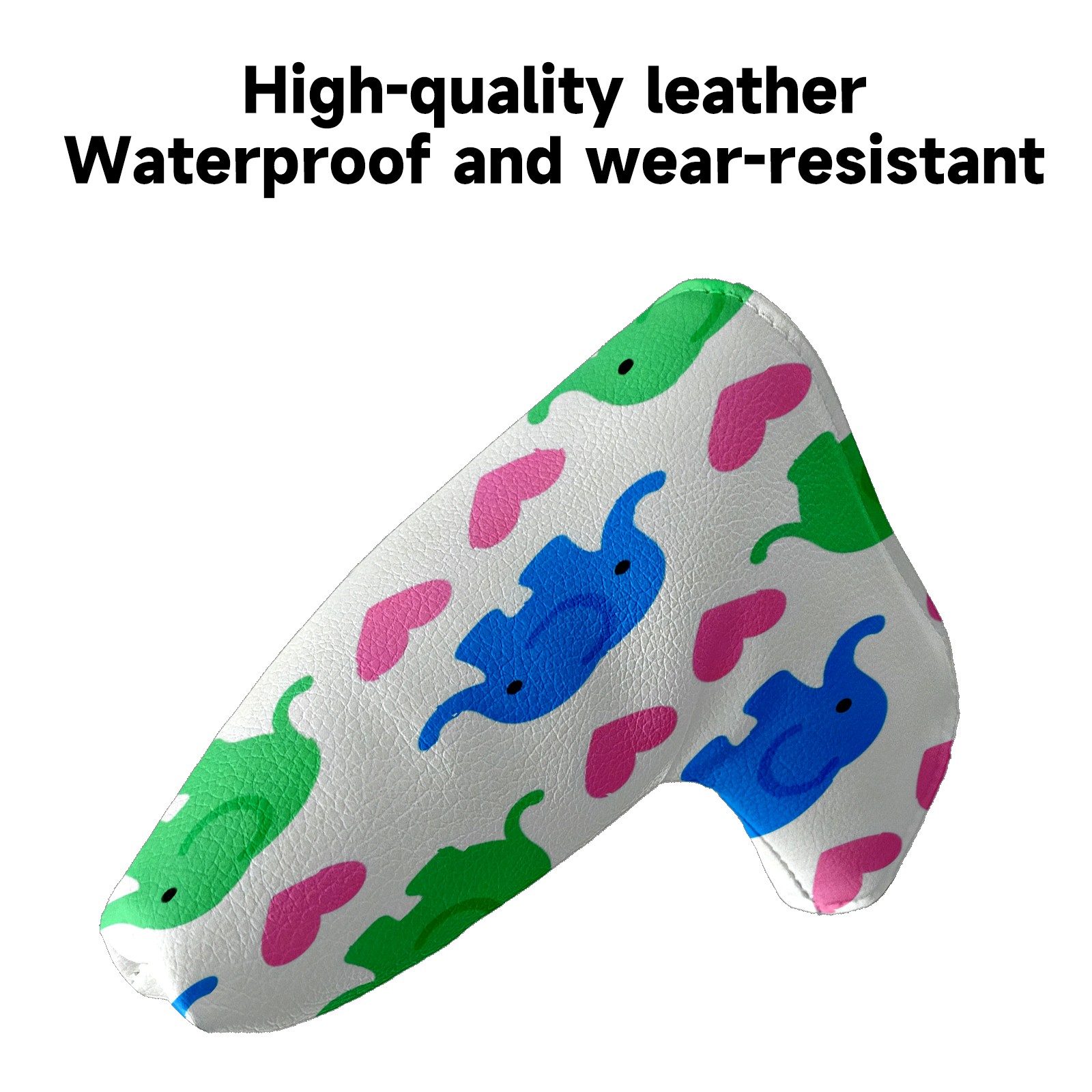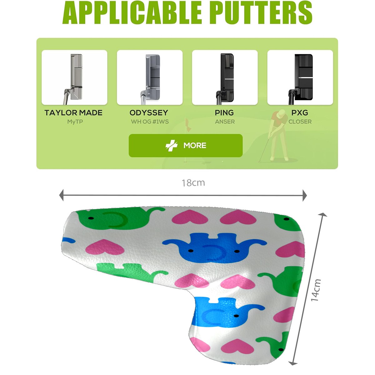 Lightweight Golf Putter Covers, Mid Mallet Putter Headcovers PU Leather Golf Club Covers for Man Women Golfer, Form Fitting Design Elephant Heart Pattern
