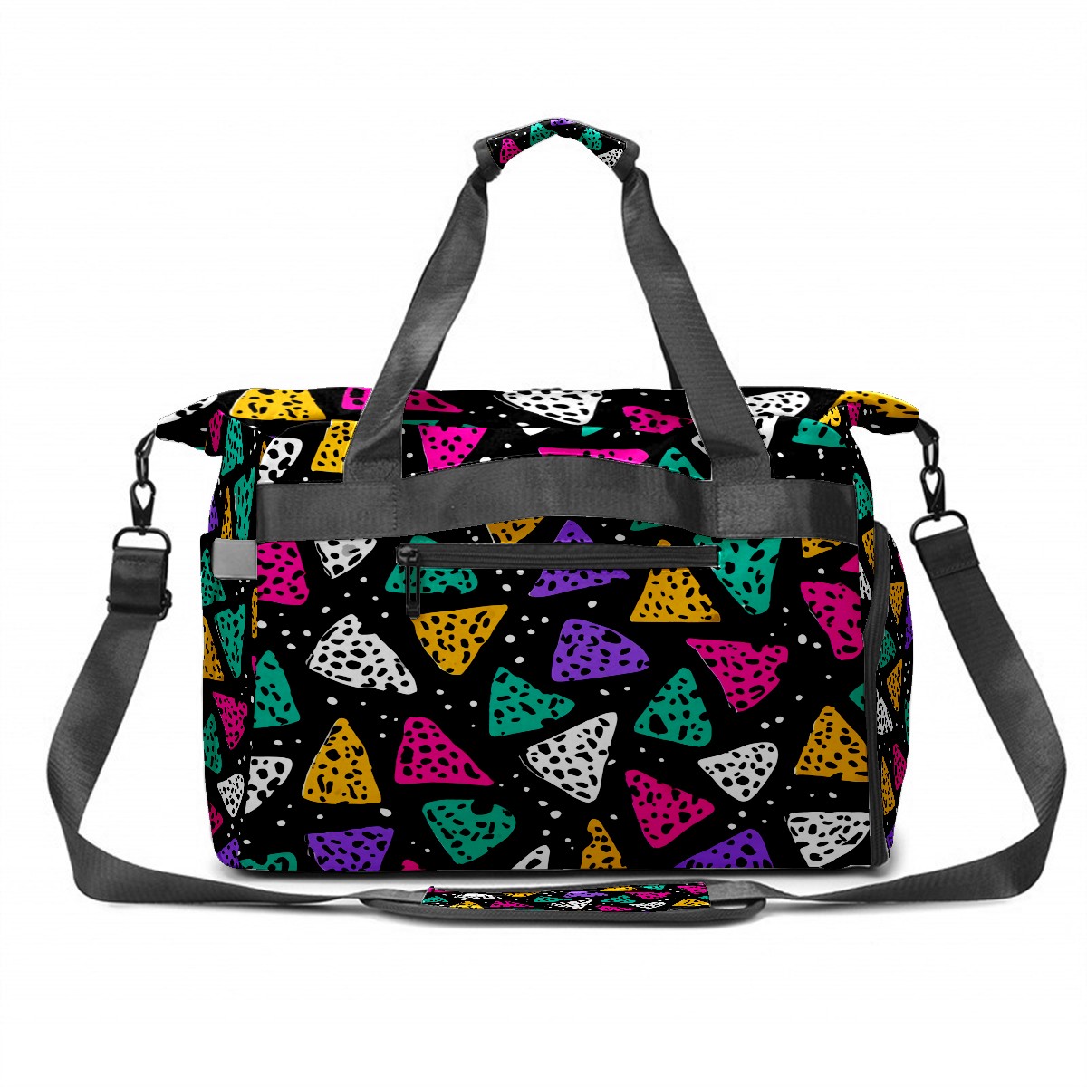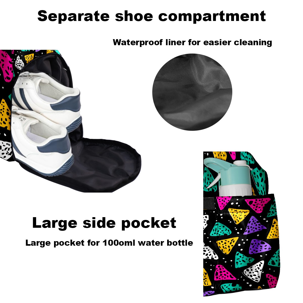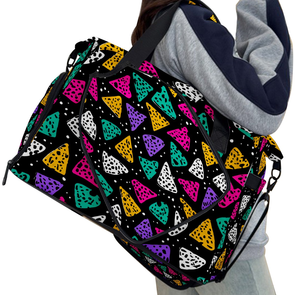 Women's Tennis Bag Large Capacity - Ventilated Shoe Compartment & Waterproof Wet Pocket, Multi-Functional Gym Duffel Bag for Tennis, Yoga, Travel (Multicolor Triangles)