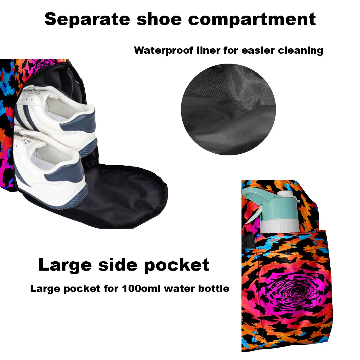 Women's Tennis Bag Large Capacity - Ventilated Shoe Compartment & Waterproof Wet Pocket, Multi-Functional Gym Duffel Bag for Tennis, Yoga, Travel (Multicolor Swirl)
