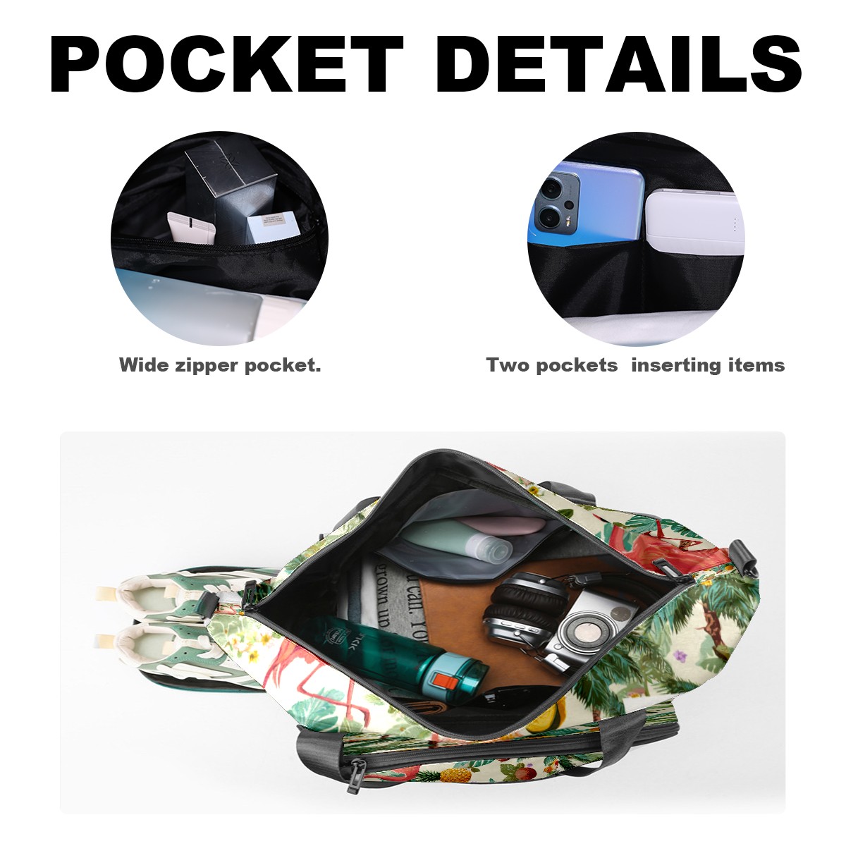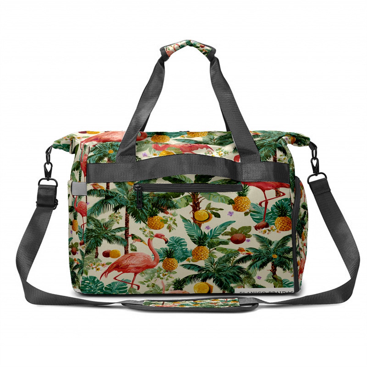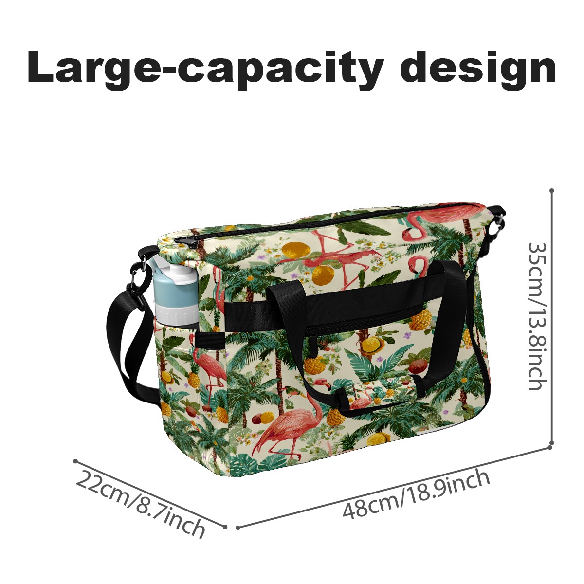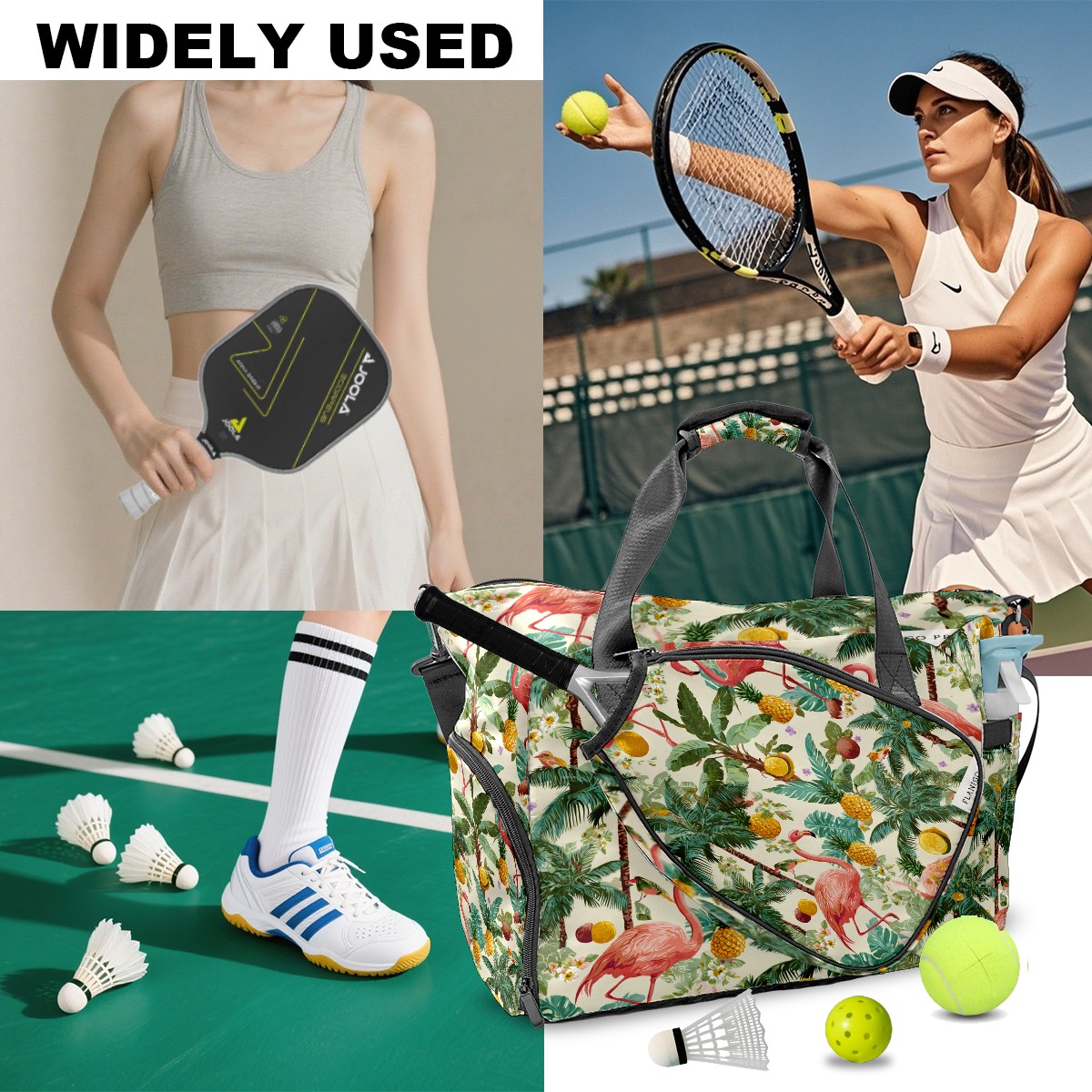 Women's Tennis Bag Large Capacity - Ventilated Shoe Compartment & Waterproof Wet Pocket, Multi-Functional Gym Duffel Bag for Tennis, Yoga, Travel (Green Tropical Flamingos)