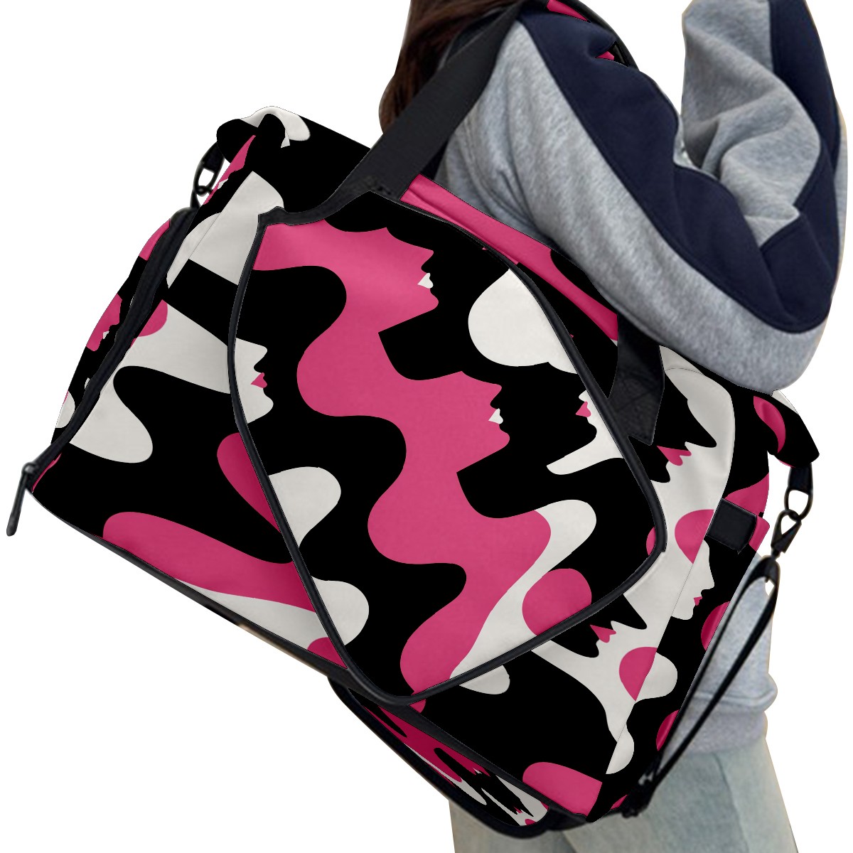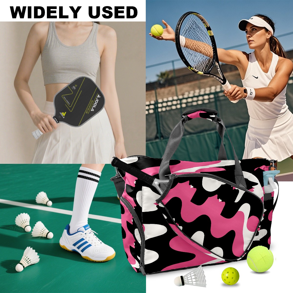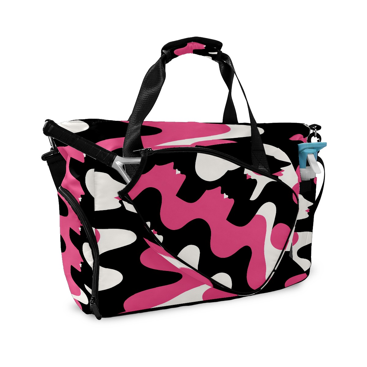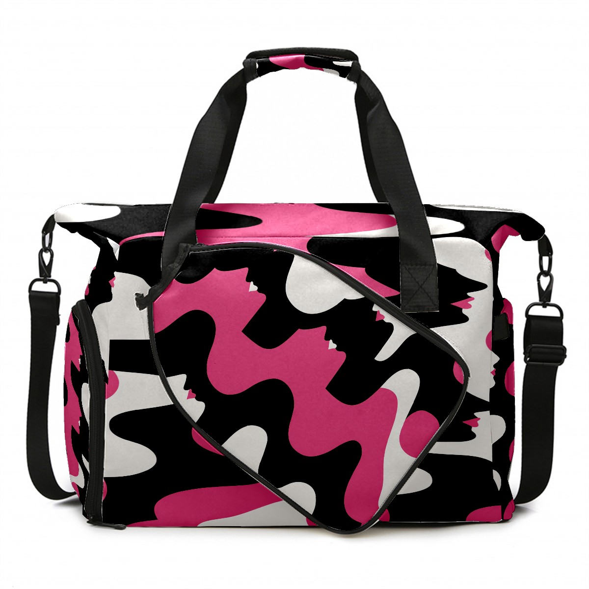 Women's Tennis Bag Large Capacity - Ventilated Shoe Compartment & Waterproof Wet Pocket, Multi-Functional Gym Duffel Bag for Tennis, Yoga, Travel (Pink Black Face Waves)