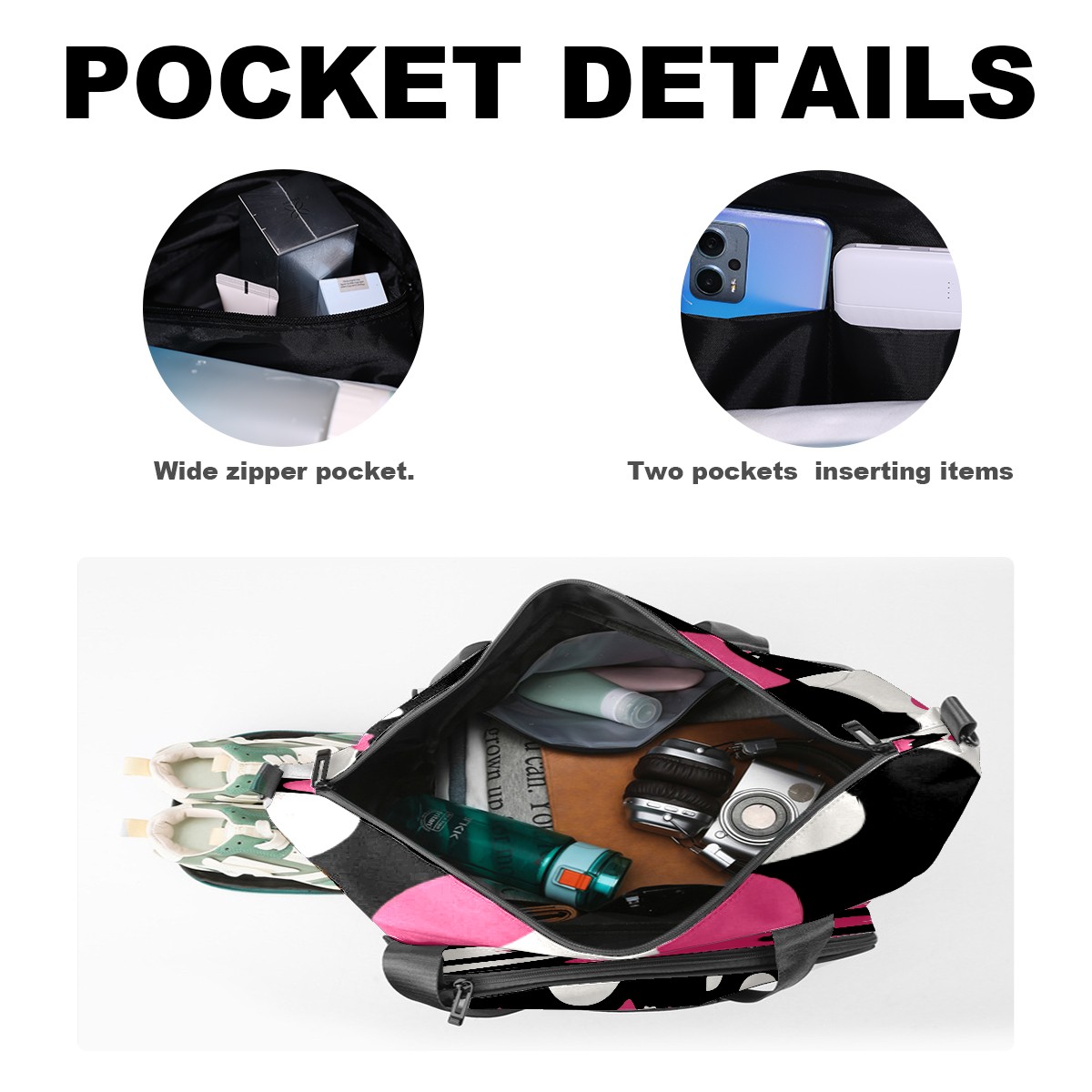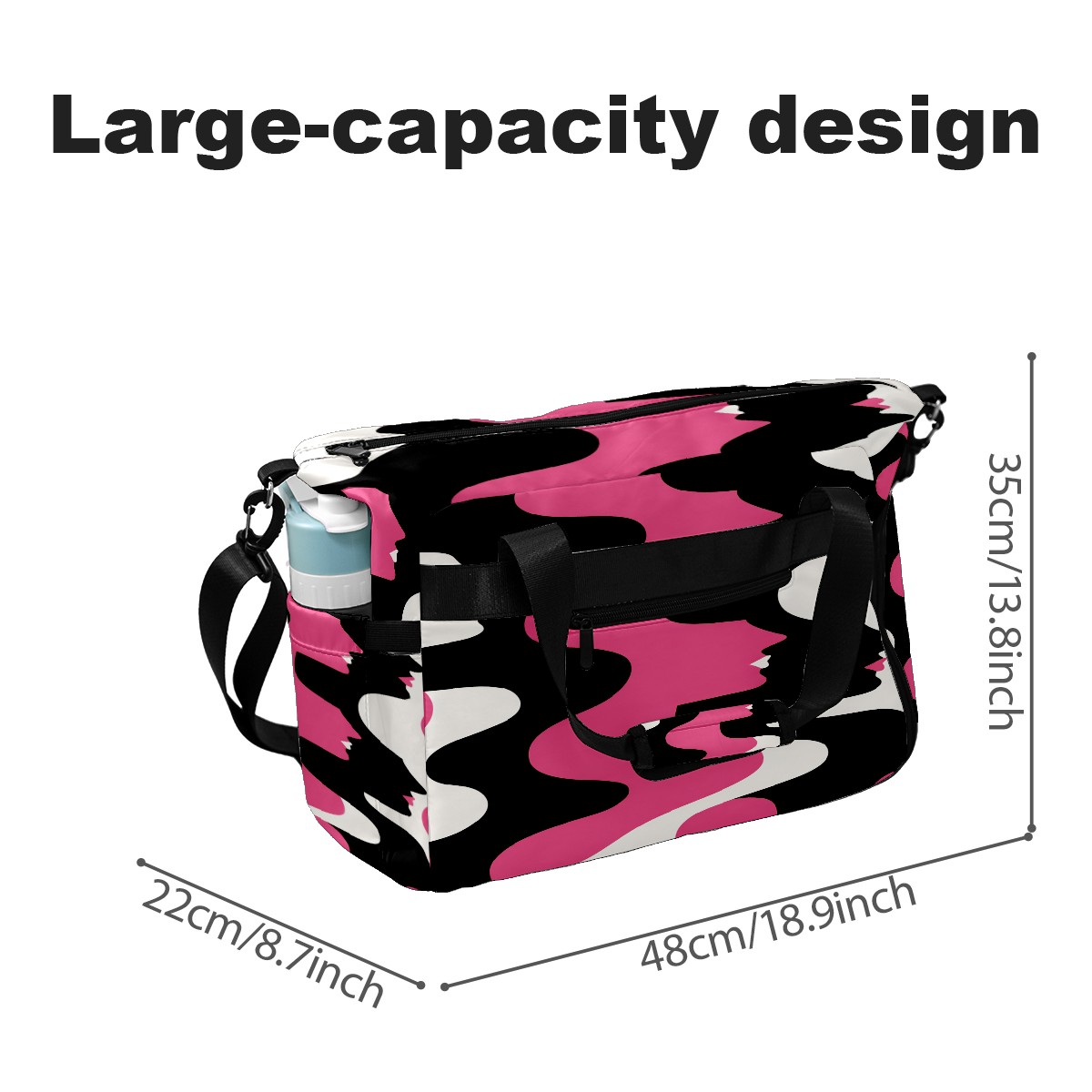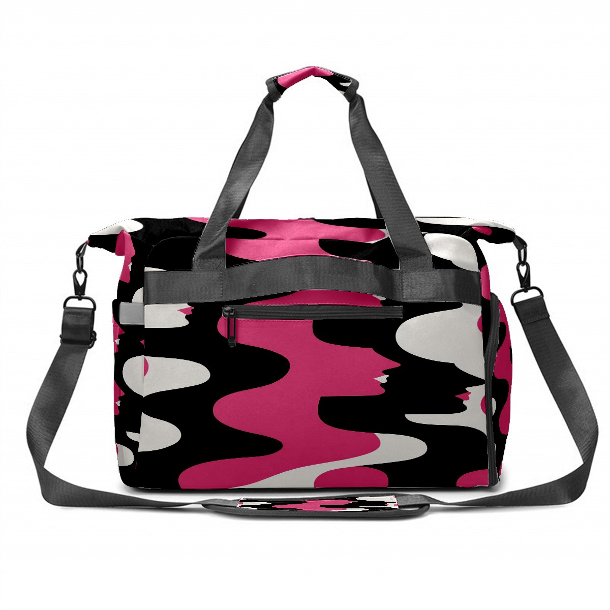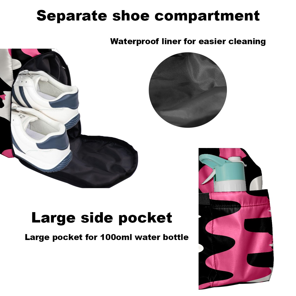 Women's Tennis Bag Large Capacity - Ventilated Shoe Compartment & Waterproof Wet Pocket, Multi-Functional Gym Duffel Bag for Tennis, Yoga, Travel (Pink Black Face Waves)