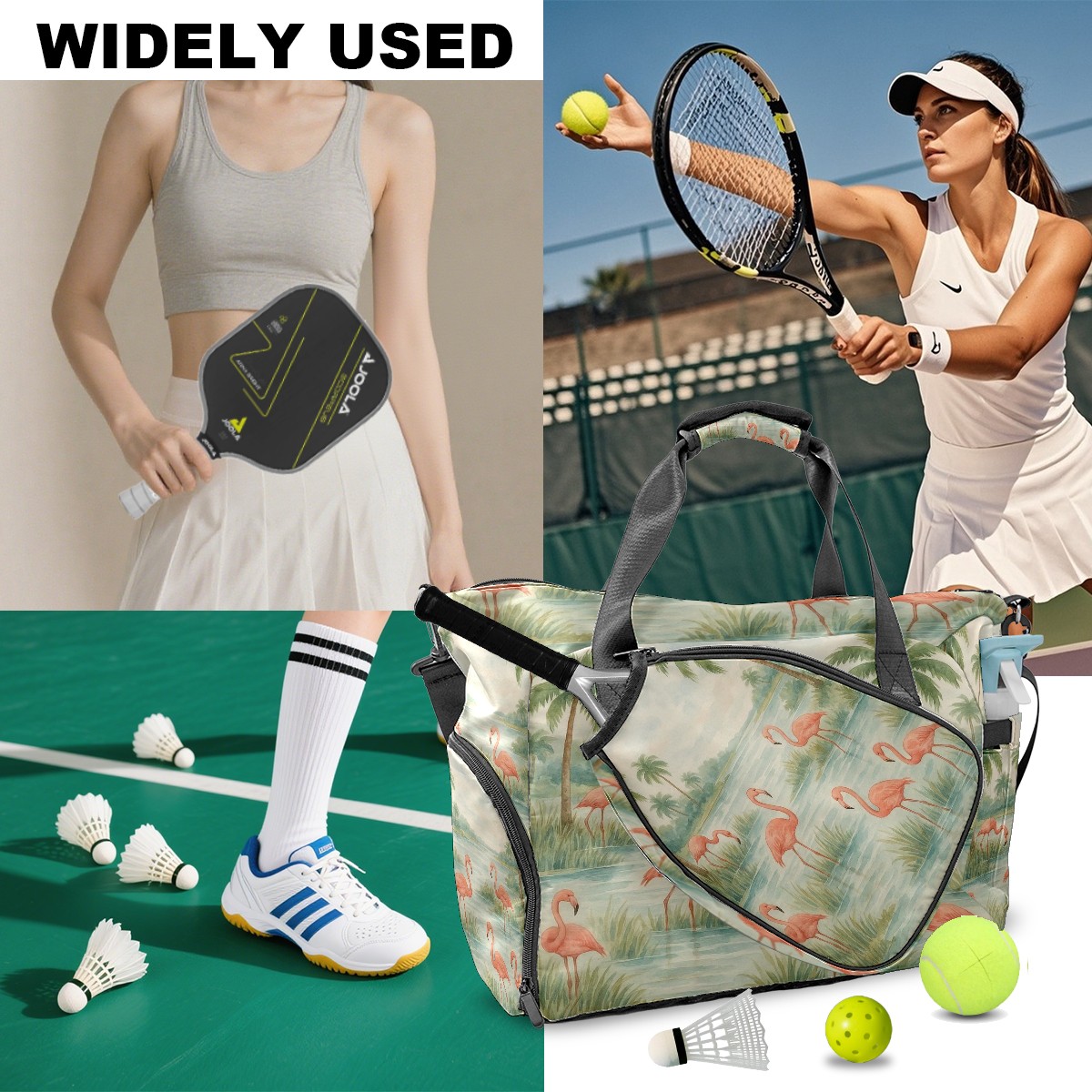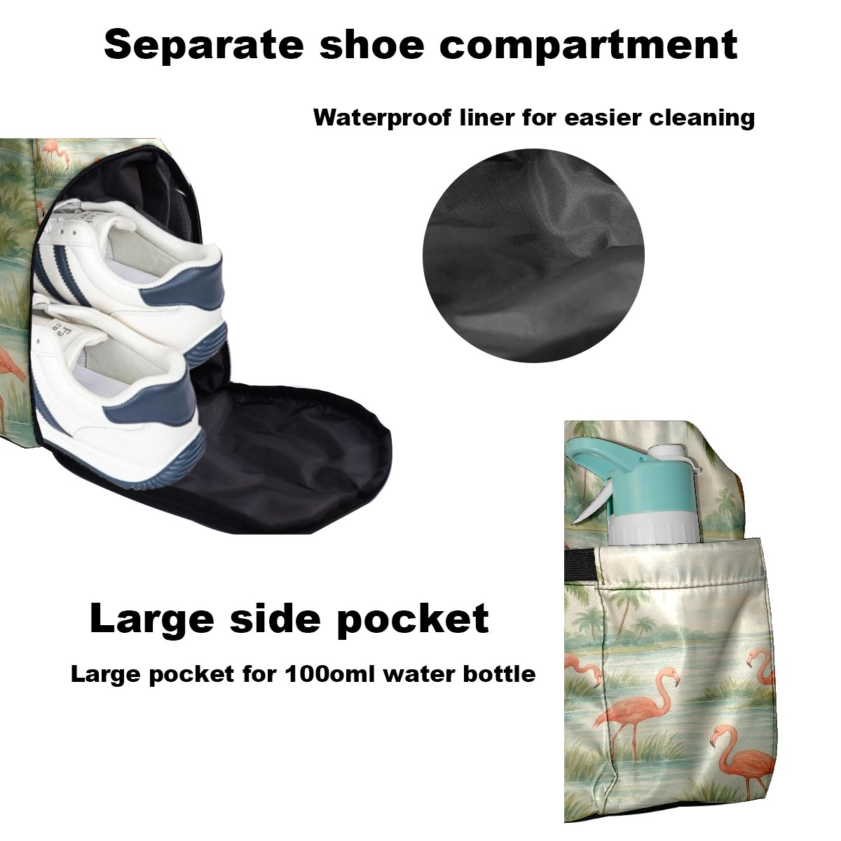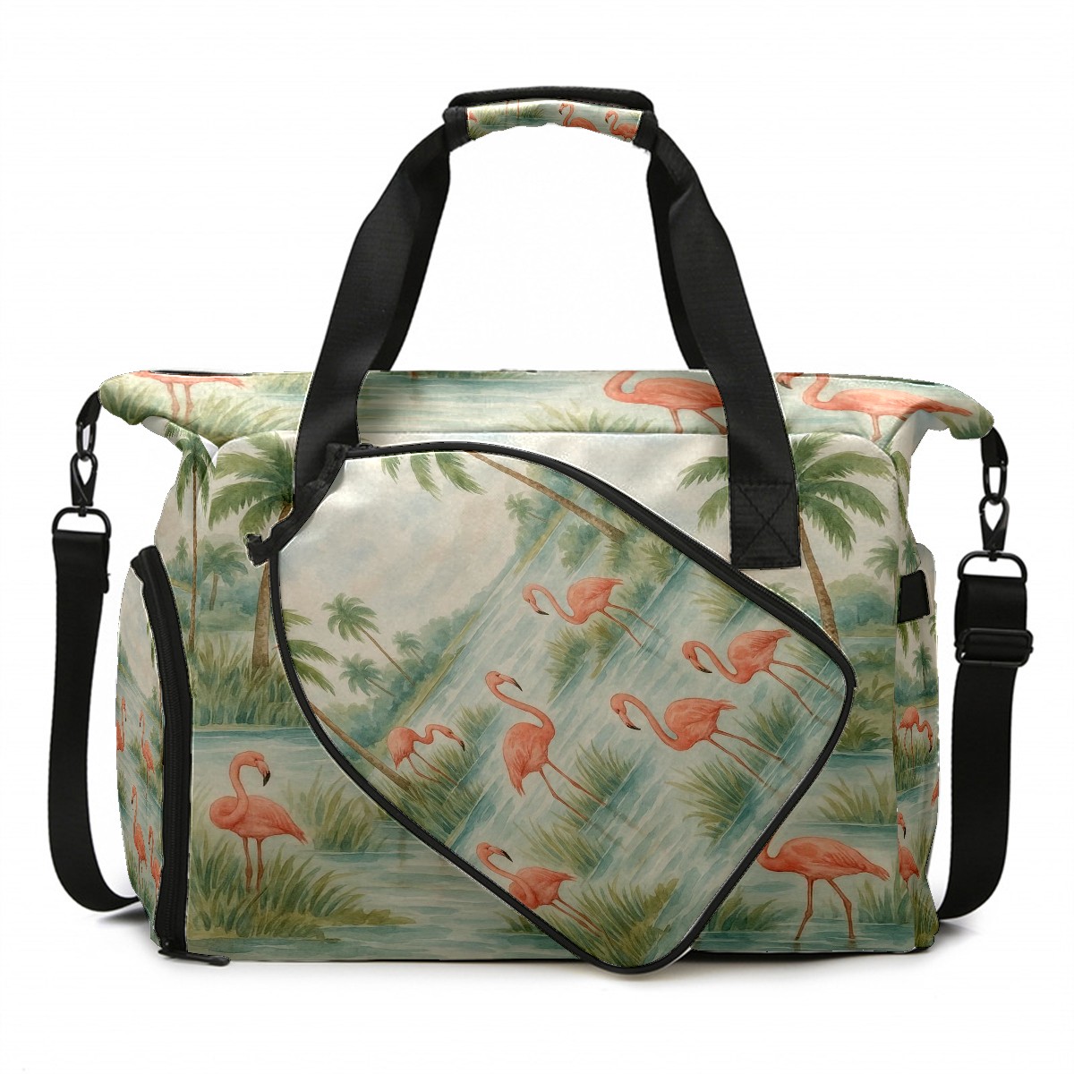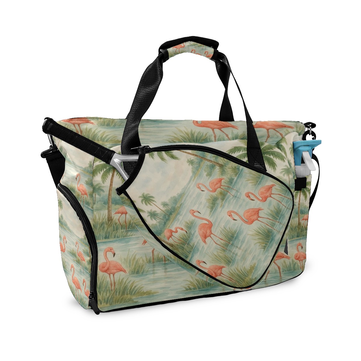 Women's Tennis Bag Large Capacity - Ventilated Shoe Compartment & Waterproof Wet Pocket, Multi-Functional Gym Duffel Bag for Tennis, Yoga, Travel (Beige Flamingos Watercolor)