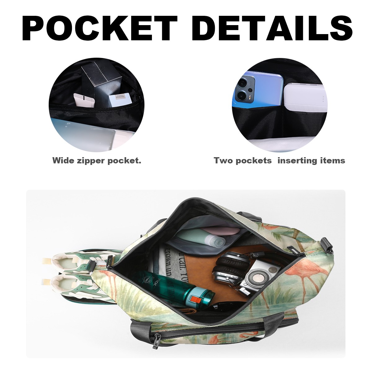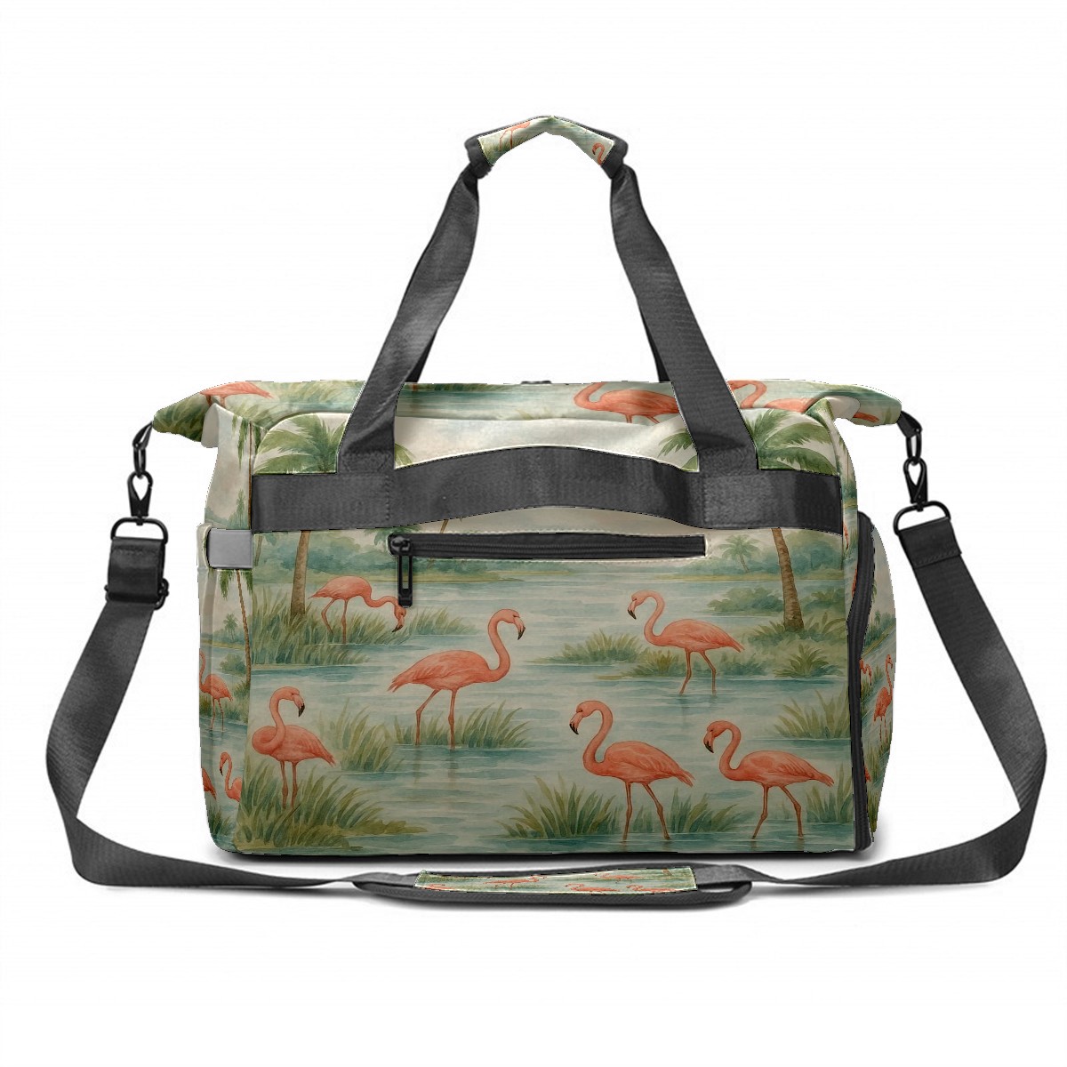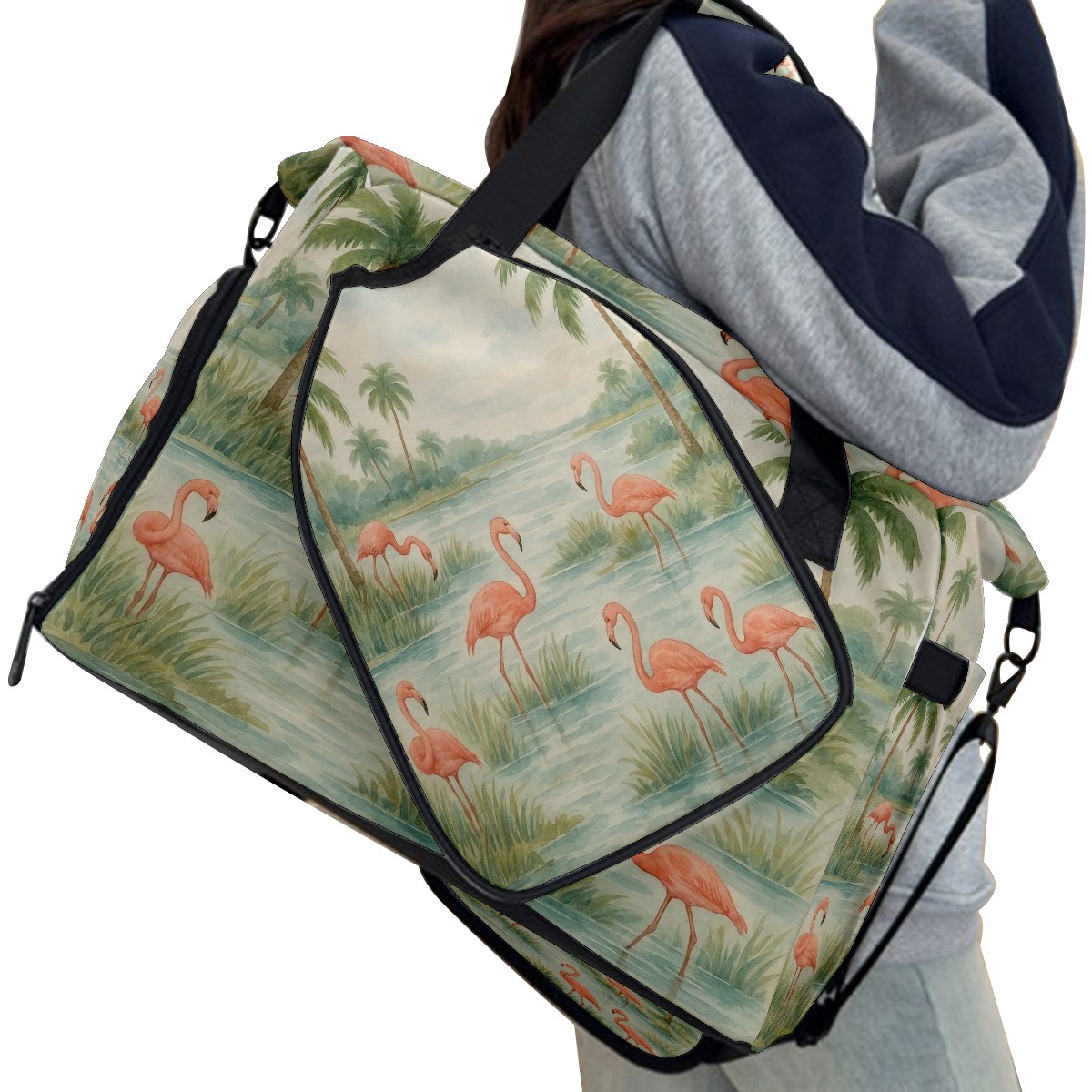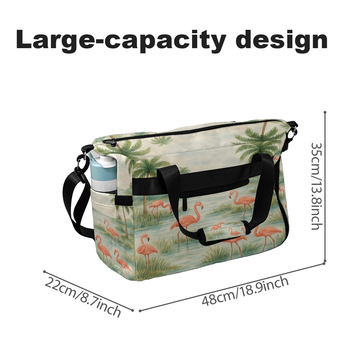 Women's Tennis Bag Large Capacity - Ventilated Shoe Compartment & Waterproof Wet Pocket, Multi-Functional Gym Duffel Bag for Tennis, Yoga, Travel (Beige Flamingos Watercolor)