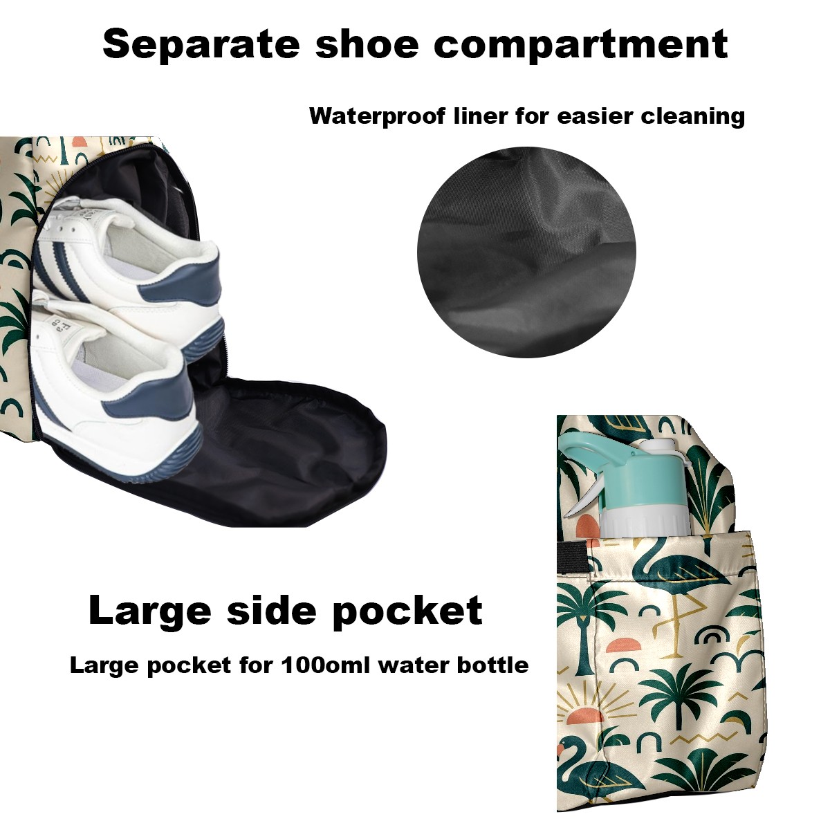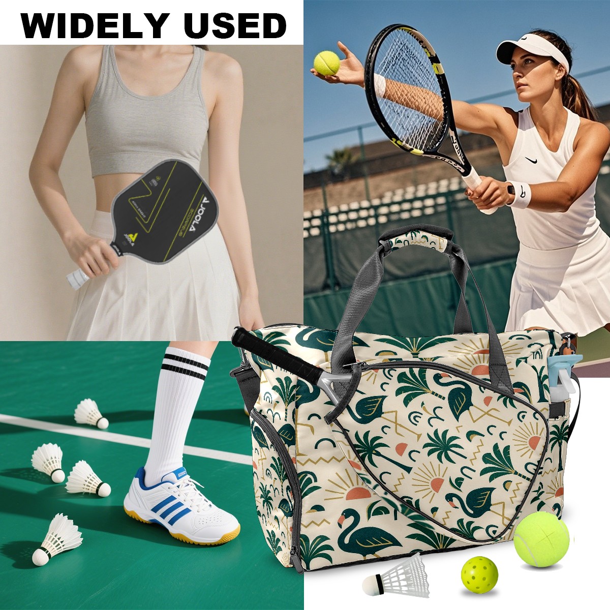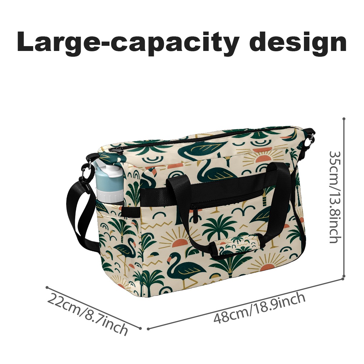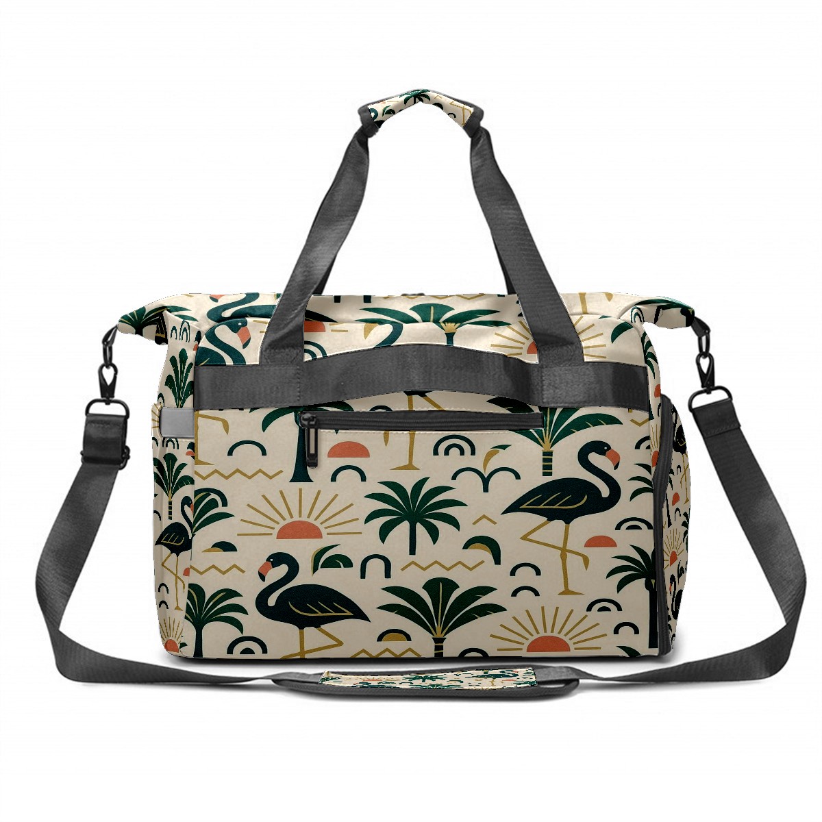 Women's Tennis Bag Large Capacity - Ventilated Shoe Compartment & Waterproof Wet Pocket, Multi-Functional Gym Duffel Bag for Tennis, Yoga, Travel (Green Flamingos Palms)