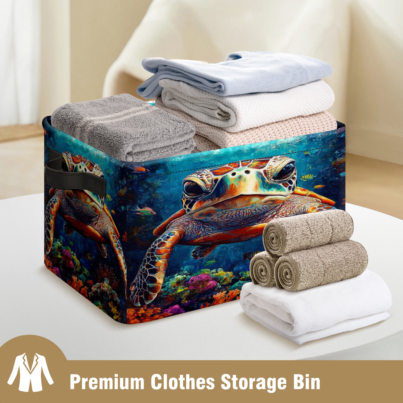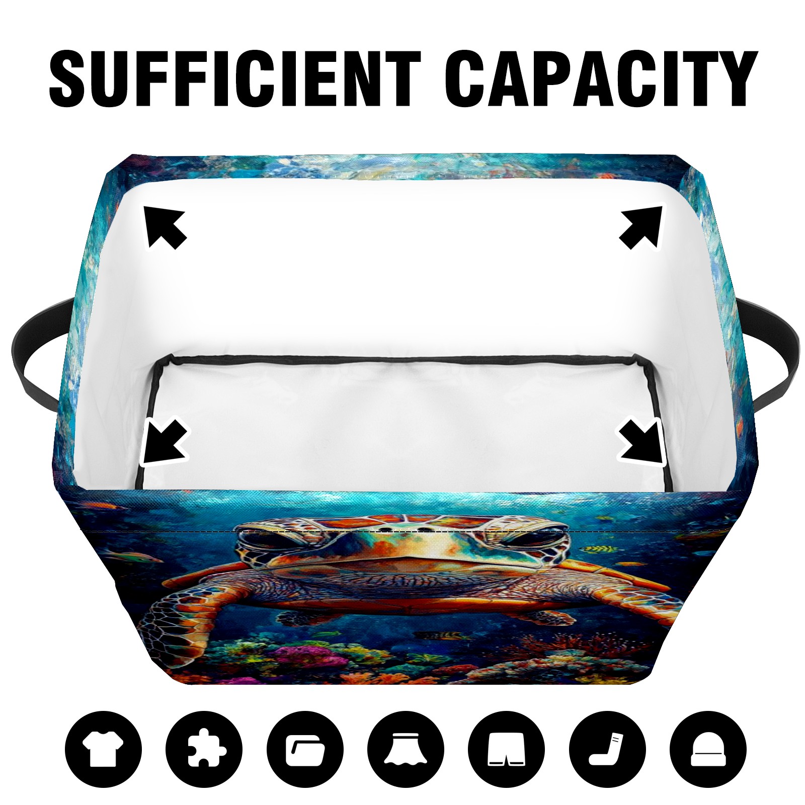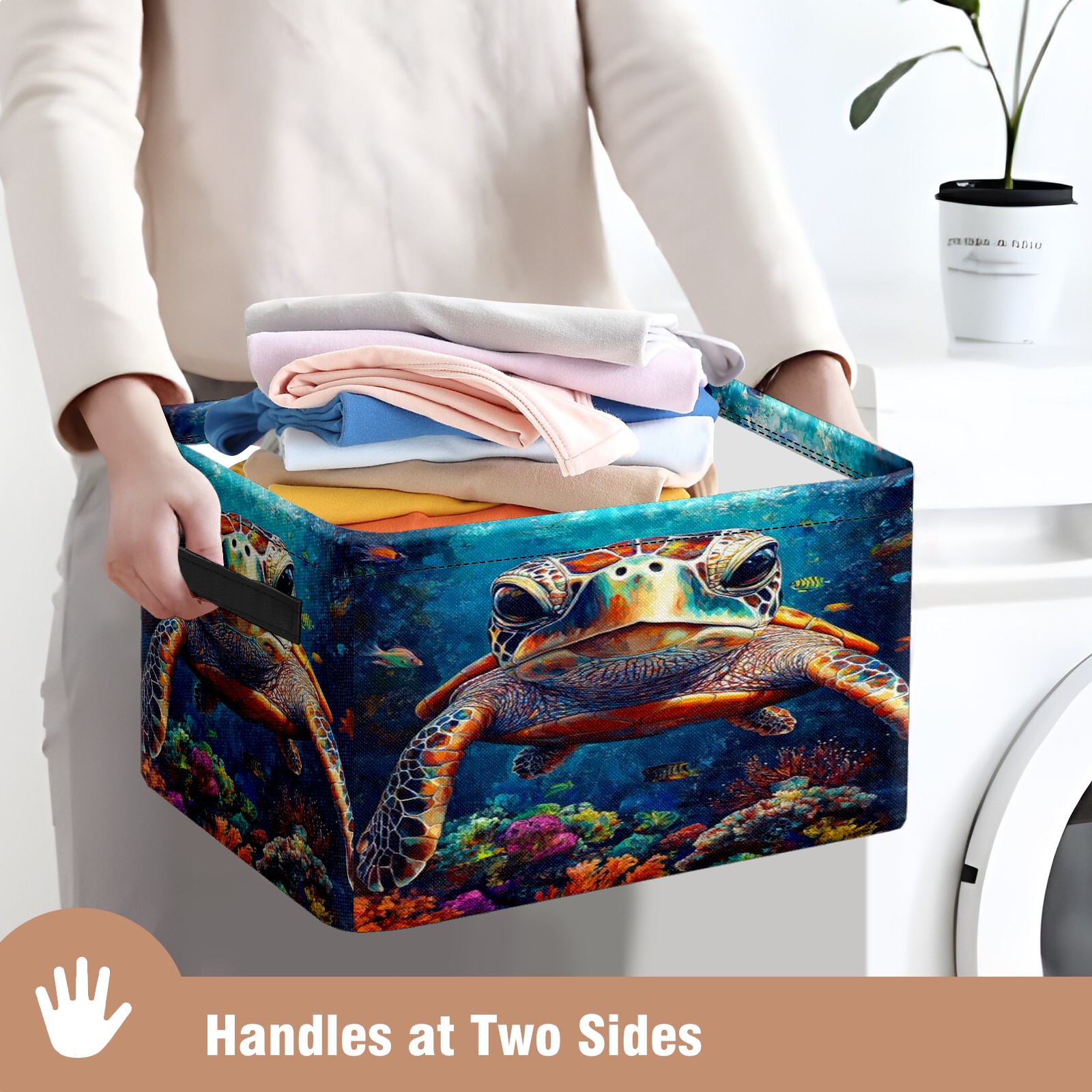 Large Storage Box,Colorful Coral Sea Turtle Foldable Storage Baskets with Handles for Organizing Clothes, Gift Storage, Children's Toys