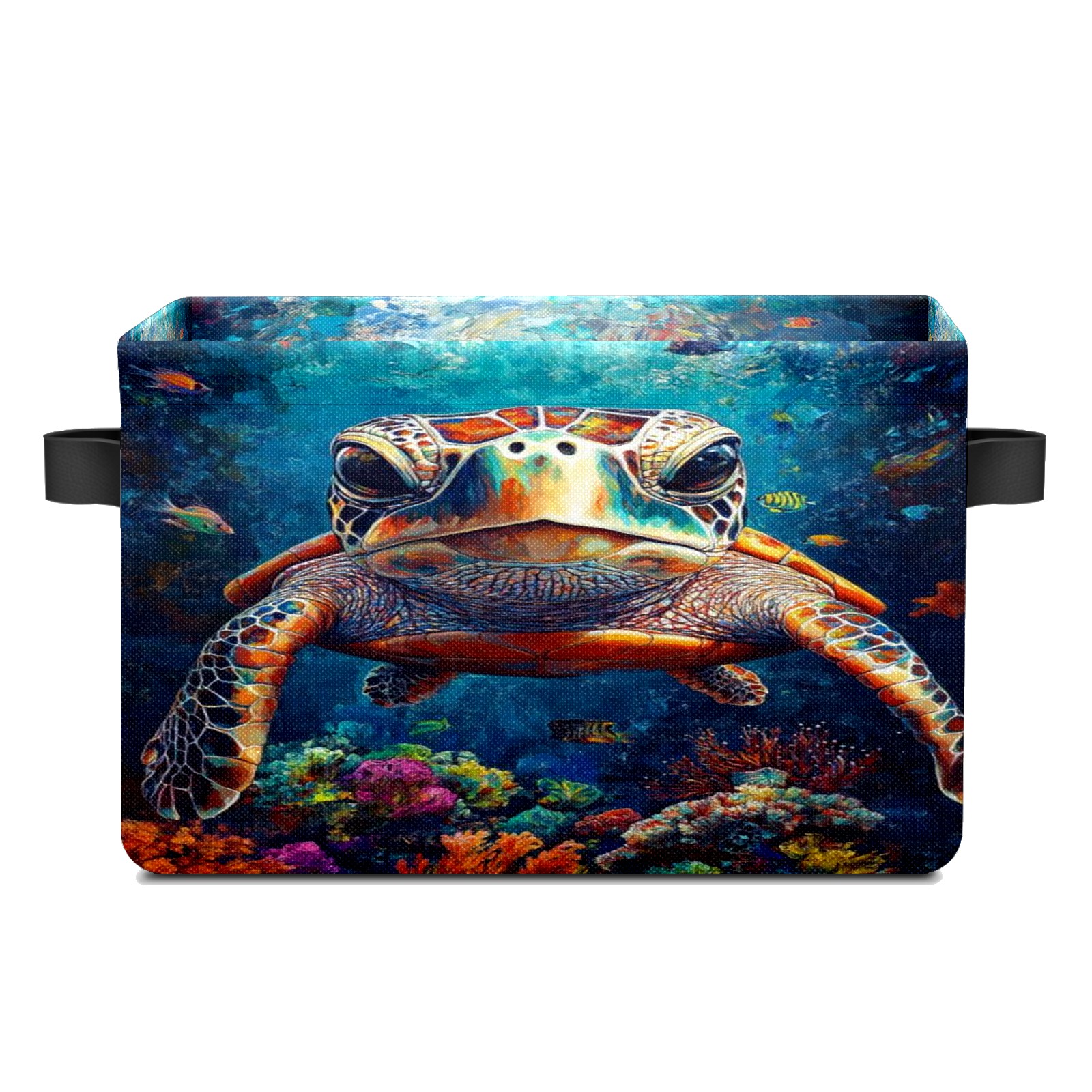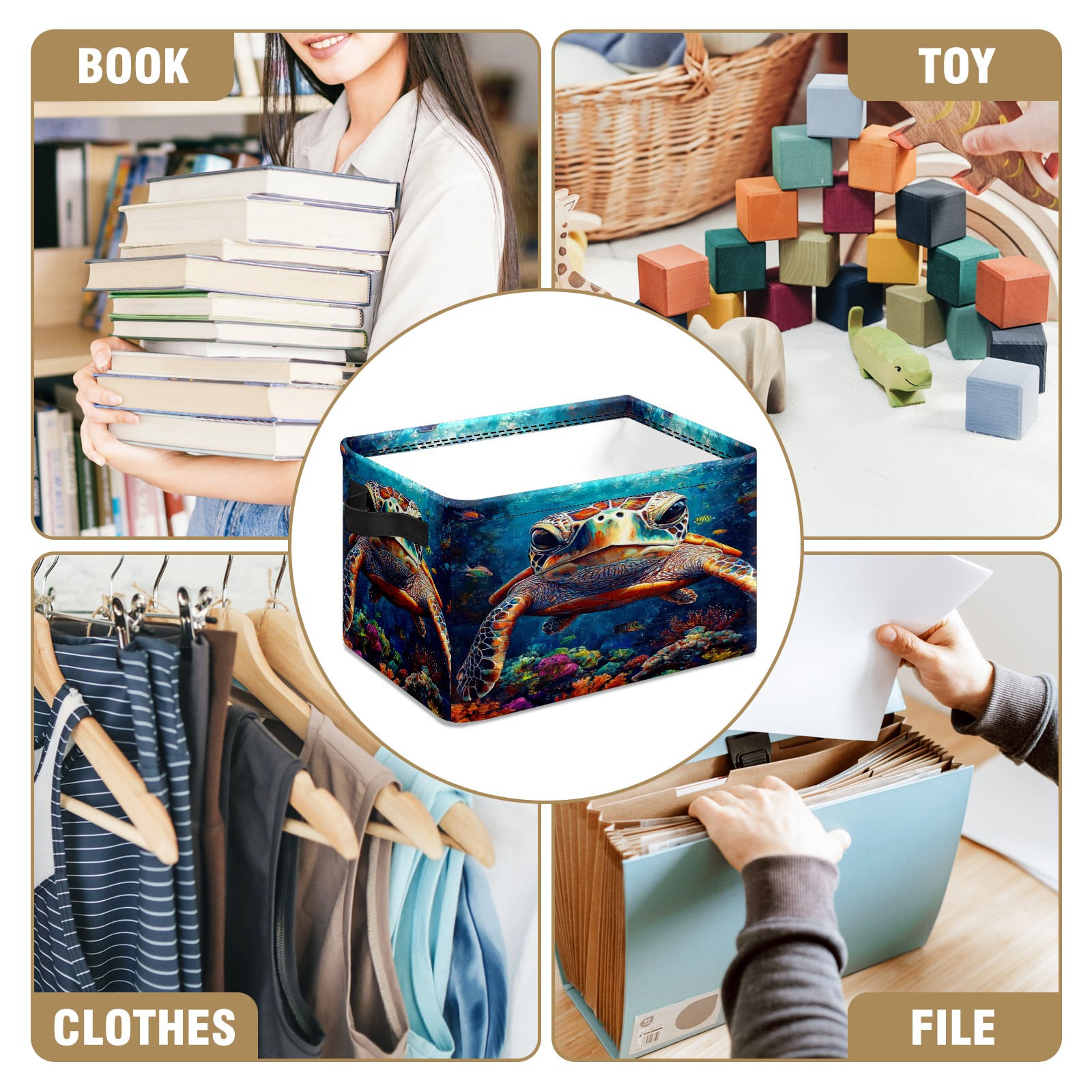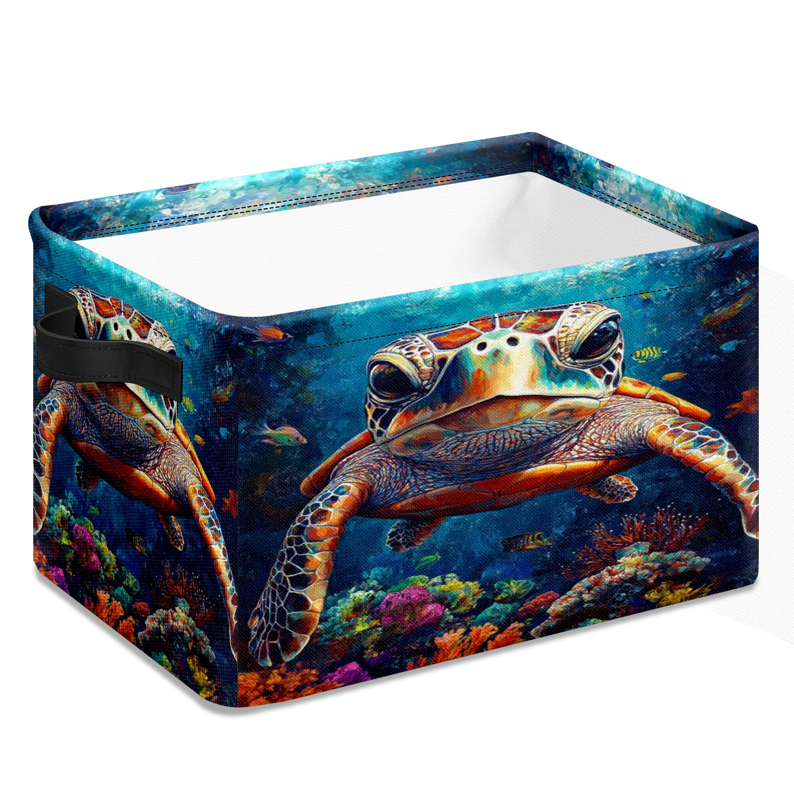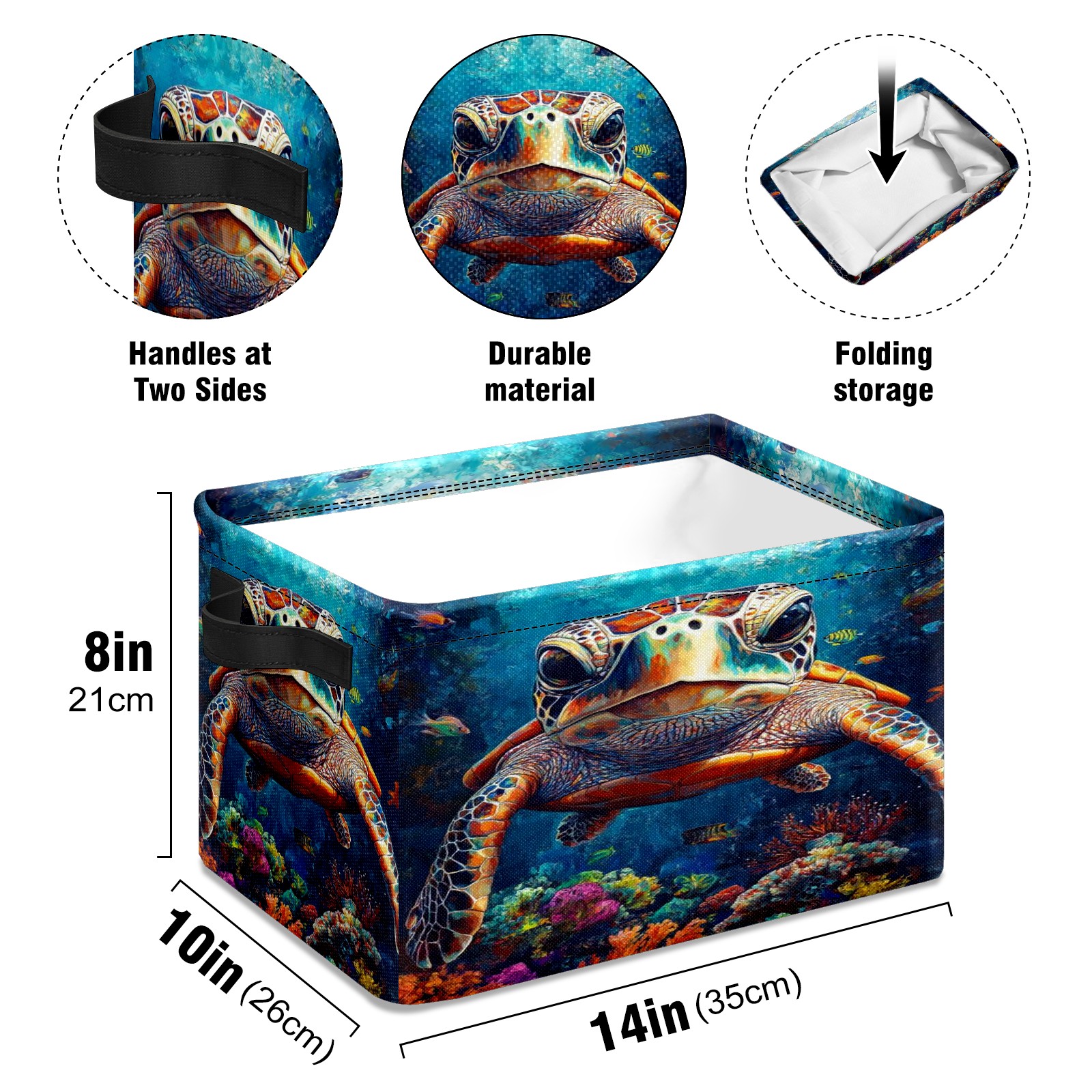 Large Storage Box,Colorful Coral Sea Turtle Foldable Storage Baskets with Handles for Organizing Clothes, Gift Storage, Children's Toys