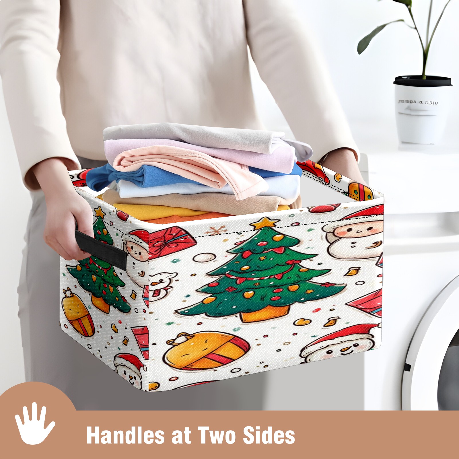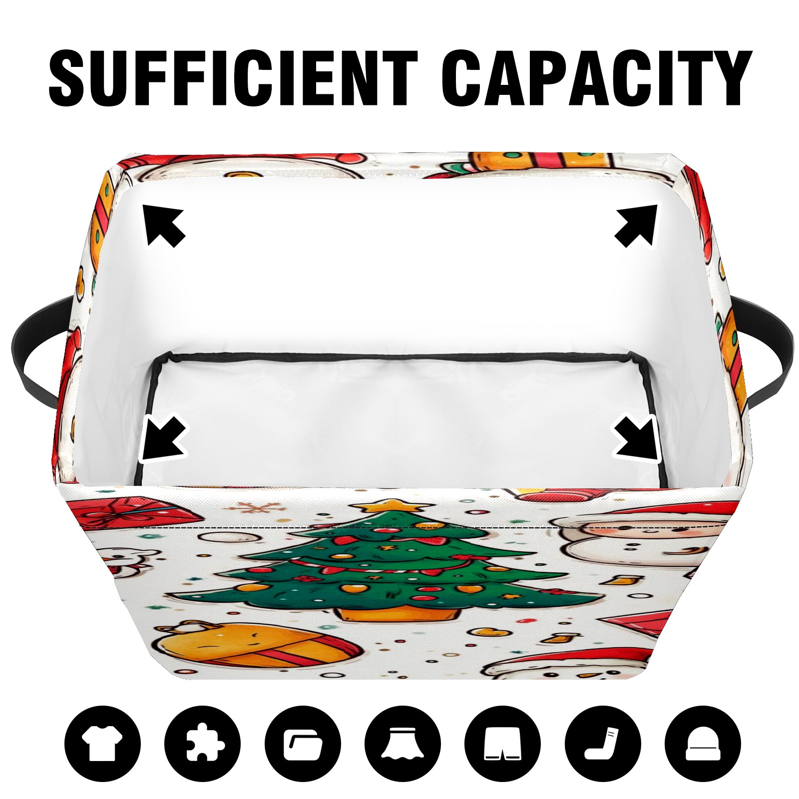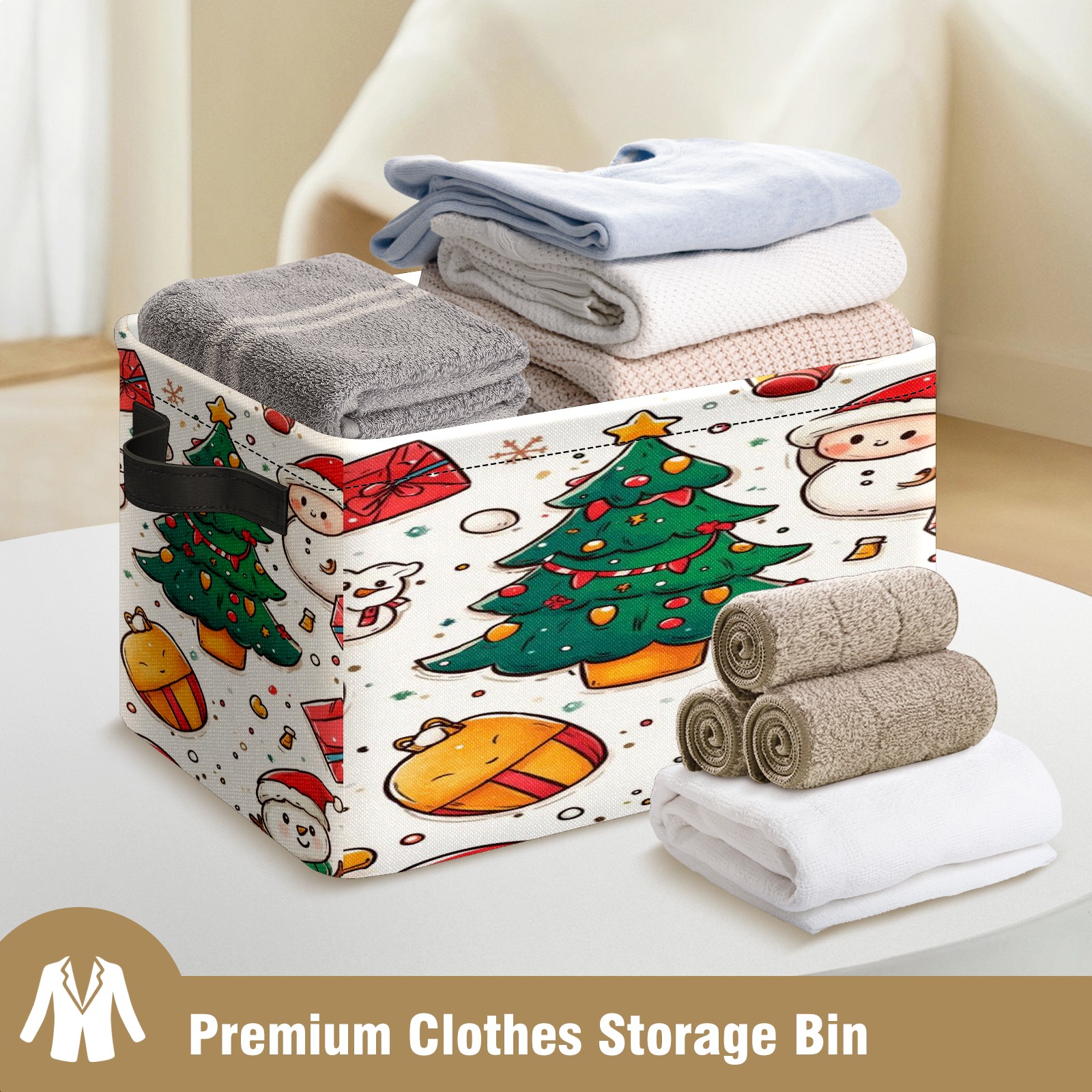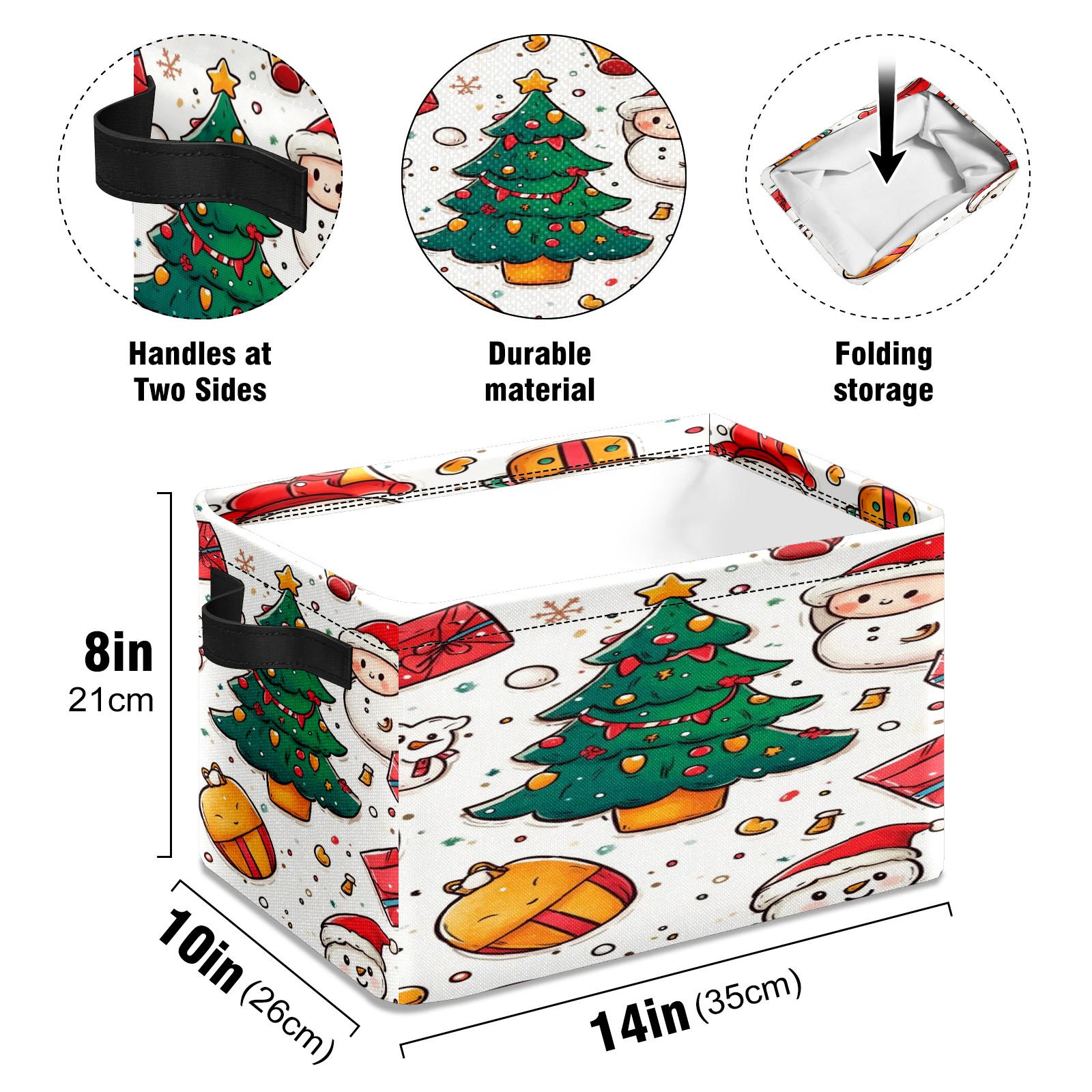 <p>This storage basket can be used for a variety of purposes, including bedroom organization baskets, laundry storage boxes, toy storage boxes, bathroom towel cube storage boxes, toilet storage containers, book and magazine storage boxes, holiday decoration storage cubes, living room storage, etc. The spacious size of 10×14×8 inches gives it ample storage capacity. This Christmas-themed storage basket is a great household item that combines practicality with a festive atmosphere! Made of easy-to-clean Oxford cloth, daily dirt can be cleaned by gently wiping with mild soapy water. With a sturdy metal frame and hard bottom support, it ensures a crisp shape when stored, but also needs to avoid machine washing to extend its service life. It is lightweight and flat after folding, taking up no space</p>