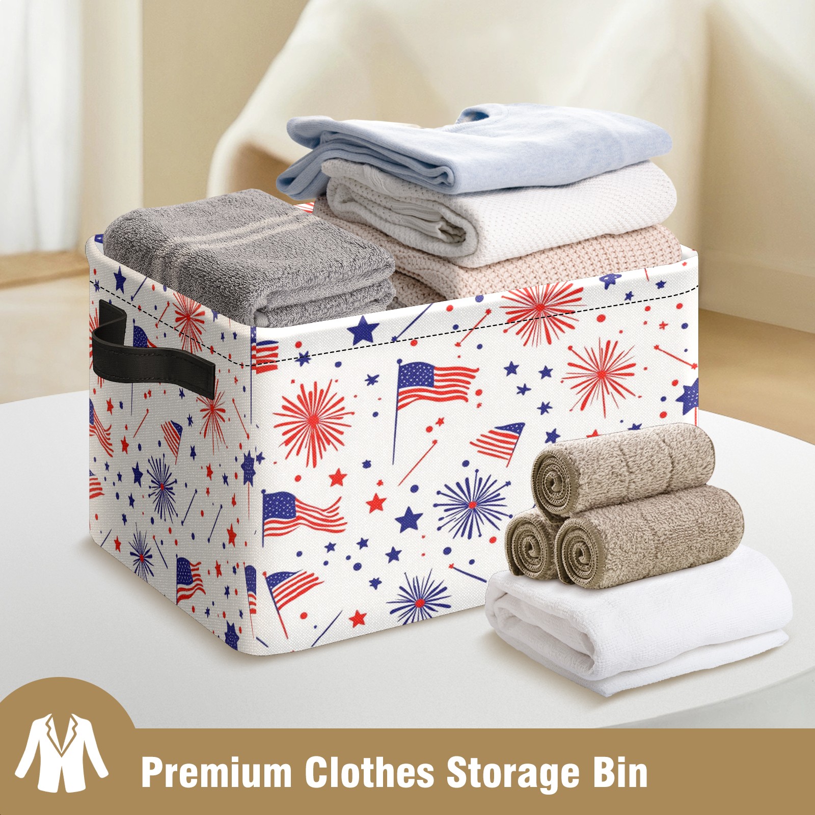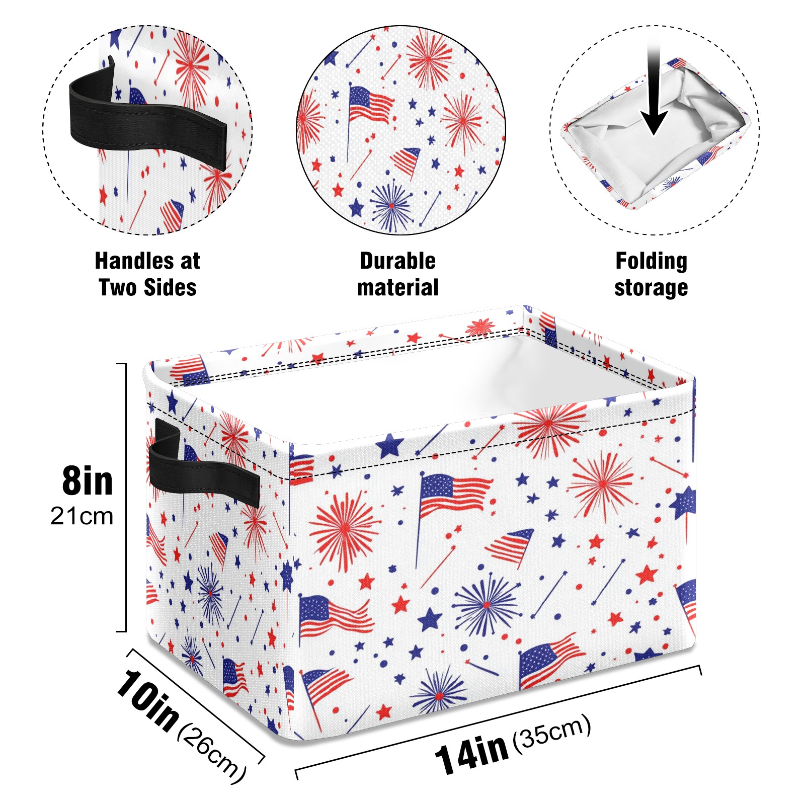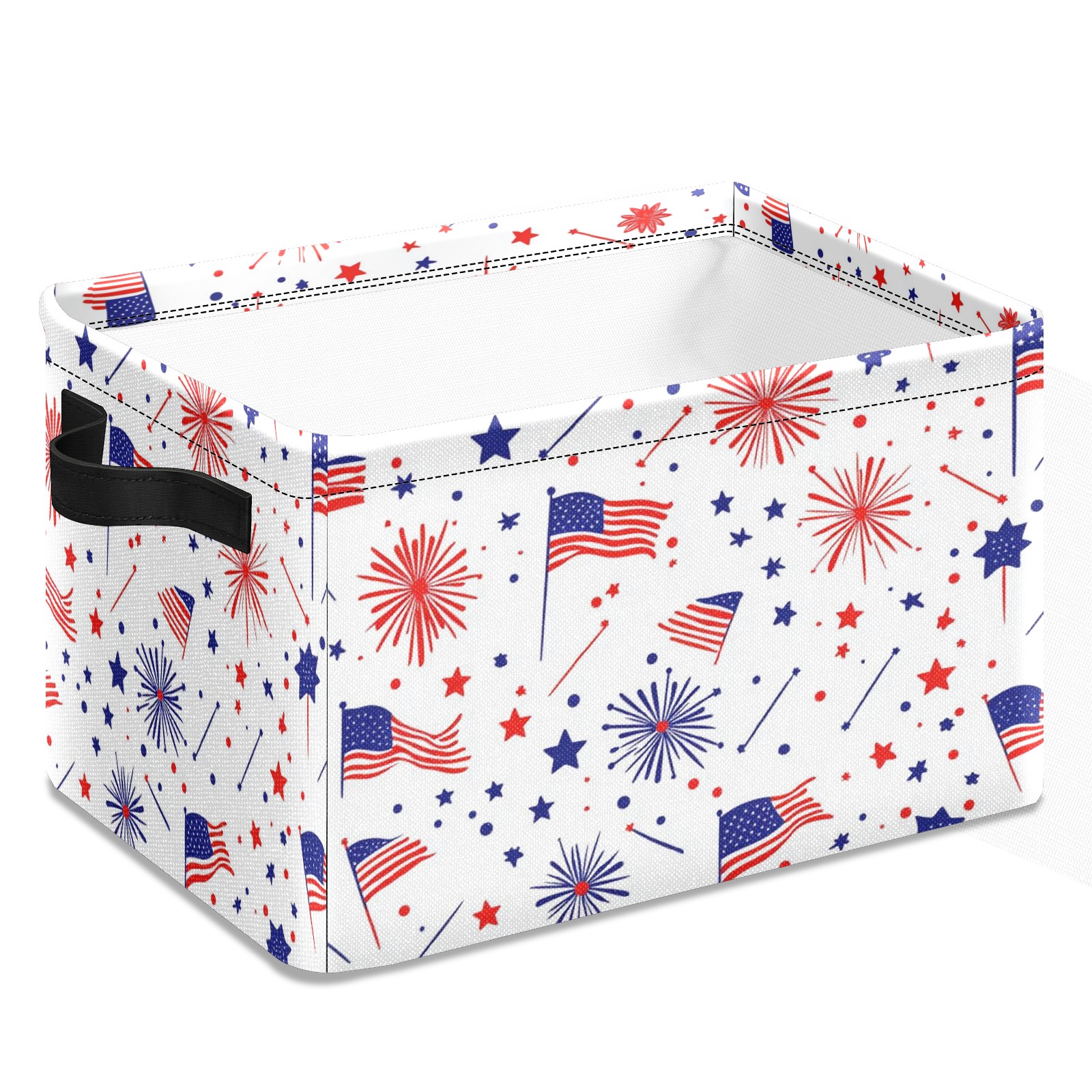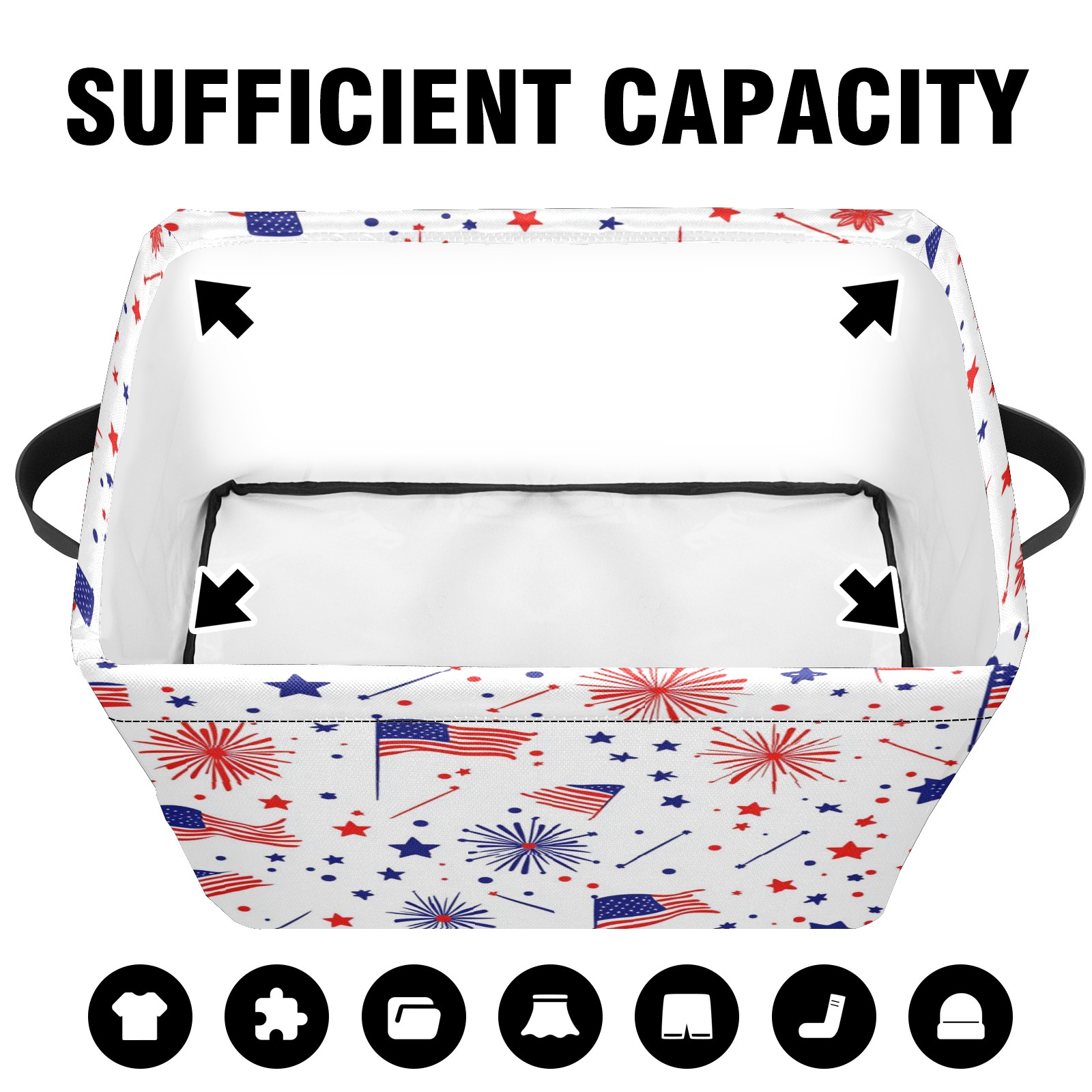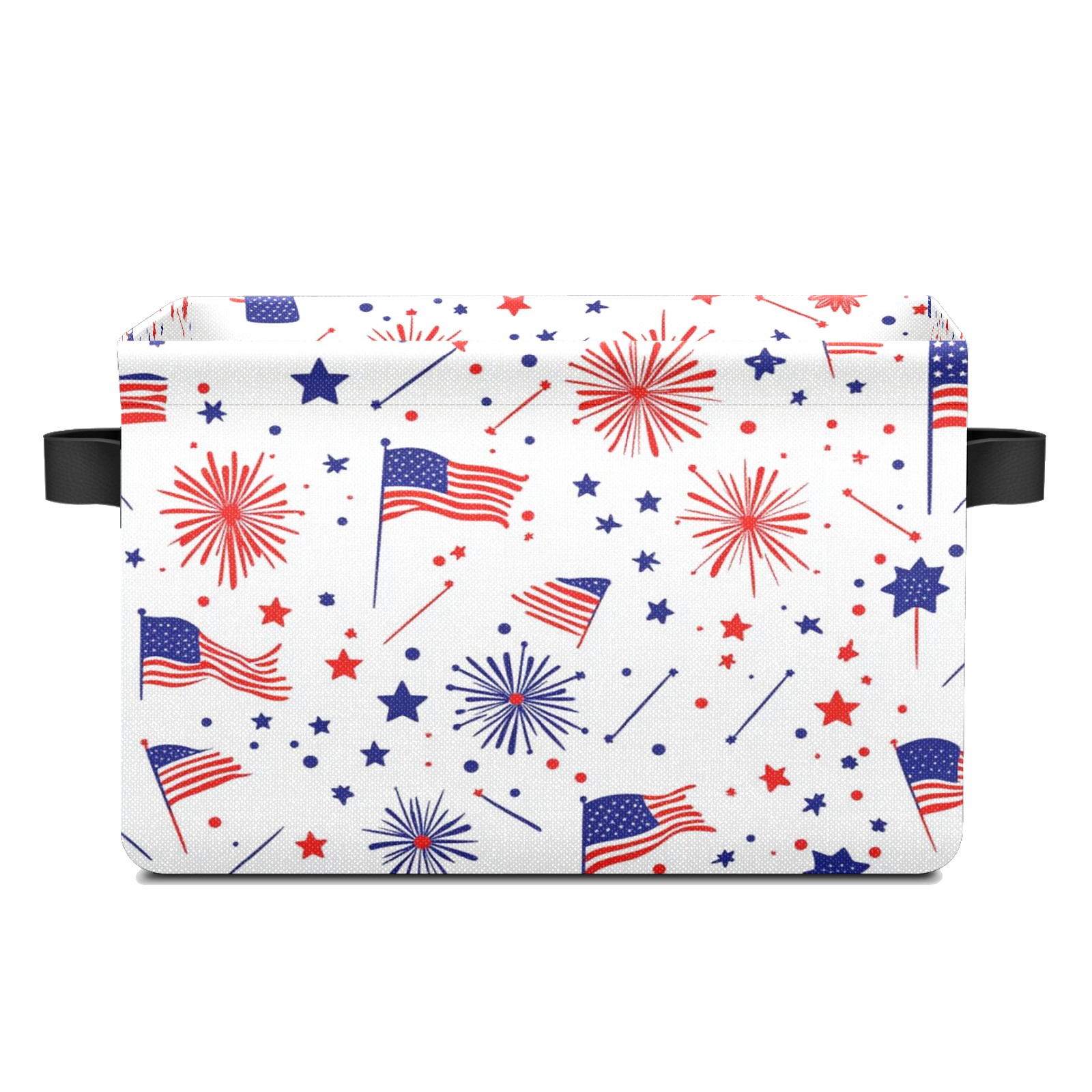 Large Storage Box,USA Independence Day Fireworks And Flags Foldable Storage Baskets with Handles for Organizing Clothes, Gift Storage, Children's Toys