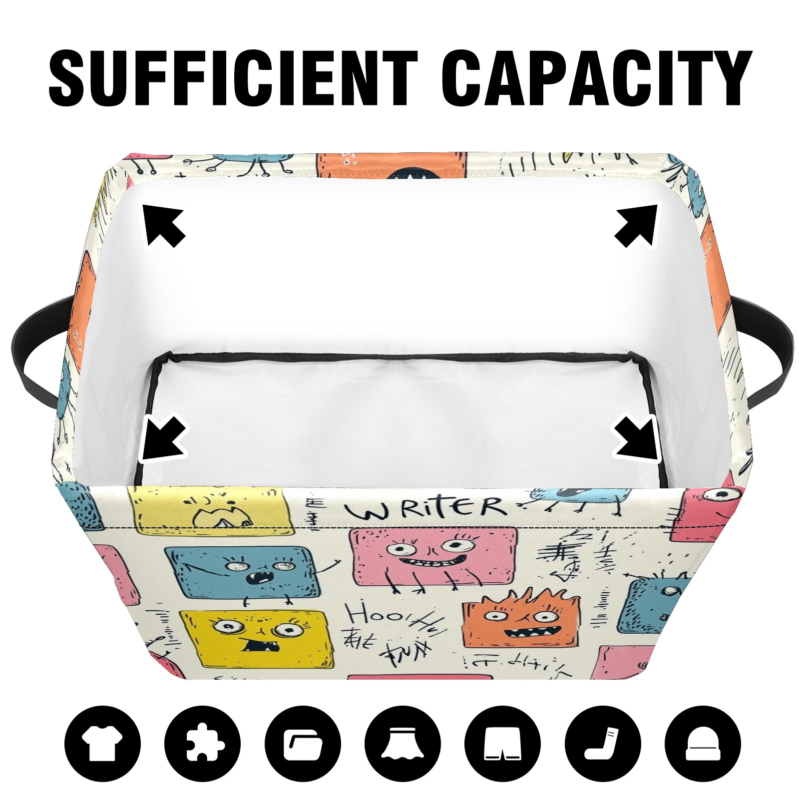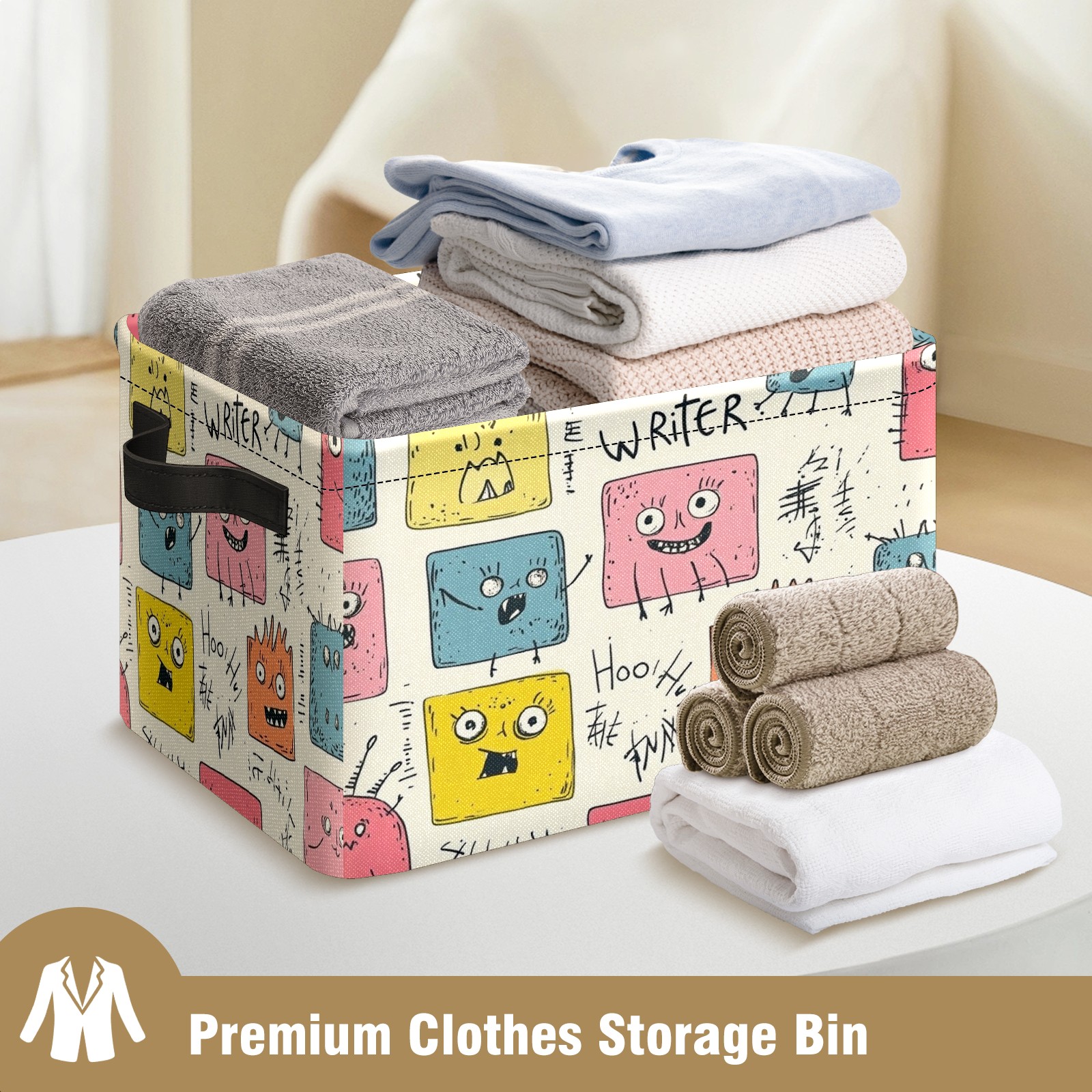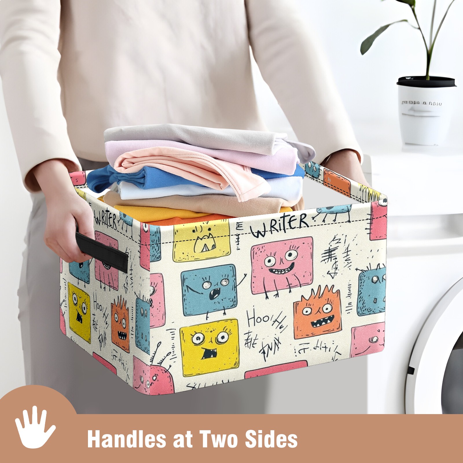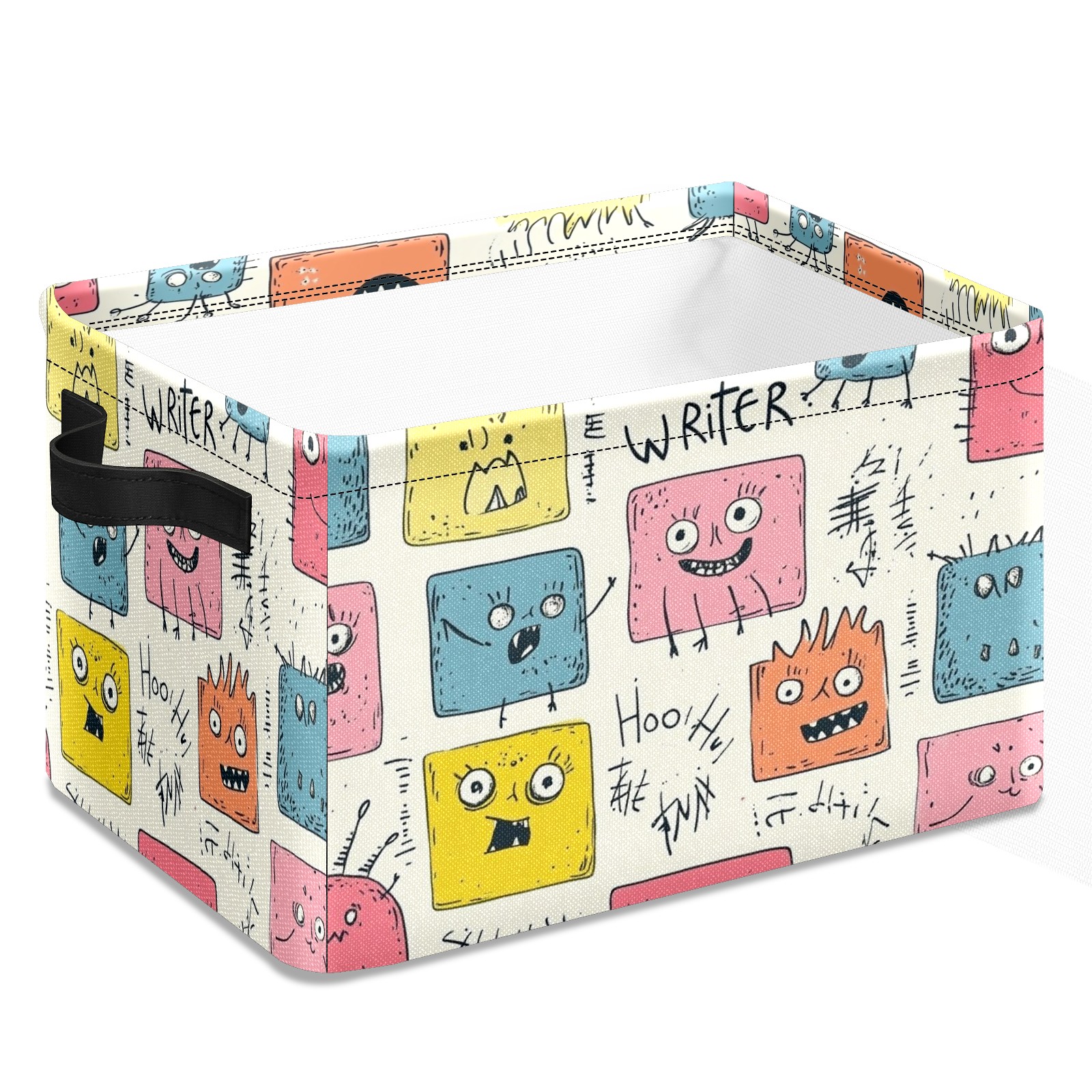 Large Storage Box,Quirky Block Monster Pattern Foldable Storage Baskets with Handles for Organizing Clothes, Gift Storage, Children's Toys