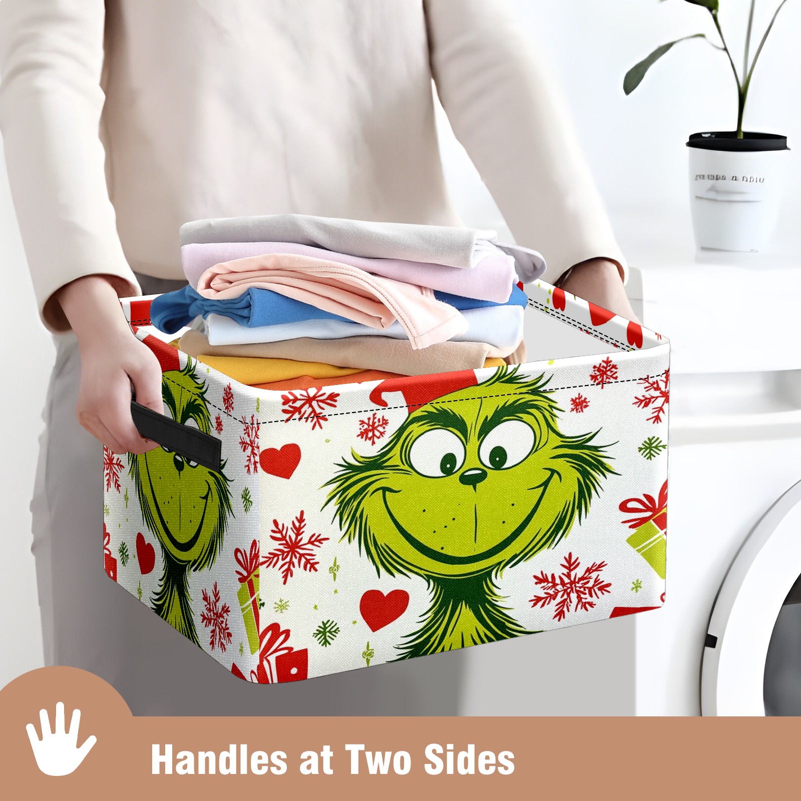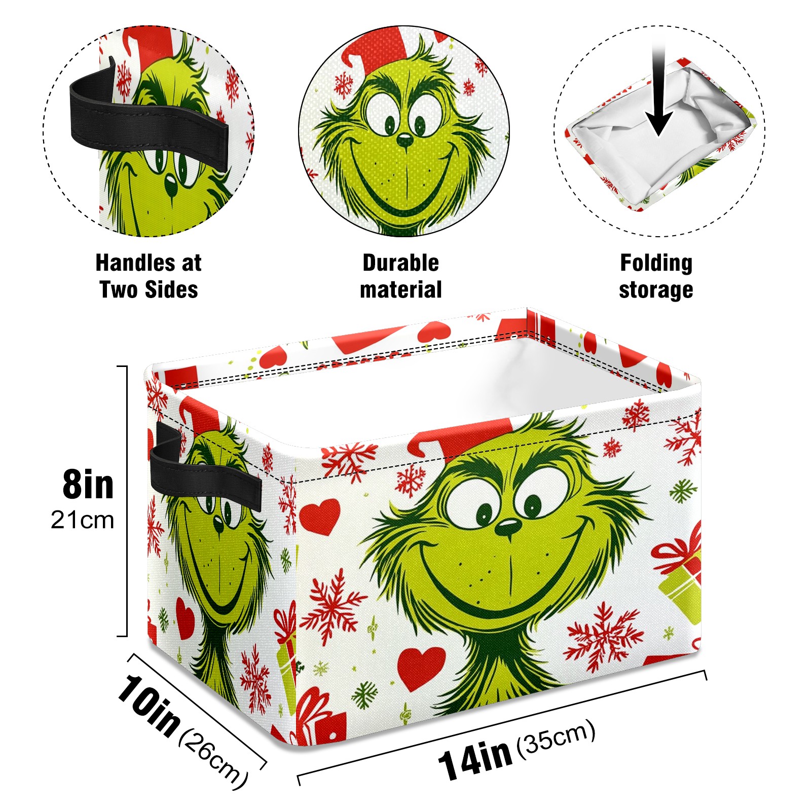 Large Storage Box,Christmas Grinch Foldable Storage Baskets with Handles for Organizing Clothes, Gift Storage, Children's Toys