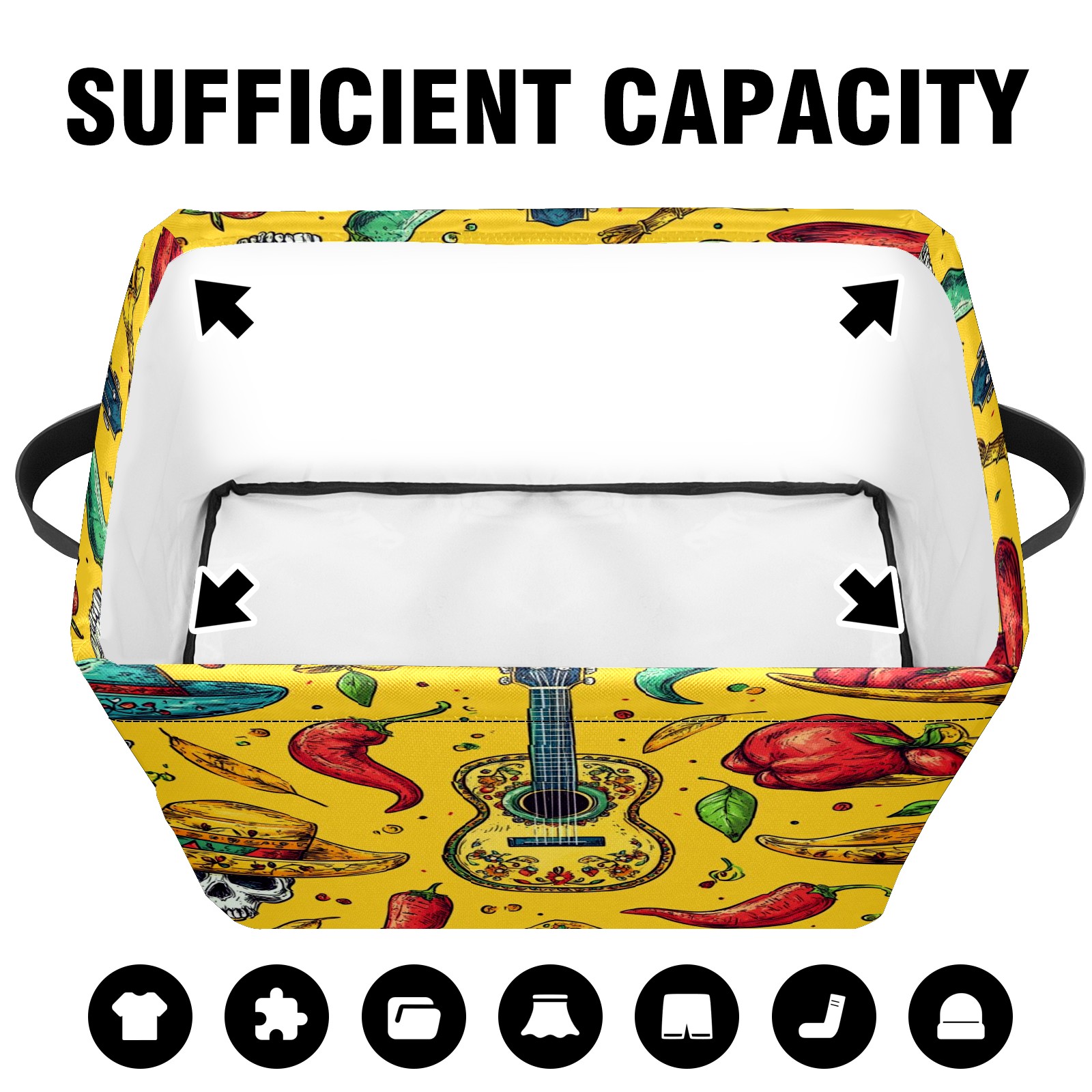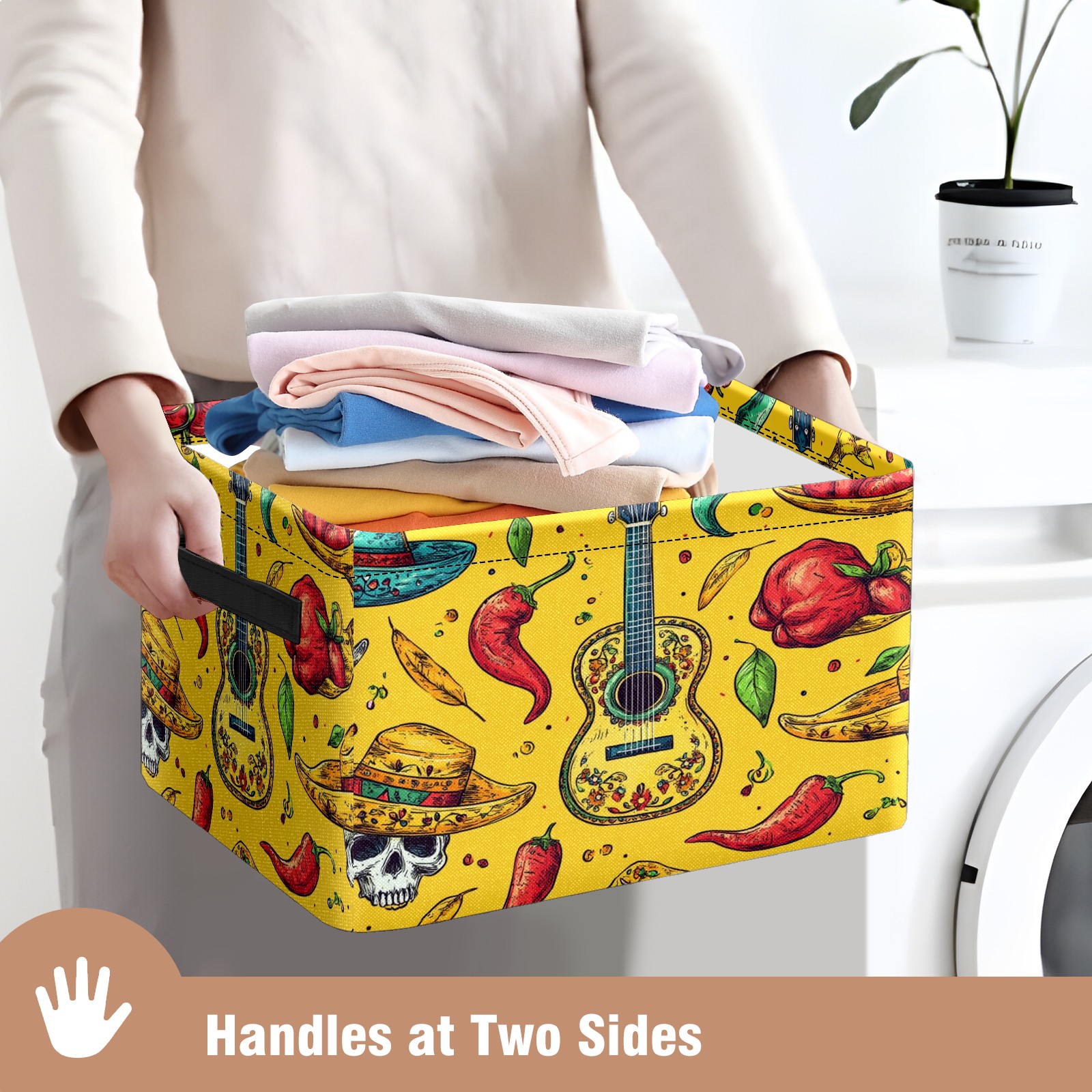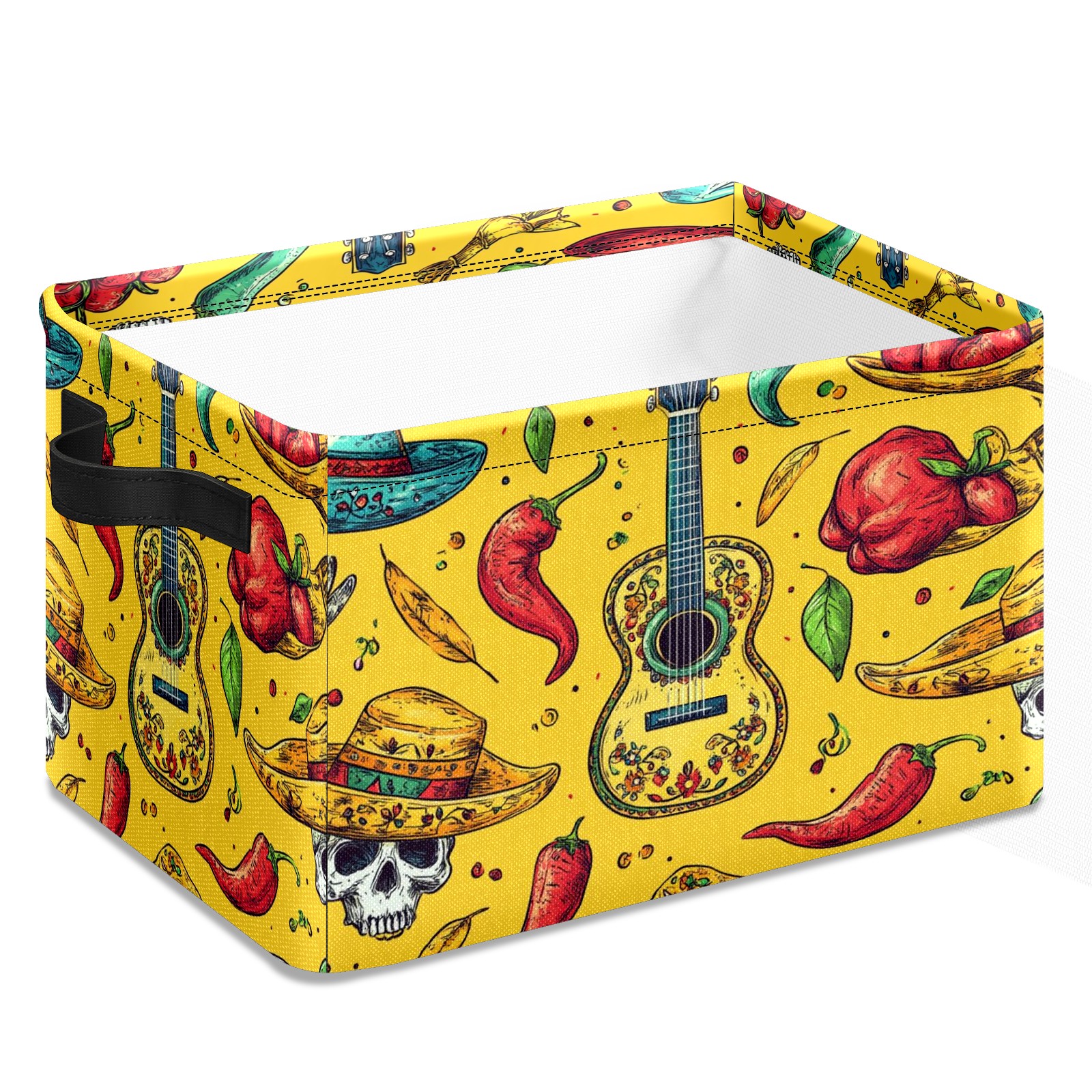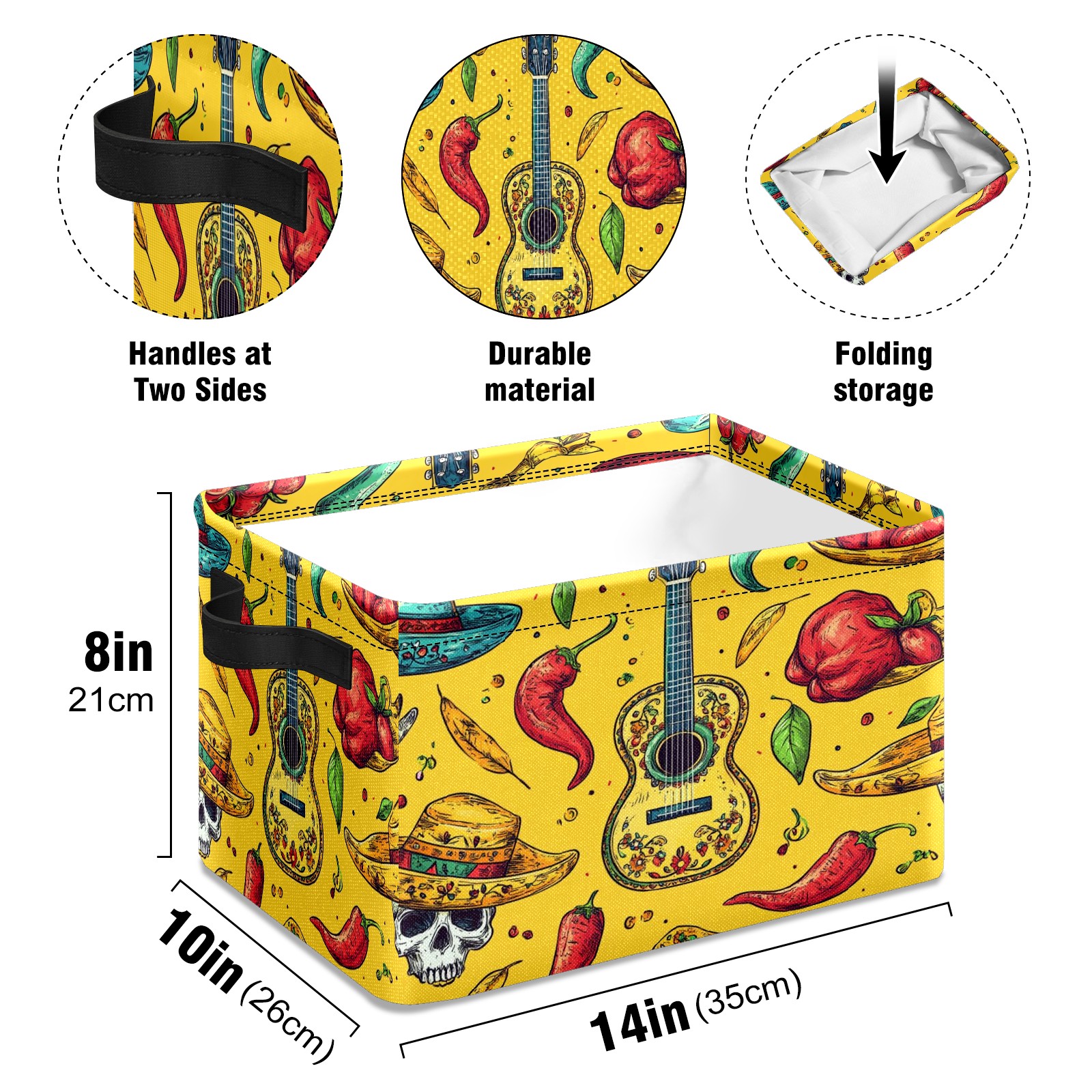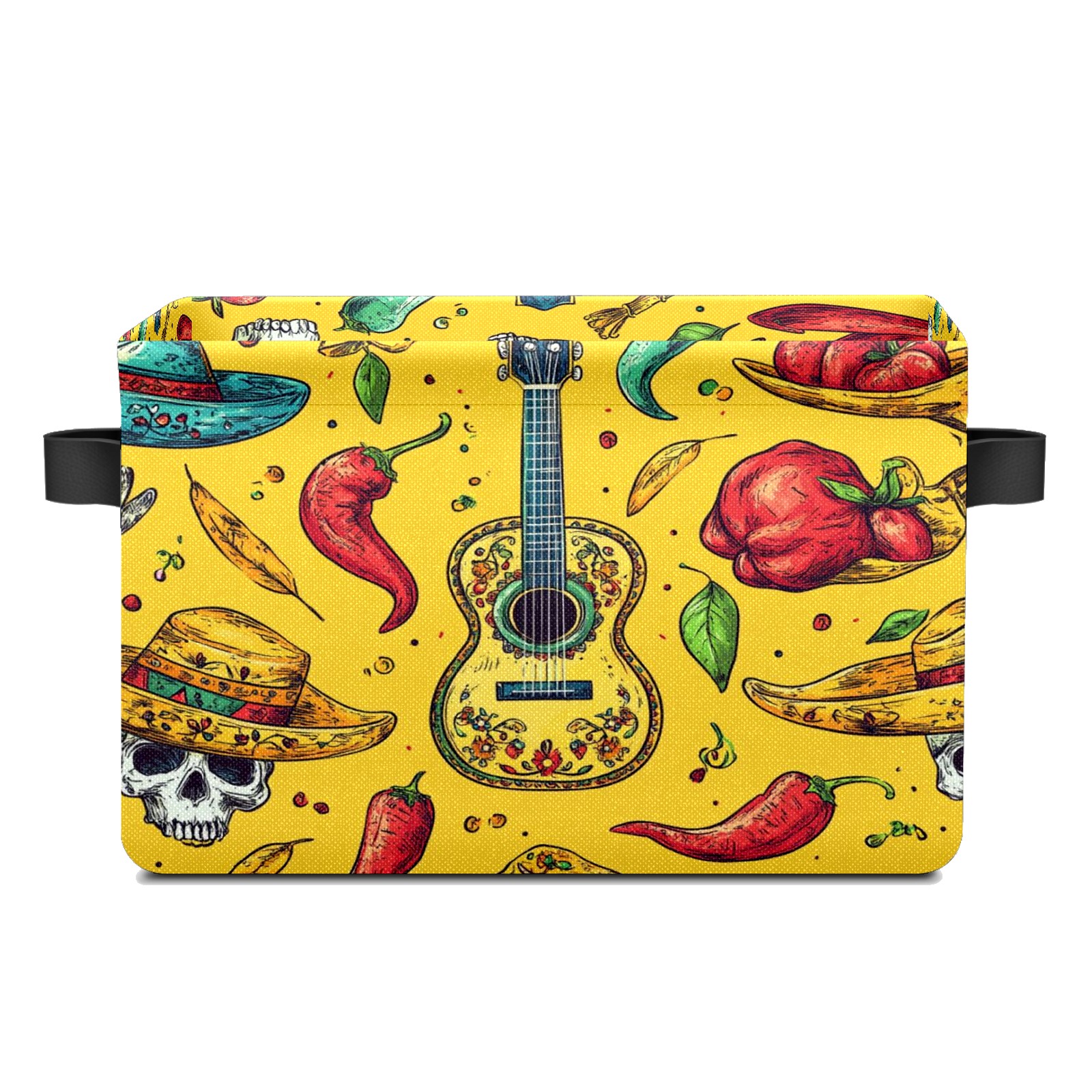 Large Storage Box,Mexican Style Guitar Chili Pattern Foldable Storage Baskets with Handles for Organizing Clothes, Gift Storage, Children's Toys