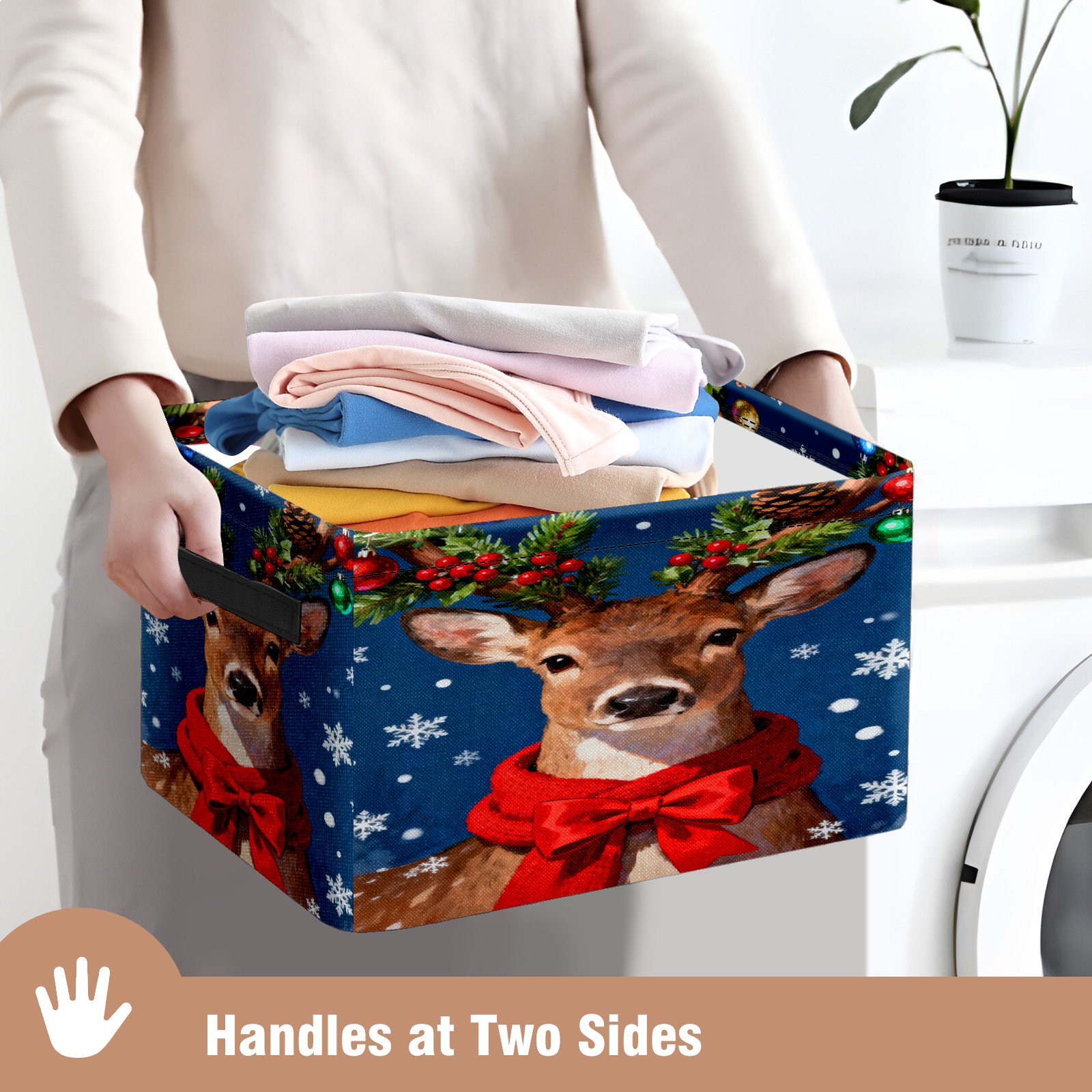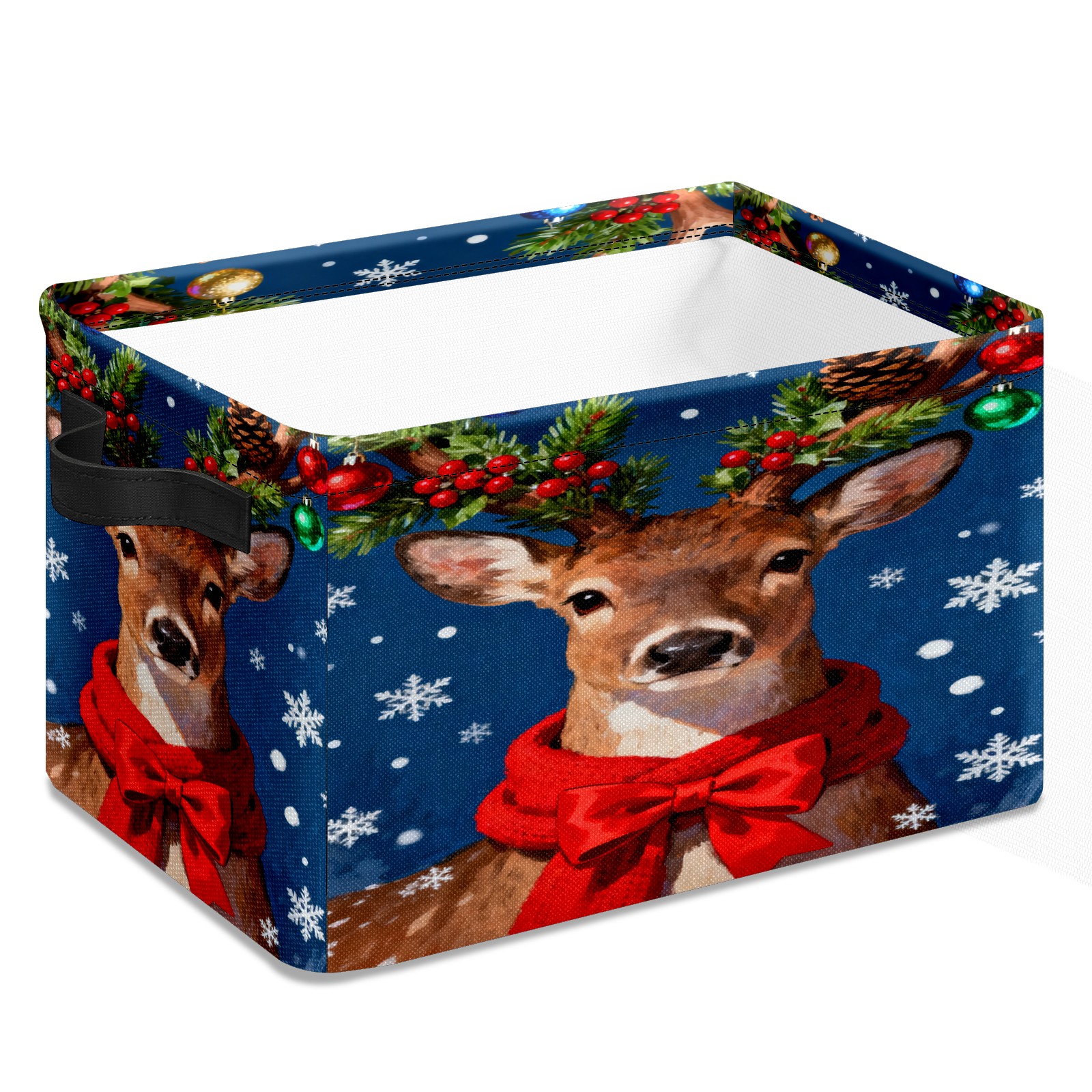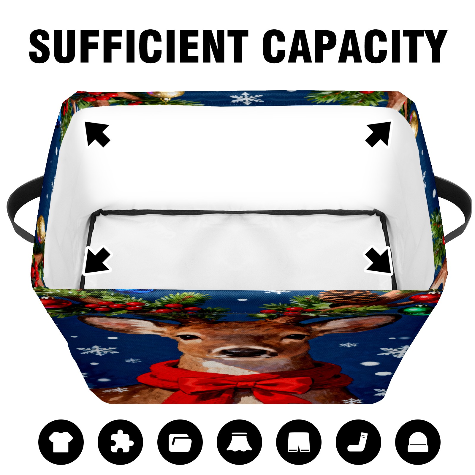 Large Storage Box,Christmas Decorated Deer Pattern Foldable Storage Baskets with Handles for Organizing Clothes, Gift Storage, Children's Toys
