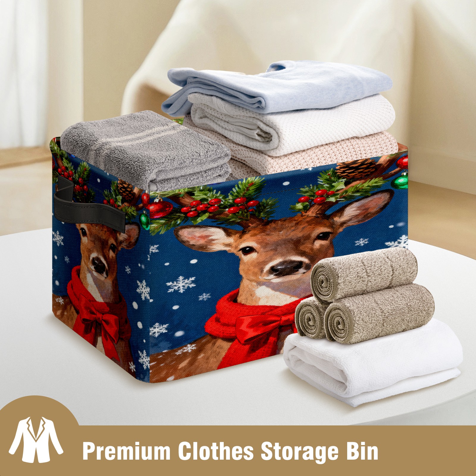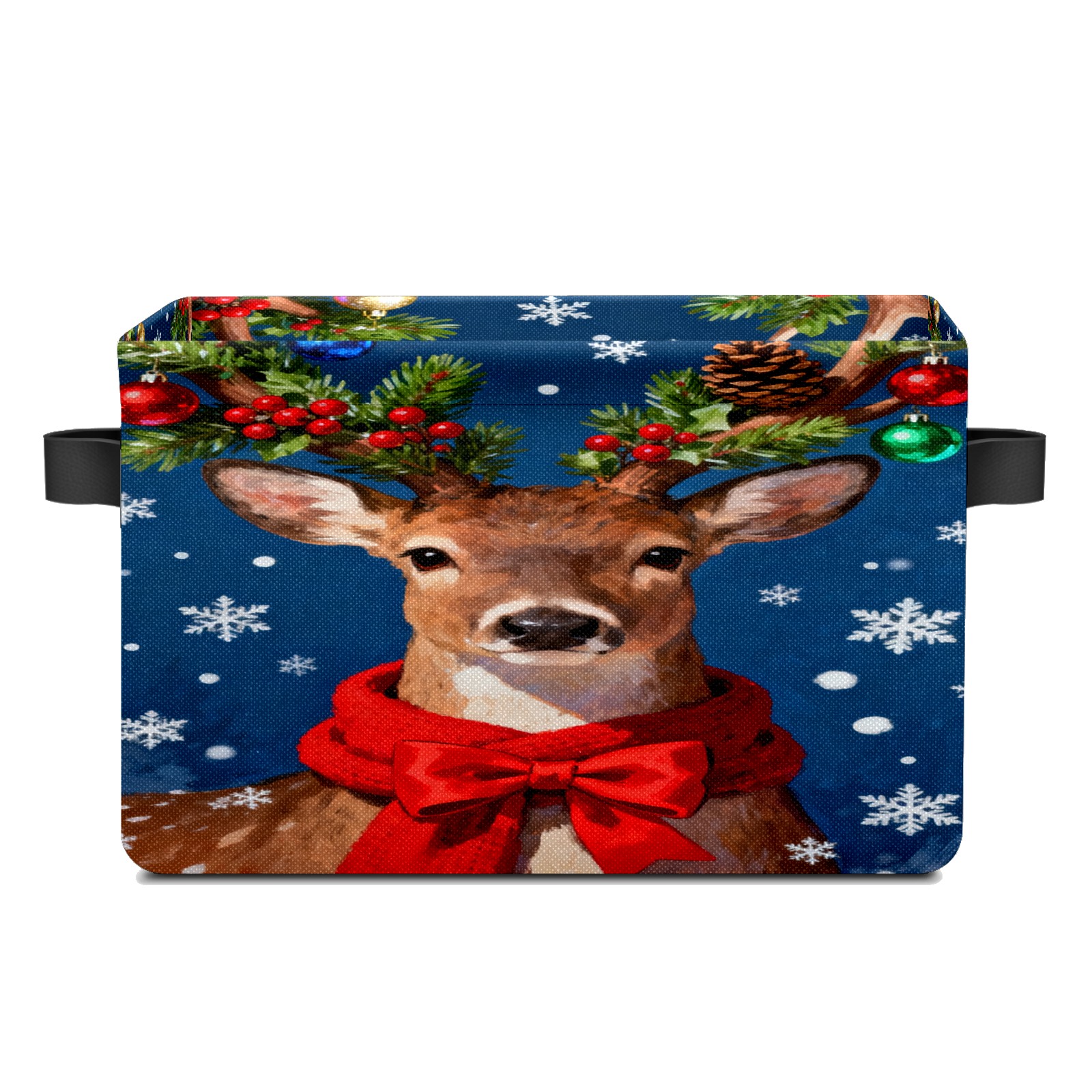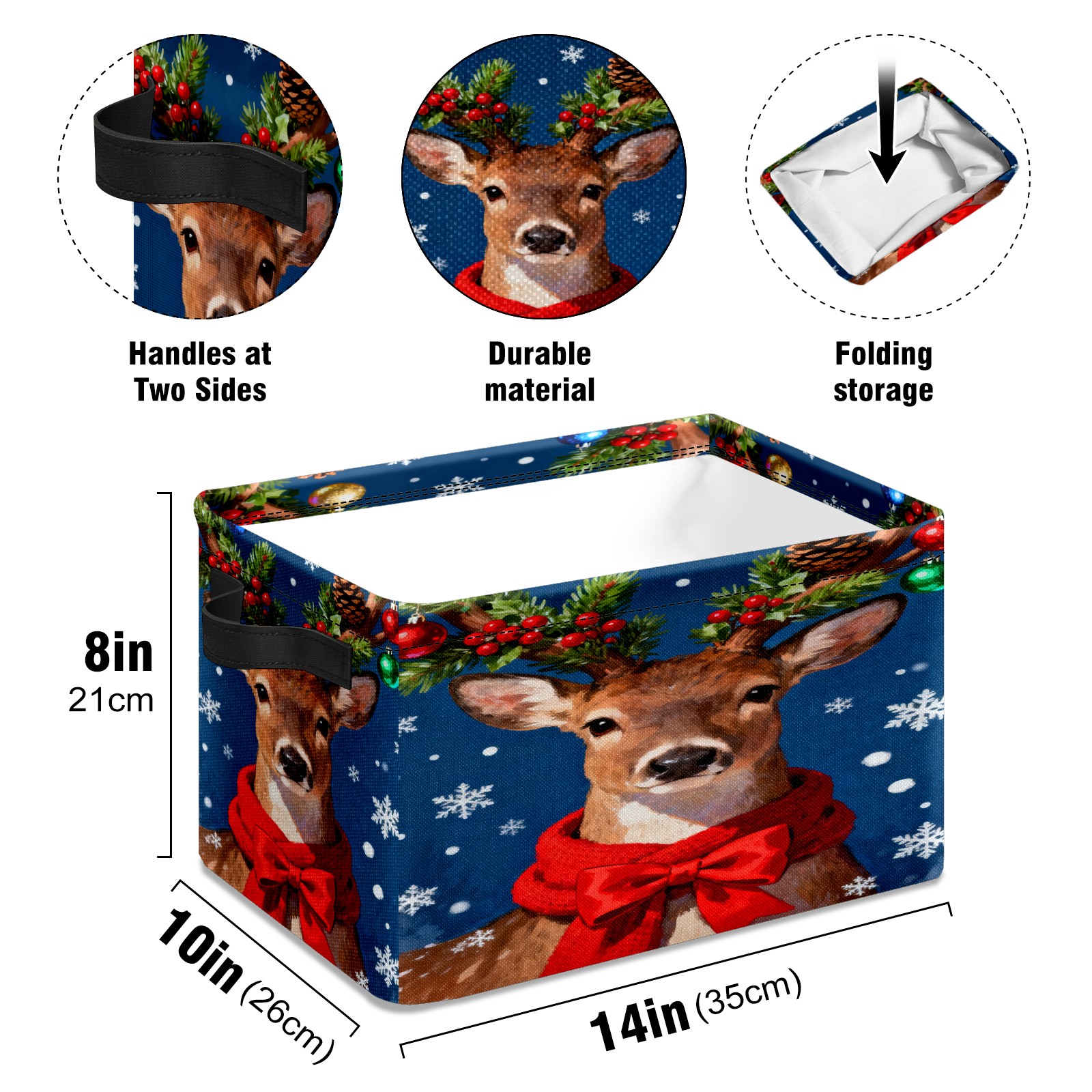 Large Storage Box,Christmas Decorated Deer Pattern Foldable Storage Baskets with Handles for Organizing Clothes, Gift Storage, Children's Toys