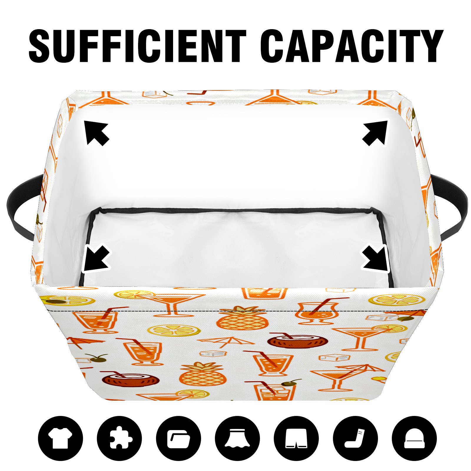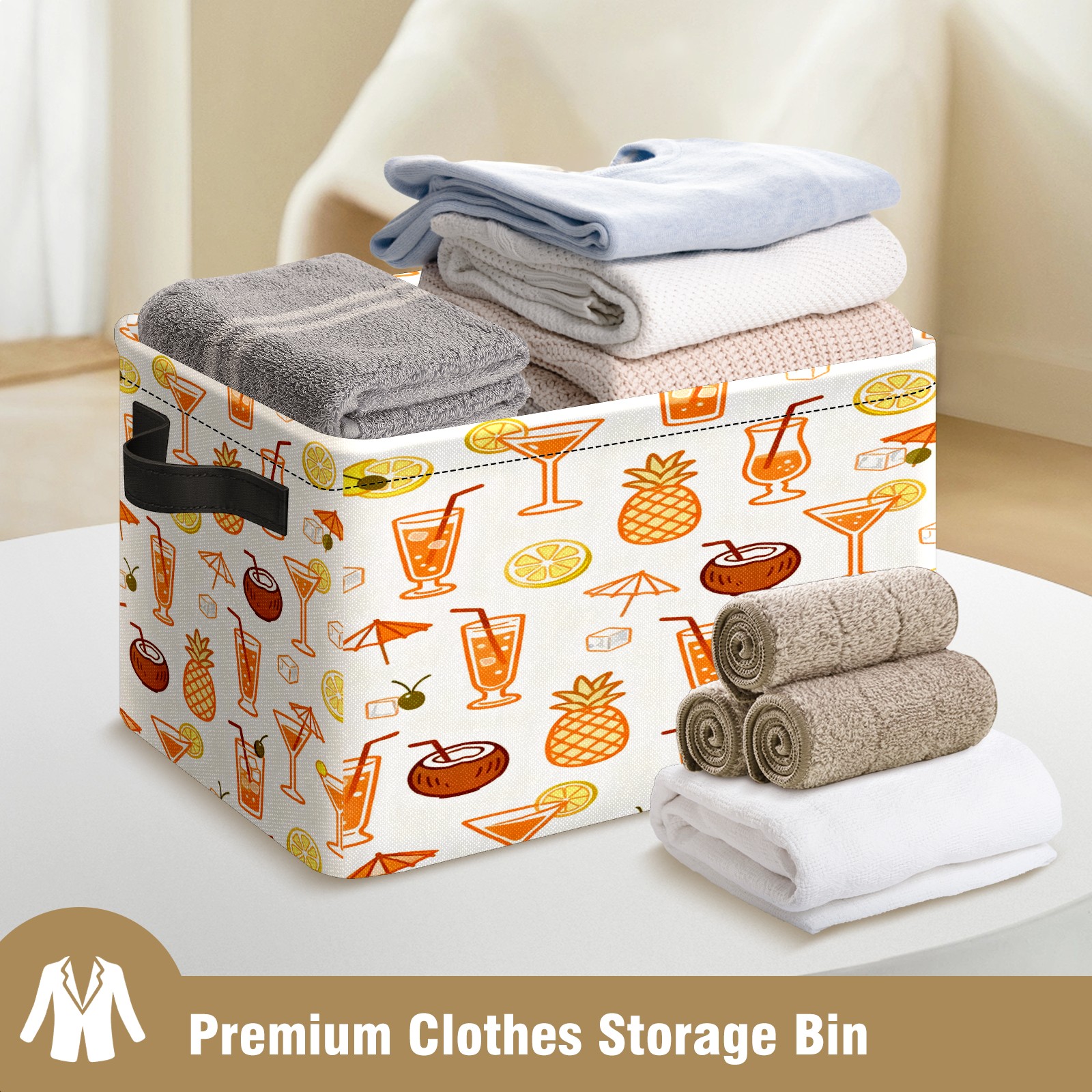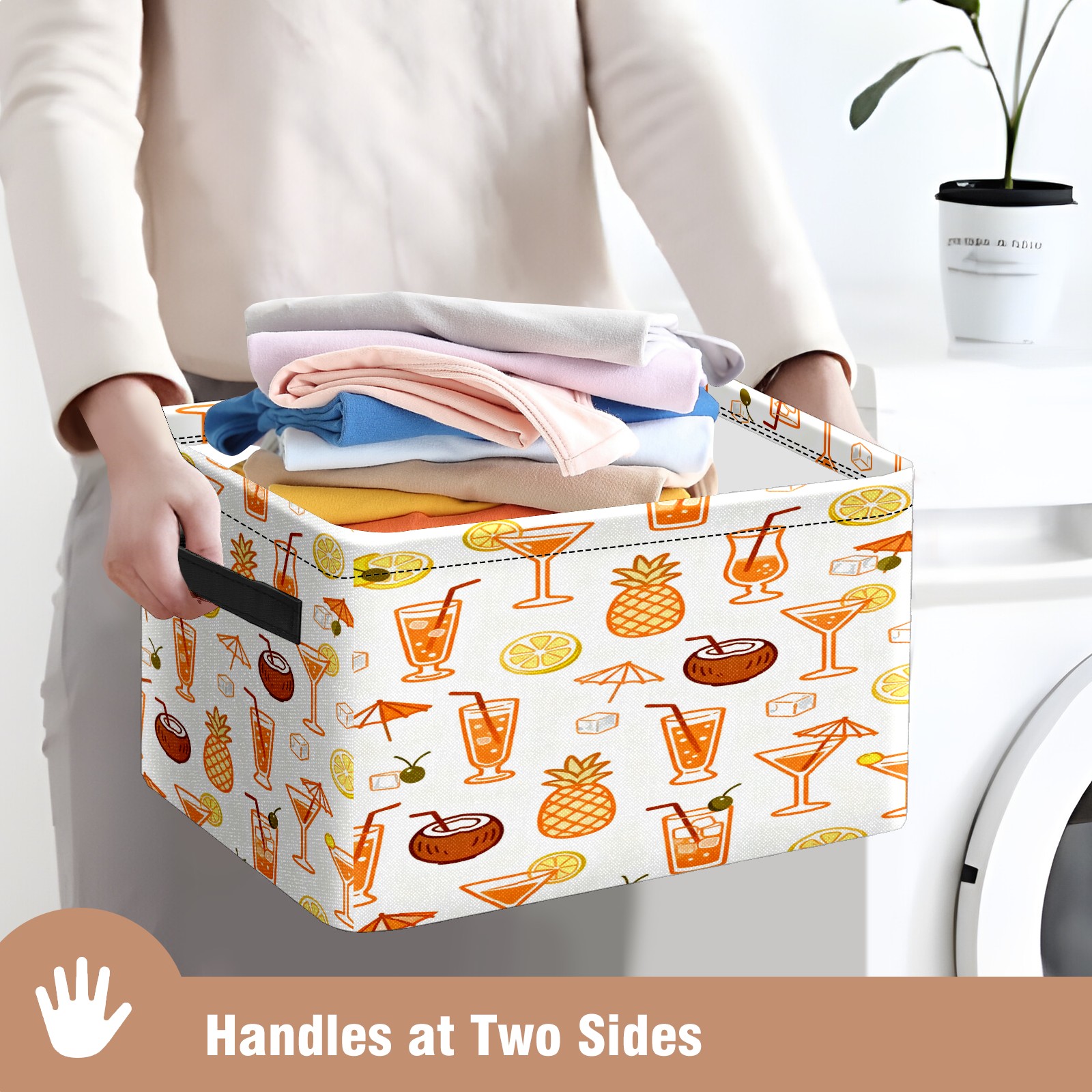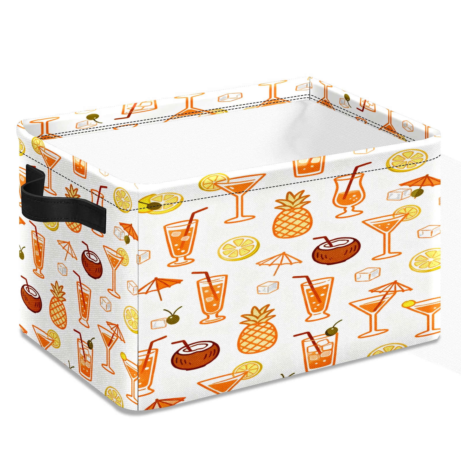 Large Storage Box,Tropical Drinks Fruits Collection Pattern Foldable Storage Baskets with Handles for Organizing Clothes, Gift Storage, Children's Toys