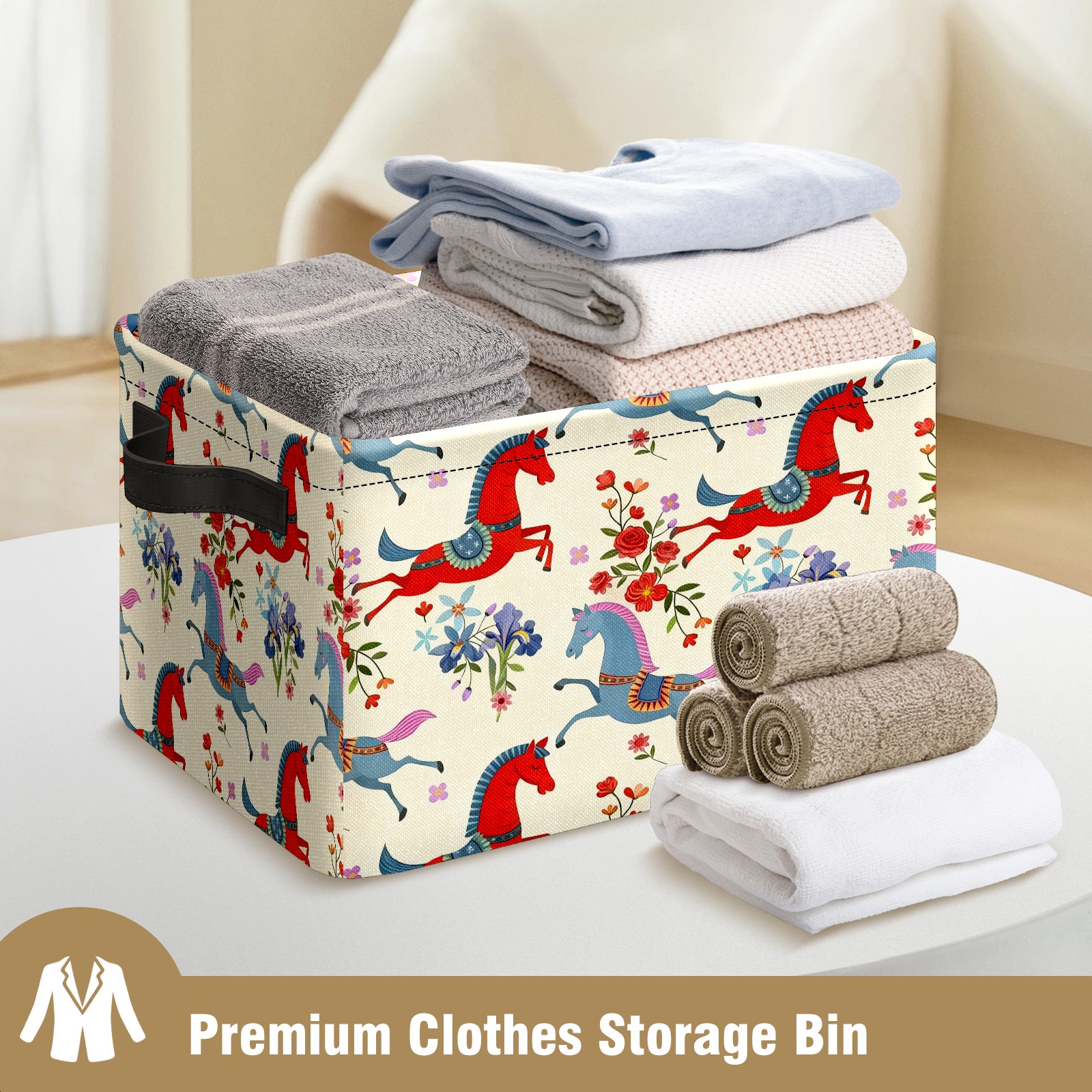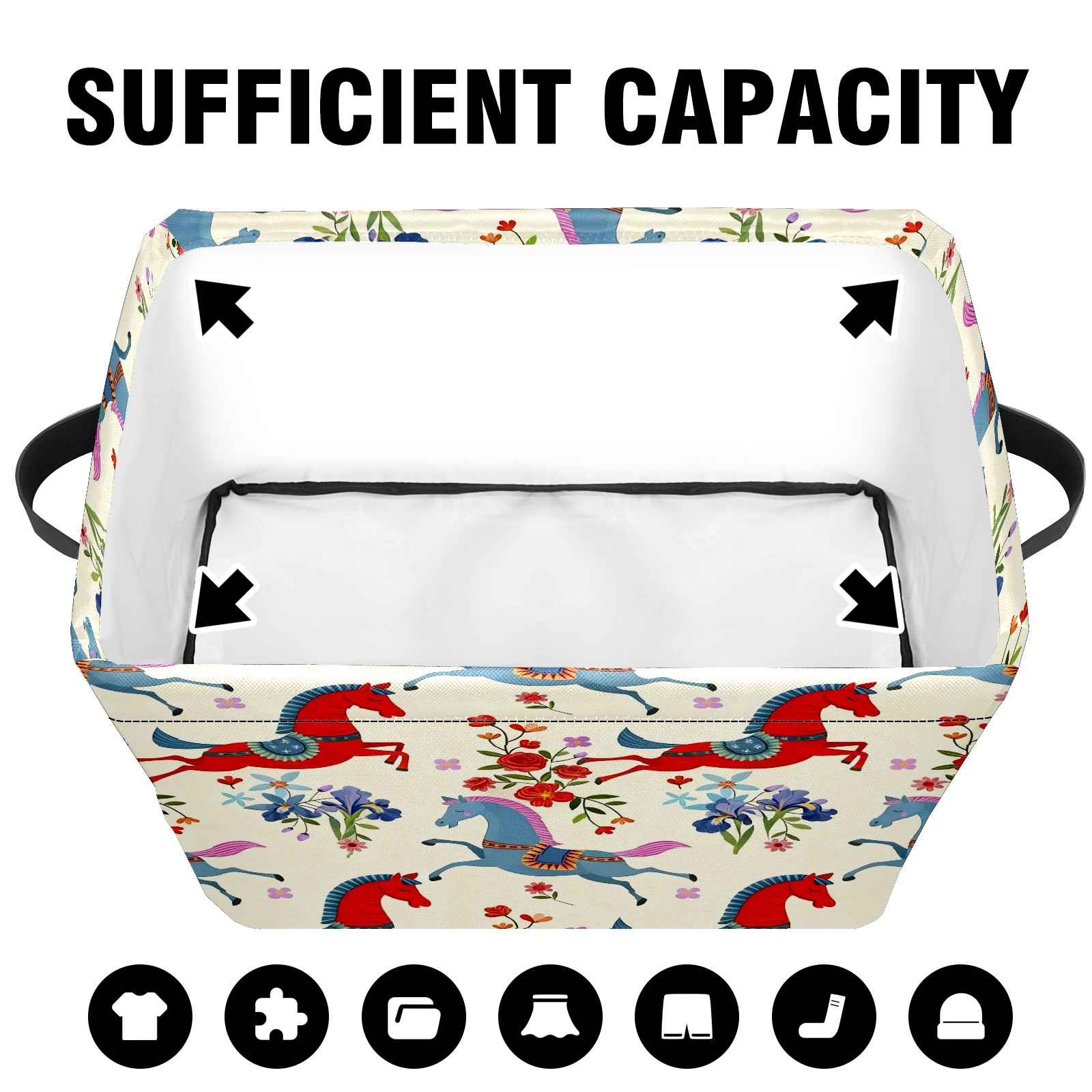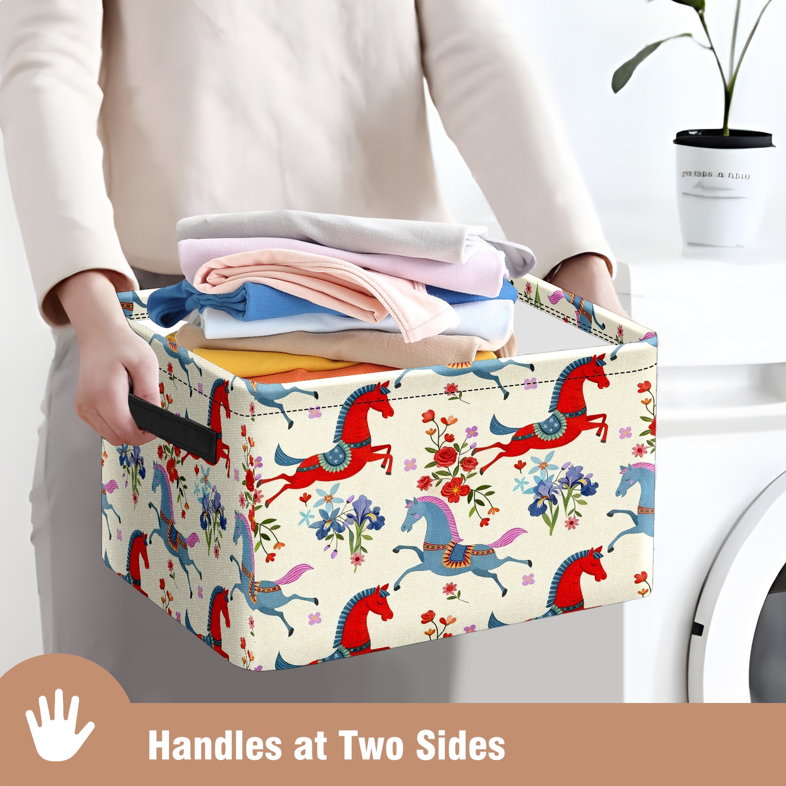 Large Storage Box,Colorful Decorative Horse Foldable Storage Baskets with Handles for Organizing Clothes, Gift Storage, Children's Toys