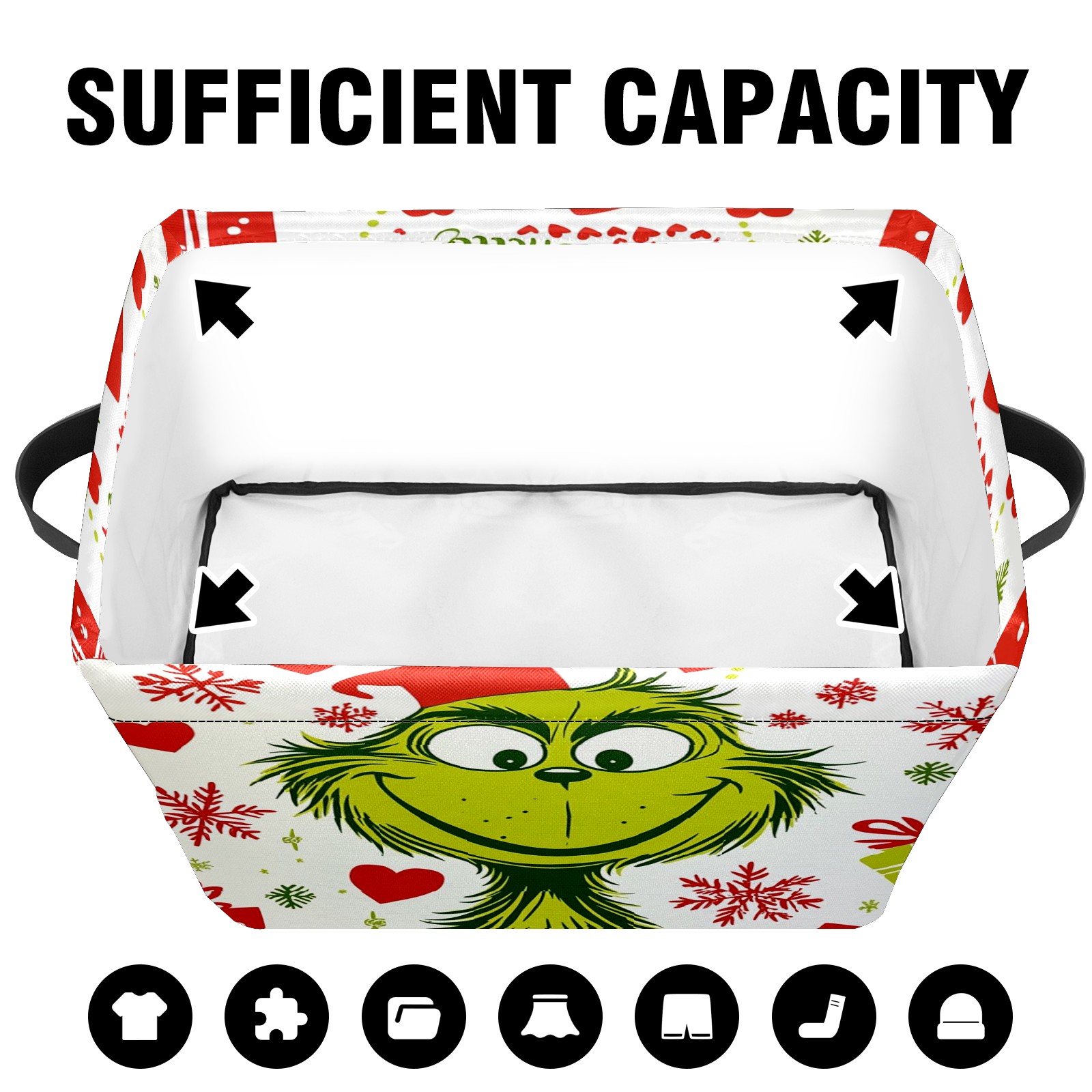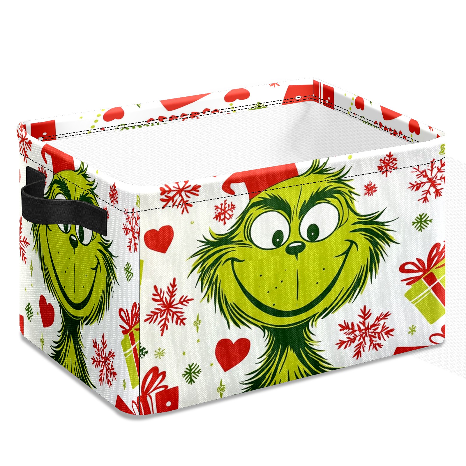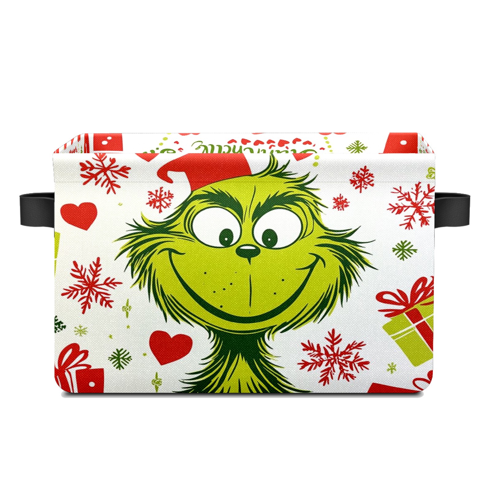 Fabric Storage Basket with Handles, Cloth Organizer Bin with Metal Frame, 26x35x21cm Rectangular Storage Basket for Home, Office, School Christmas Grinch