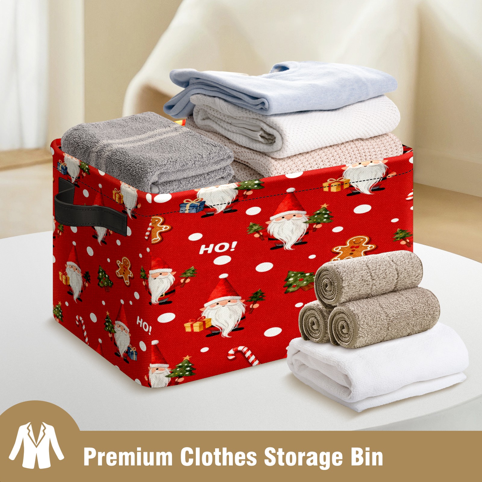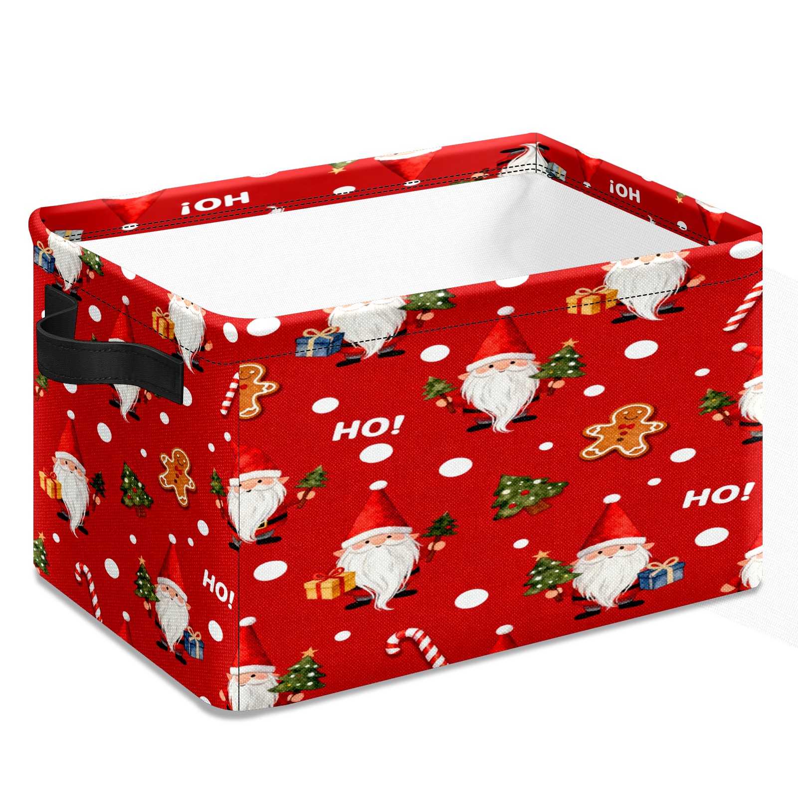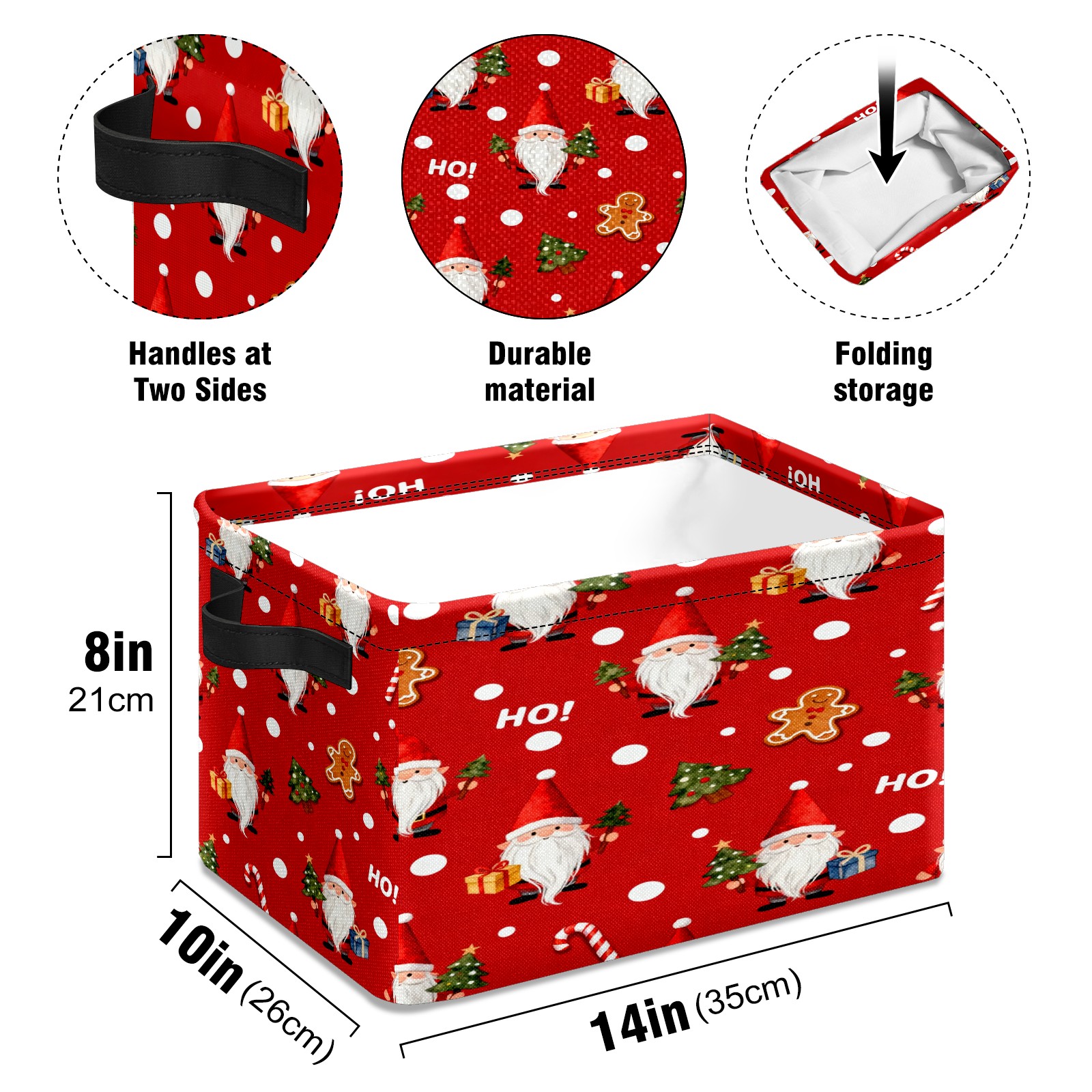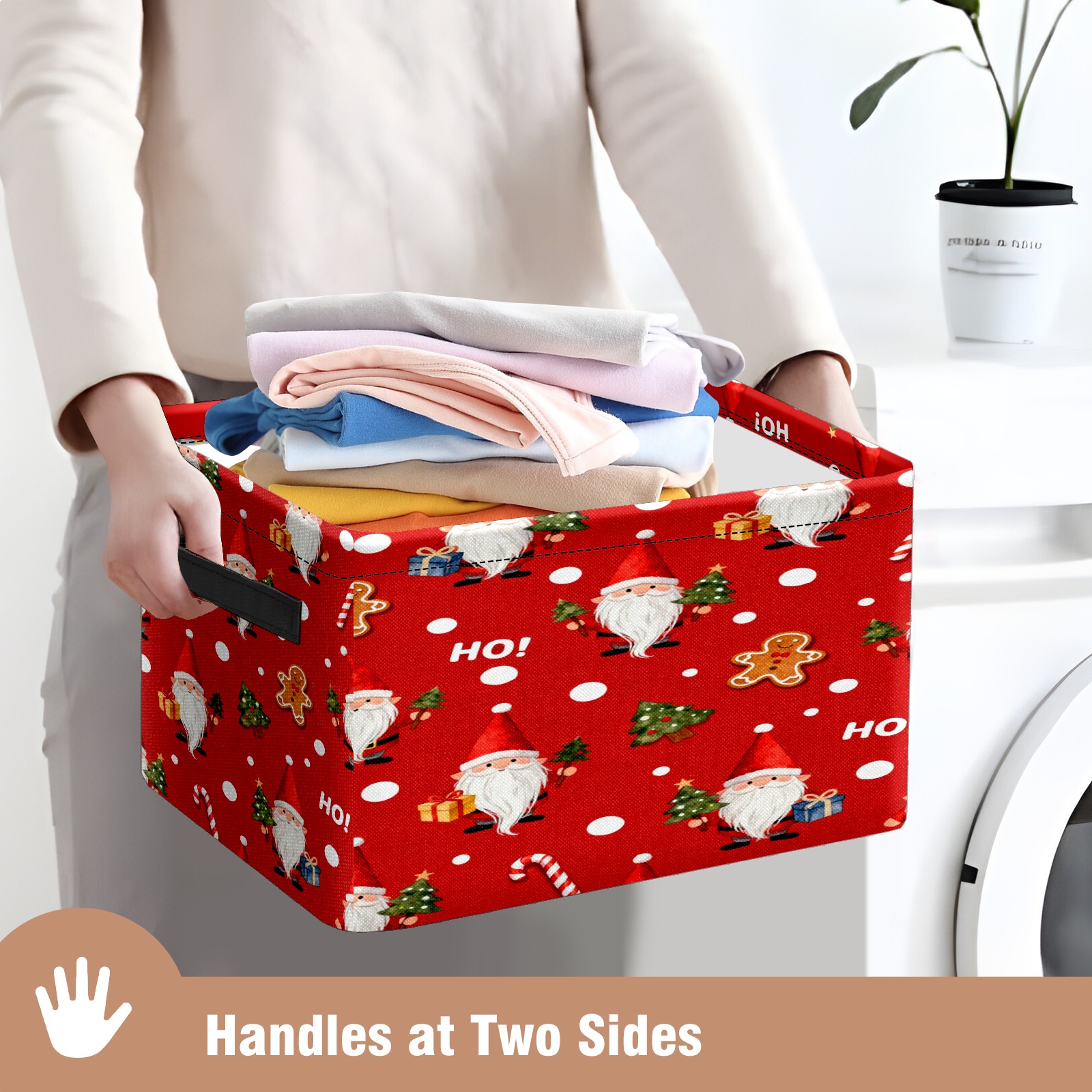 Fabric Storage Basket with Handles, Cloth Organizer Bin with Metal Frame, 26x35x21cm Rectangular Storage Basket for Home, Office, School Gingerbread Men Candy Canes