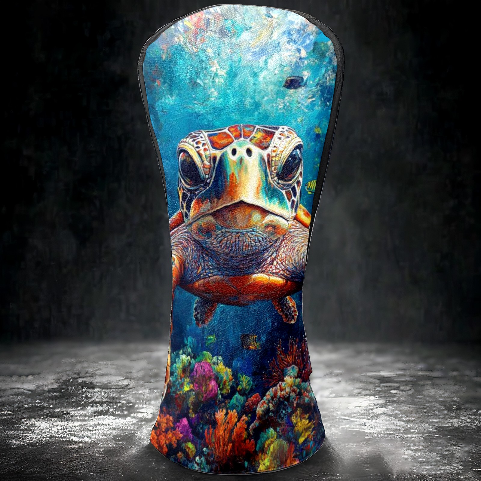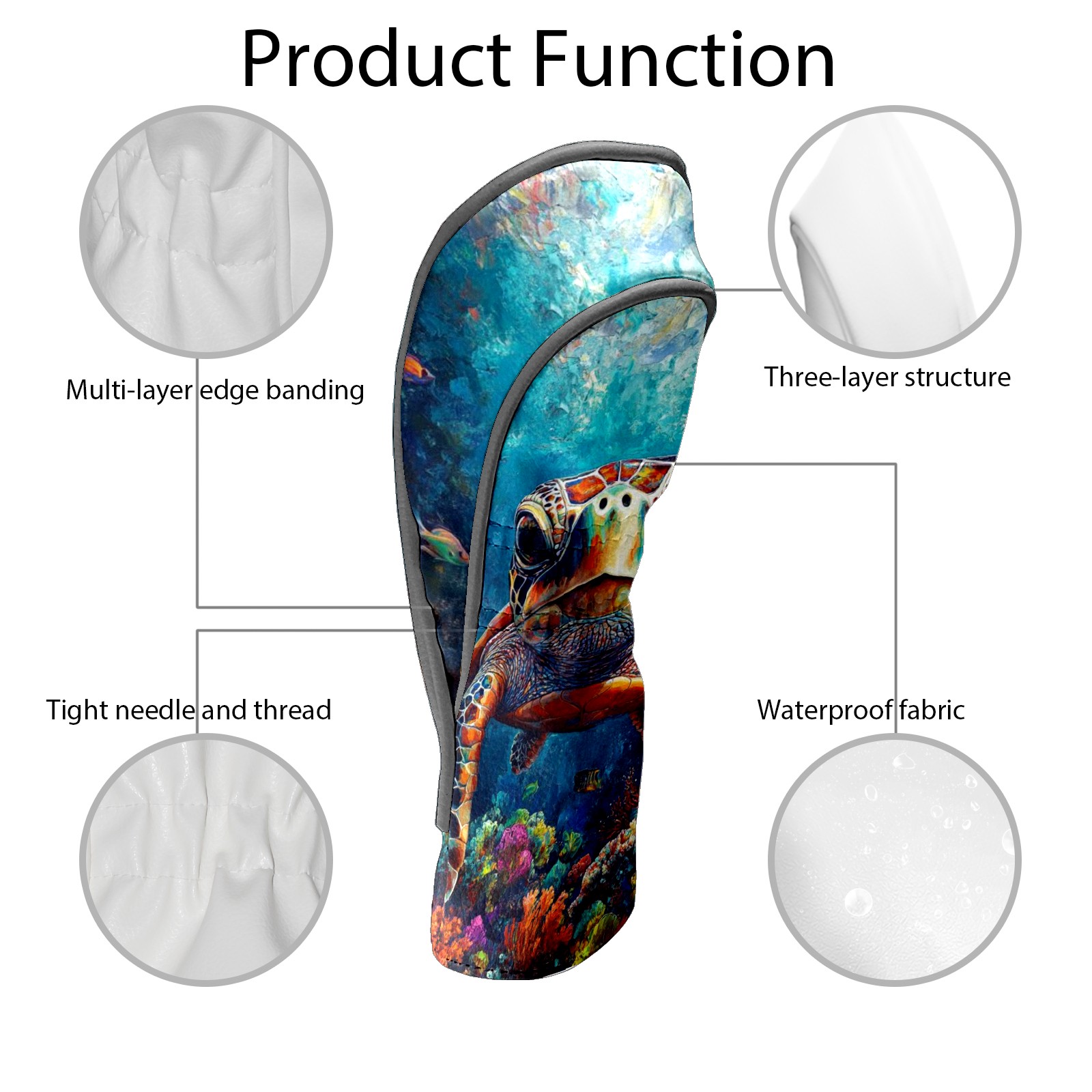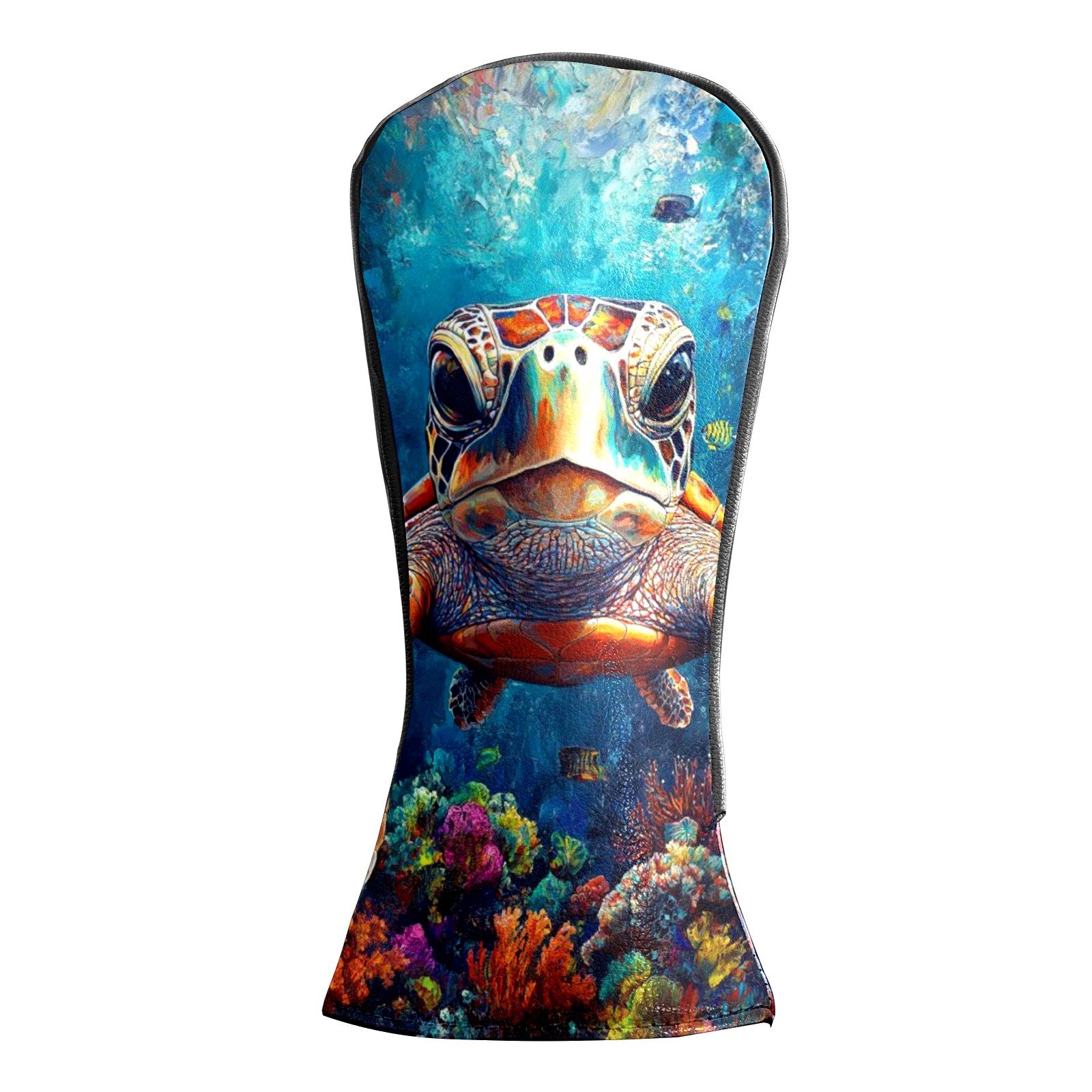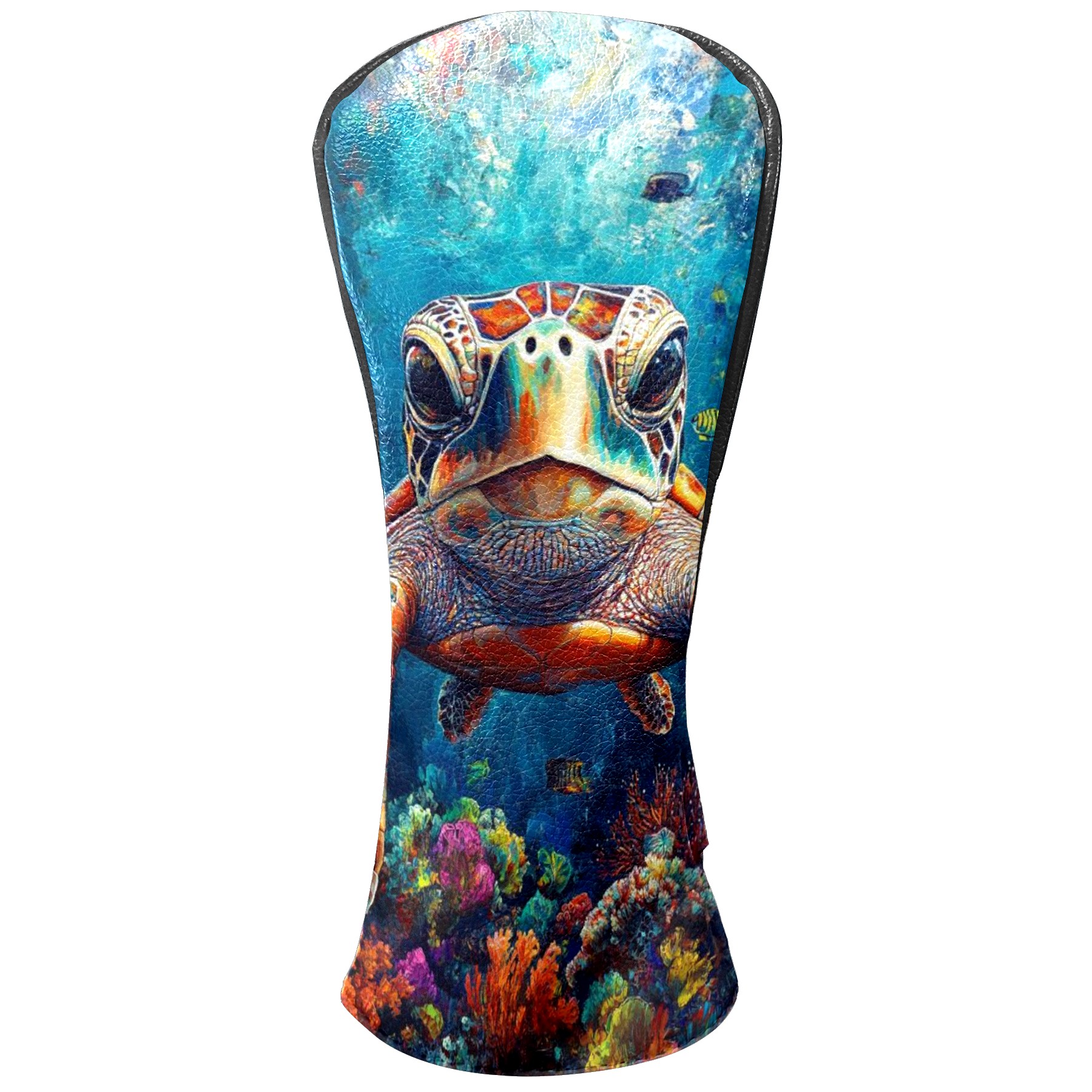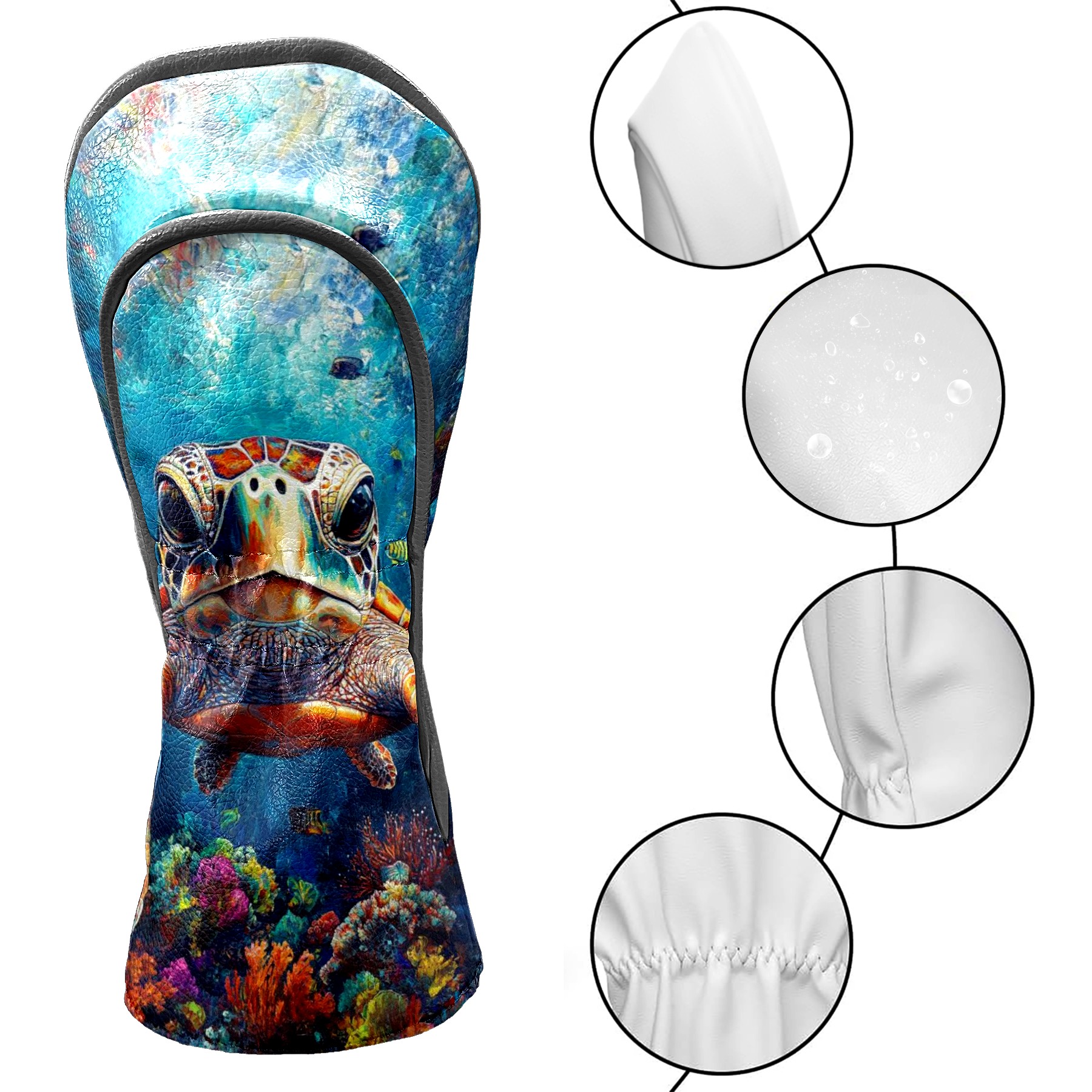 Golf Club Head Cover, High Quality PU Leather Driver and Wood Club Head Cover with Anti-Scratch Lining, Universal Gift for Men and Women Colorful Coral Sea Turtle