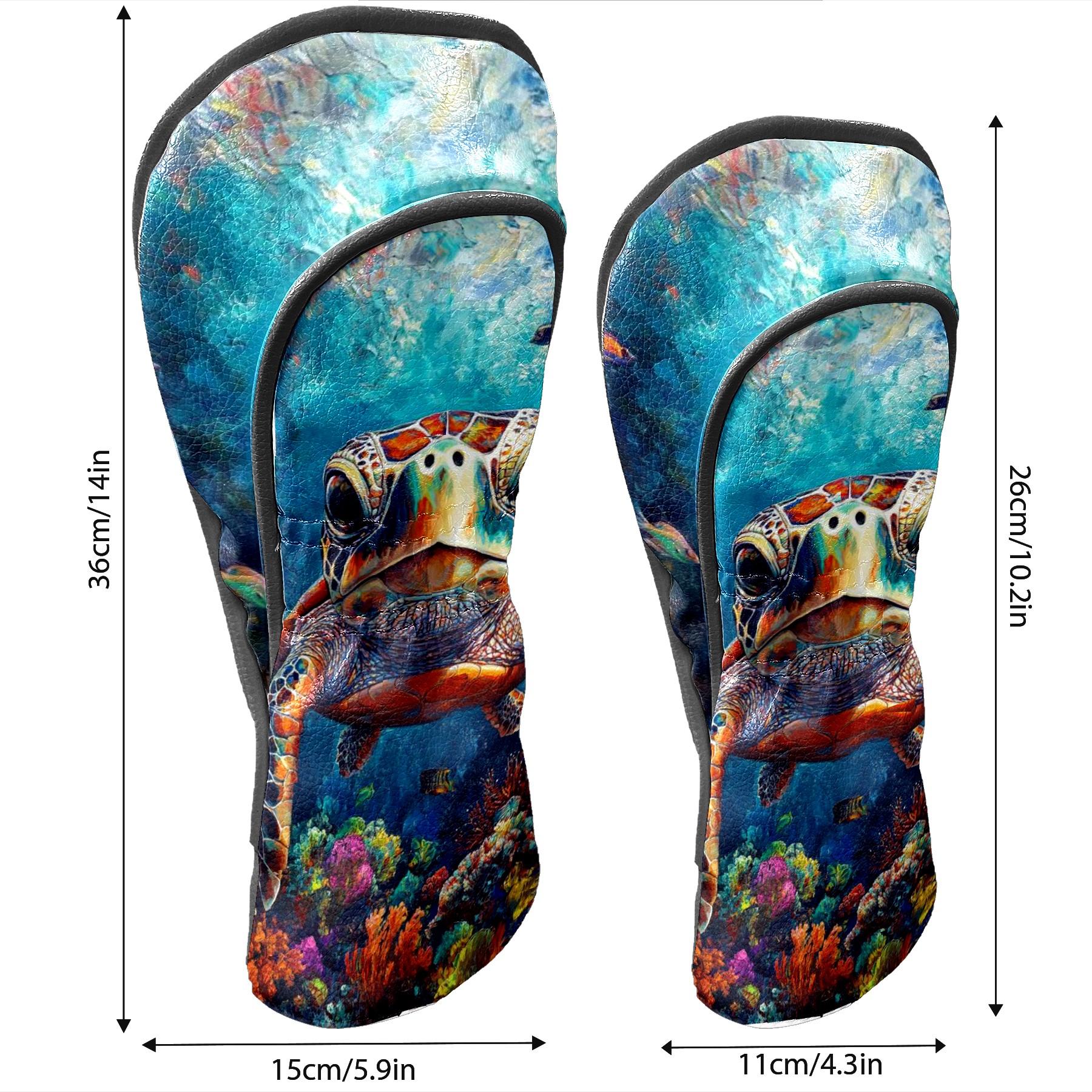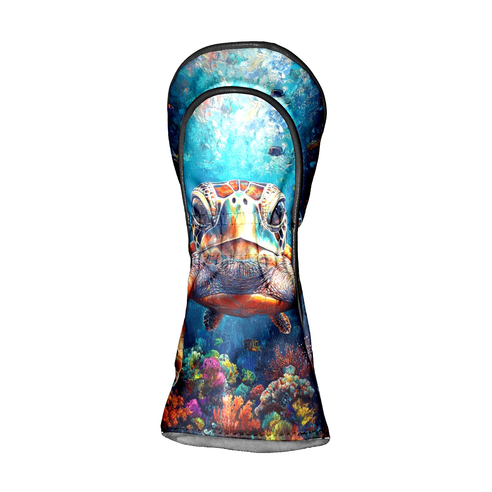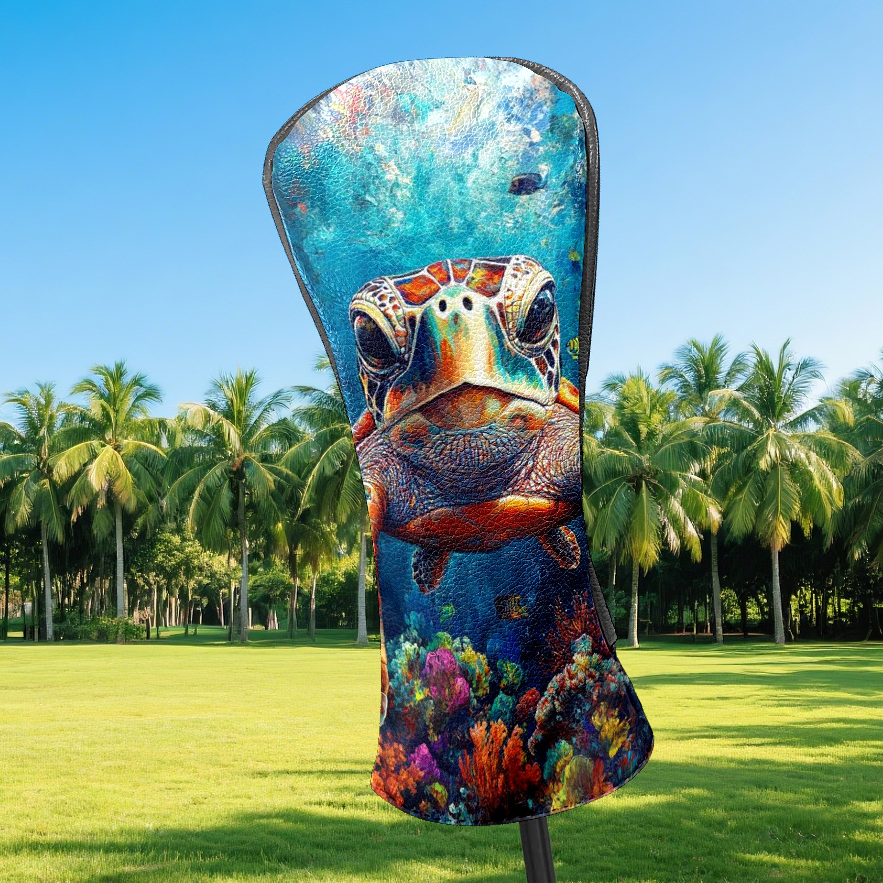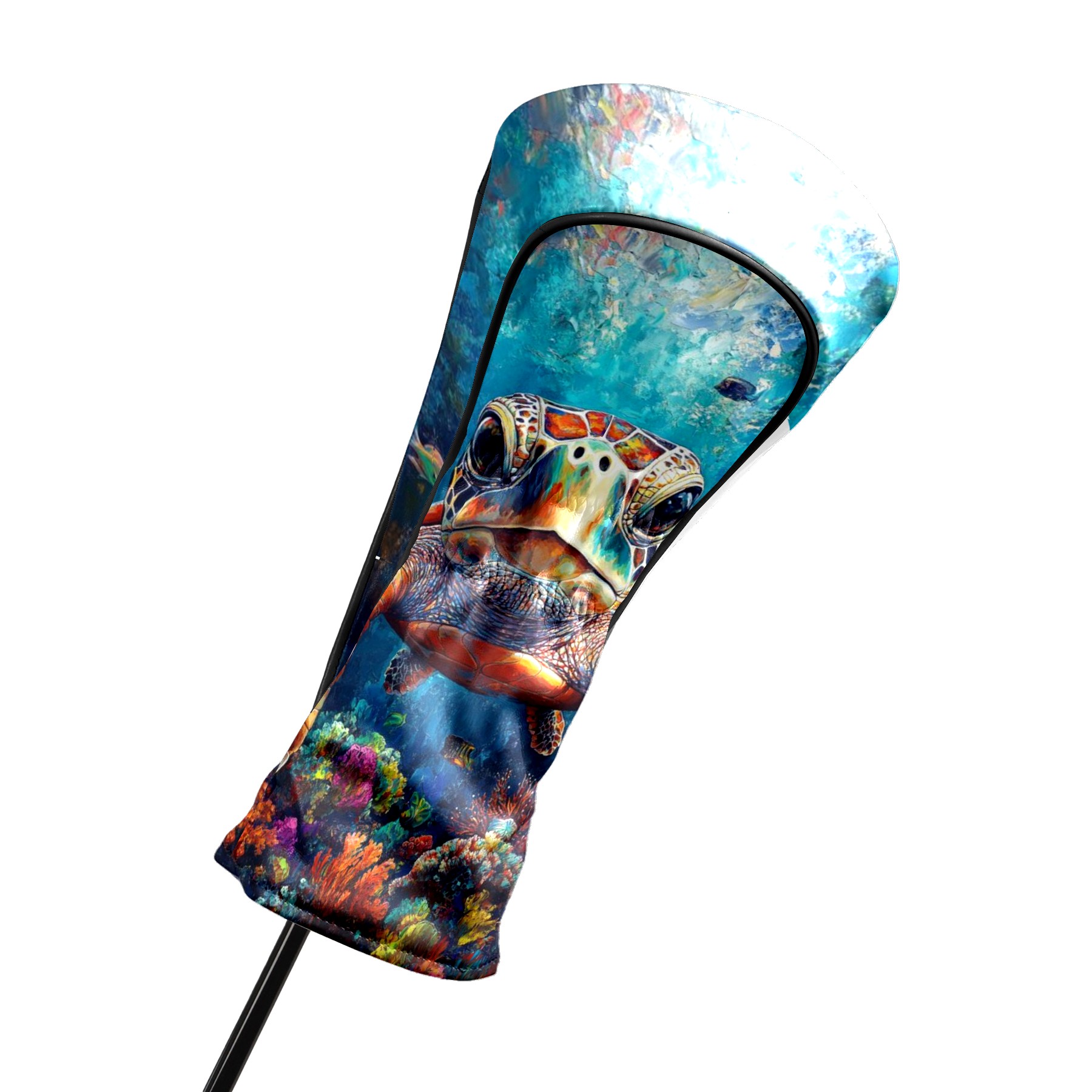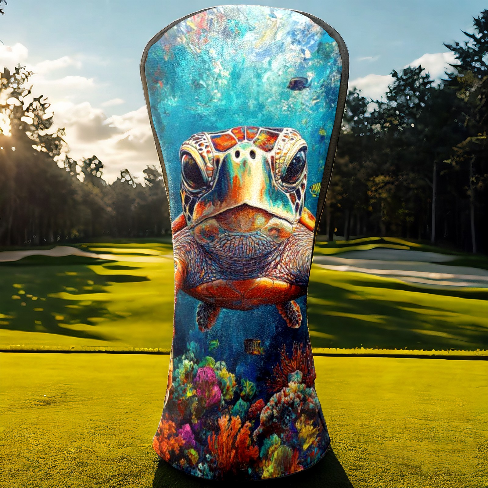 Golf Club Head Cover, High Quality PU Leather Driver and Wood Club Head Cover with Anti-Scratch Lining, Universal Gift for Men and Women Colorful Coral Sea Turtle
