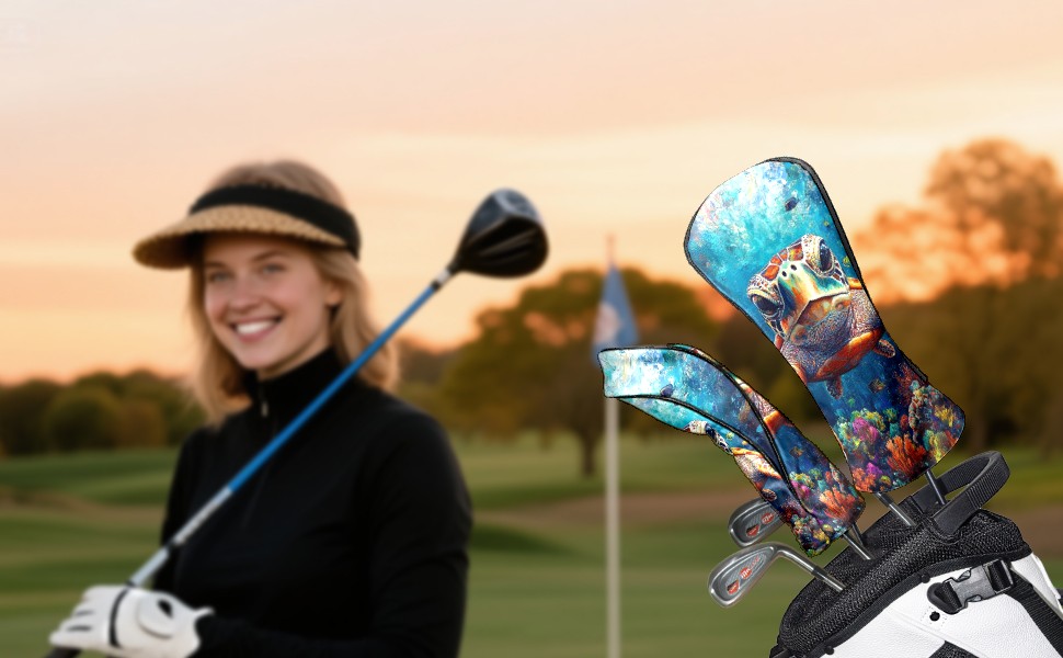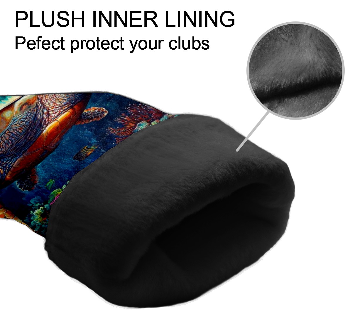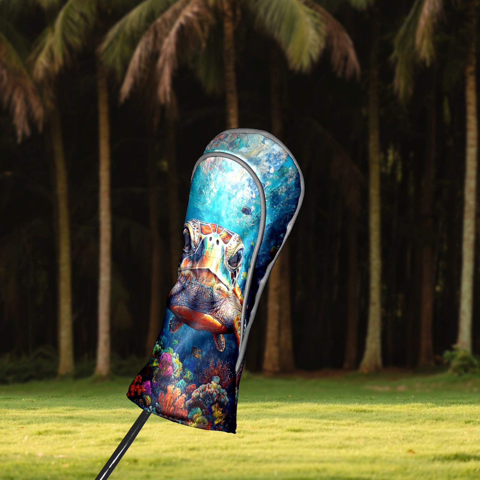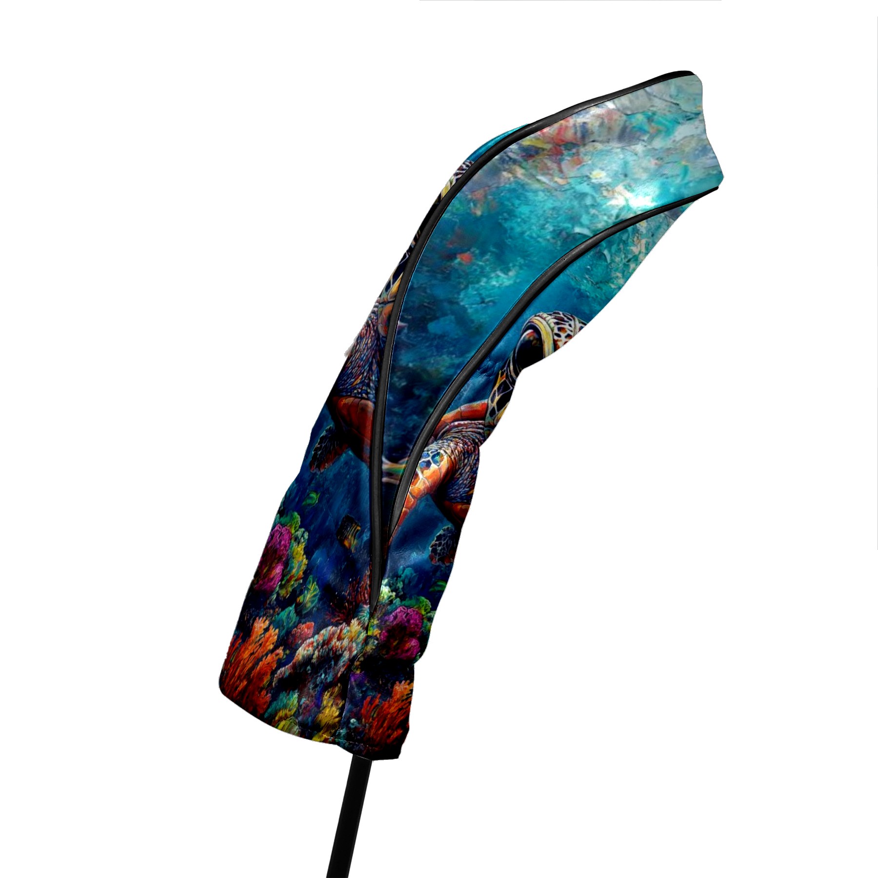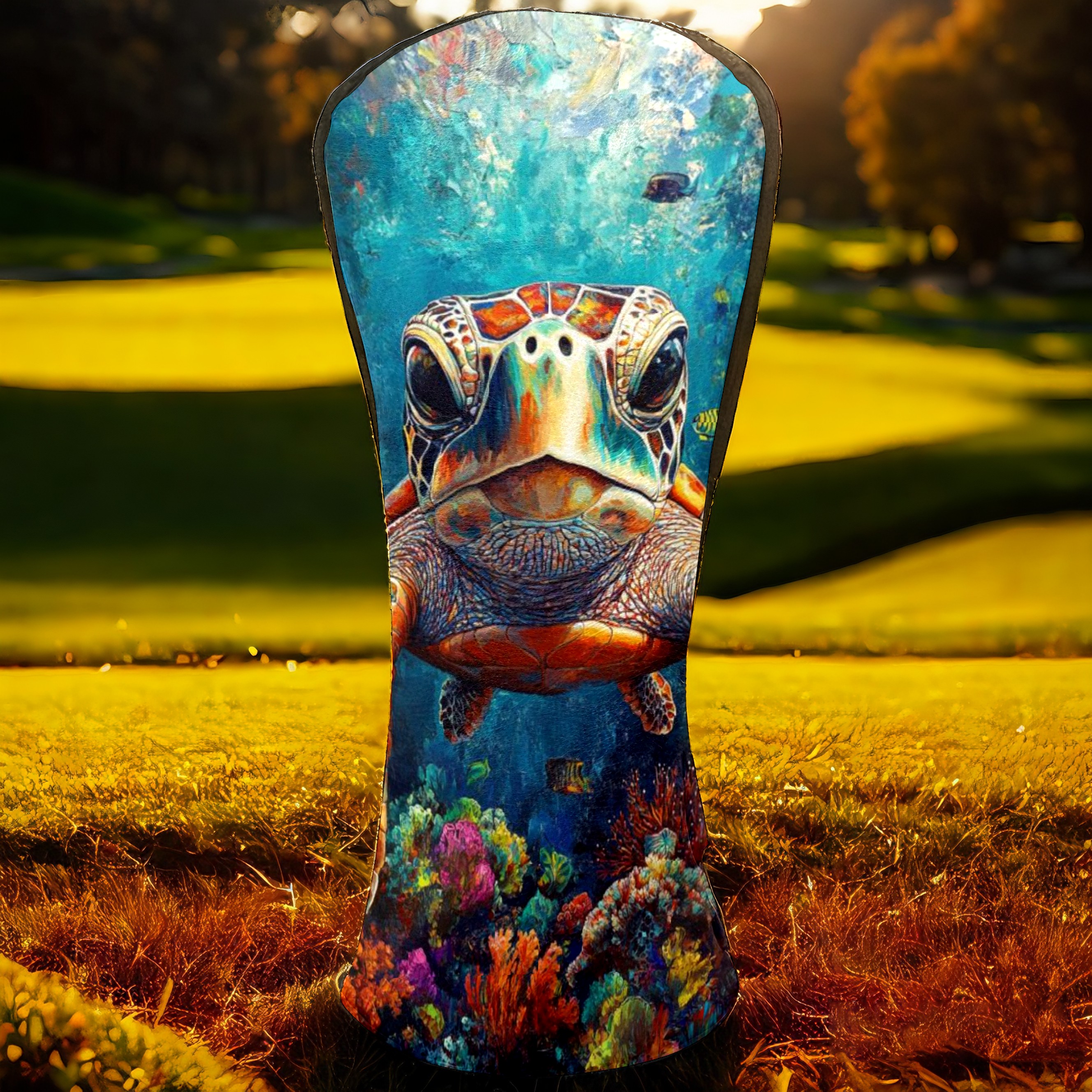 Golf Club Head Cover, High Quality PU Leather Driver and Wood Club Head Cover with Anti-Scratch Lining, Universal Gift for Men and Women Colorful Coral Sea Turtle