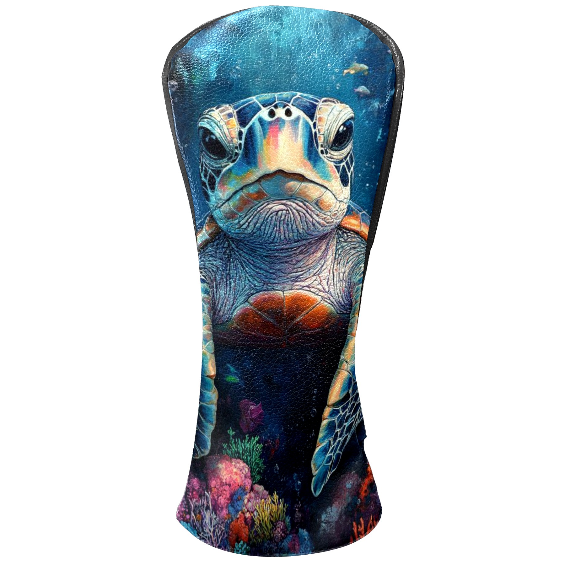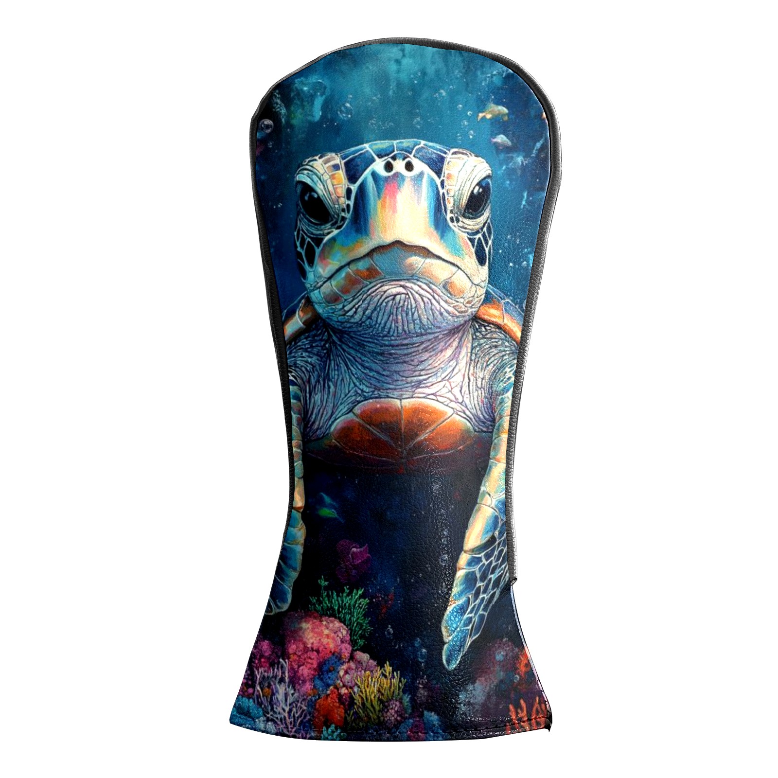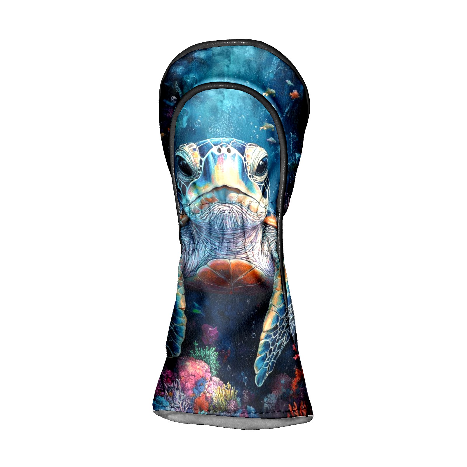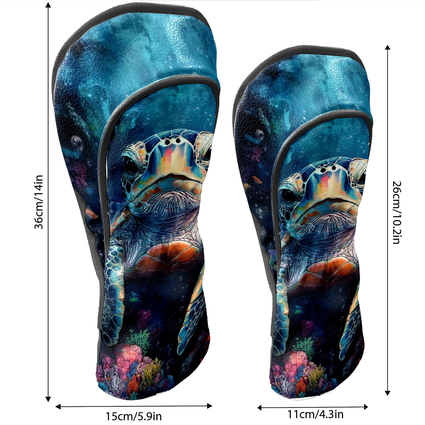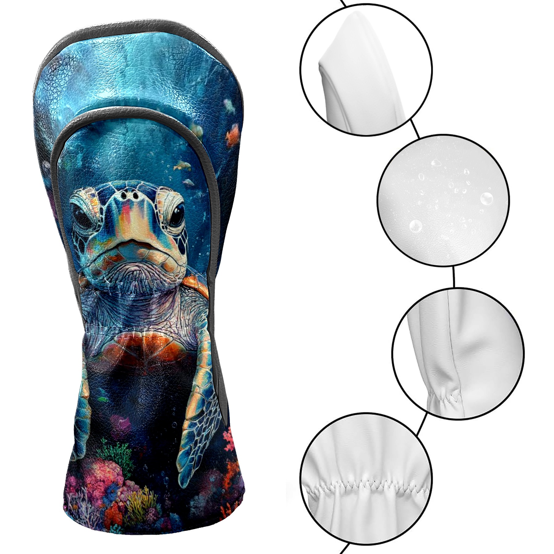 Golf Club Head Cover, High Quality PU Leather Driver and Wood Club Head Cover with Anti-Scratch Lining, Universal Gift for Men and Women Deep Sea Blue Sea Turtle