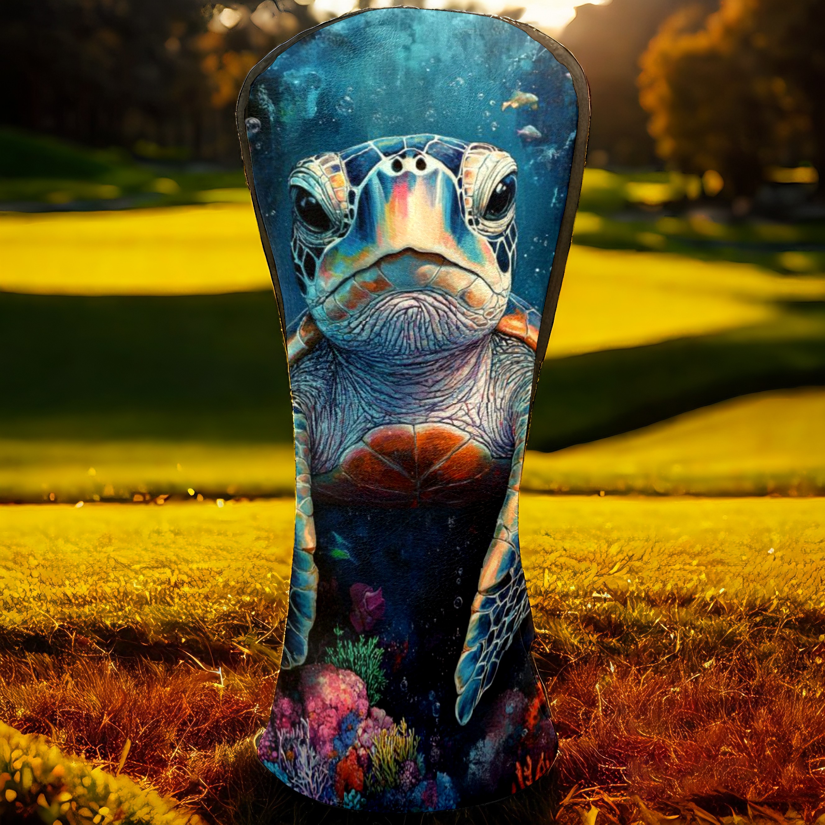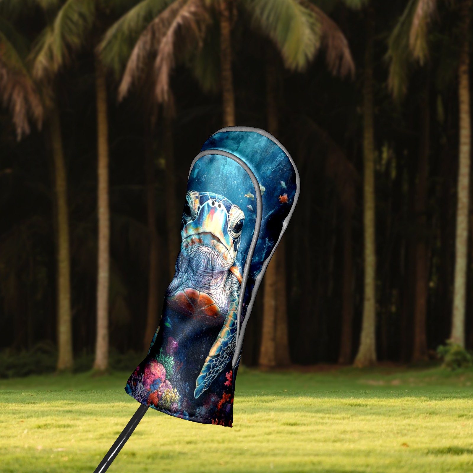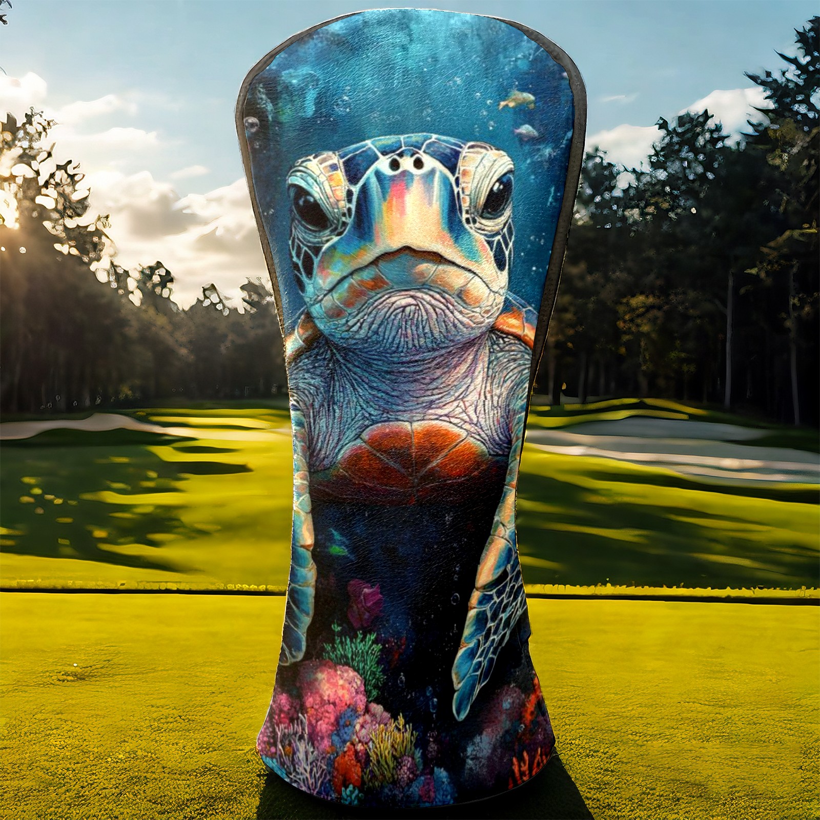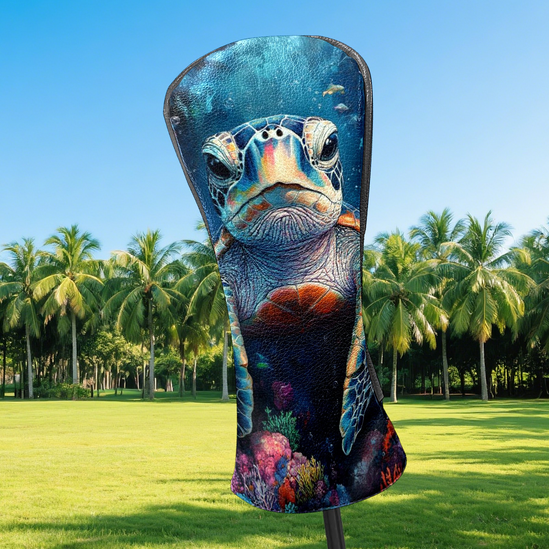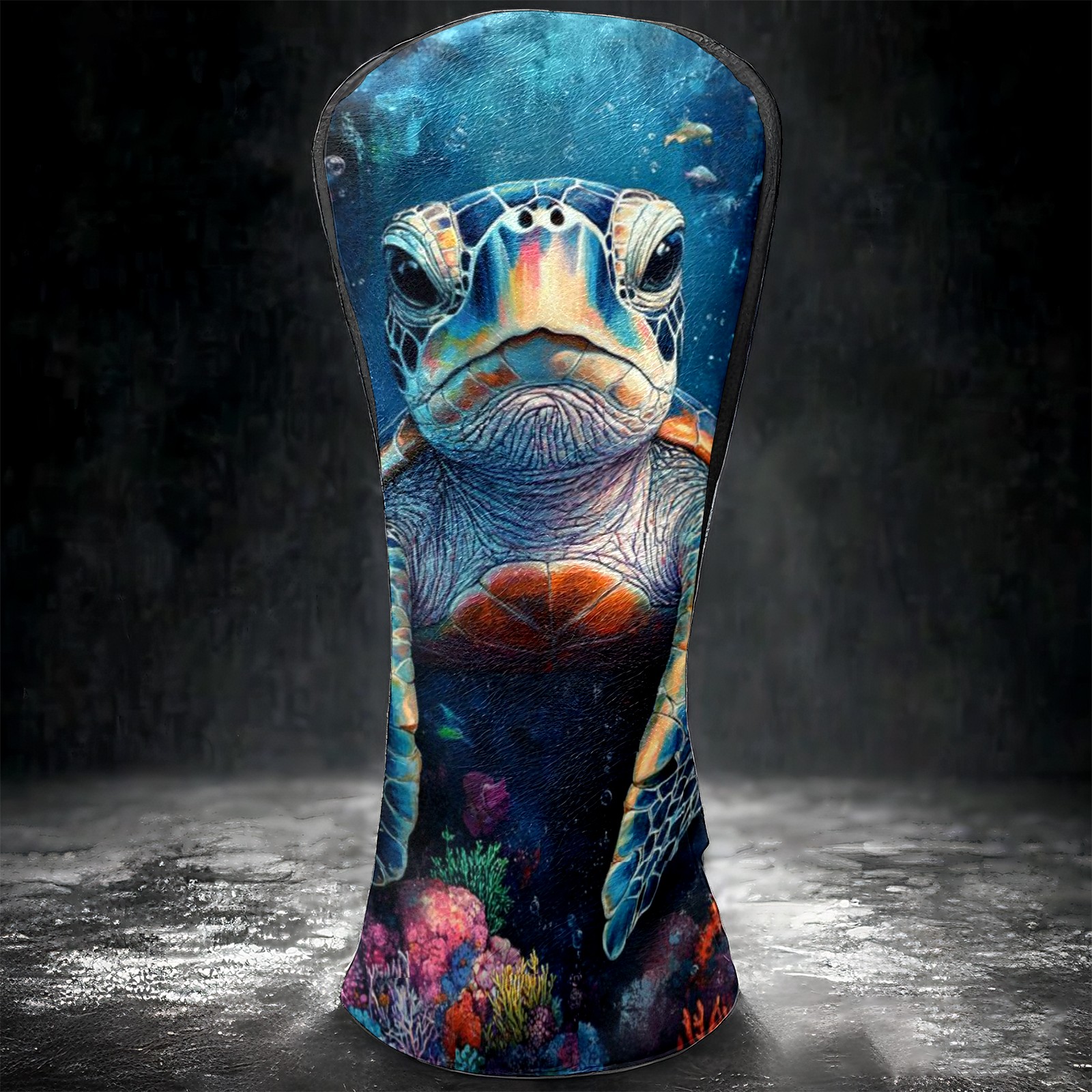 Golf Club Head Cover, High Quality PU Leather Driver and Wood Club Head Cover with Anti-Scratch Lining, Universal Gift for Men and Women Deep Sea Blue Sea Turtle