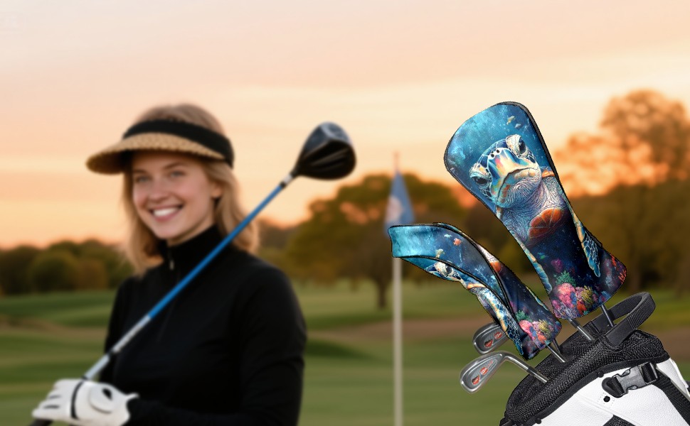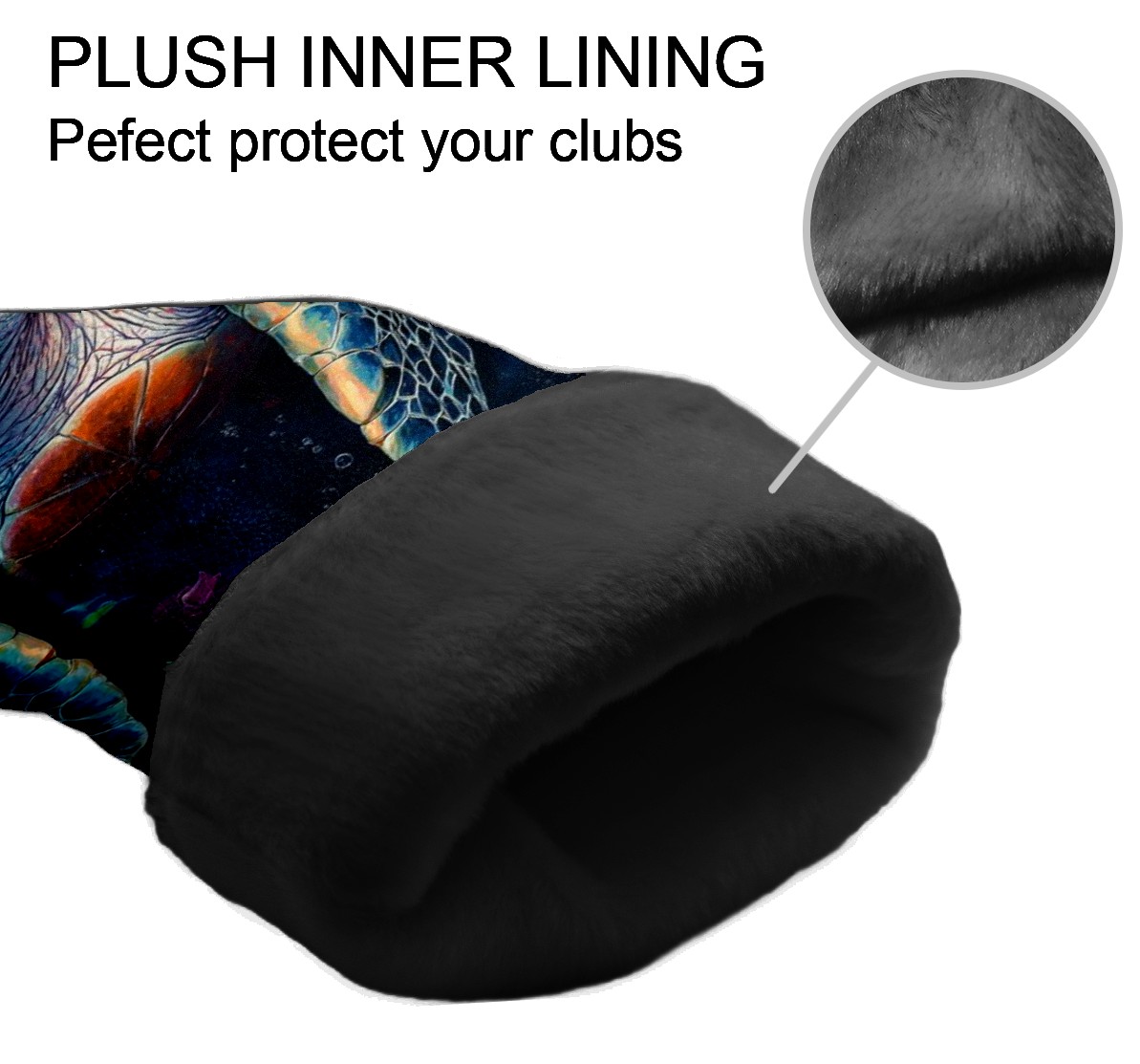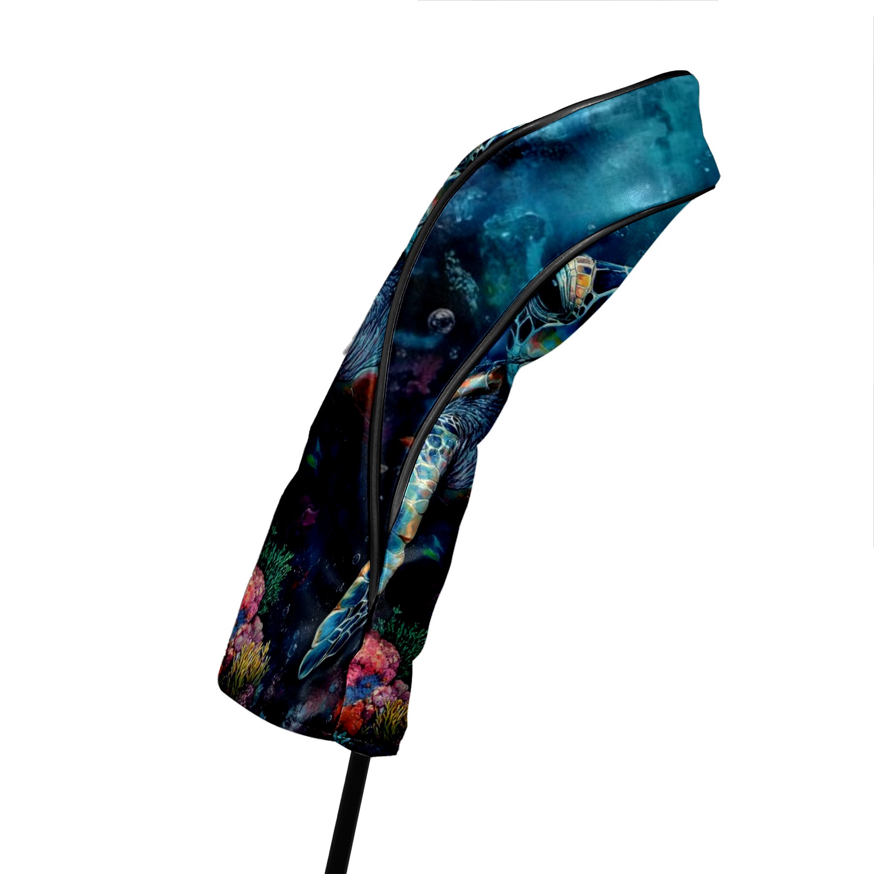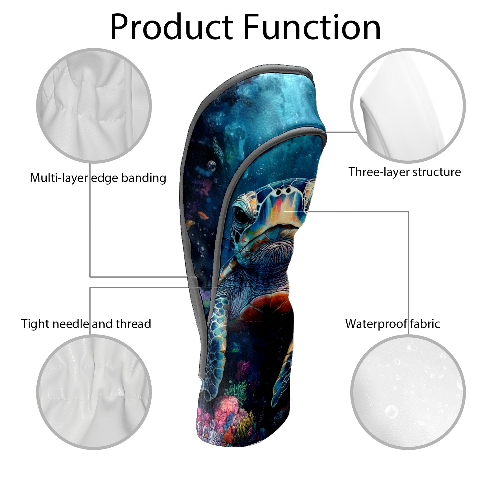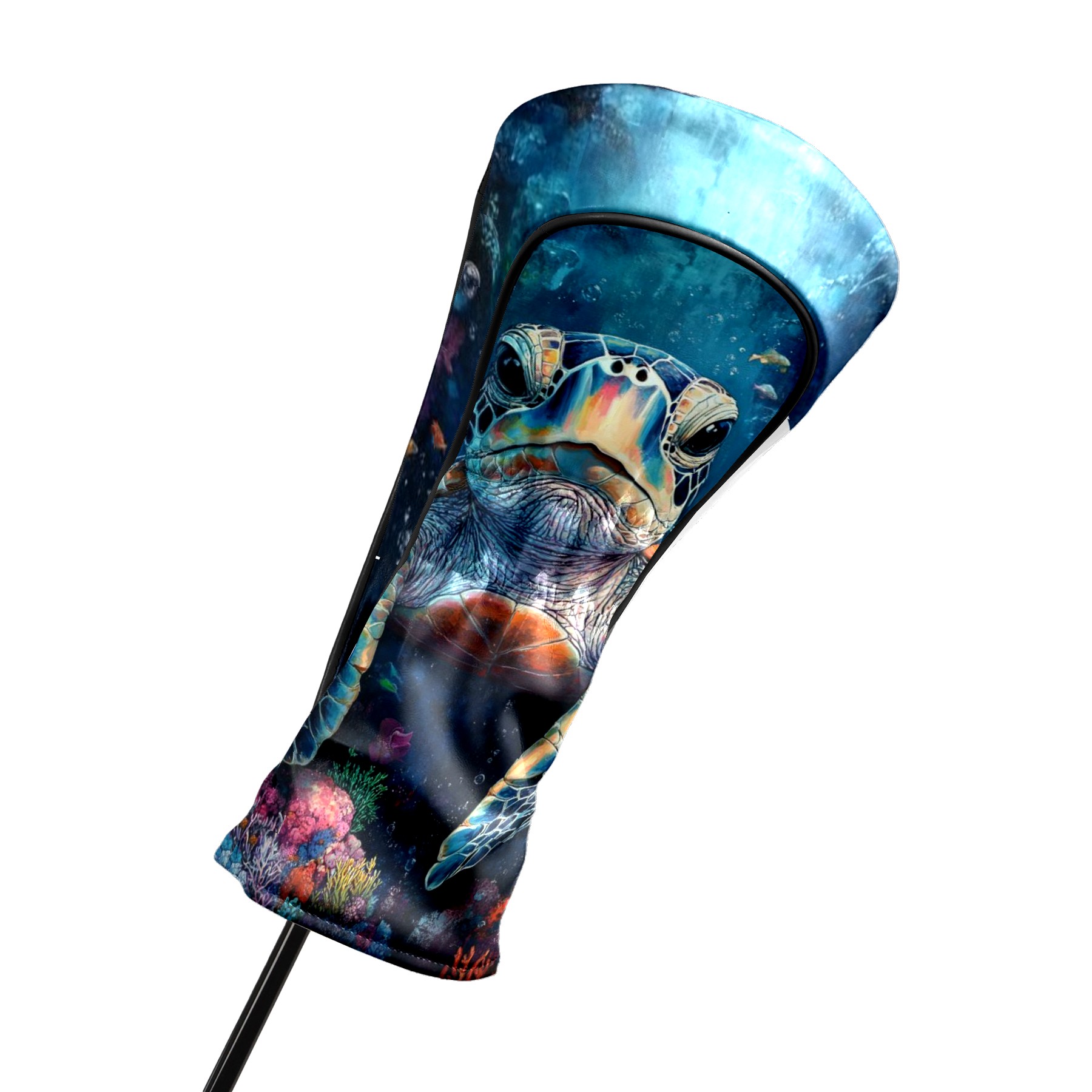 Golf Club Head Cover, High Quality PU Leather Driver and Wood Club Head Cover with Anti-Scratch Lining, Universal Gift for Men and Women Deep Sea Blue Sea Turtle