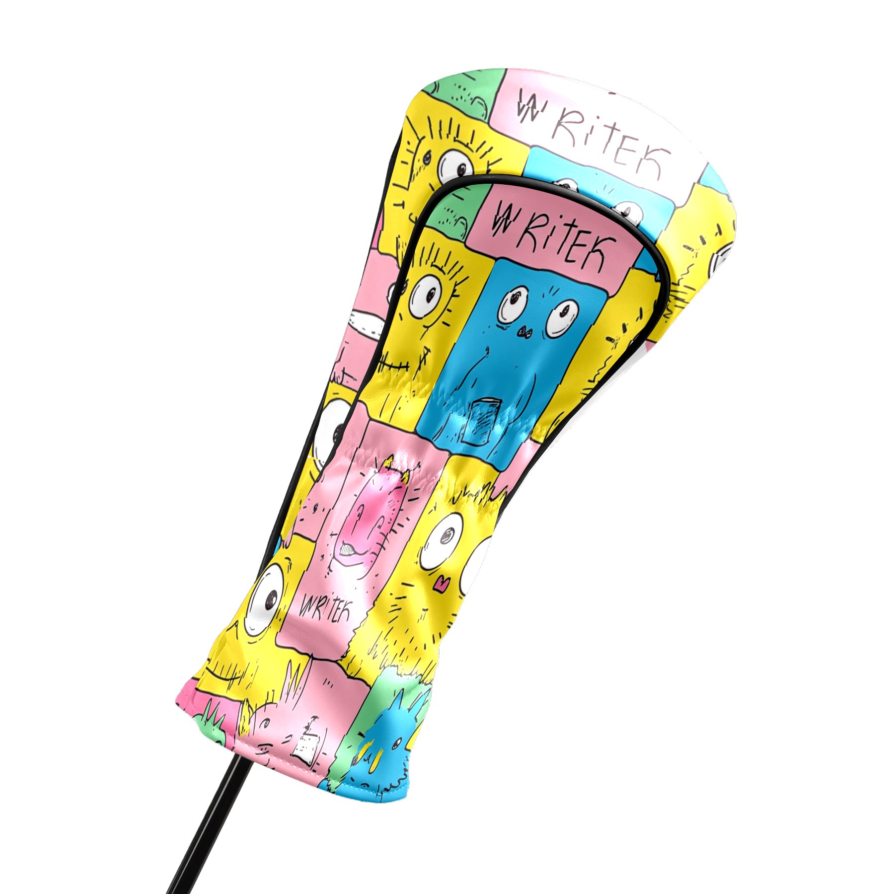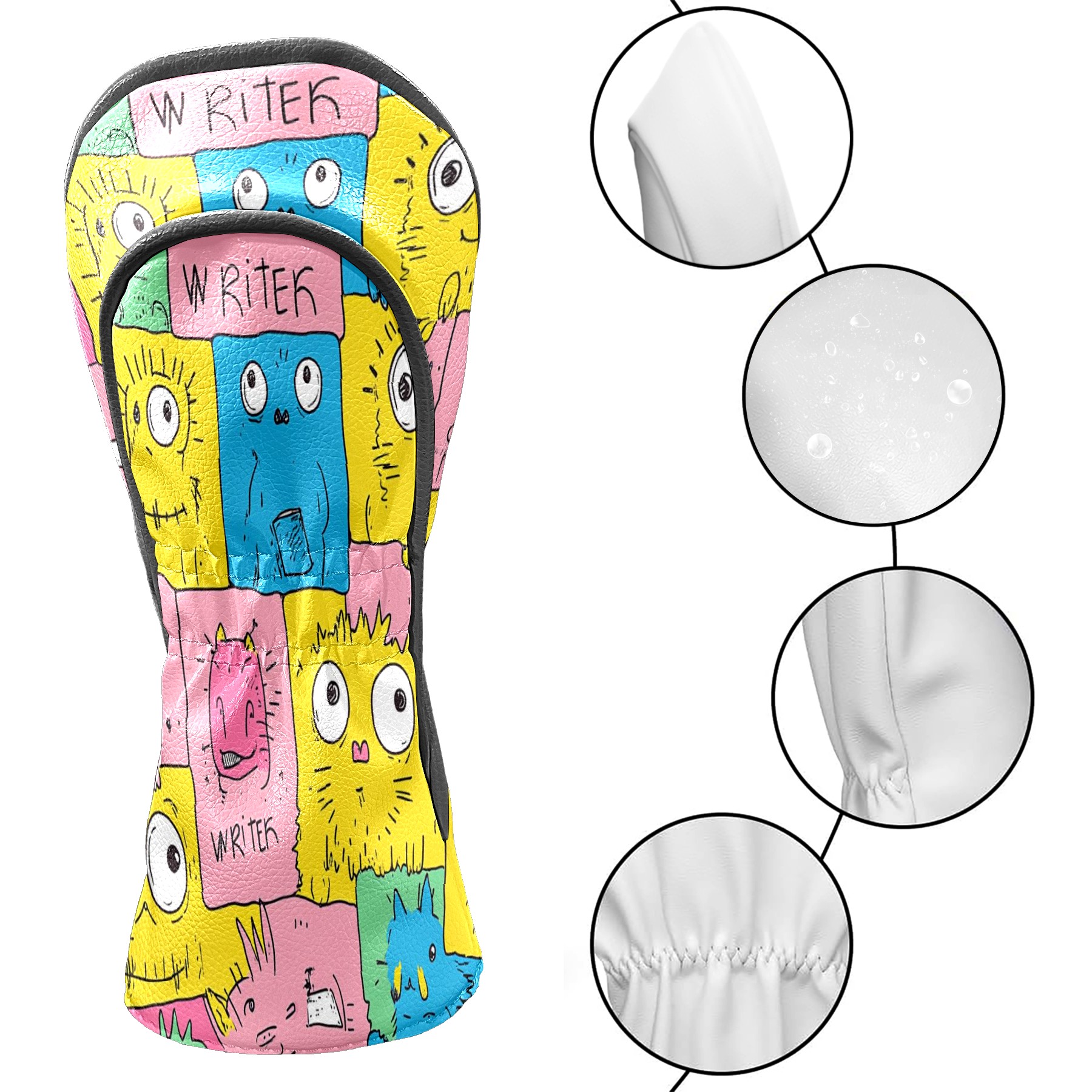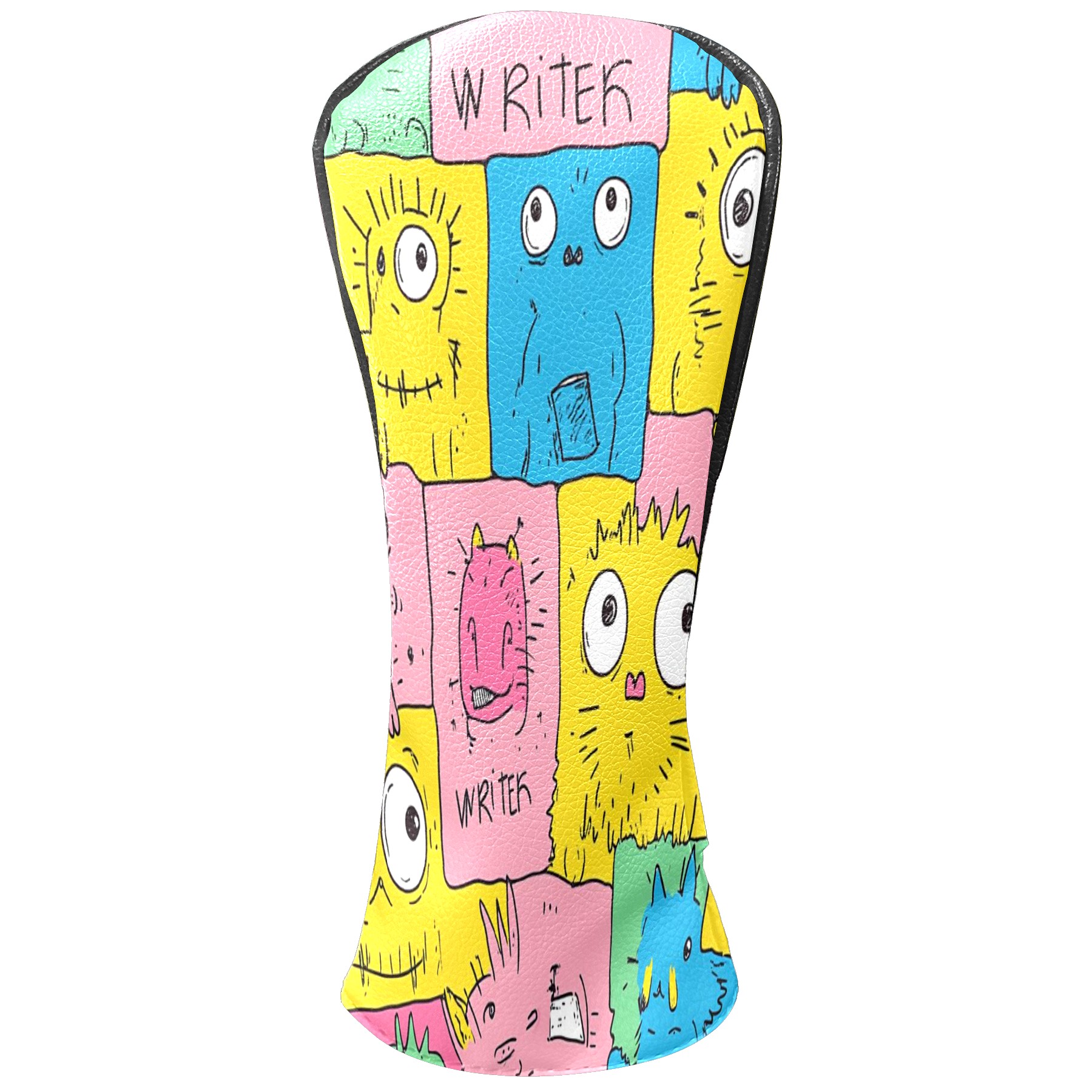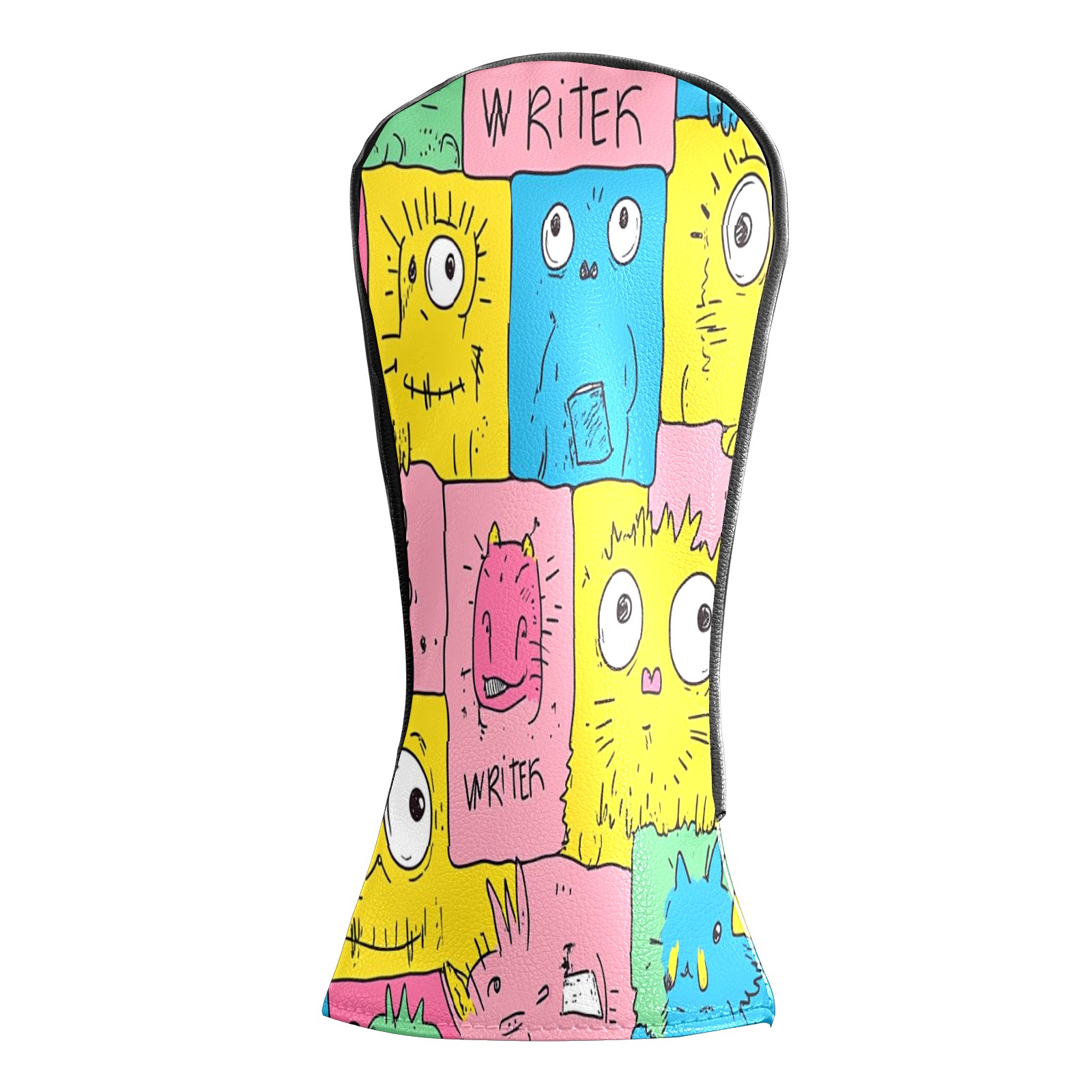 Golf Club Head Cover, High Quality PU Leather Driver and Wood Club Head Cover with Anti-Scratch Lining, Universal Gift for Men and Women Quirky Block Monster Pattern