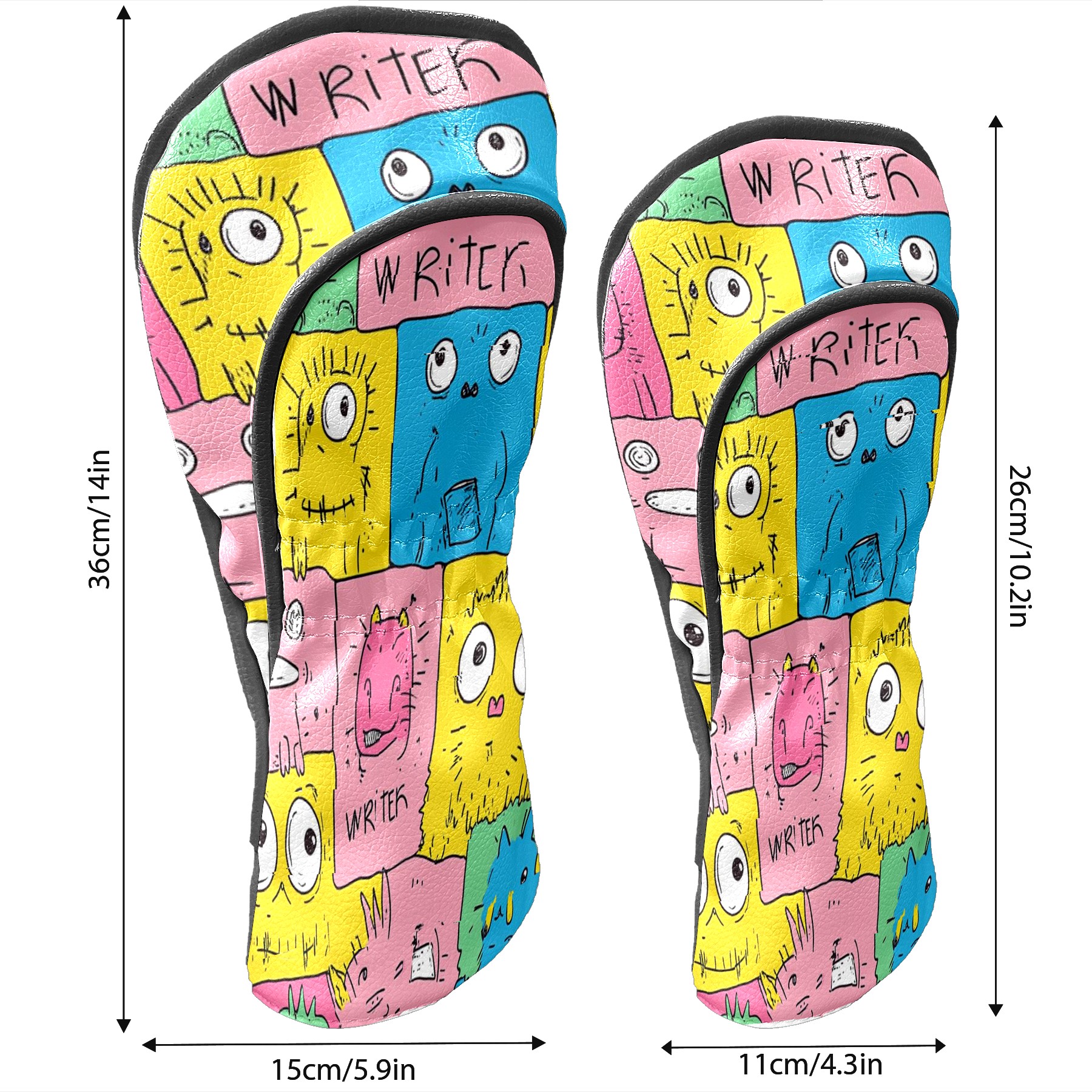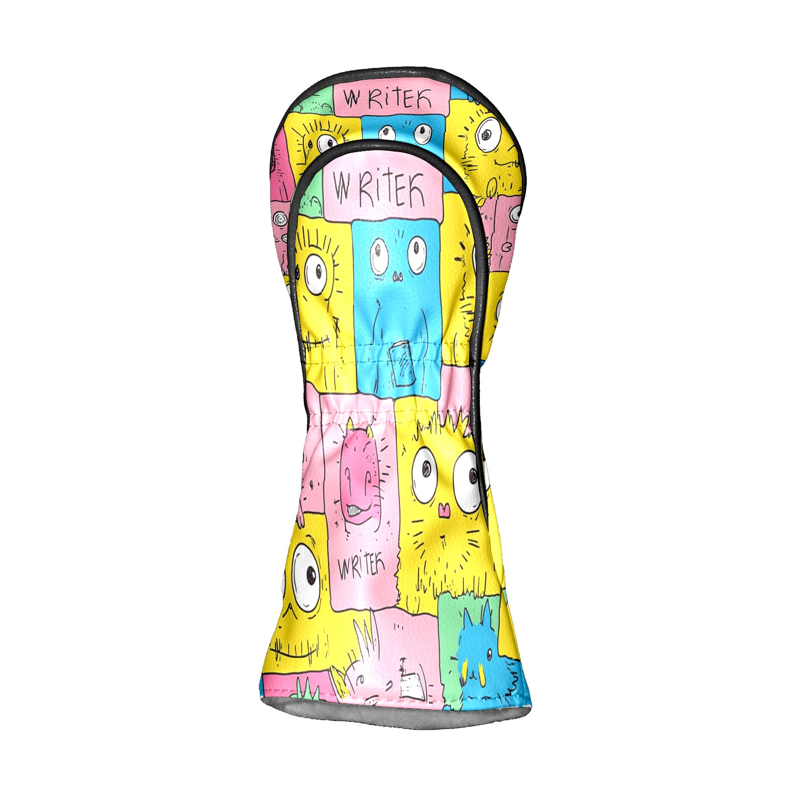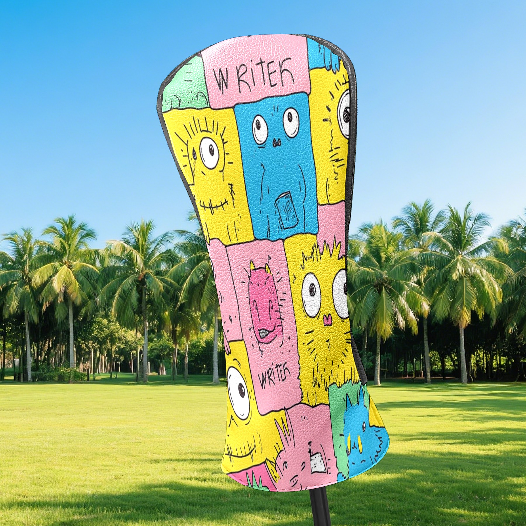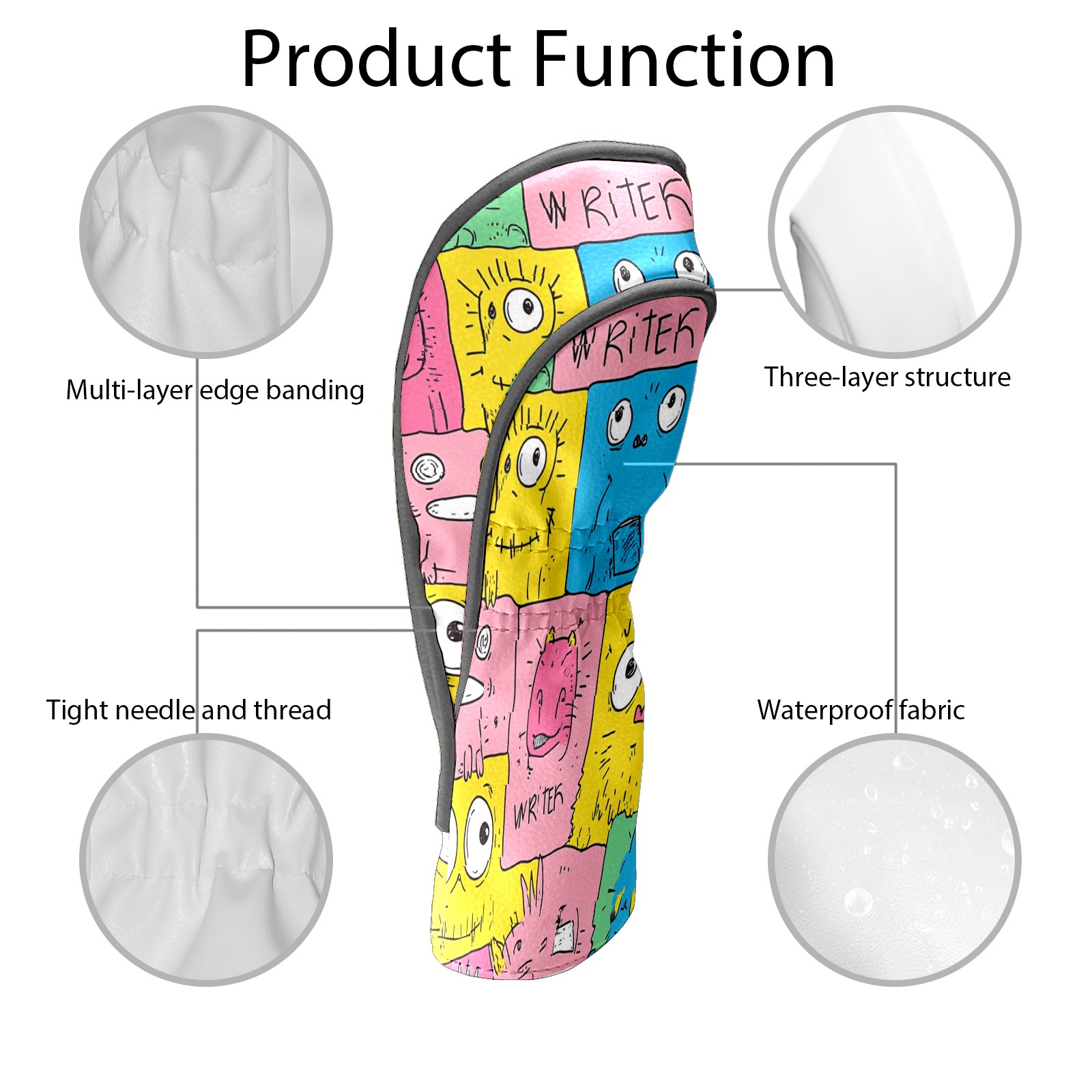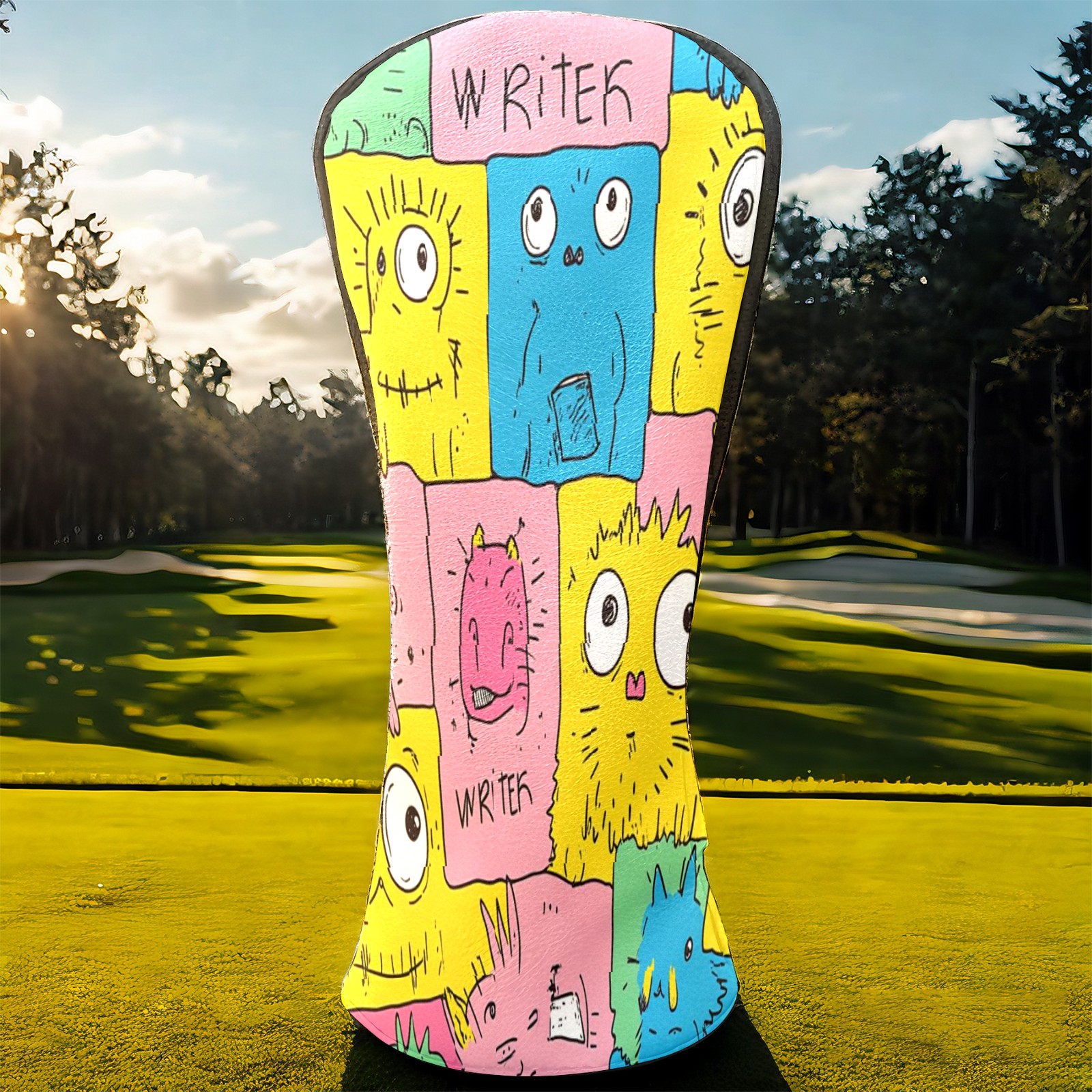Golf Club Head Cover, High Quality PU Leather Driver and Wood Club Head Cover with Anti-Scratch Lining, Universal Gift for Men and Women Quirky Block Monster Pattern