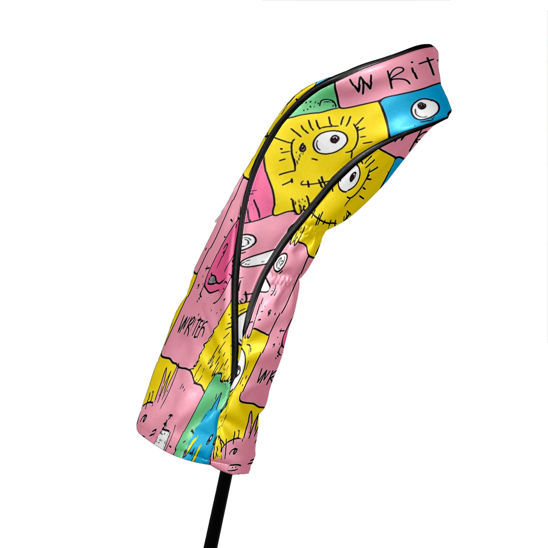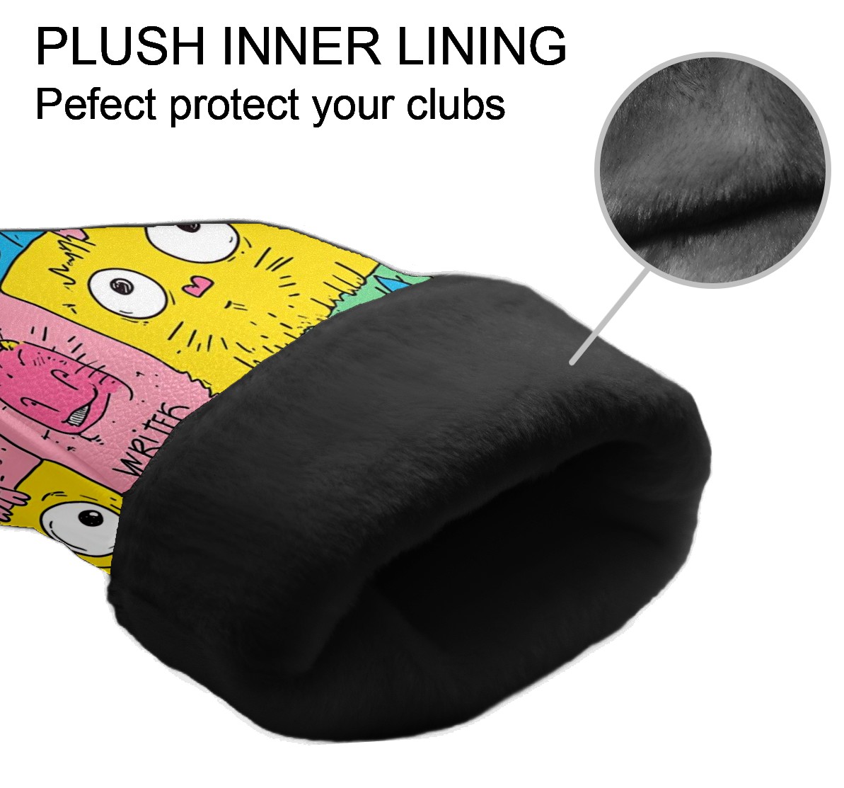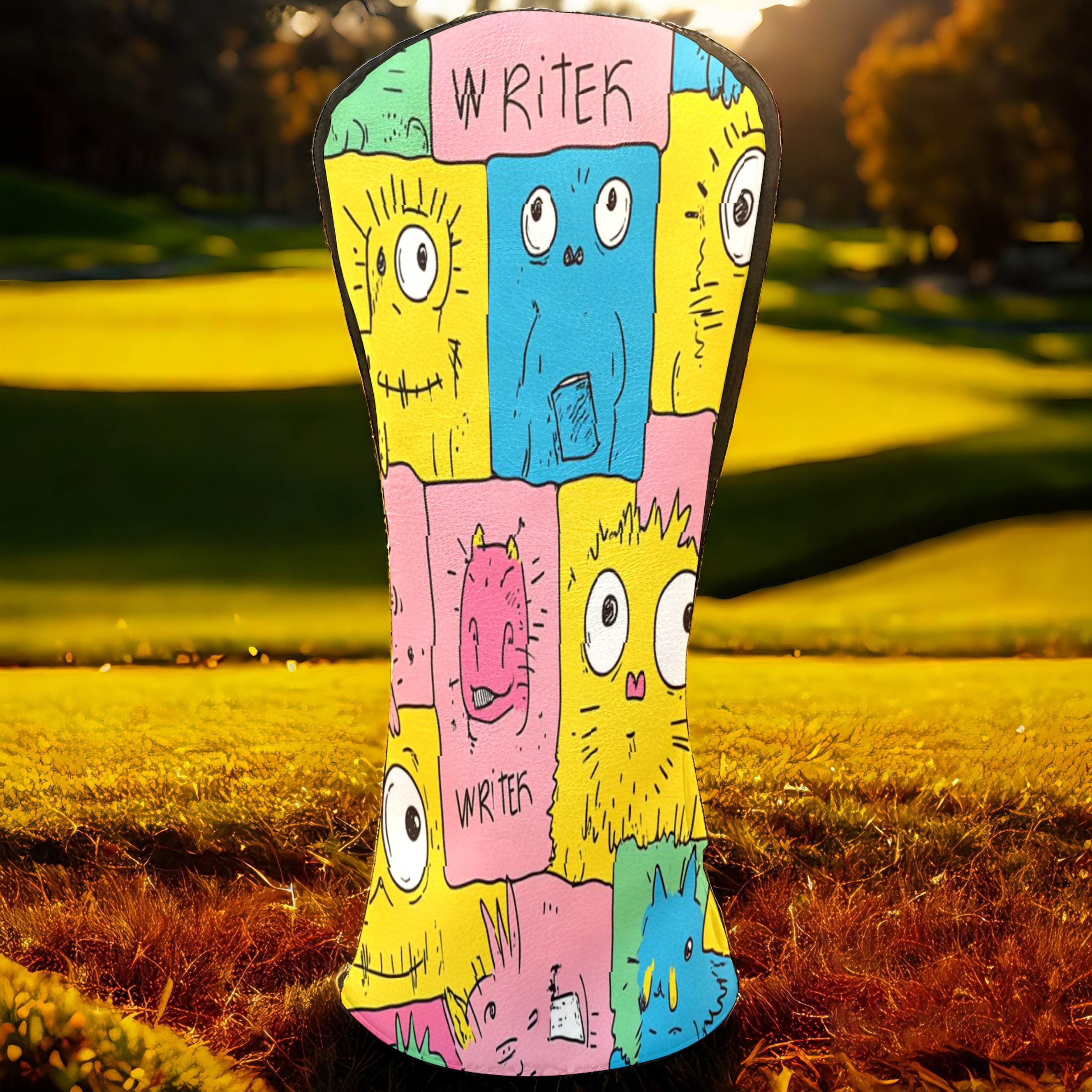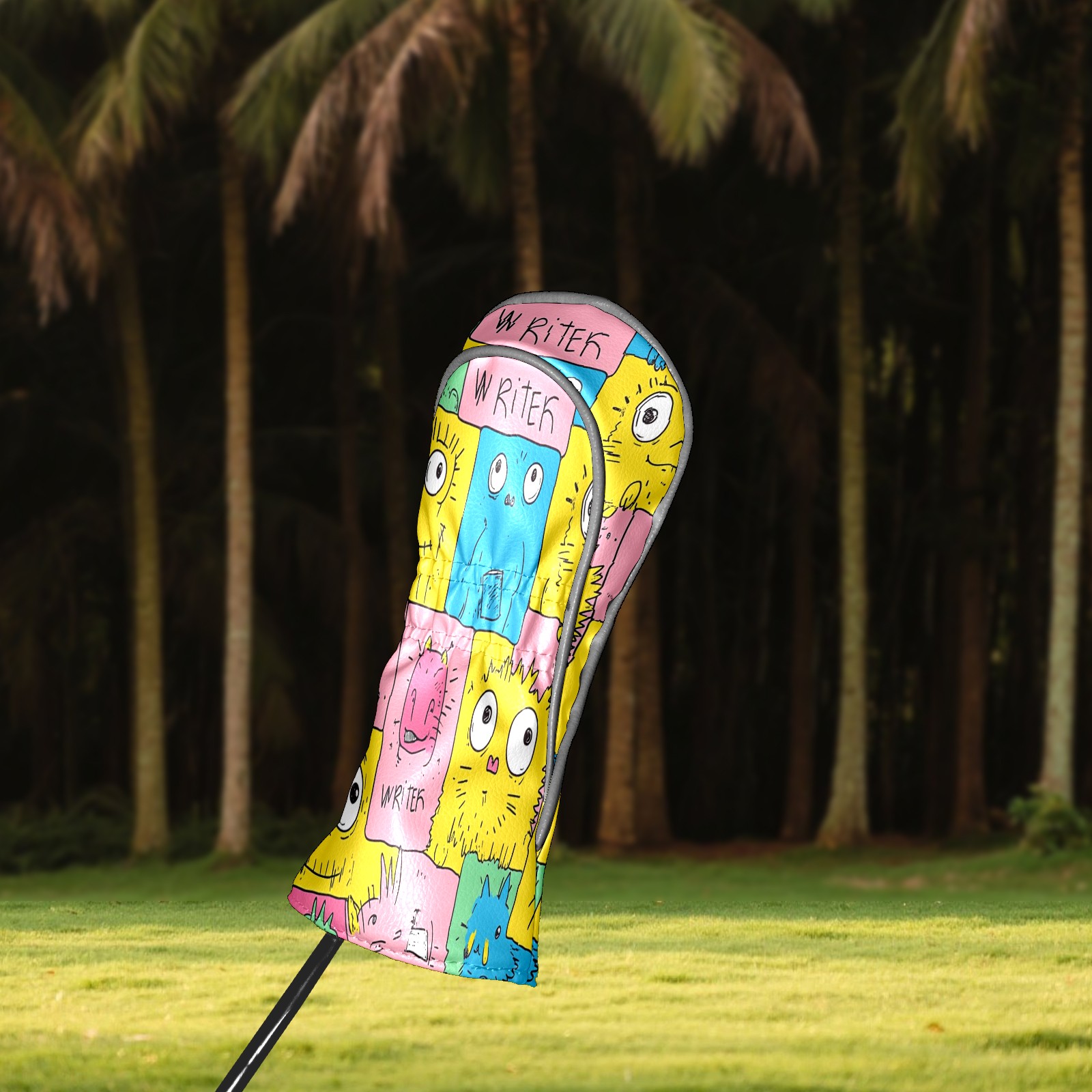 Golf Club Head Cover, High Quality PU Leather Driver and Wood Club Head Cover with Anti-Scratch Lining, Universal Gift for Men and Women Quirky Block Monster Pattern