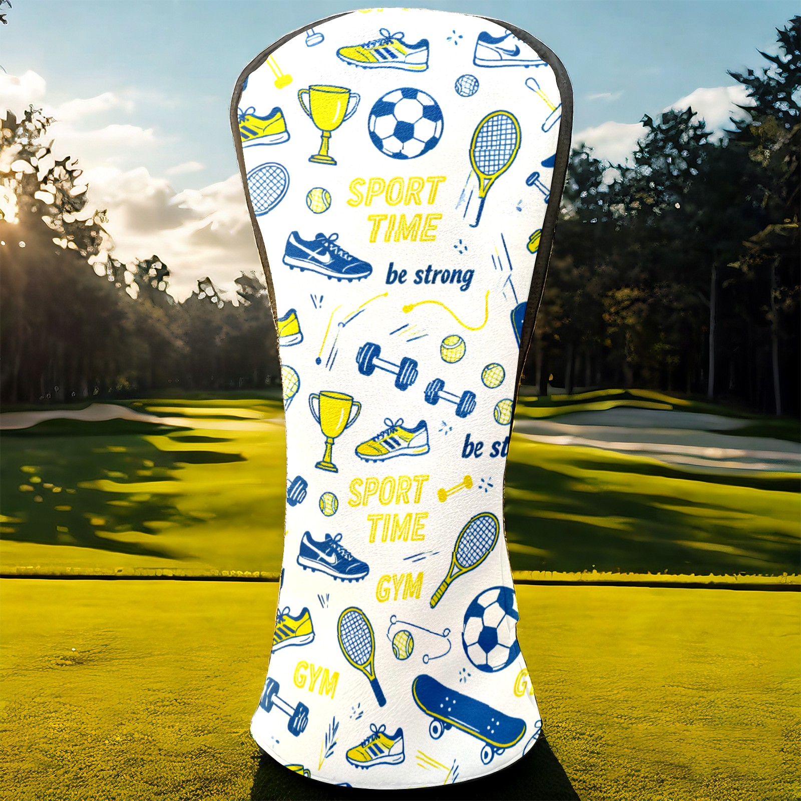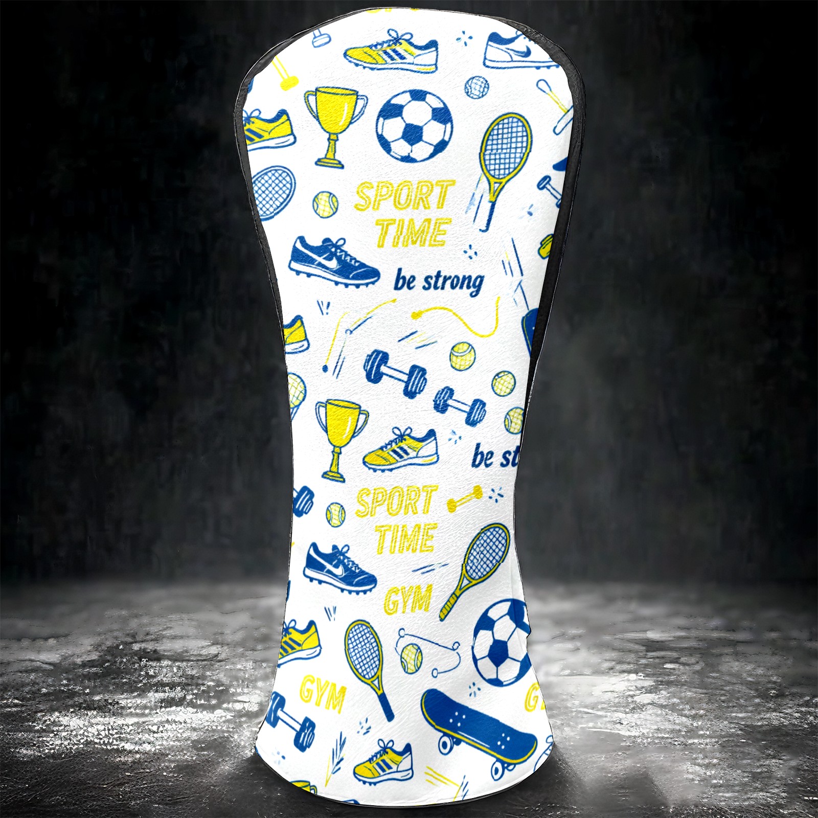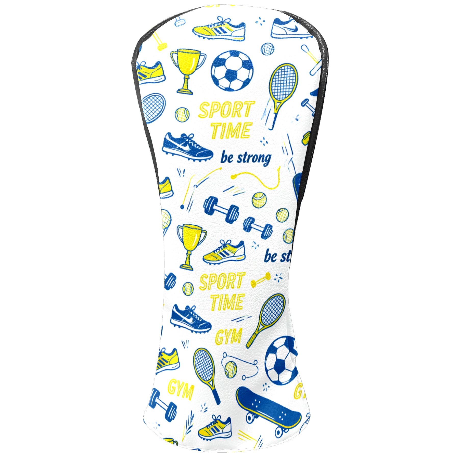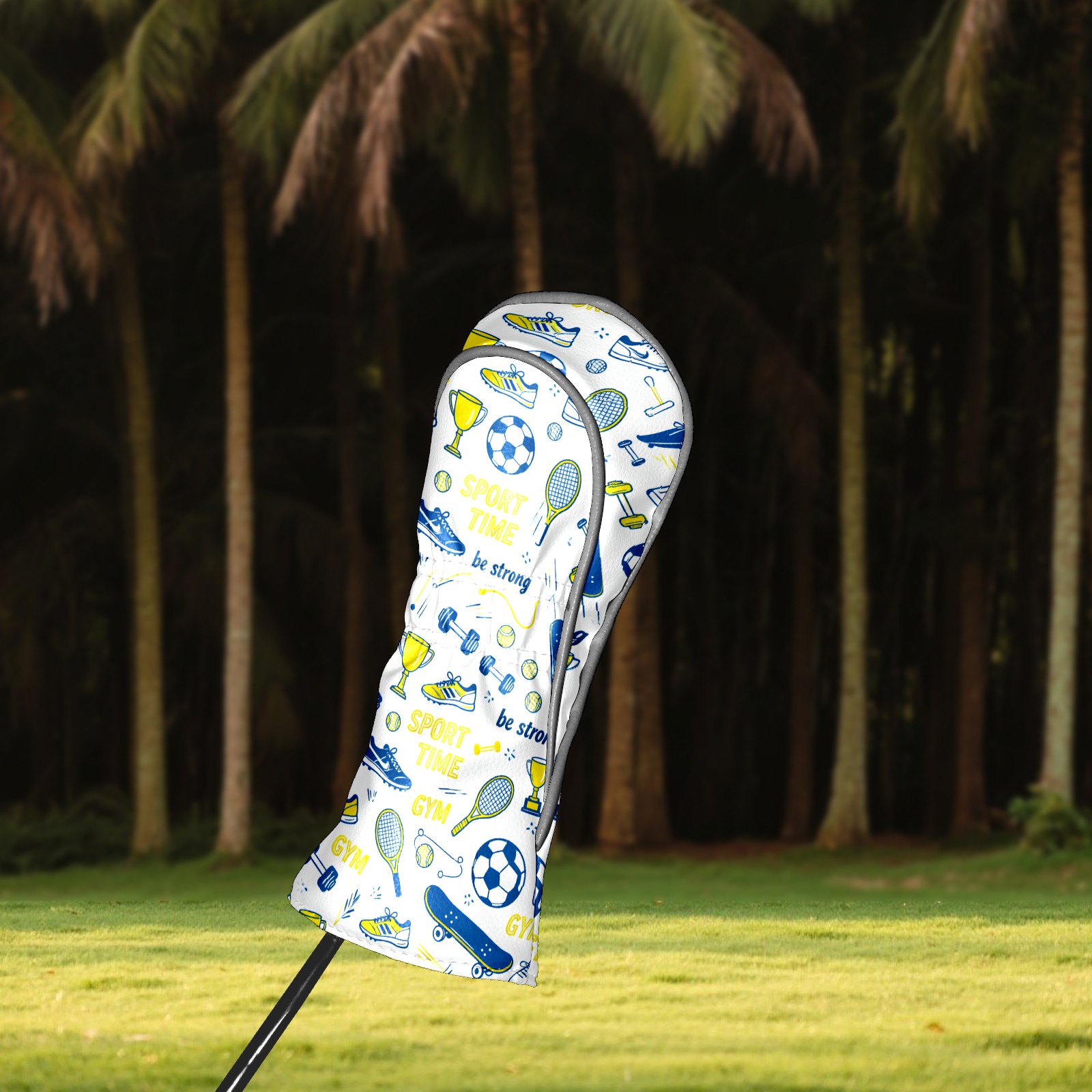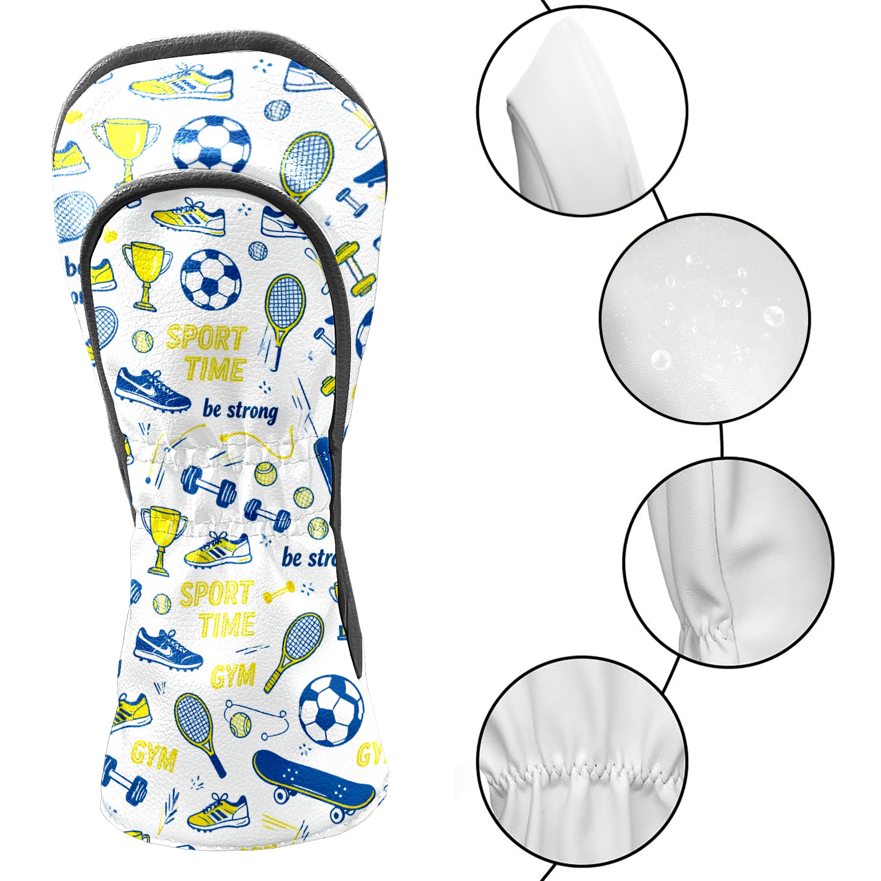 Golf Club Head Cover, High Quality PU Leather Driver and Wood Club Head Cover with Anti-Scratch Lining, Universal Gift for Men and Women Blue White Sports Elements