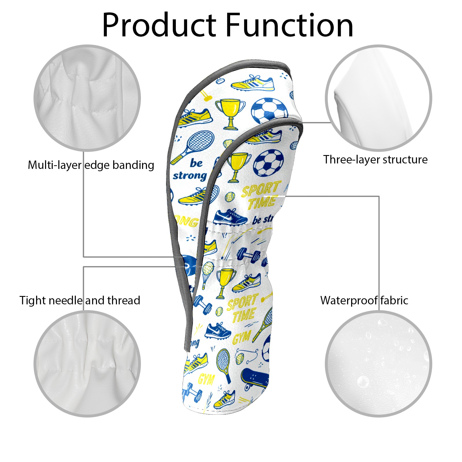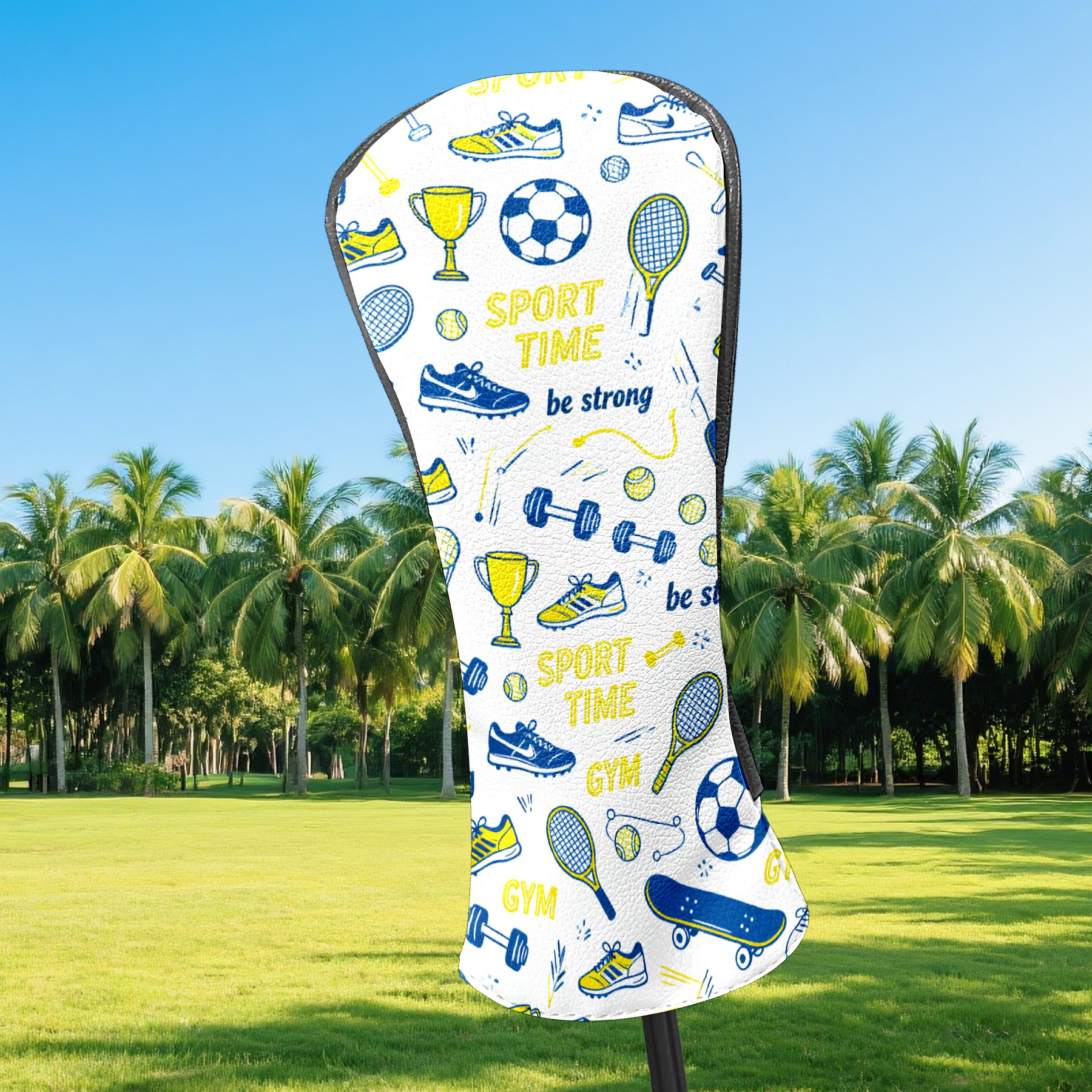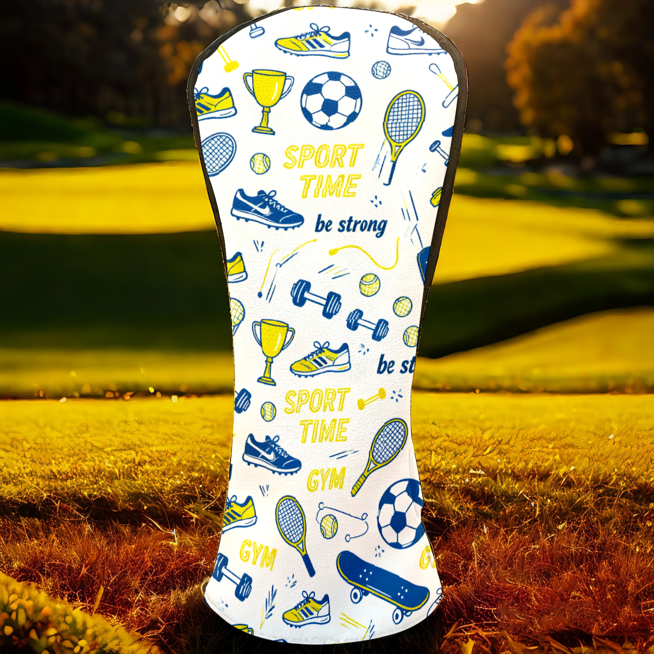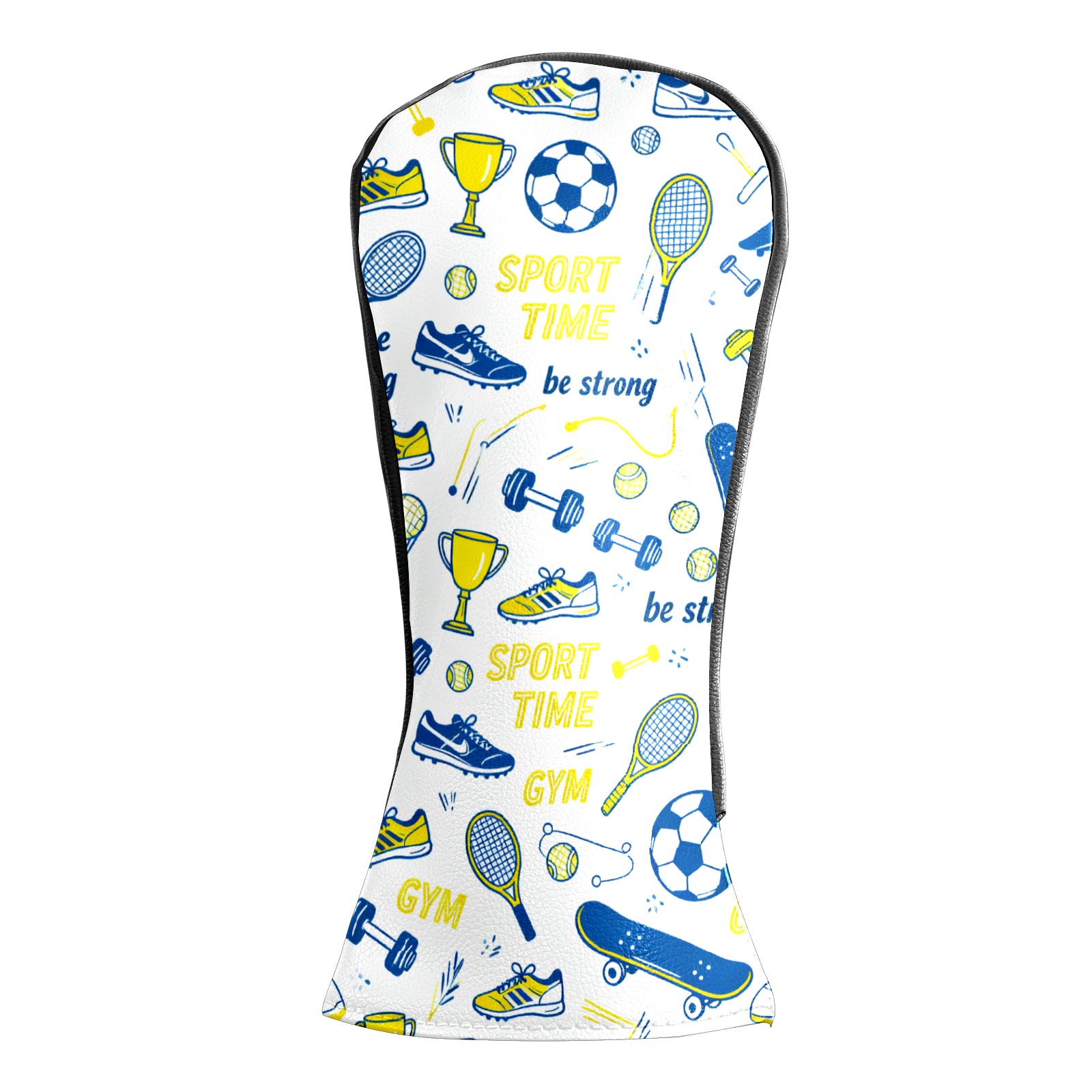 Golf Club Head Cover, High Quality PU Leather Driver and Wood Club Head Cover with Anti-Scratch Lining, Universal Gift for Men and Women Blue White Sports Elements