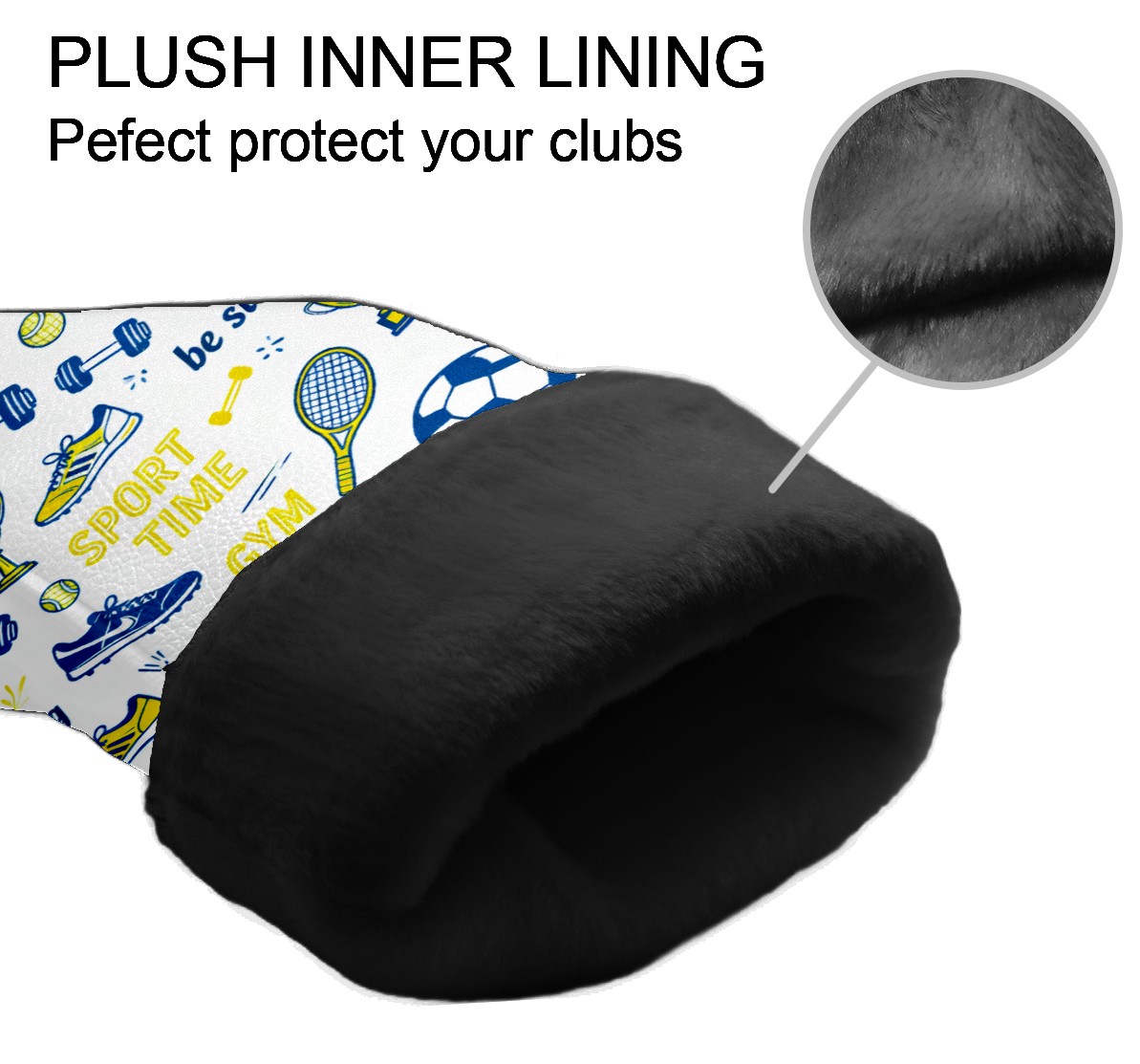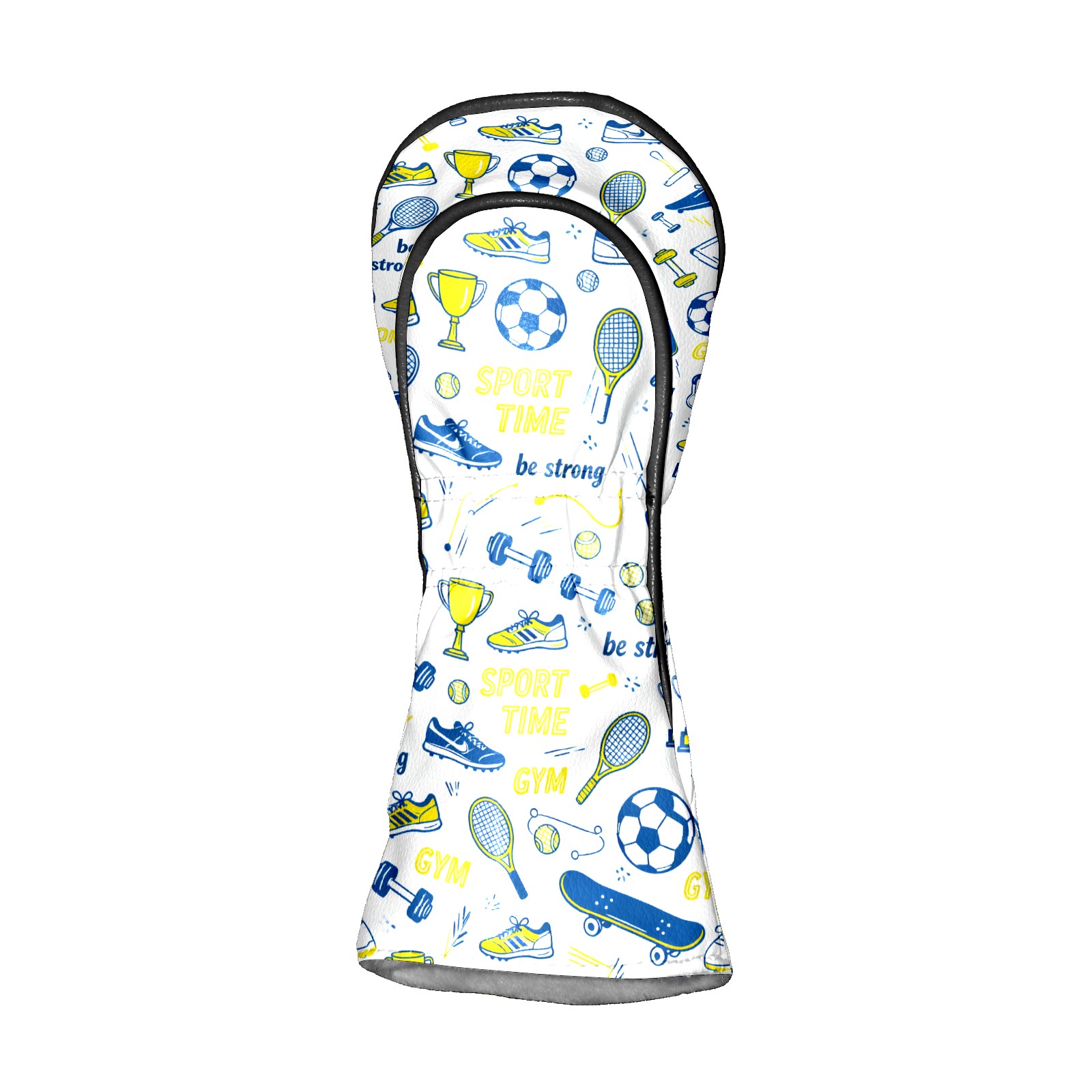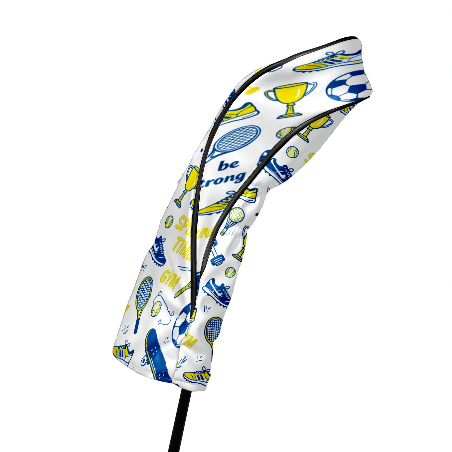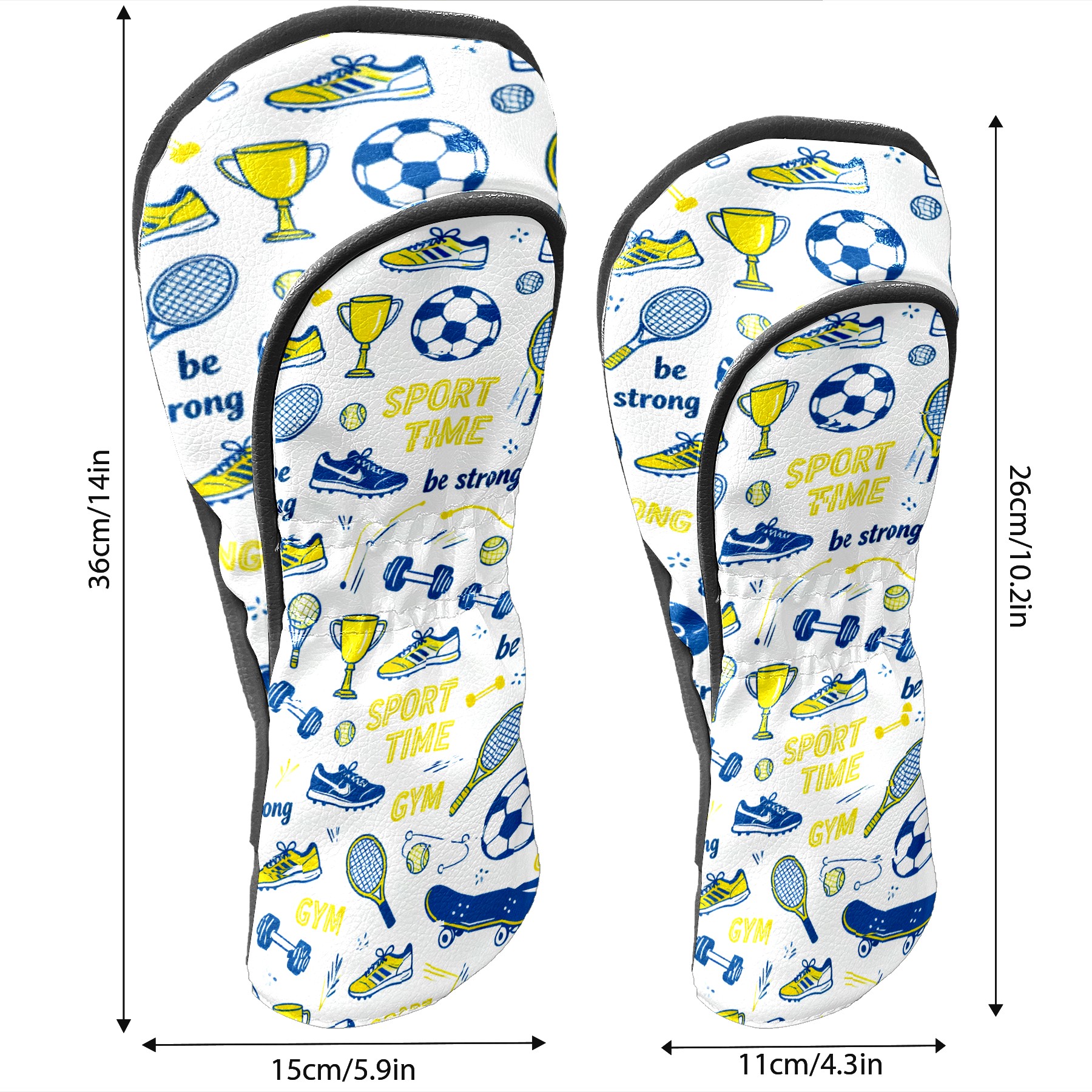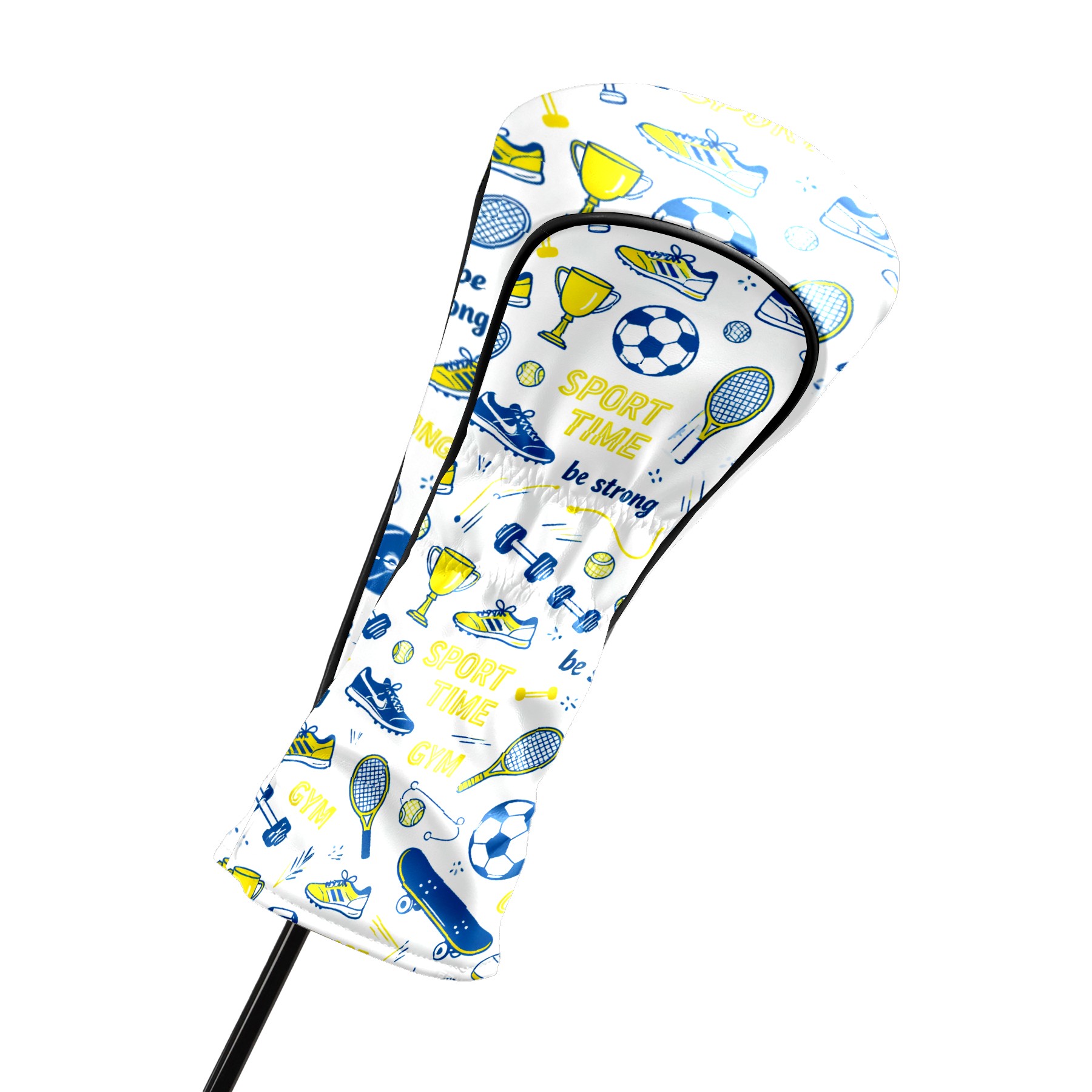 Golf Club Head Cover, High Quality PU Leather Driver and Wood Club Head Cover with Anti-Scratch Lining, Universal Gift for Men and Women Blue White Sports Elements