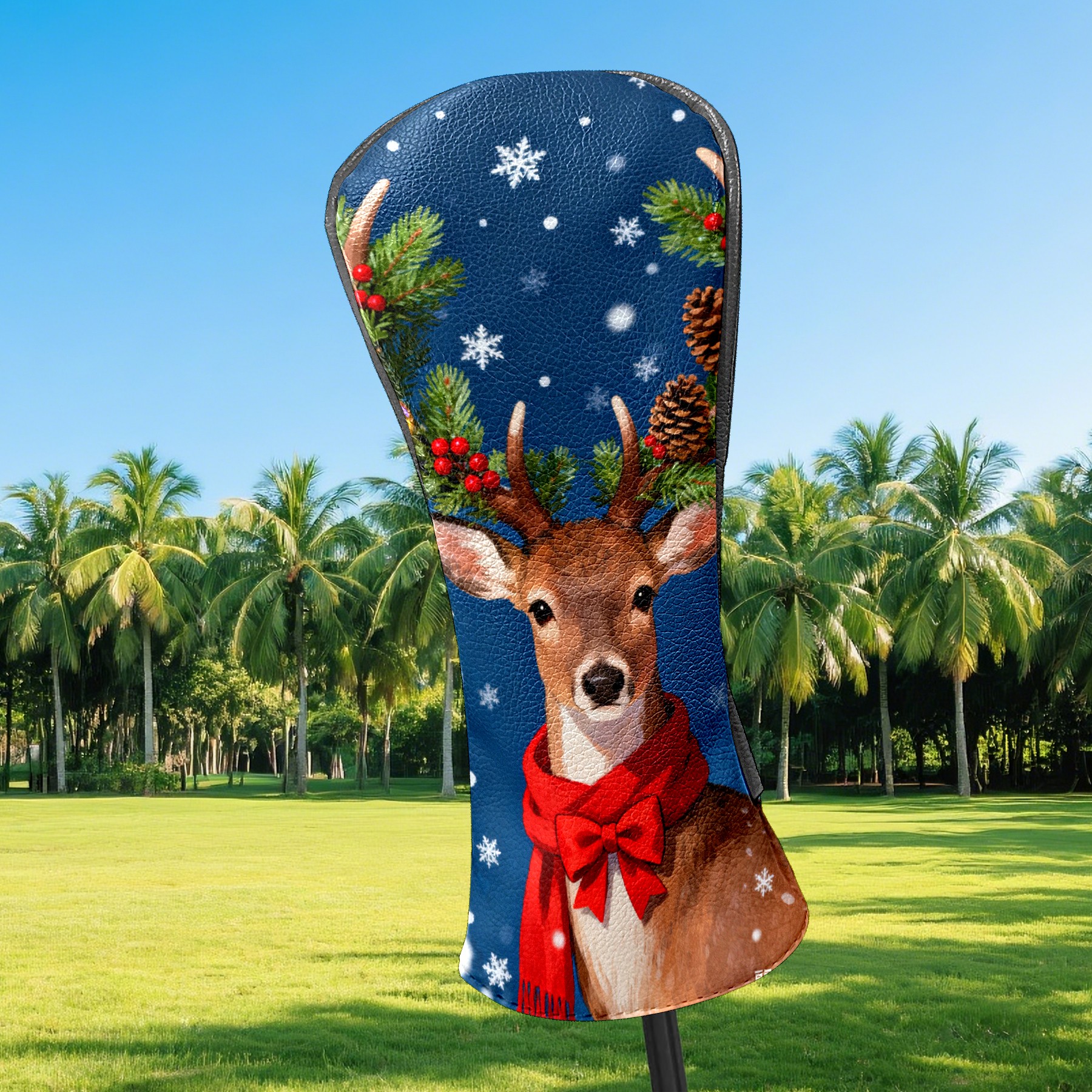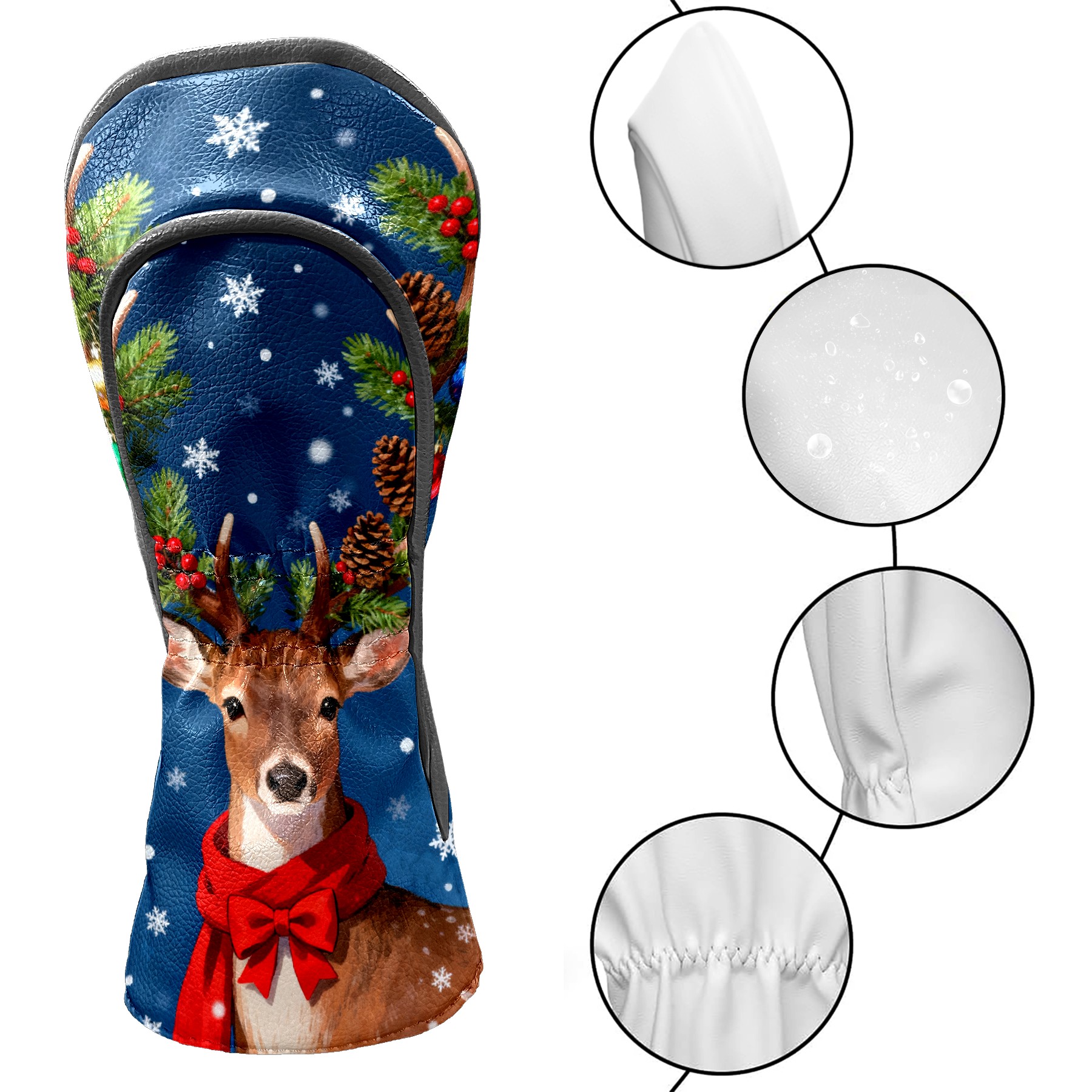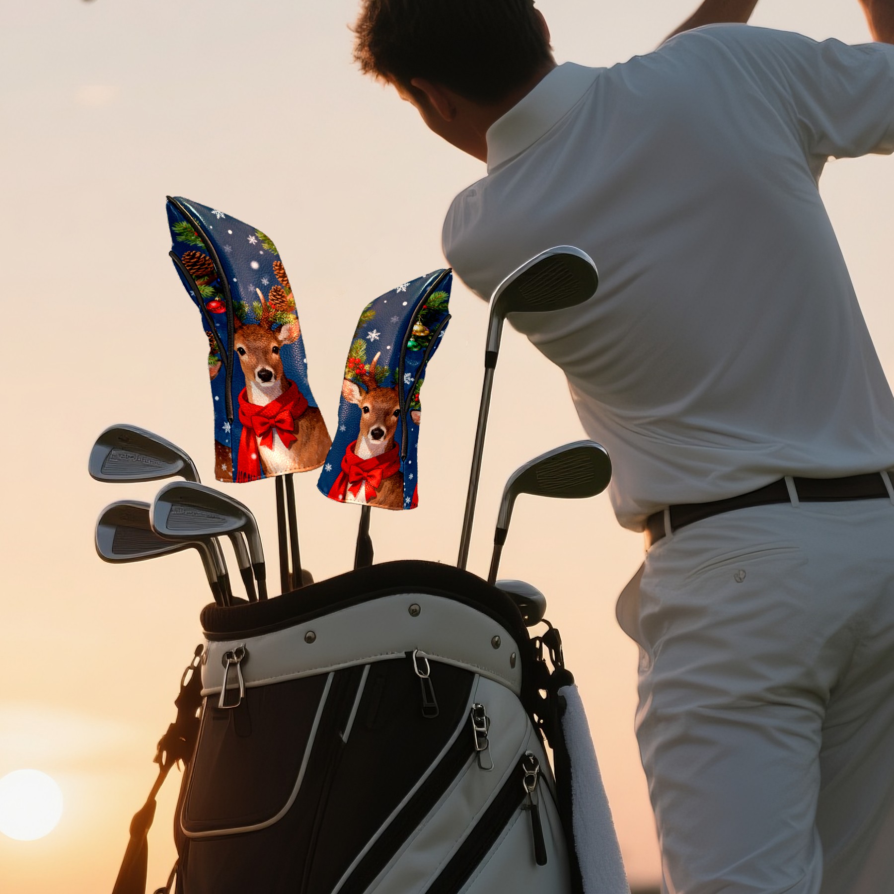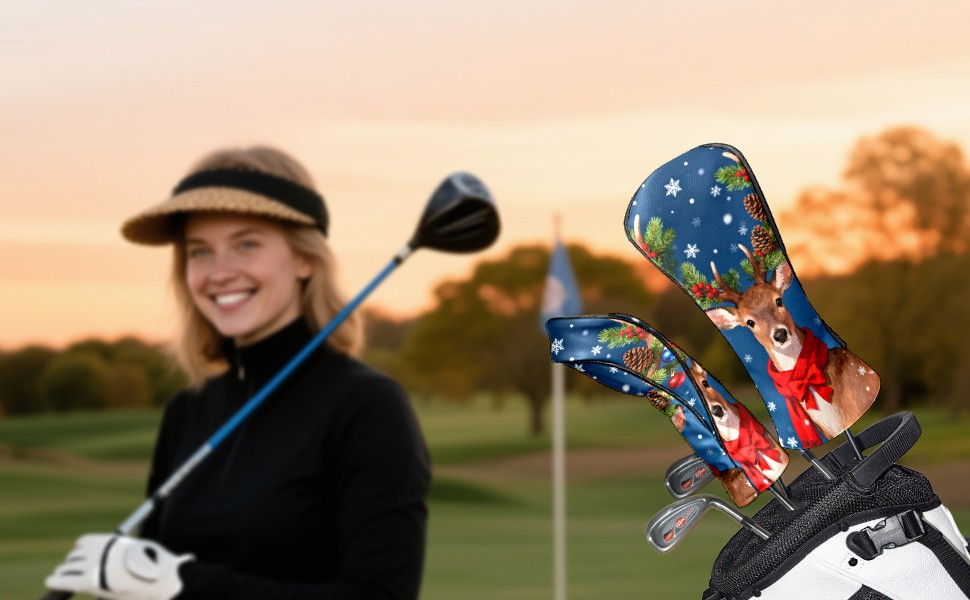 Golf Club Head Cover, High Quality PU Leather Driver and Wood Club Head Cover with Anti-Scratch Lining, Universal Gift for Men and Women Christmas Deer
