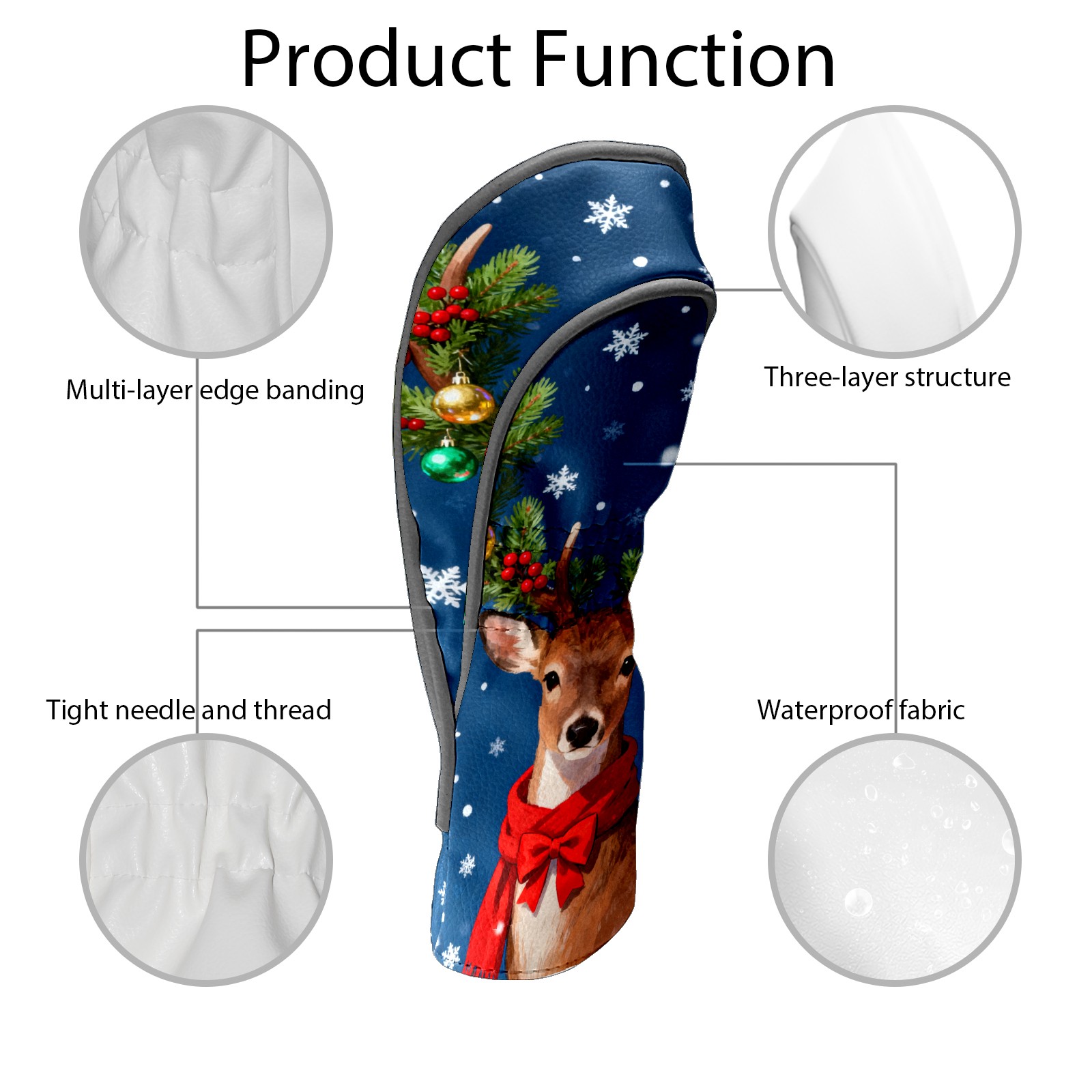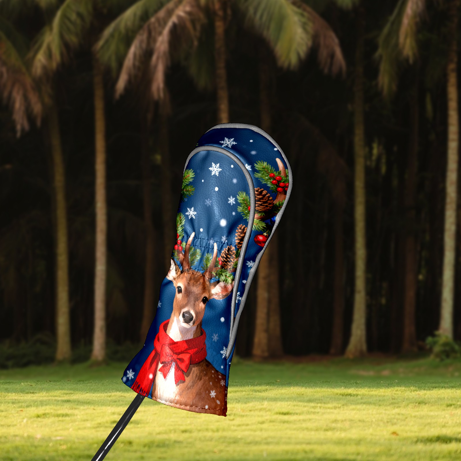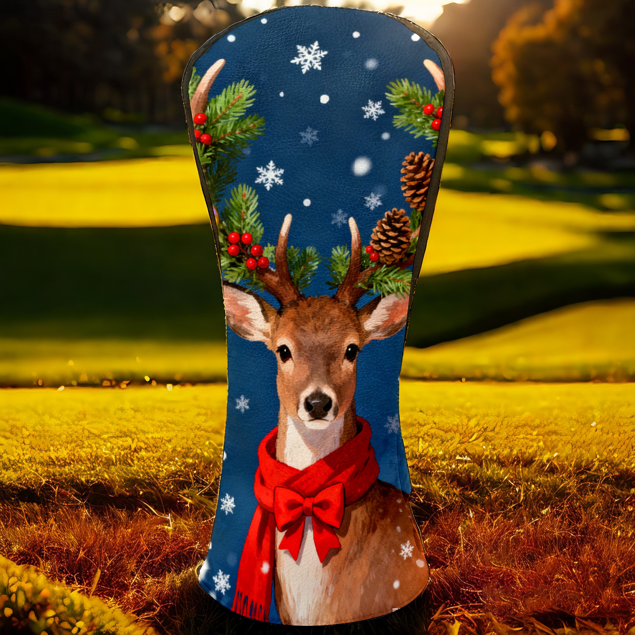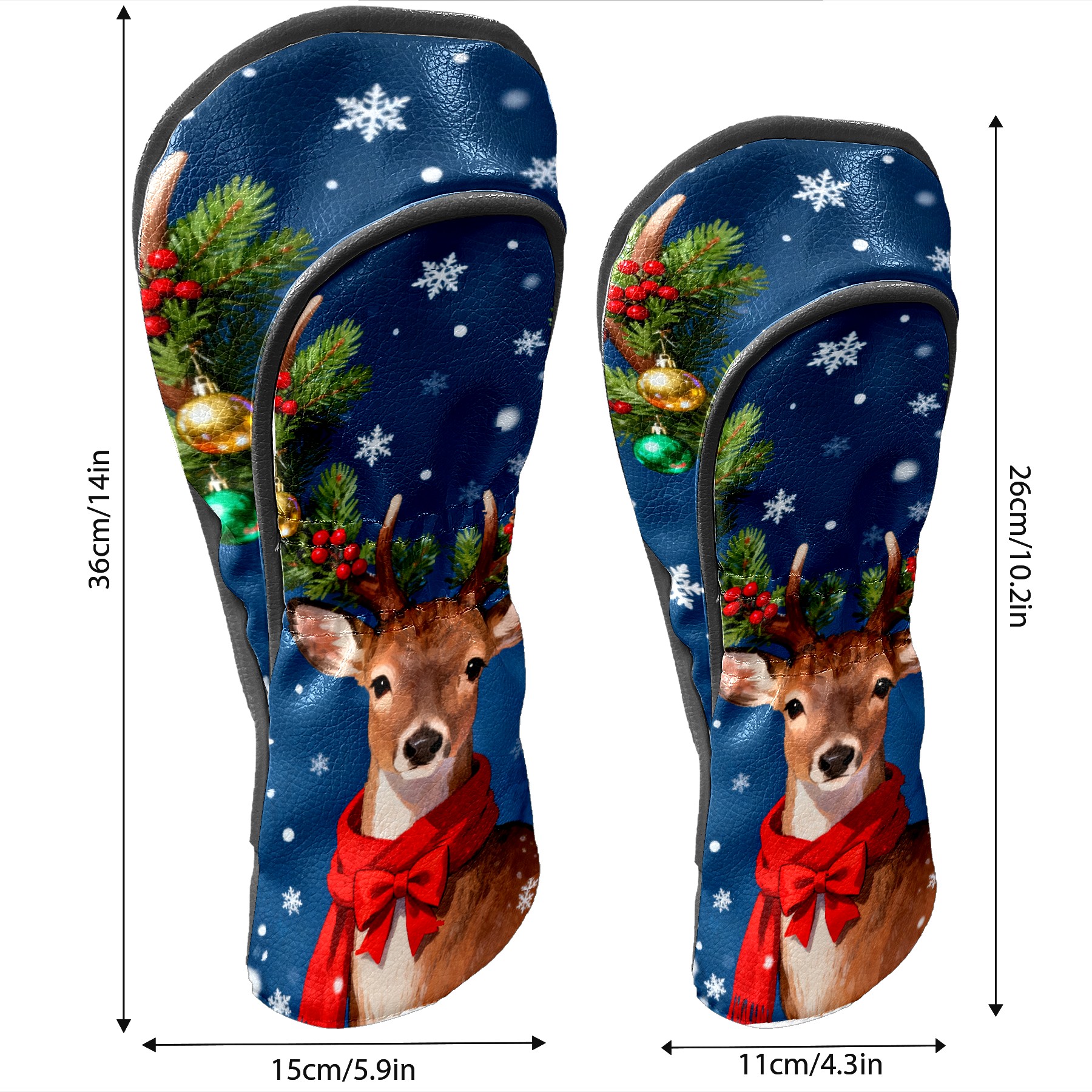 Golf Club Head Cover, High Quality PU Leather Driver and Wood Club Head Cover with Anti-Scratch Lining, Universal Gift for Men and Women Christmas Deer