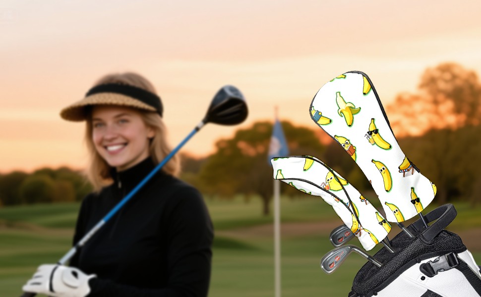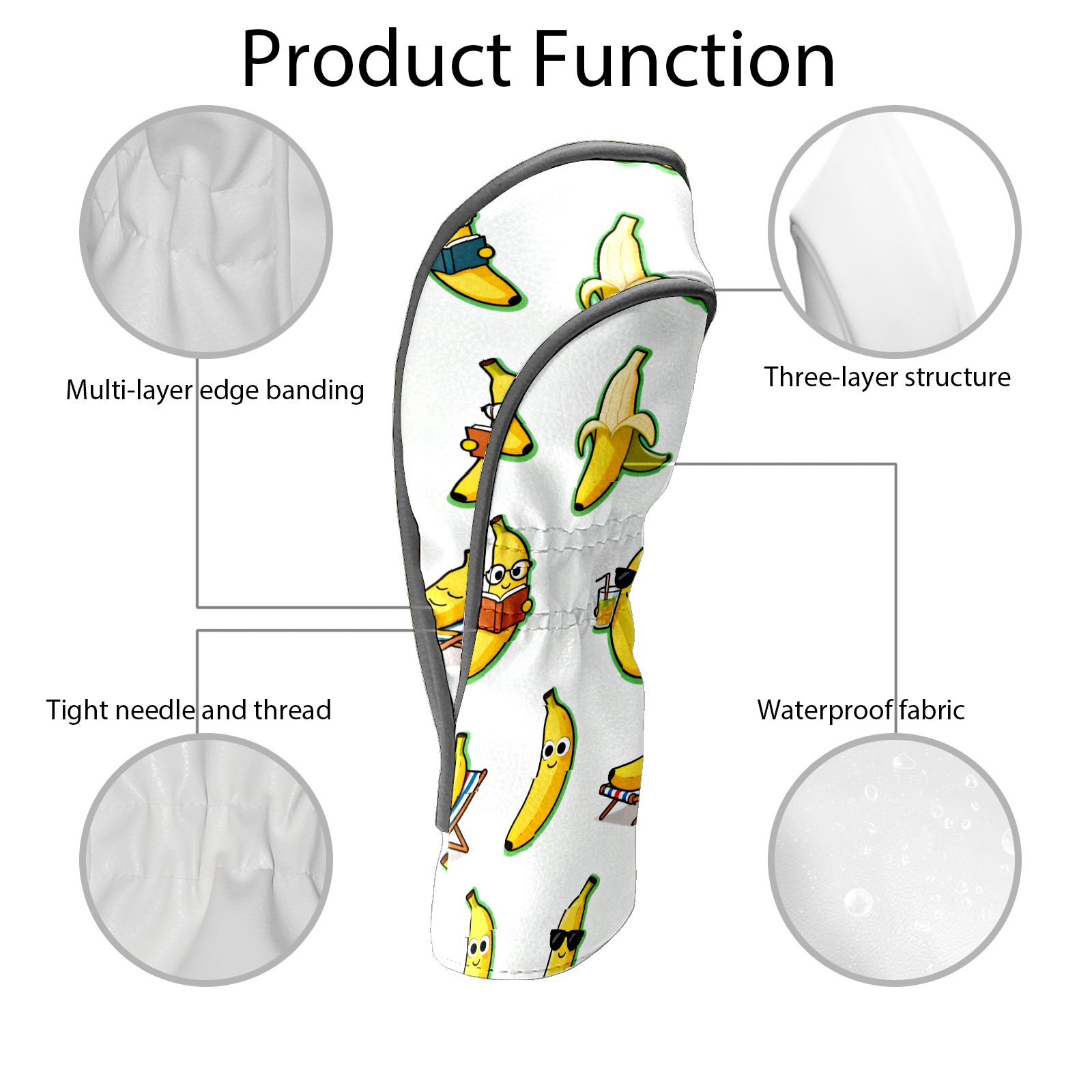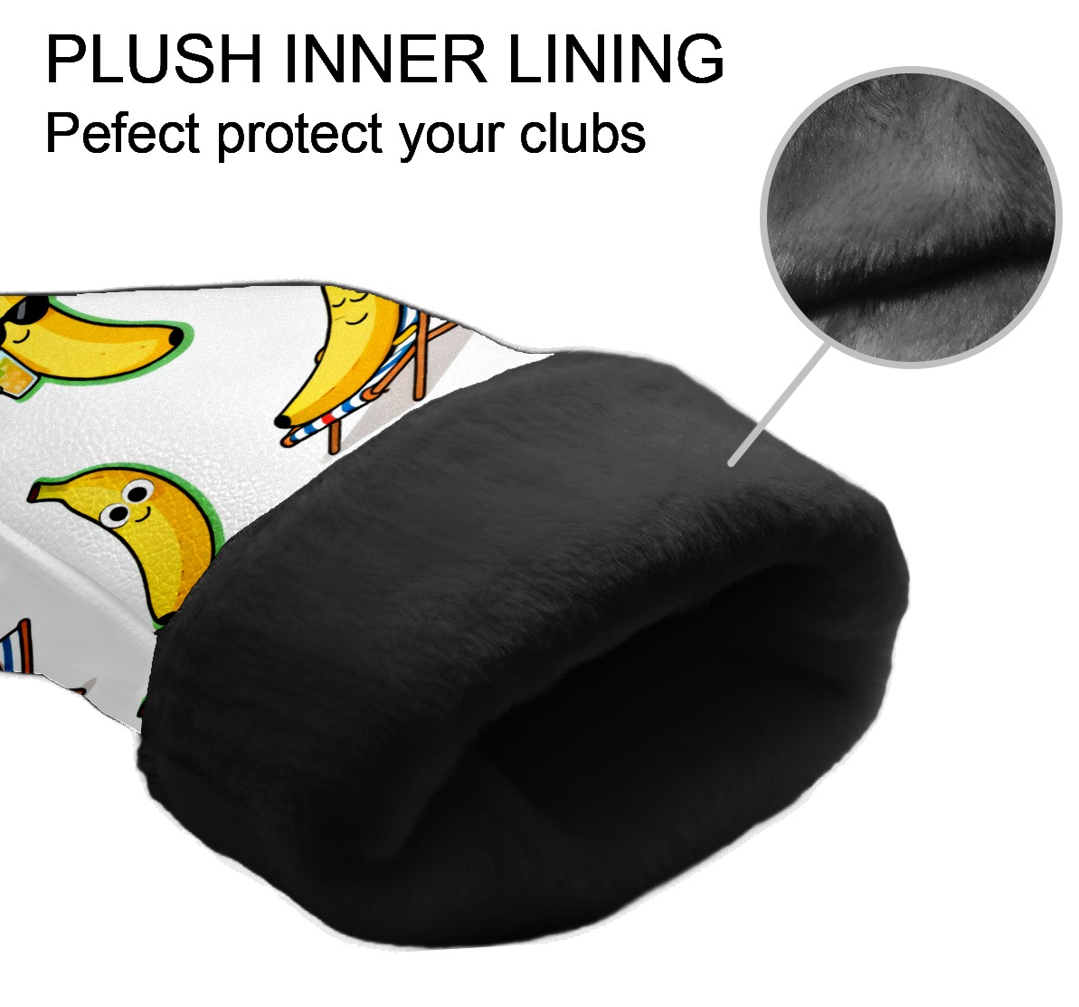 Golf Club Head Cover, High Quality PU Leather Driver and Wood Club Head Cover with Anti-Scratch Lining, Universal Gift for Men and Women Fun Pattern