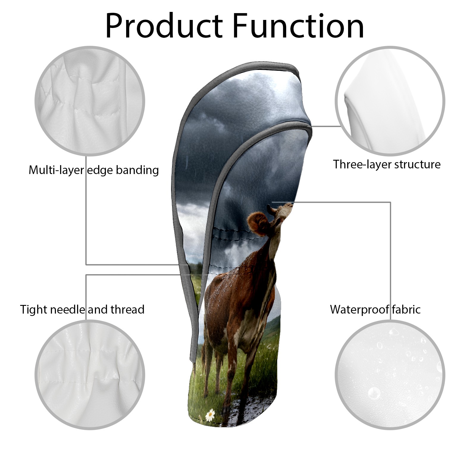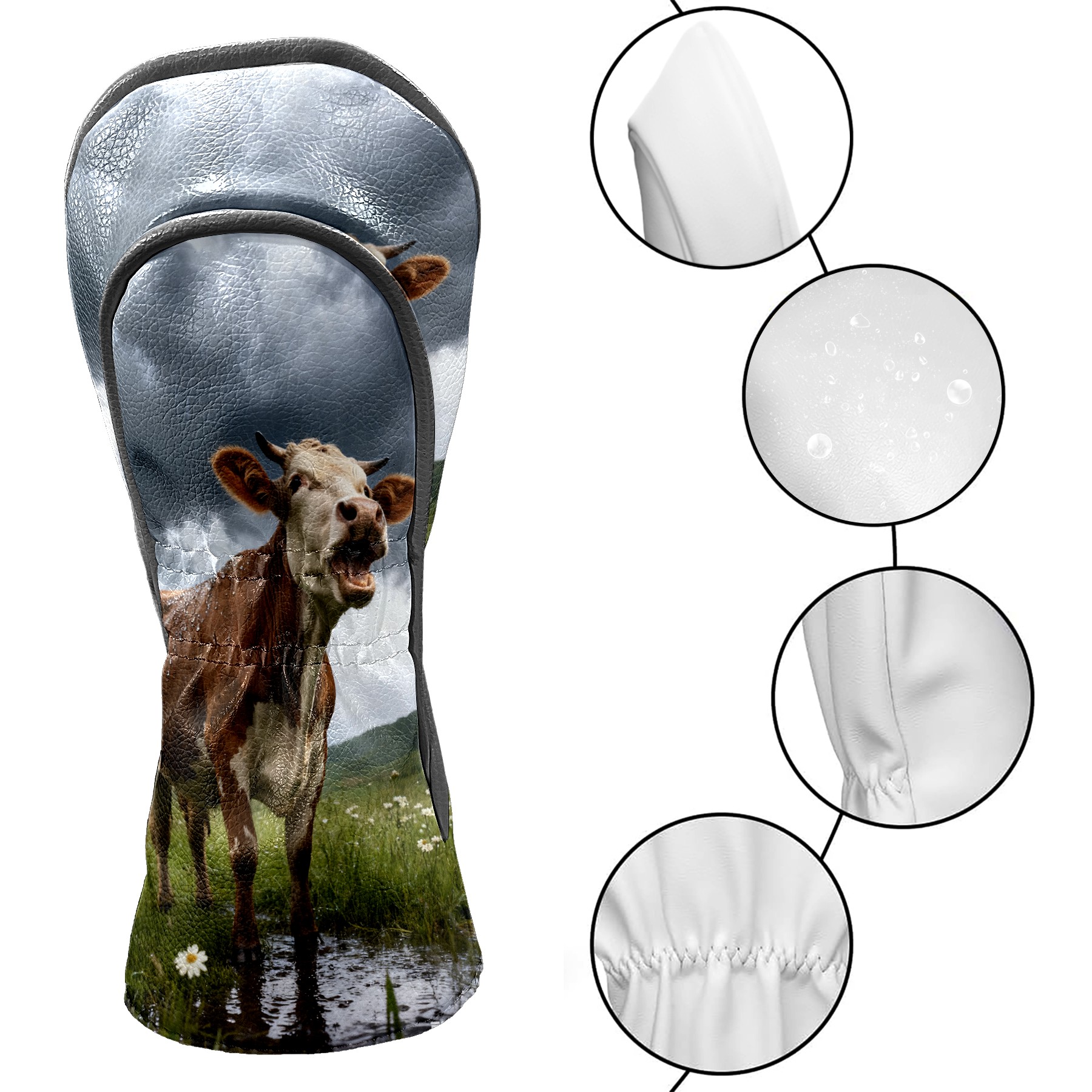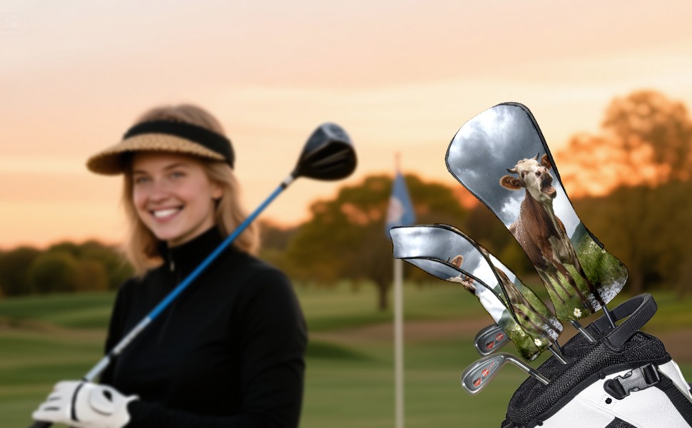 Golf Club Head Cover, High Quality PU Leather Driver and Wood Club Head Cover with Anti-Scratch Lining, Universal Gift for Men and Women Cow