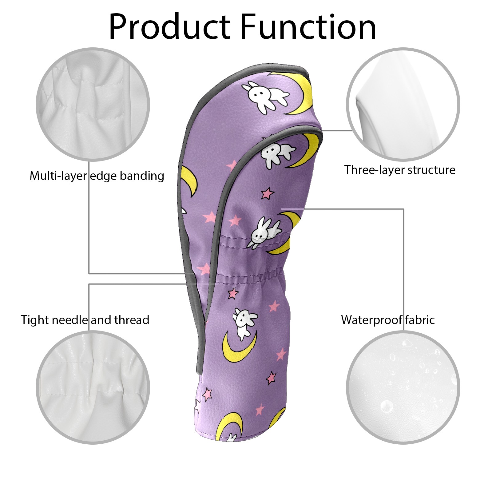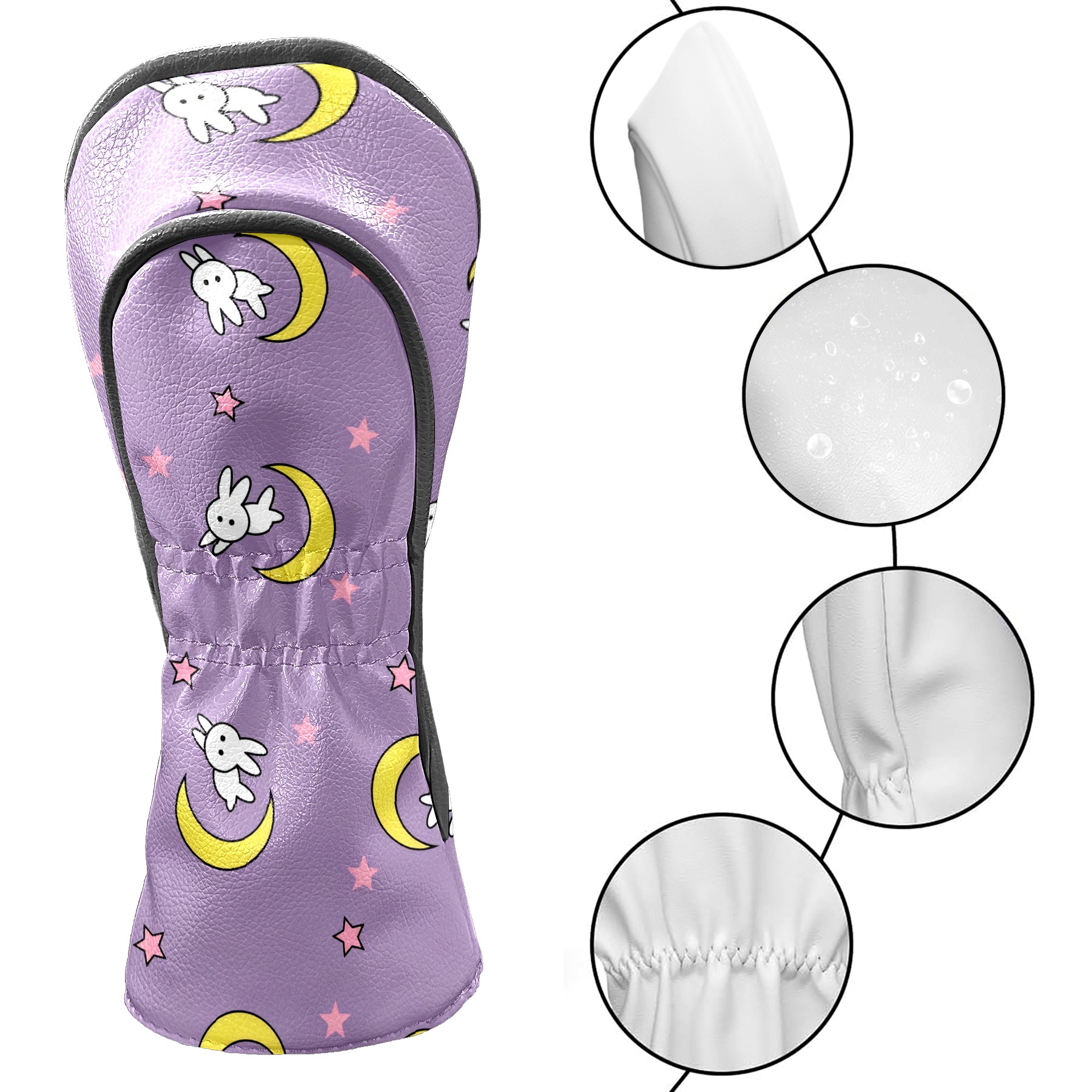 Golf Club Head Cover, High Quality PU Leather Driver and Wood Club Head Cover with Anti-Scratch Lining, Universal Gift for Men and Women Moon Rabbit 1