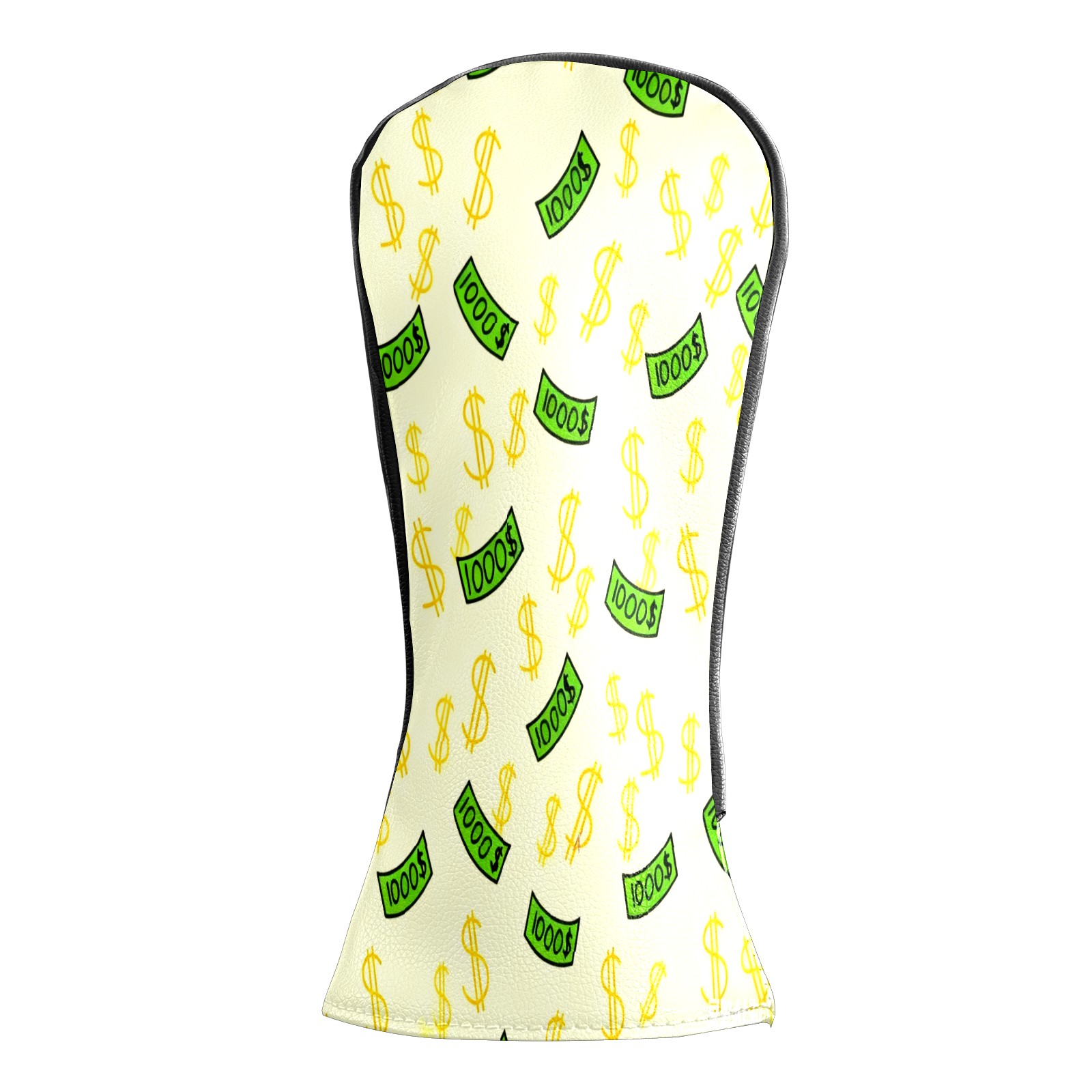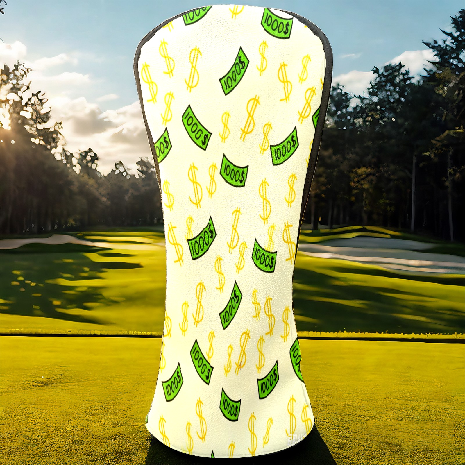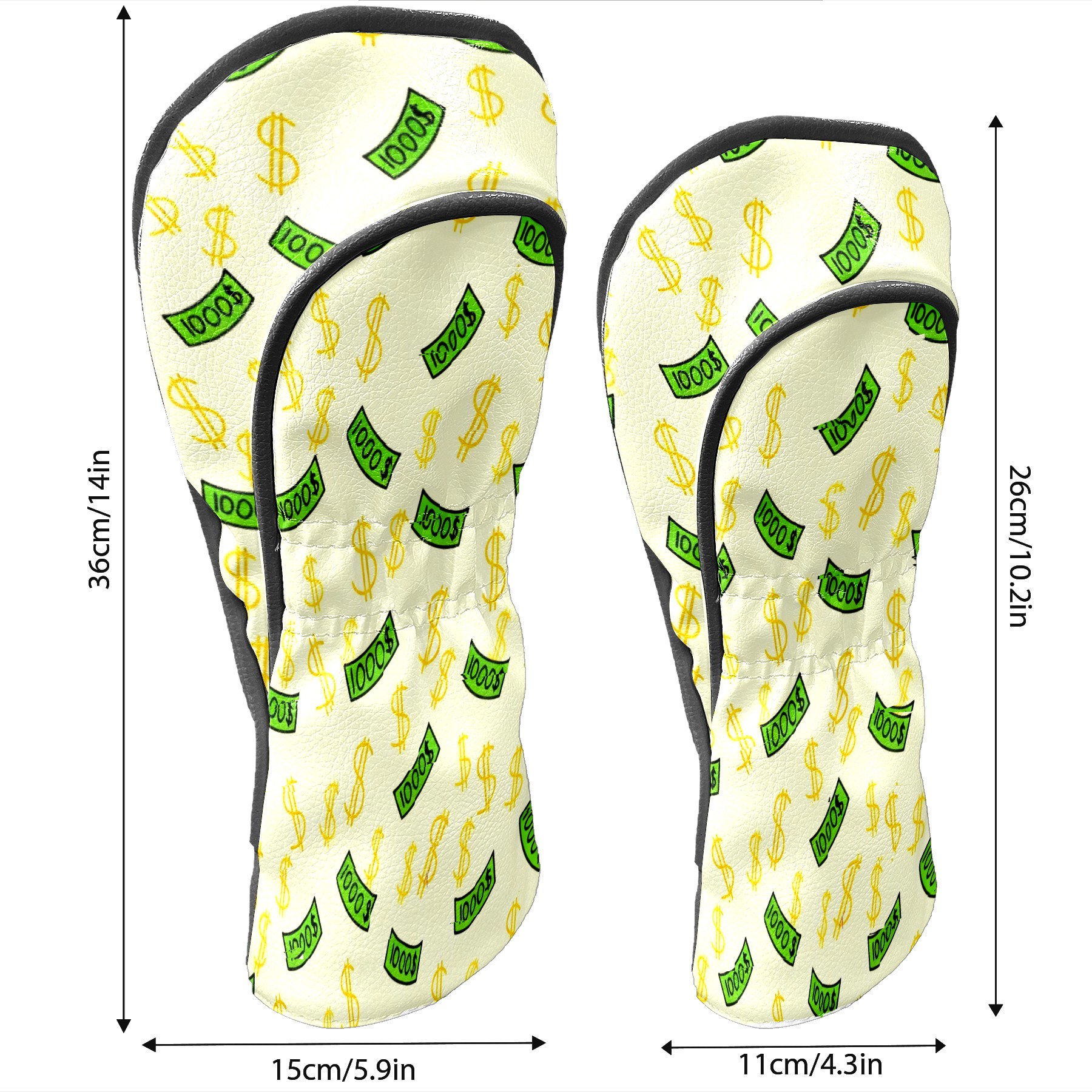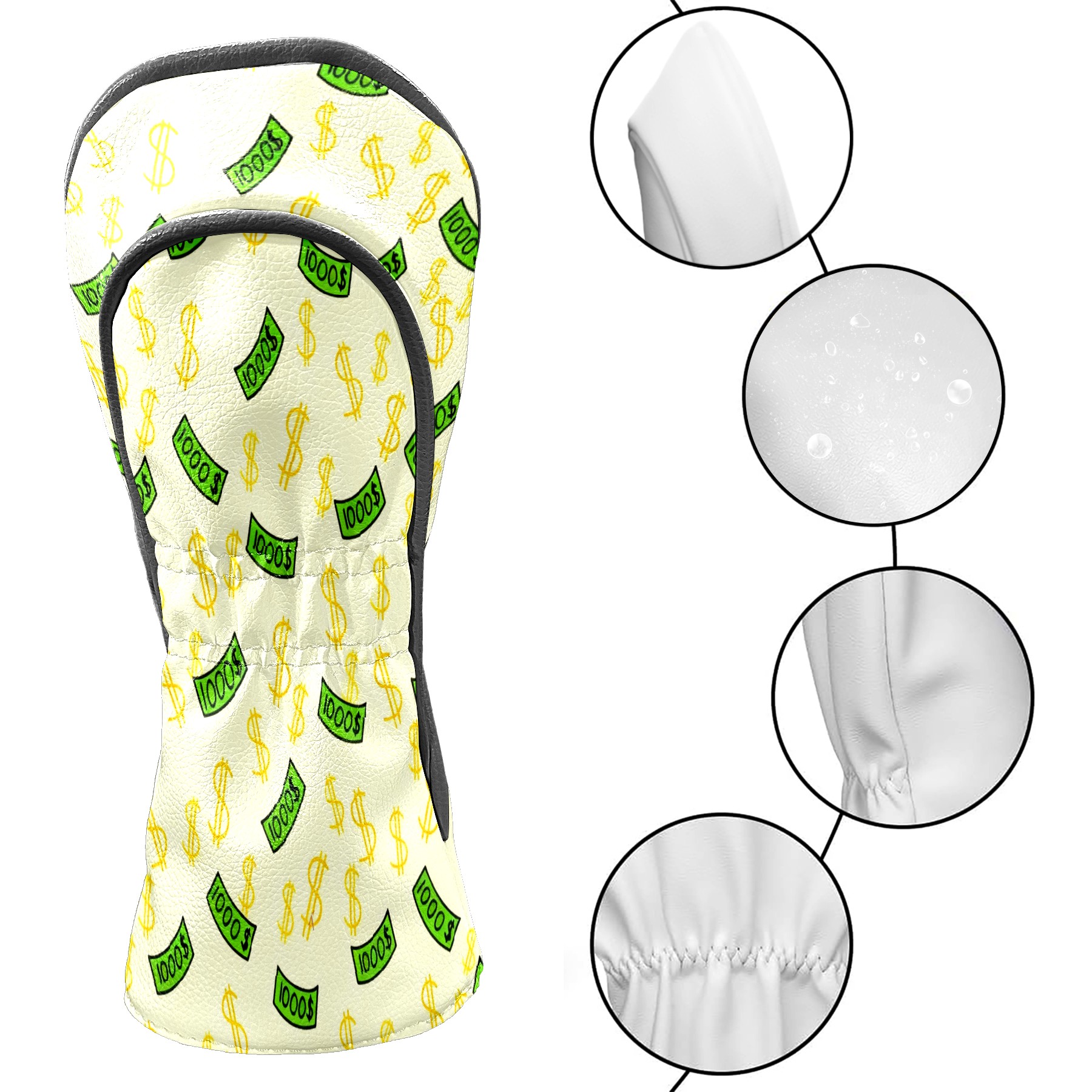 Golf Club Head Cover, High Quality PU Leather Driver and Wood Club Head Cover with Anti-Scratch Lining, Universal Gift for Men and Women US Dollar Banknote Symbol