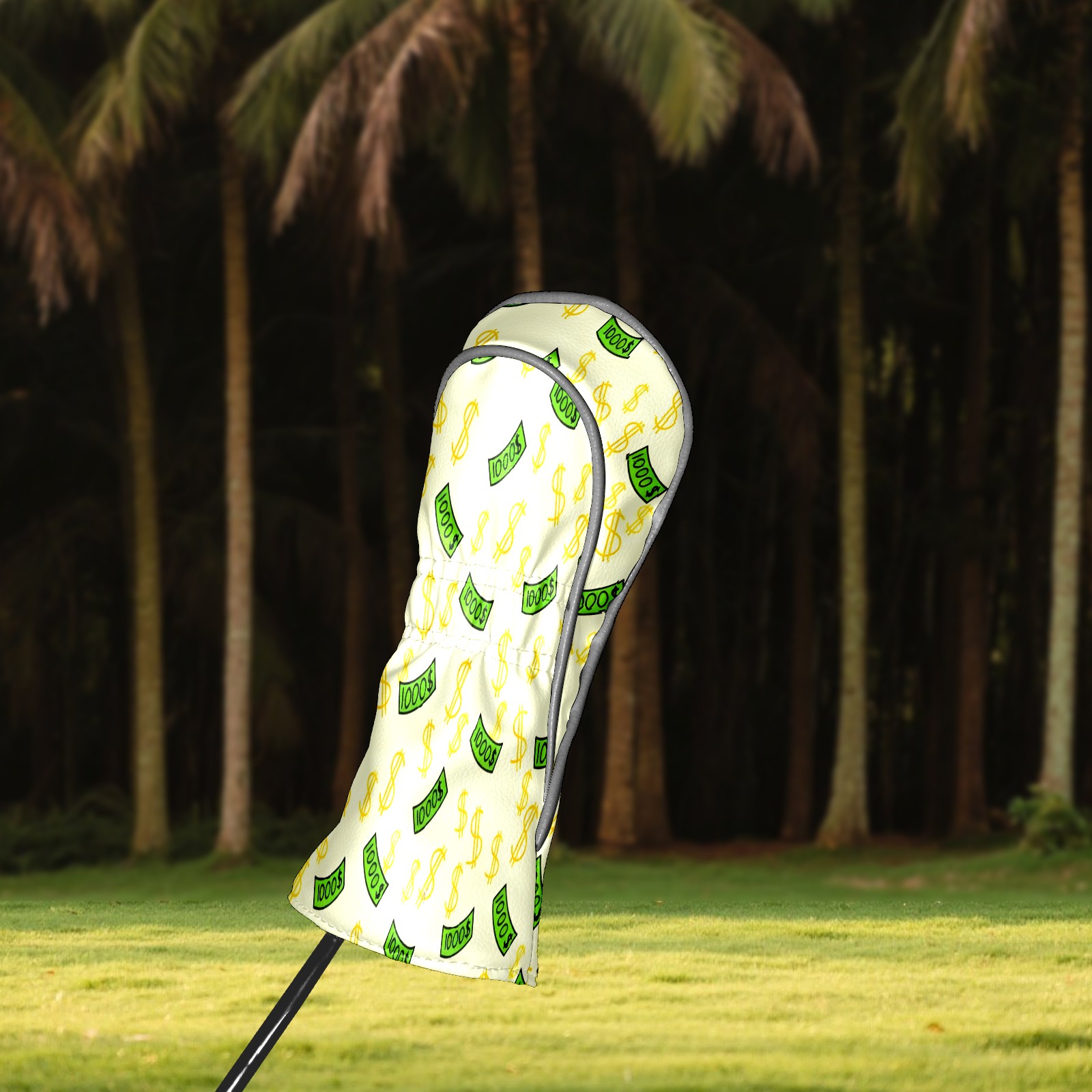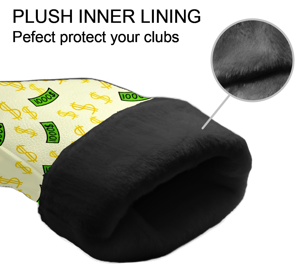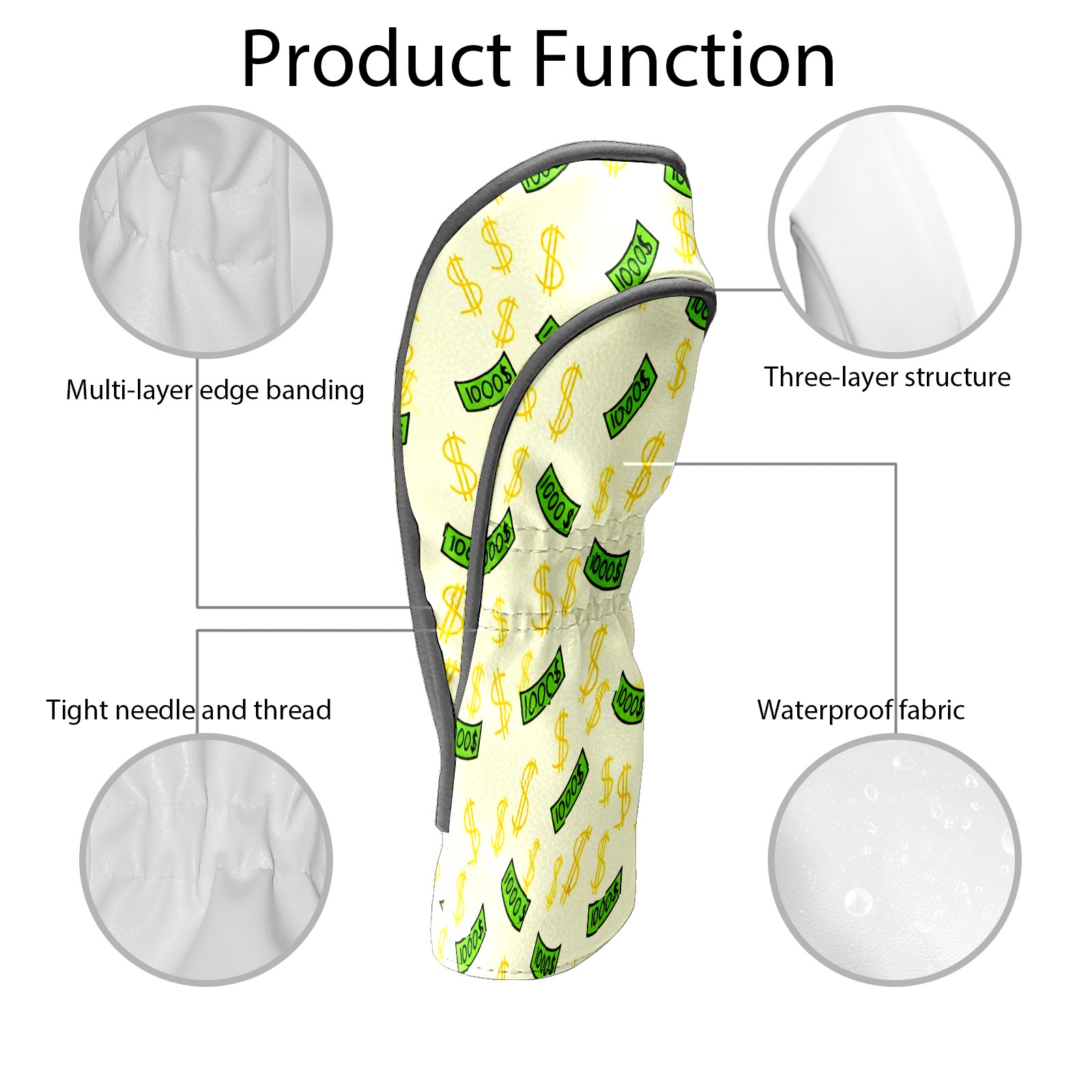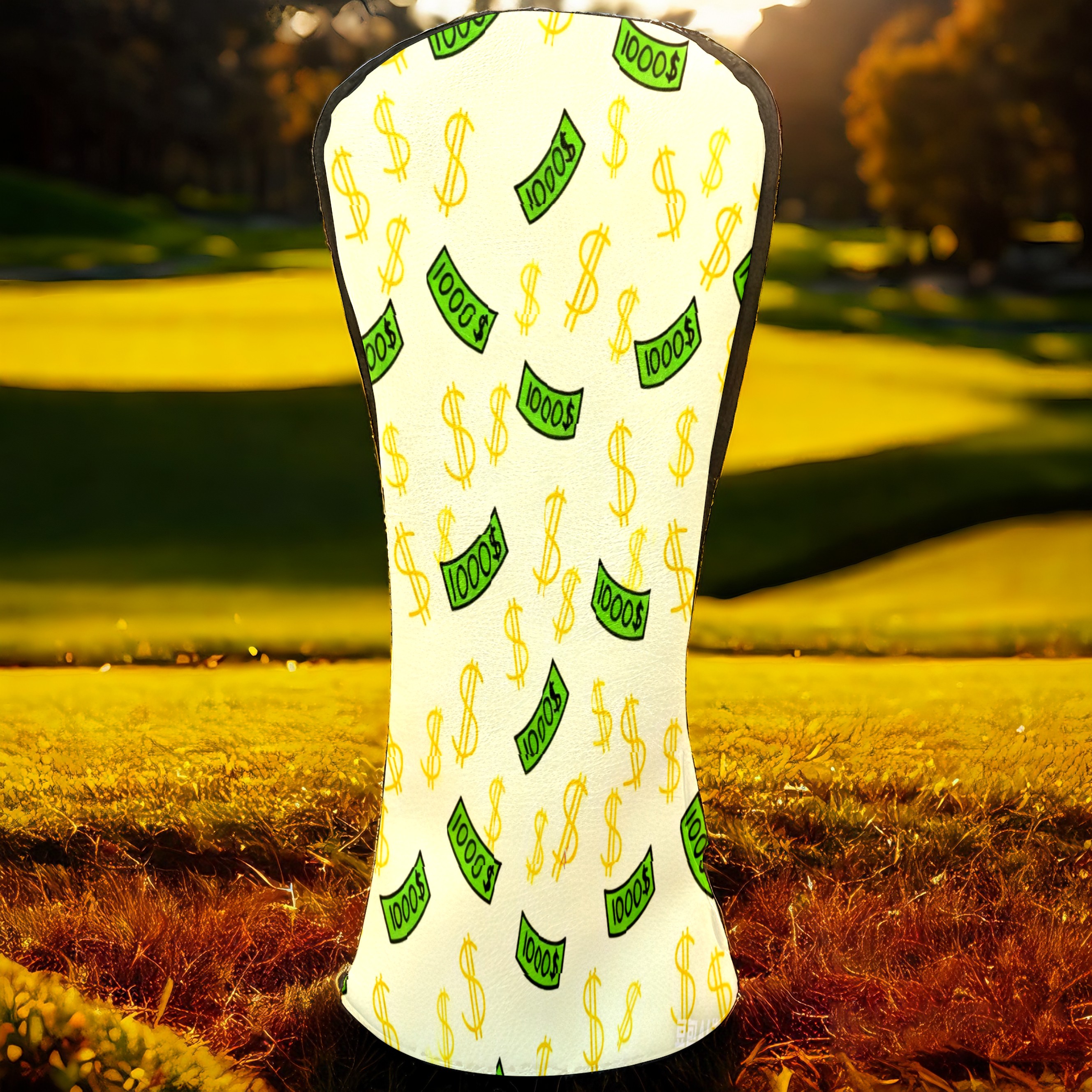 Golf Club Head Cover, High Quality PU Leather Driver and Wood Club Head Cover with Anti-Scratch Lining, Universal Gift for Men and Women US Dollar Banknote Symbol