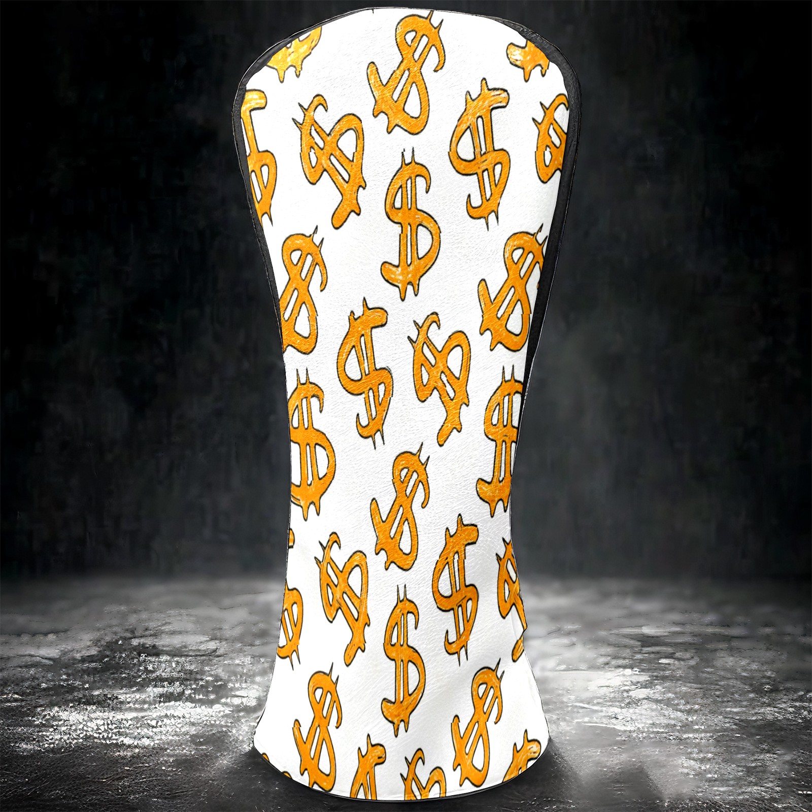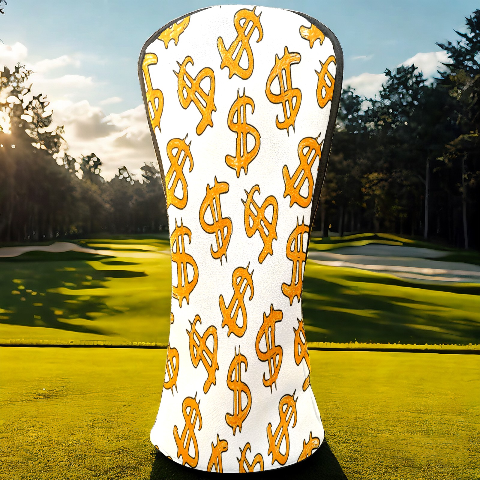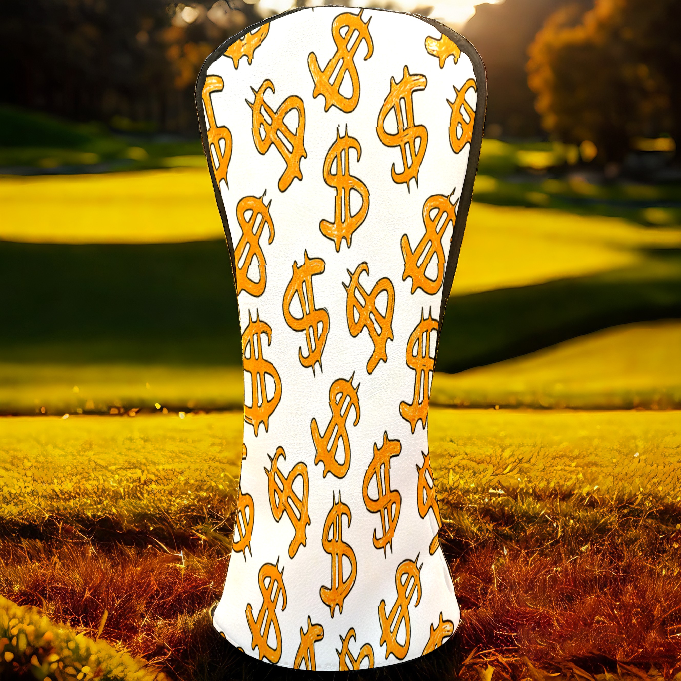 Golf Club Head Cover, High Quality PU Leather Driver and Wood Club Head Cover with Anti-Scratch Lining, Universal Gift for Men and Women Orange Background Dollar Sign
