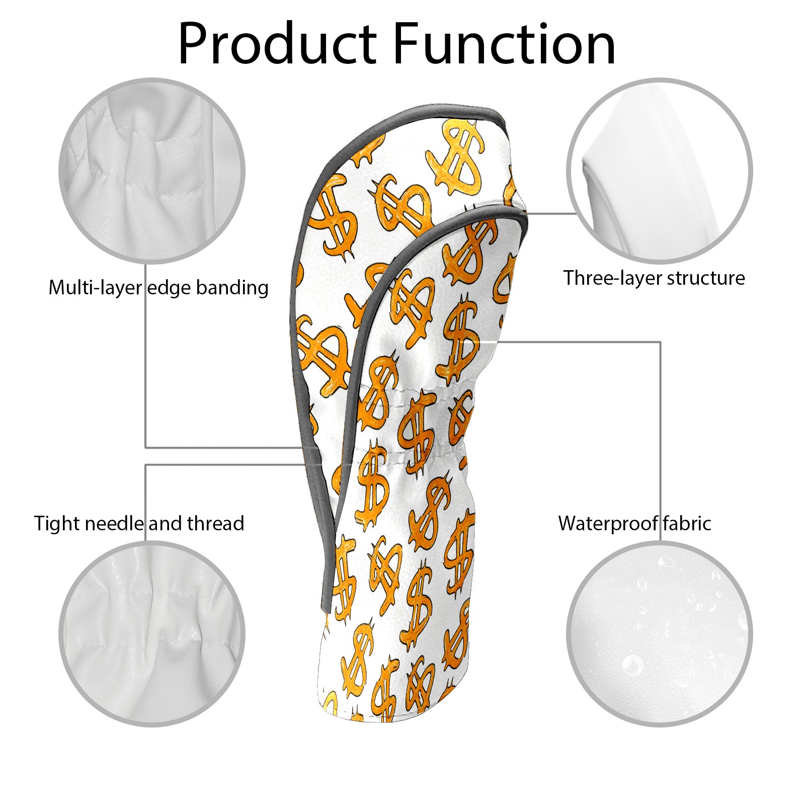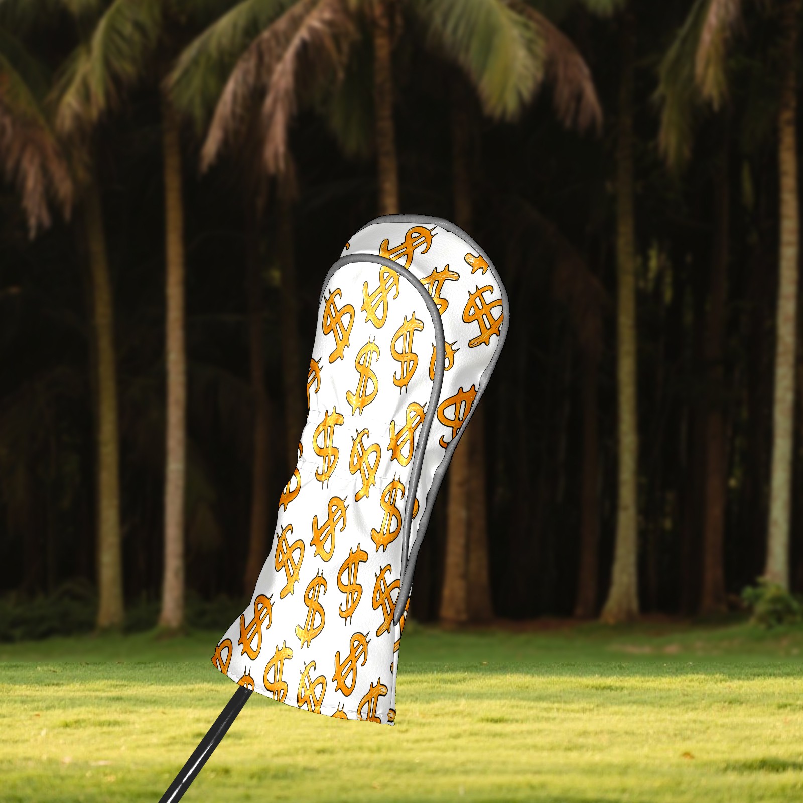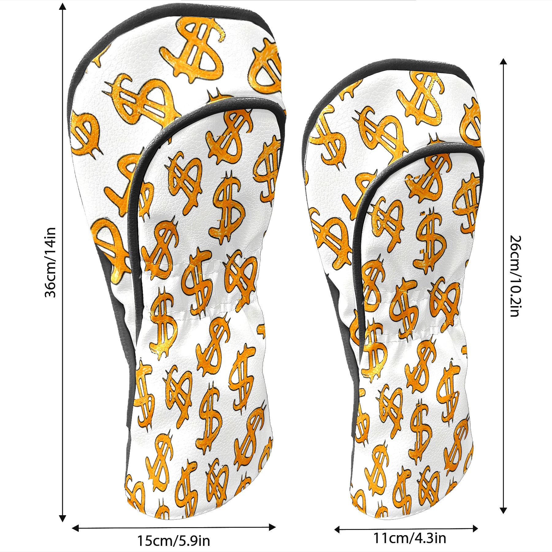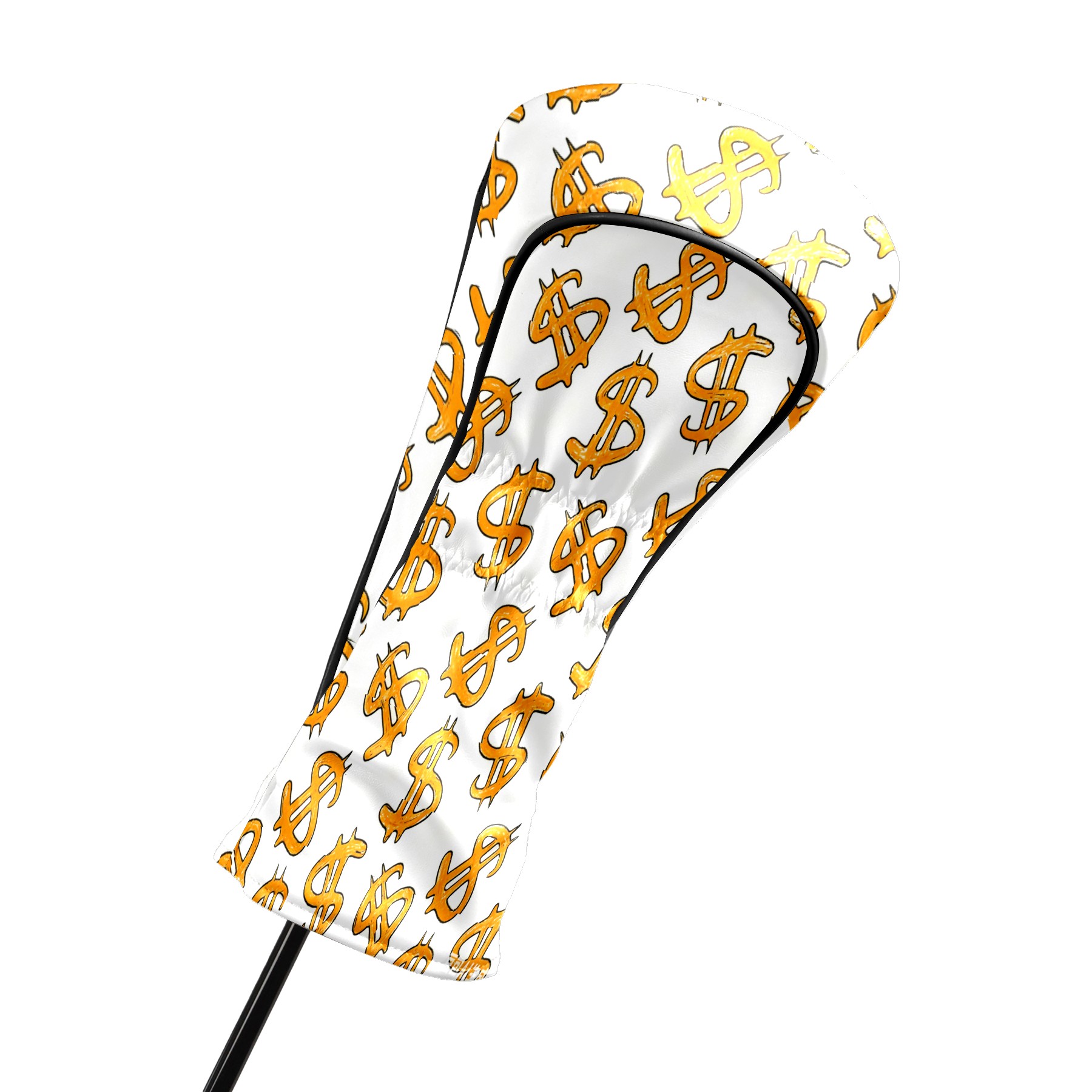 Golf Club Head Cover, High Quality PU Leather Driver and Wood Club Head Cover with Anti-Scratch Lining, Universal Gift for Men and Women Orange Background Dollar Sign