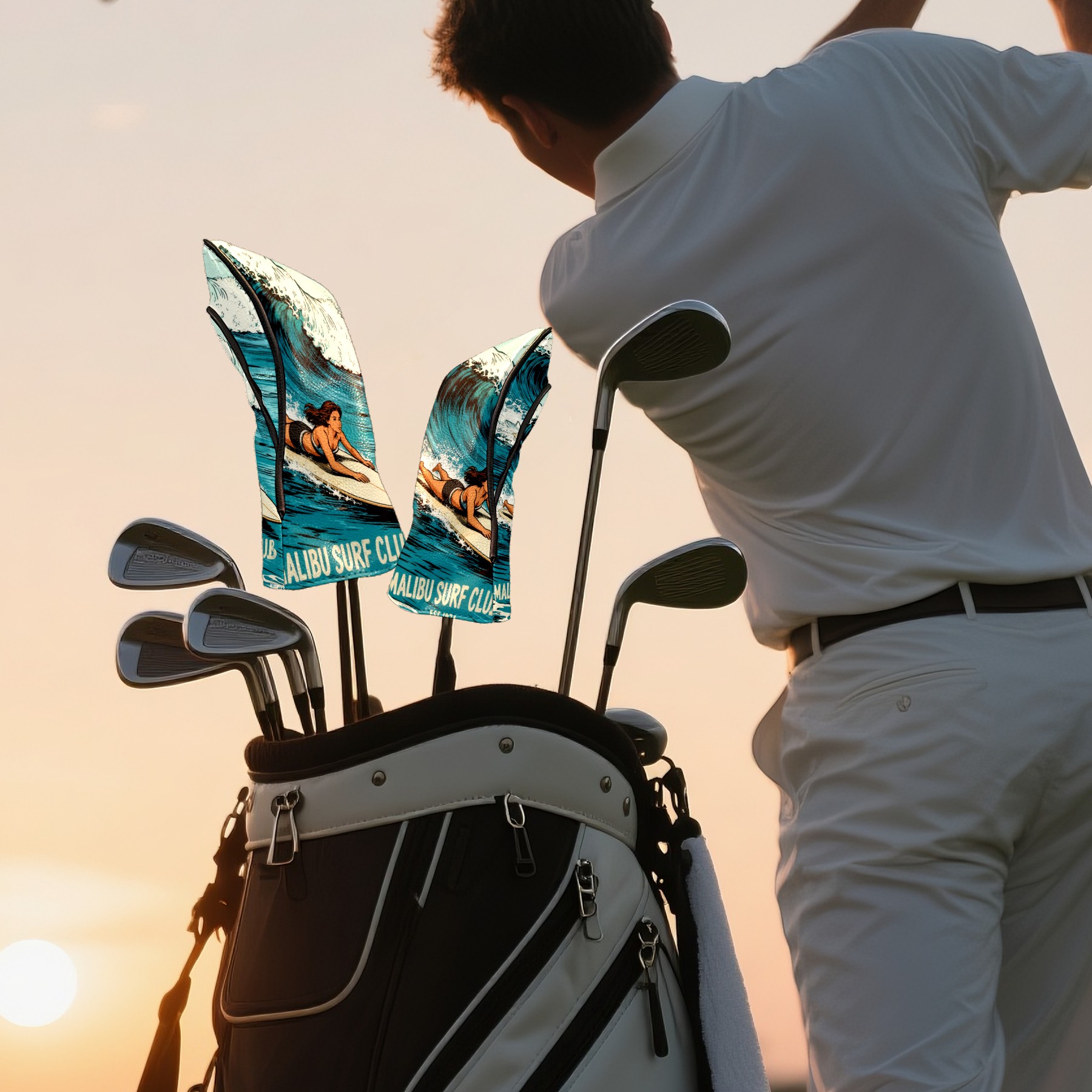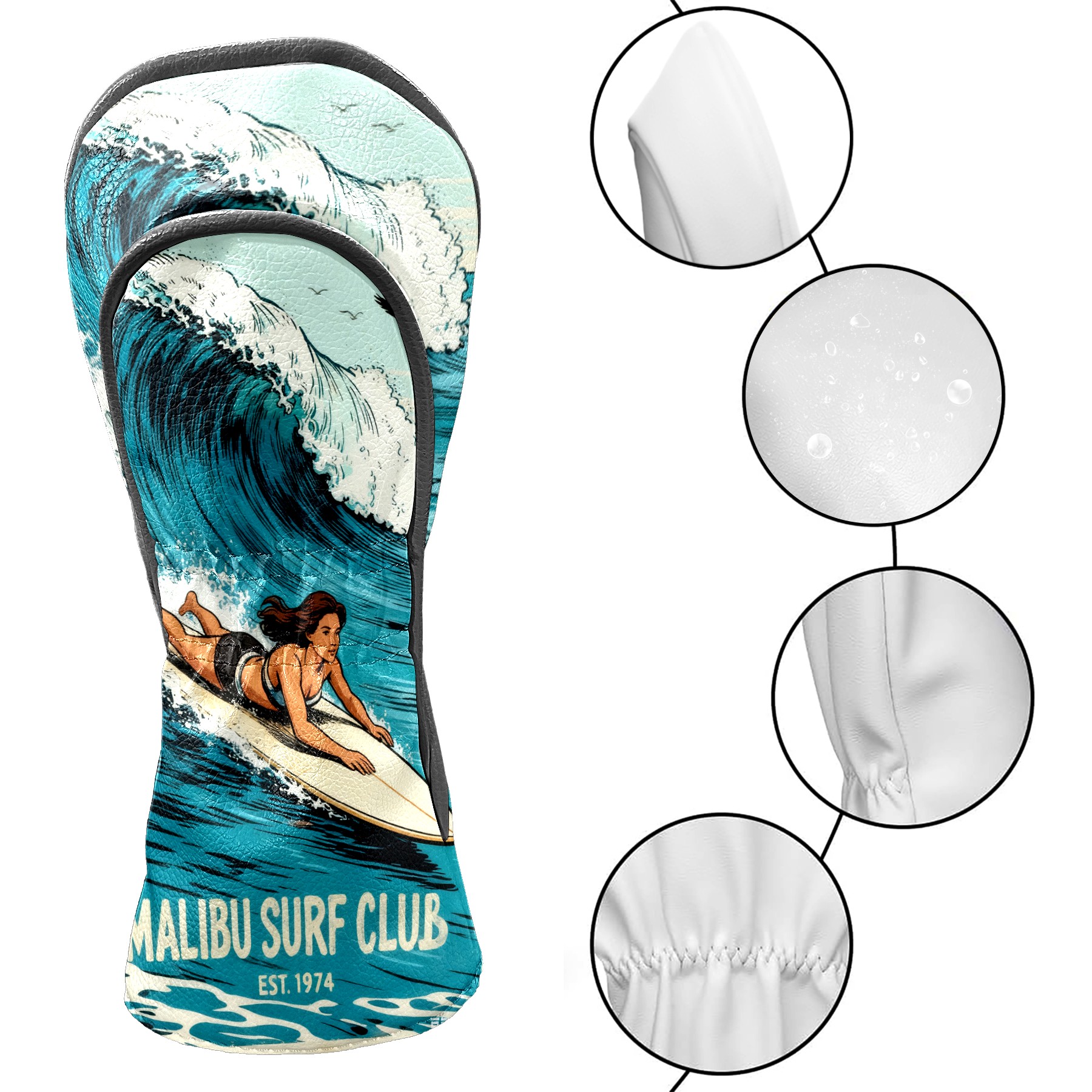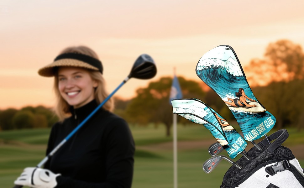 Golf Club Head Cover, High Quality PU Leather Driver and Wood Club Head Cover with Anti-Scratch Lining, Universal Gift for Men and Women Surf 1