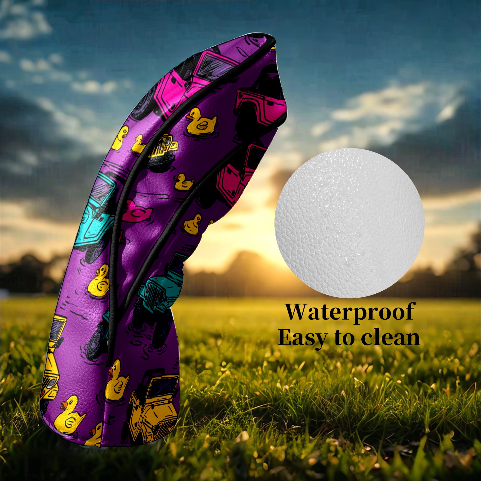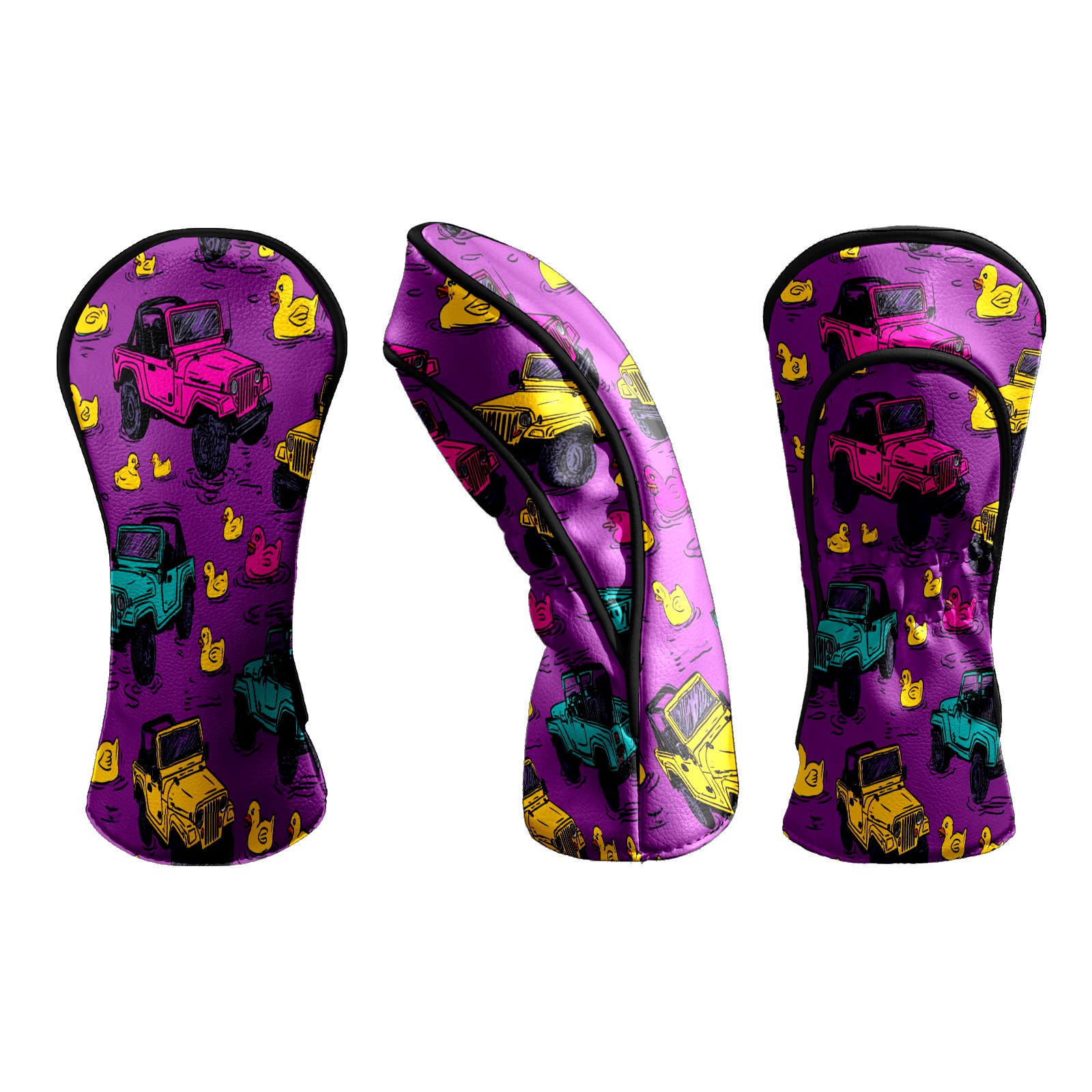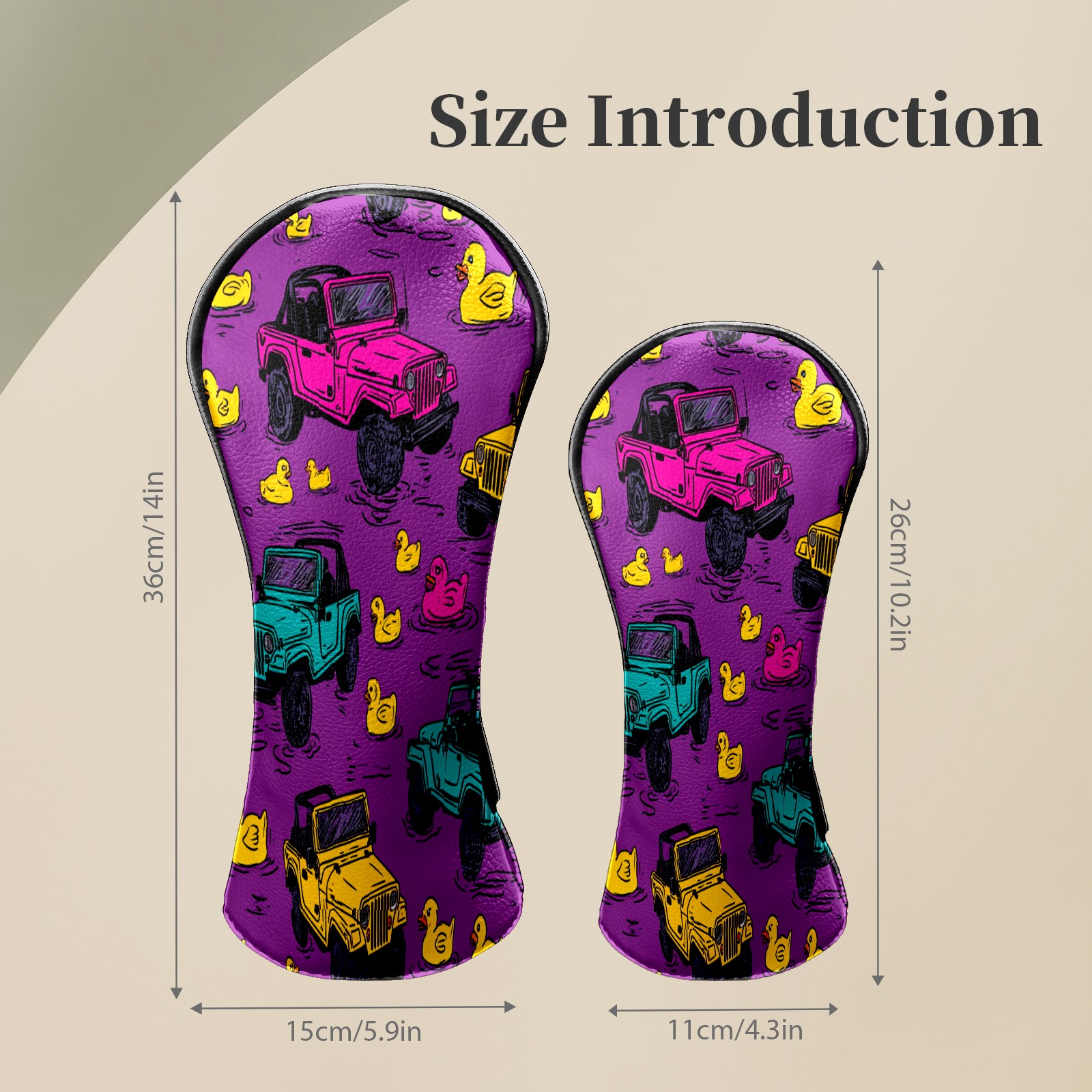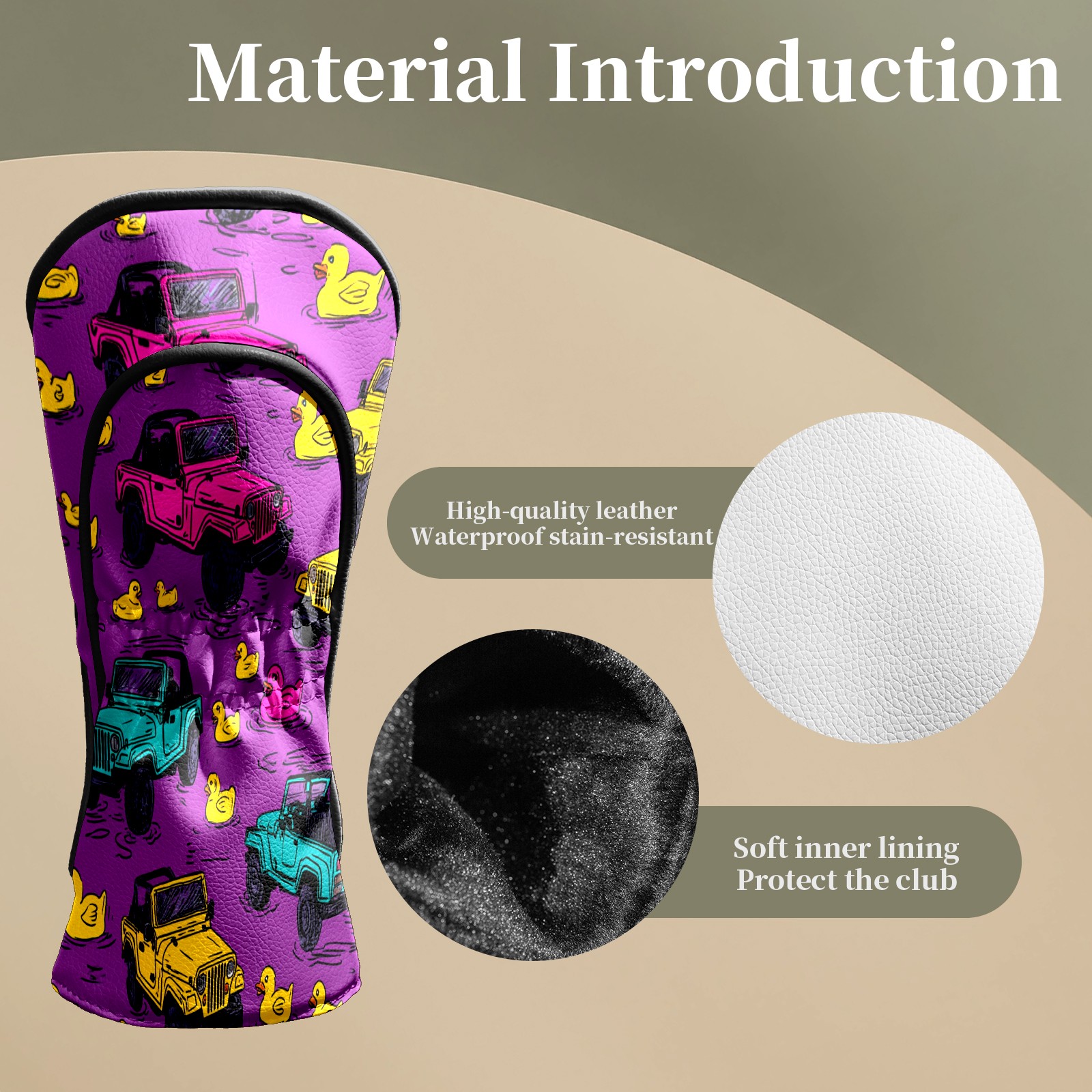 Counullo Golf Head Covers - Purple Jeeps Ducks Driver Fairway Headcover, Durable PU Leather & Soft Velvet Lining, Secure Elastic Band, Perfect Christmas Golf Gift for Men