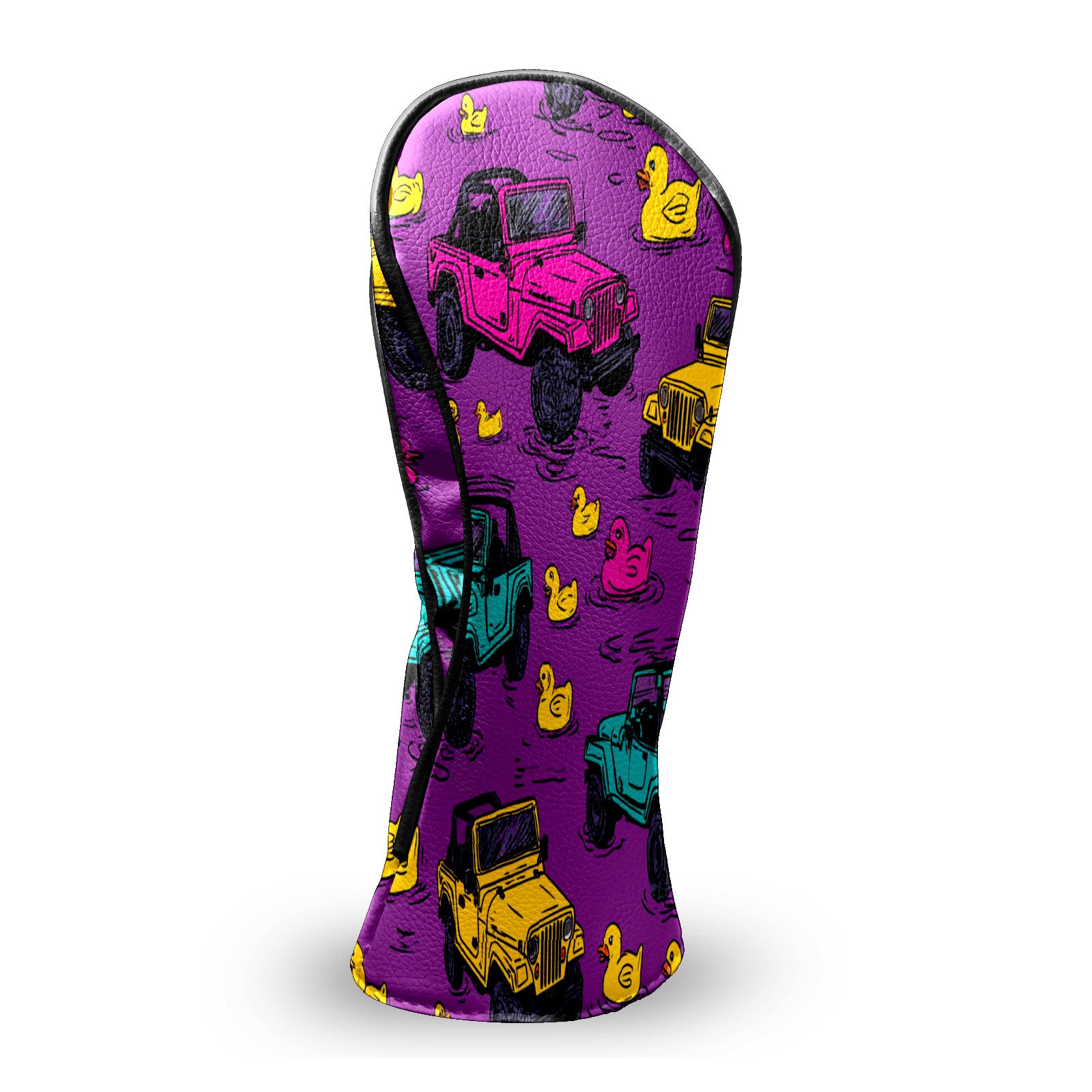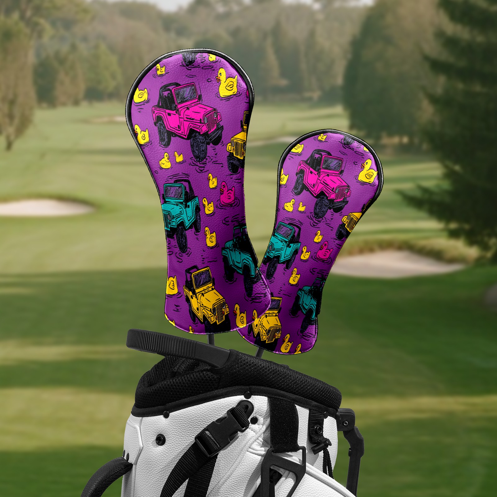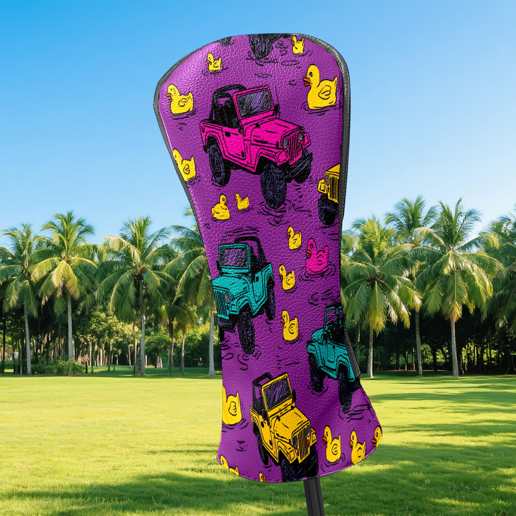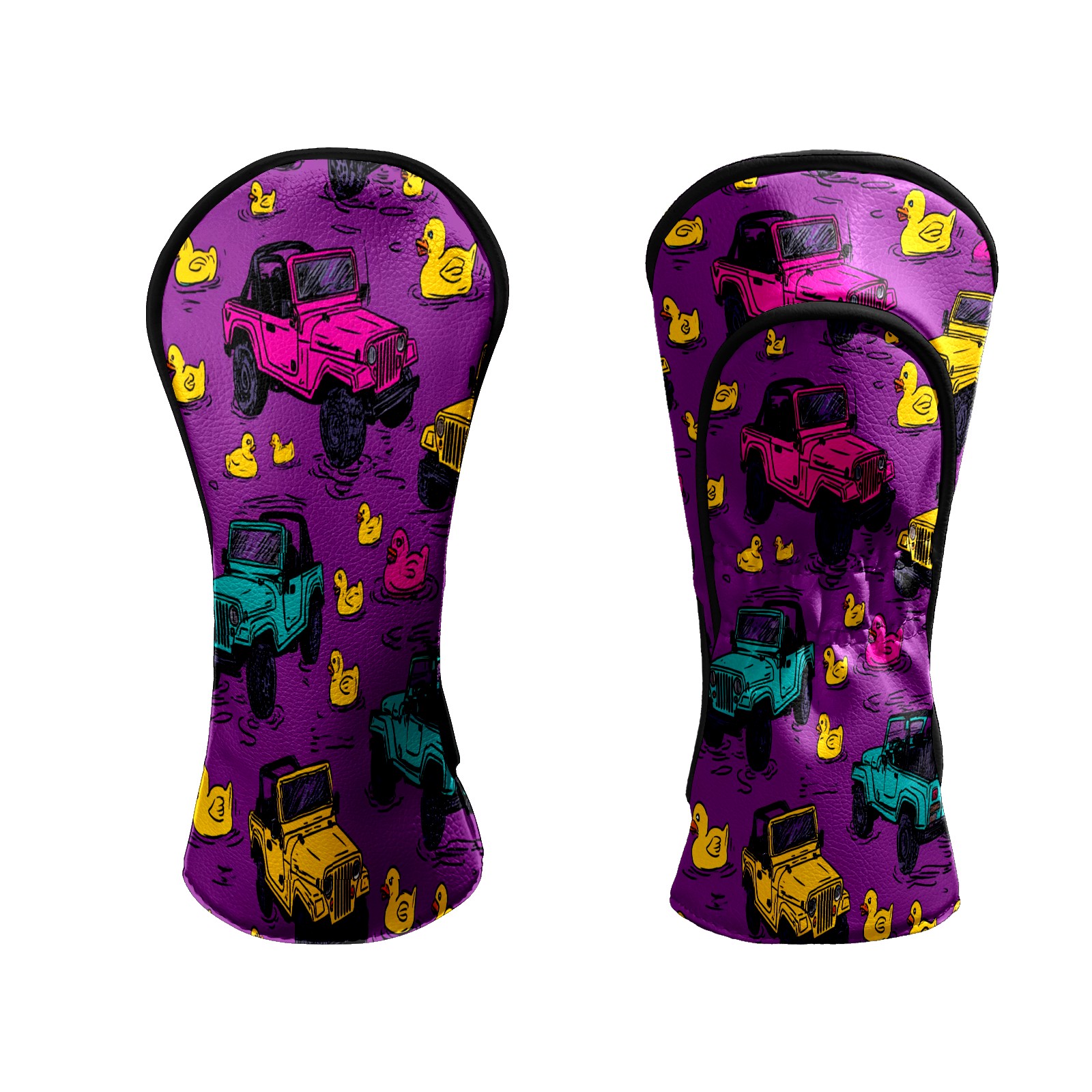 Counullo Golf Head Covers - Purple Jeeps Ducks Driver Fairway Headcover, Durable PU Leather & Soft Velvet Lining, Secure Elastic Band, Perfect Christmas Golf Gift for Men