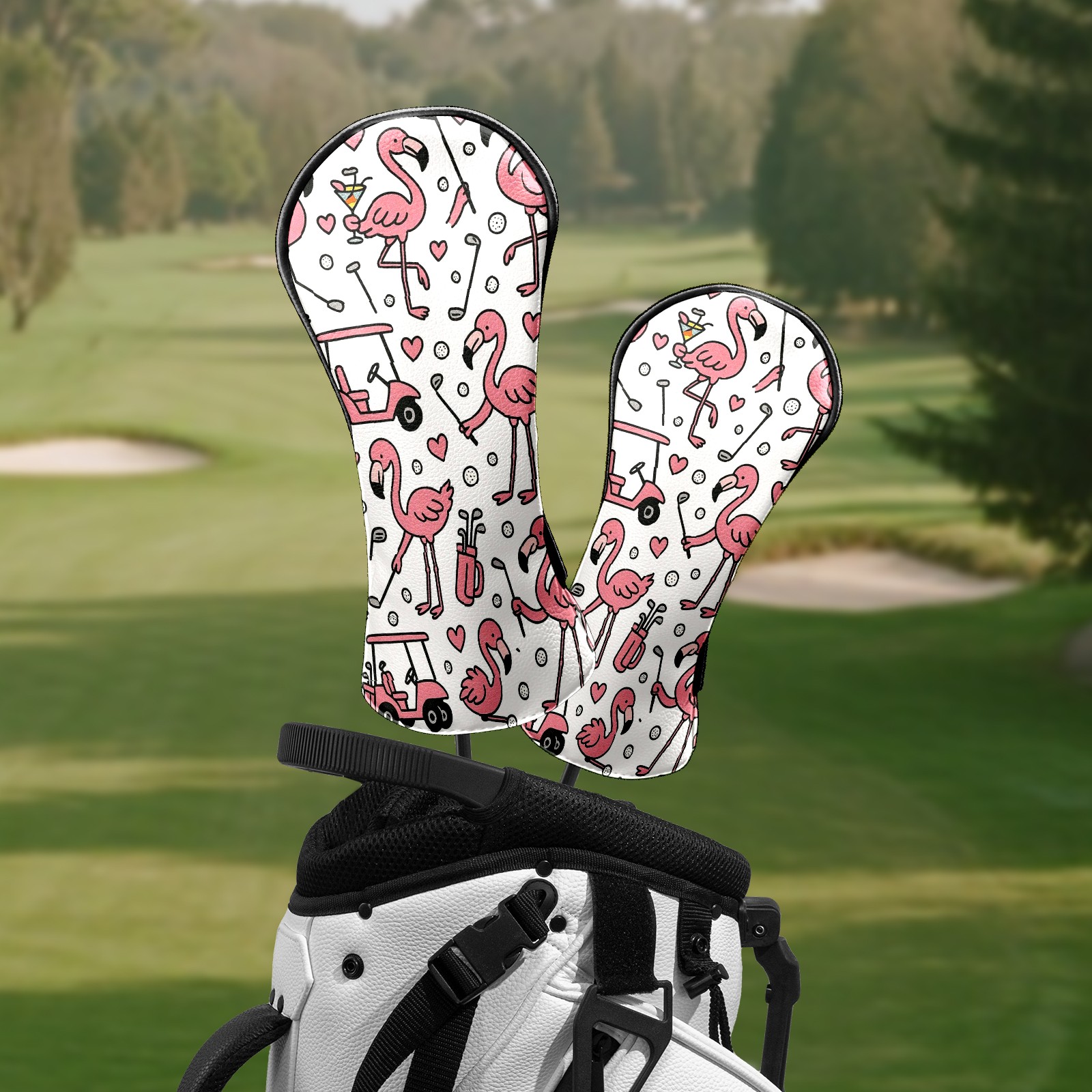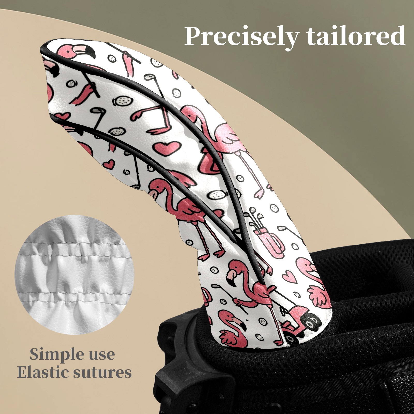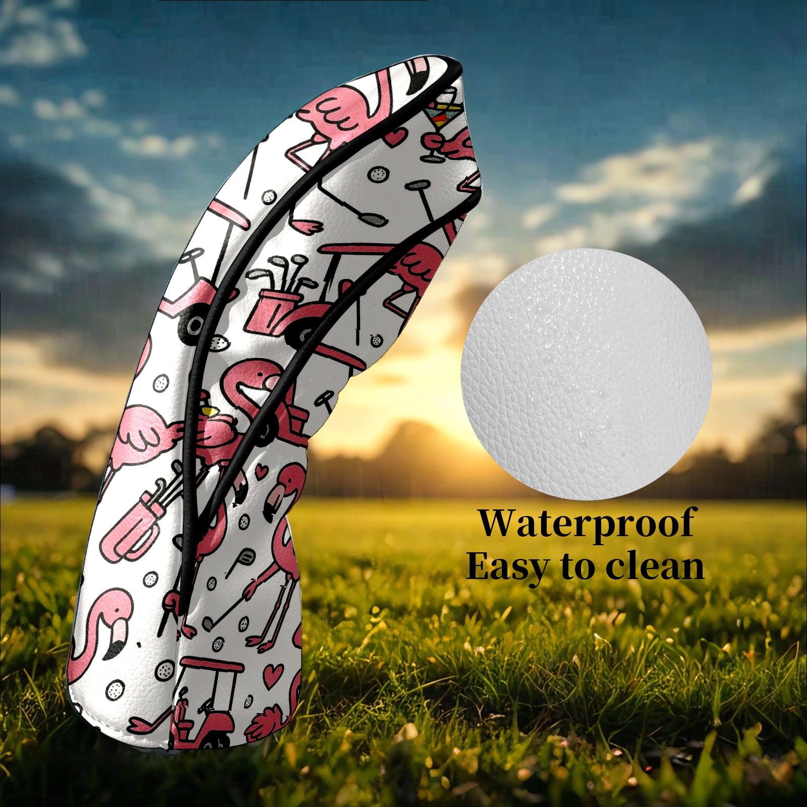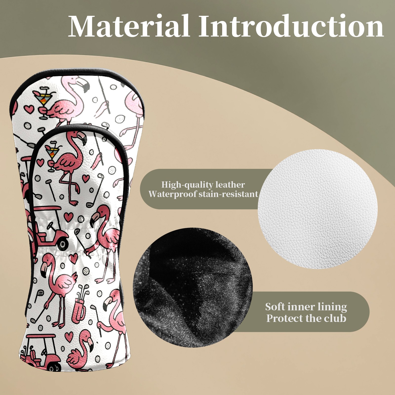 Counullo Golf Head Covers - Pink Flamingos Driver Fairway Headcover, Durable PU Leather & Soft Velvet Lining, Secure Elastic Band, Perfect Christmas Golf Gift for Men