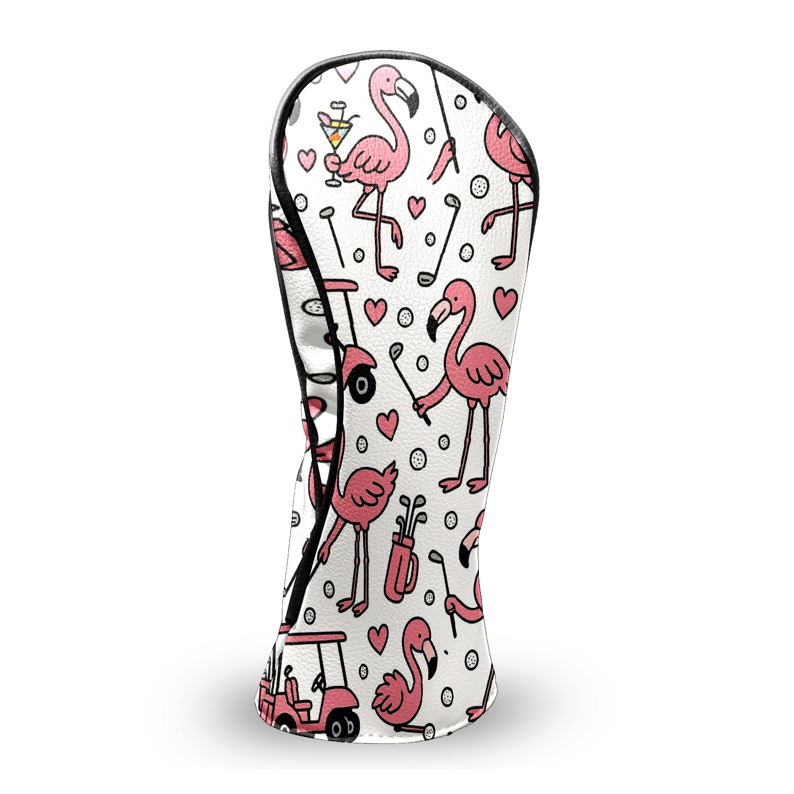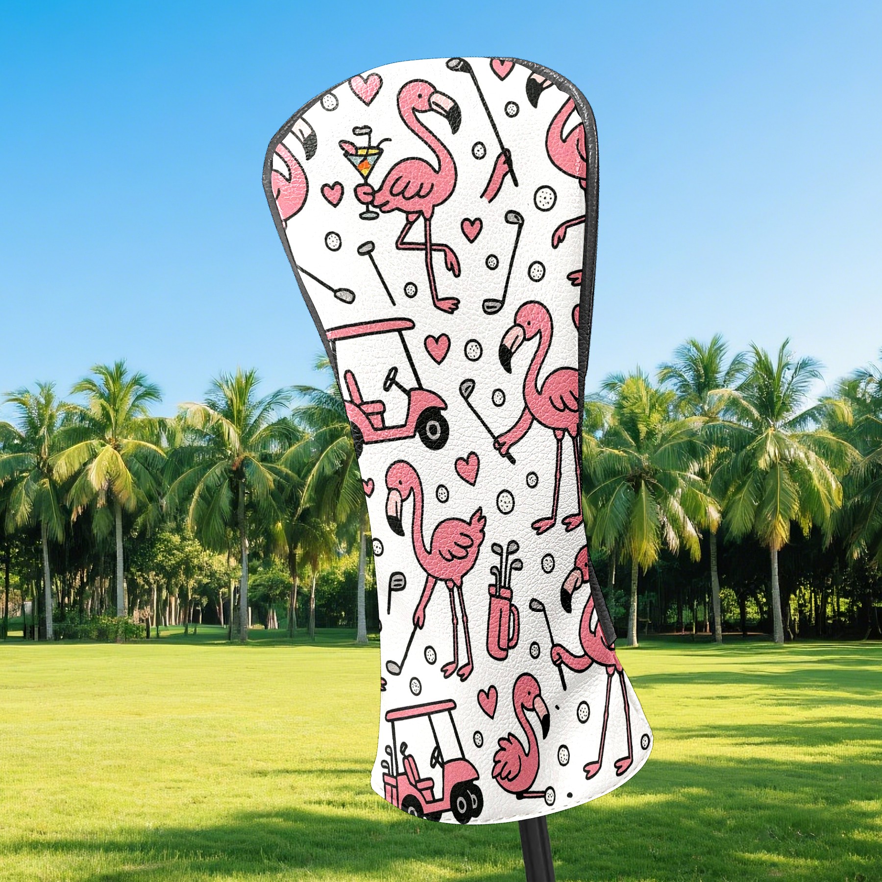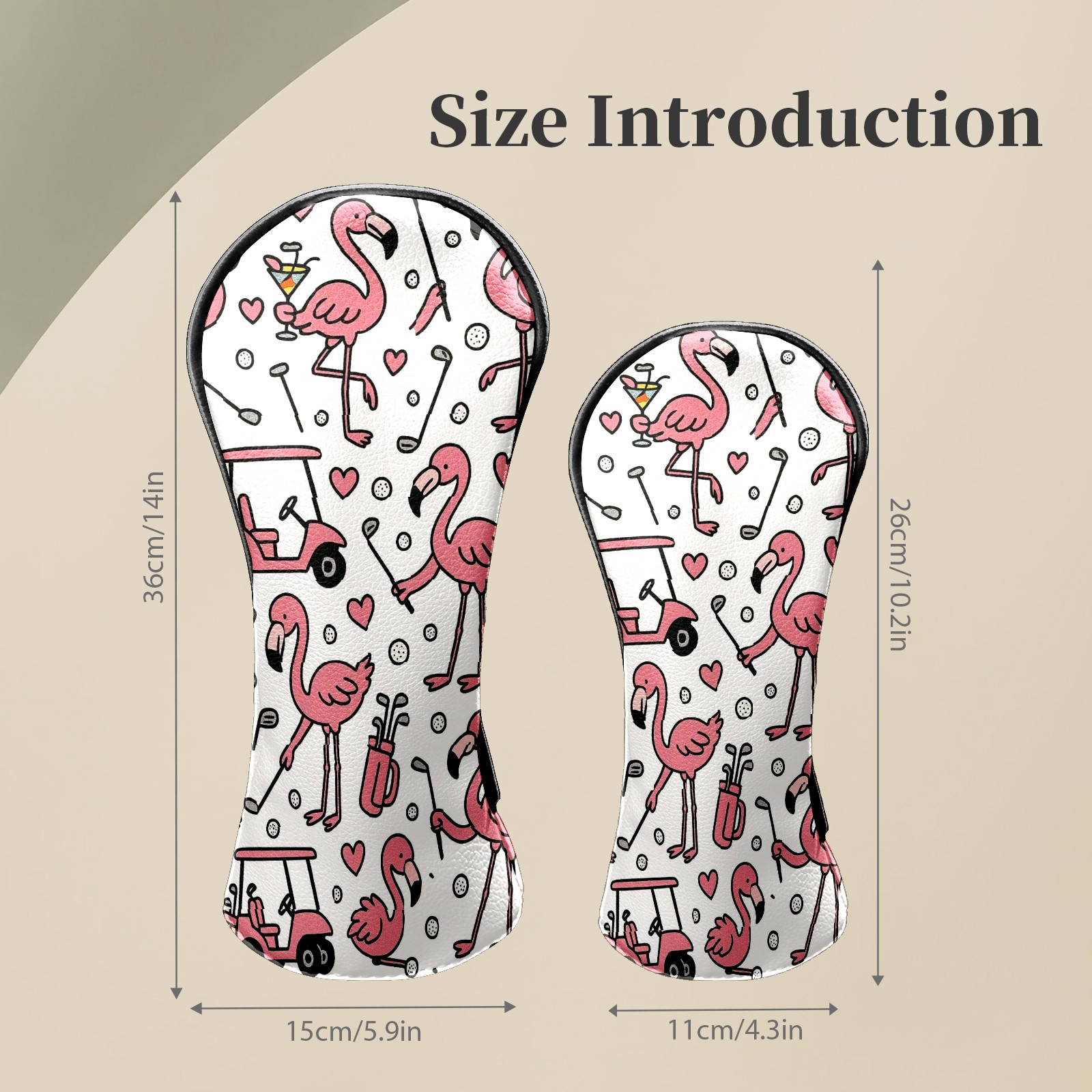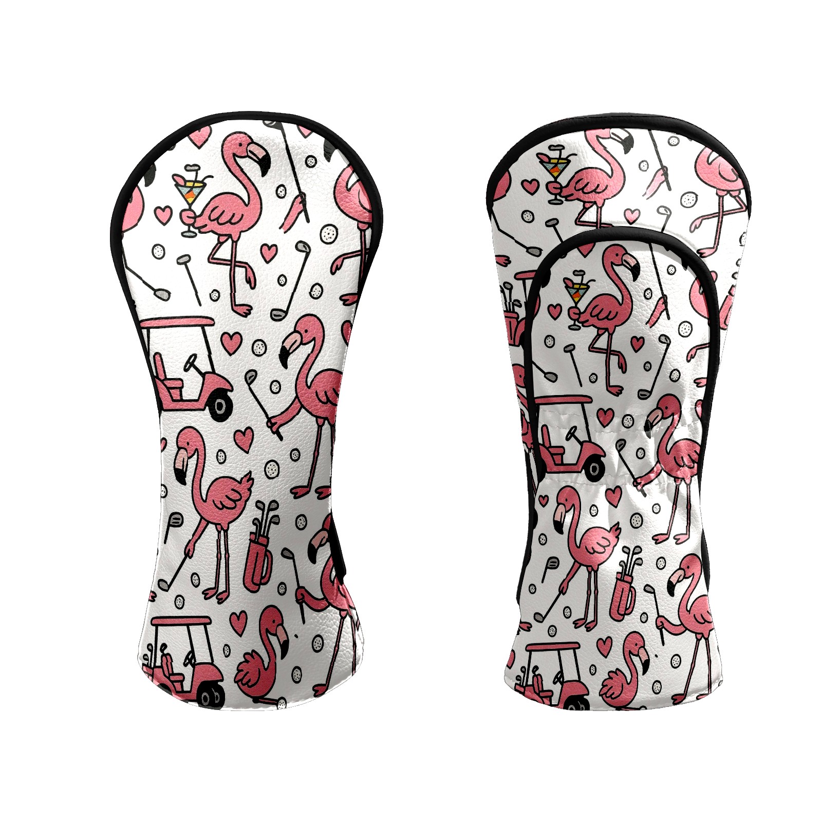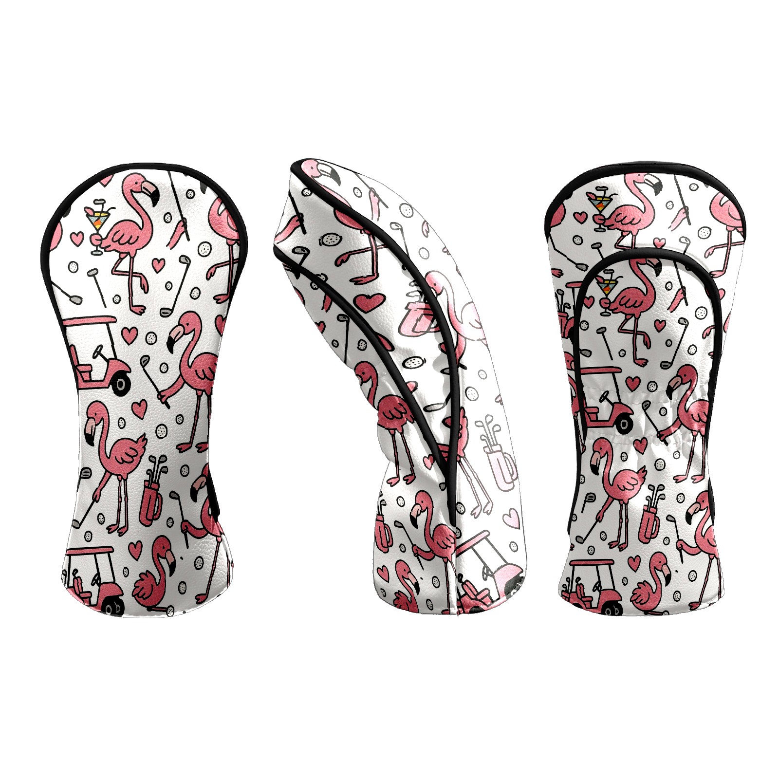 Counullo Golf Head Covers - Pink Flamingos Driver Fairway Headcover, Durable PU Leather & Soft Velvet Lining, Secure Elastic Band, Perfect Christmas Golf Gift for Men